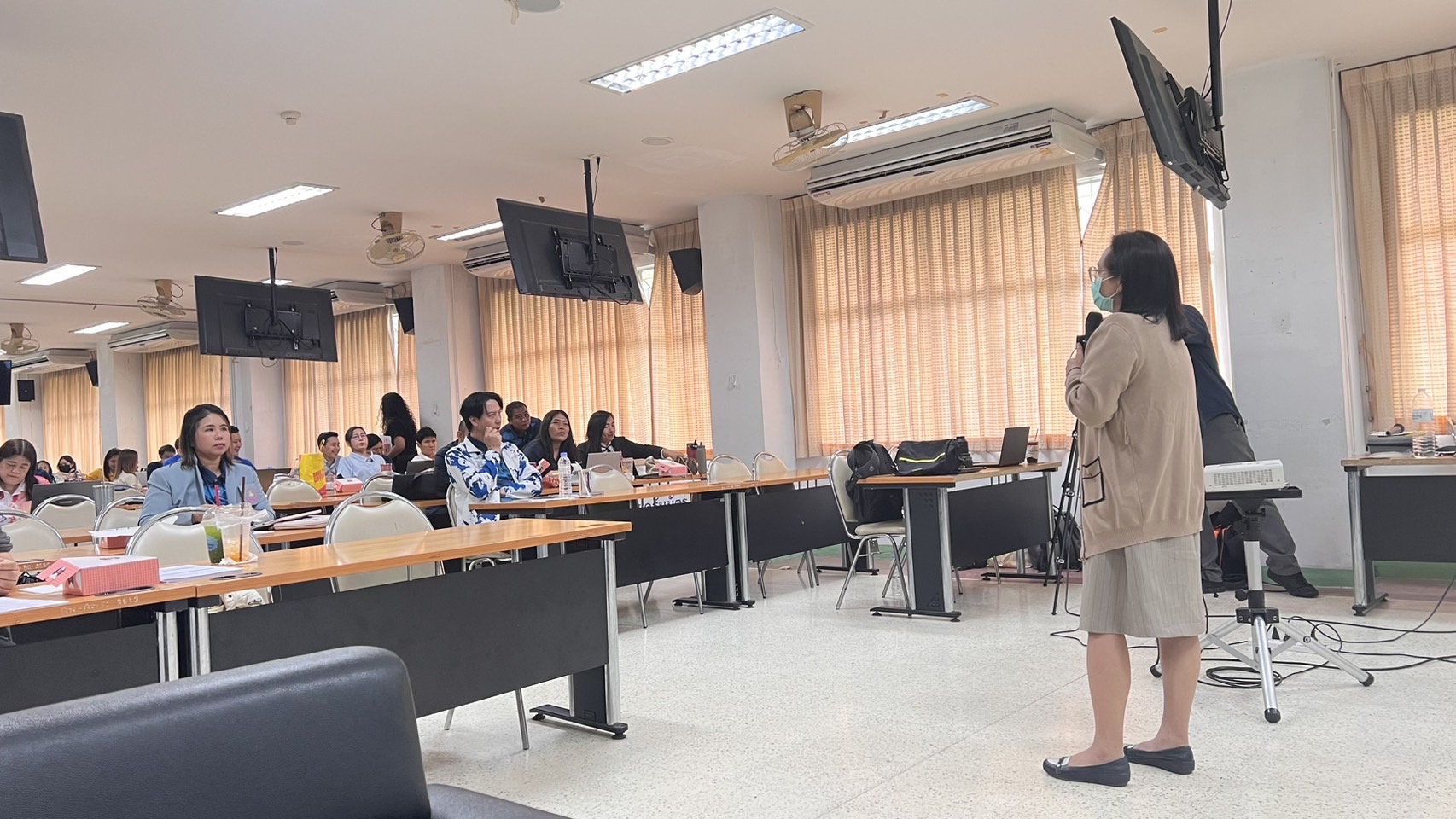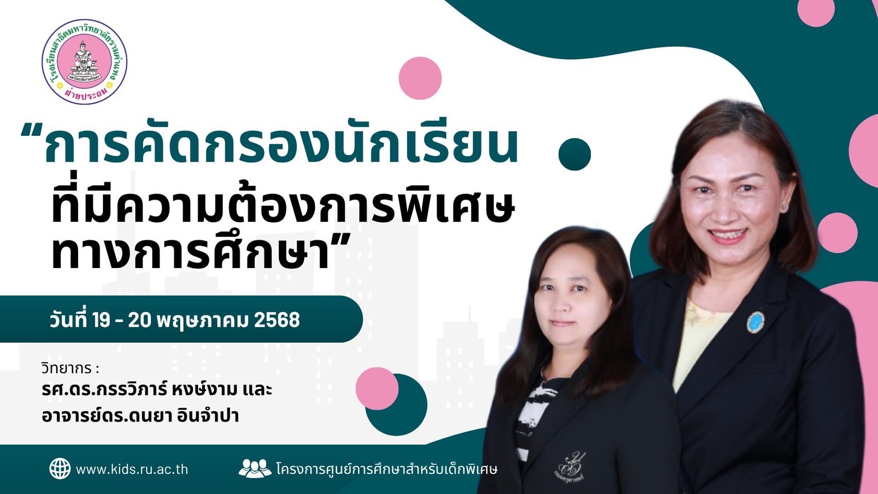 ในวันที่ 19 – 20 พฤษภาคม 2568 เวลา 08.30 – 16.30 น. มหาวิทยาลัยสวนดุสิต ศูนย์การศึกษา นครนายกโดย ดร.ดนยา อินจำปา อาจารย์ผู้รับผิดชอบหลักสูตรศึกษาศาสตร์บัณฑิต สาขาการประถมศึกษา ได้รับเชิญเป็นวิทยากร เรื่อง “การคัดกรองนักเรียนที่มีความต้องการพิเศษทางการศึกษา” ให้แก่ คณาจารย์โรงเรียนสาธิตมหาวิทยาลัยรามคำแหง (ฝ่ายประถมศึกษา) เพื่อให้มีความรู้ความเข้าใจในการคัดกรองนักเรียนที่มีความต้องการพิเศษ และนำมาปรับใช้กับการจัดการศึกษา สื่อการเรียนการสอนที่เหมาะสมต่อไป ณ ห้องประชุม โรงเรียนสาธิตมหาวิทยาลัยรามคำแหง (ฝ่ายประถมศึกษา)