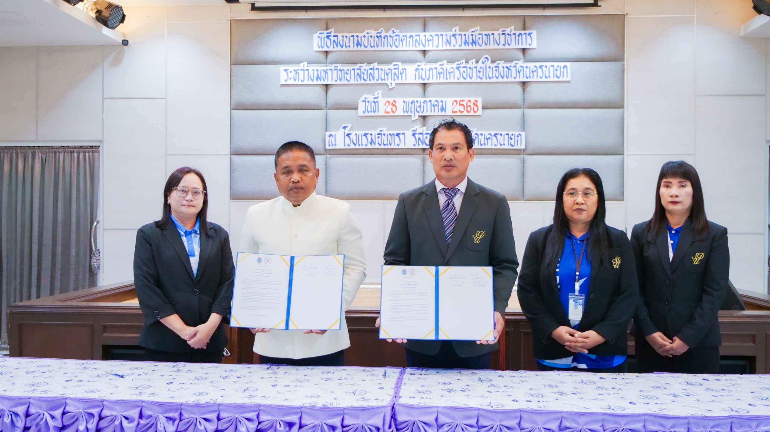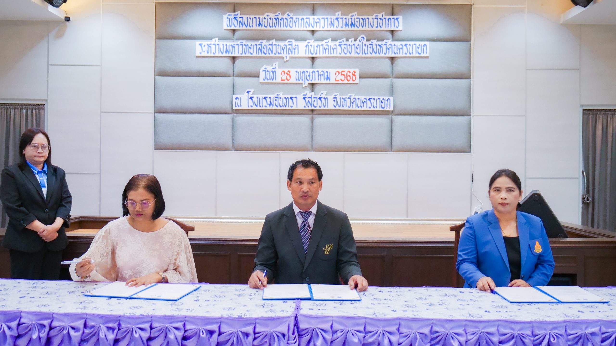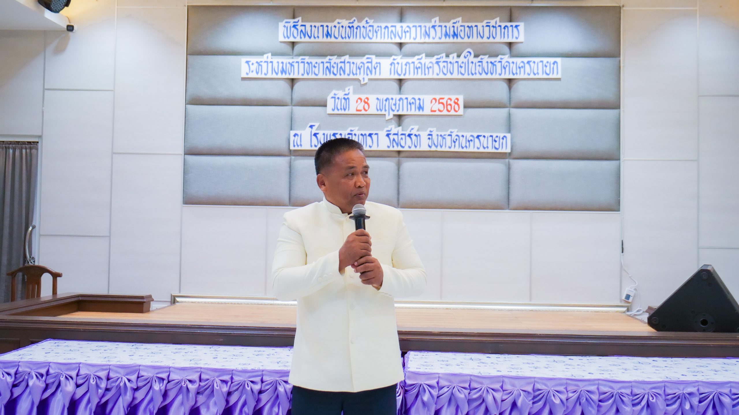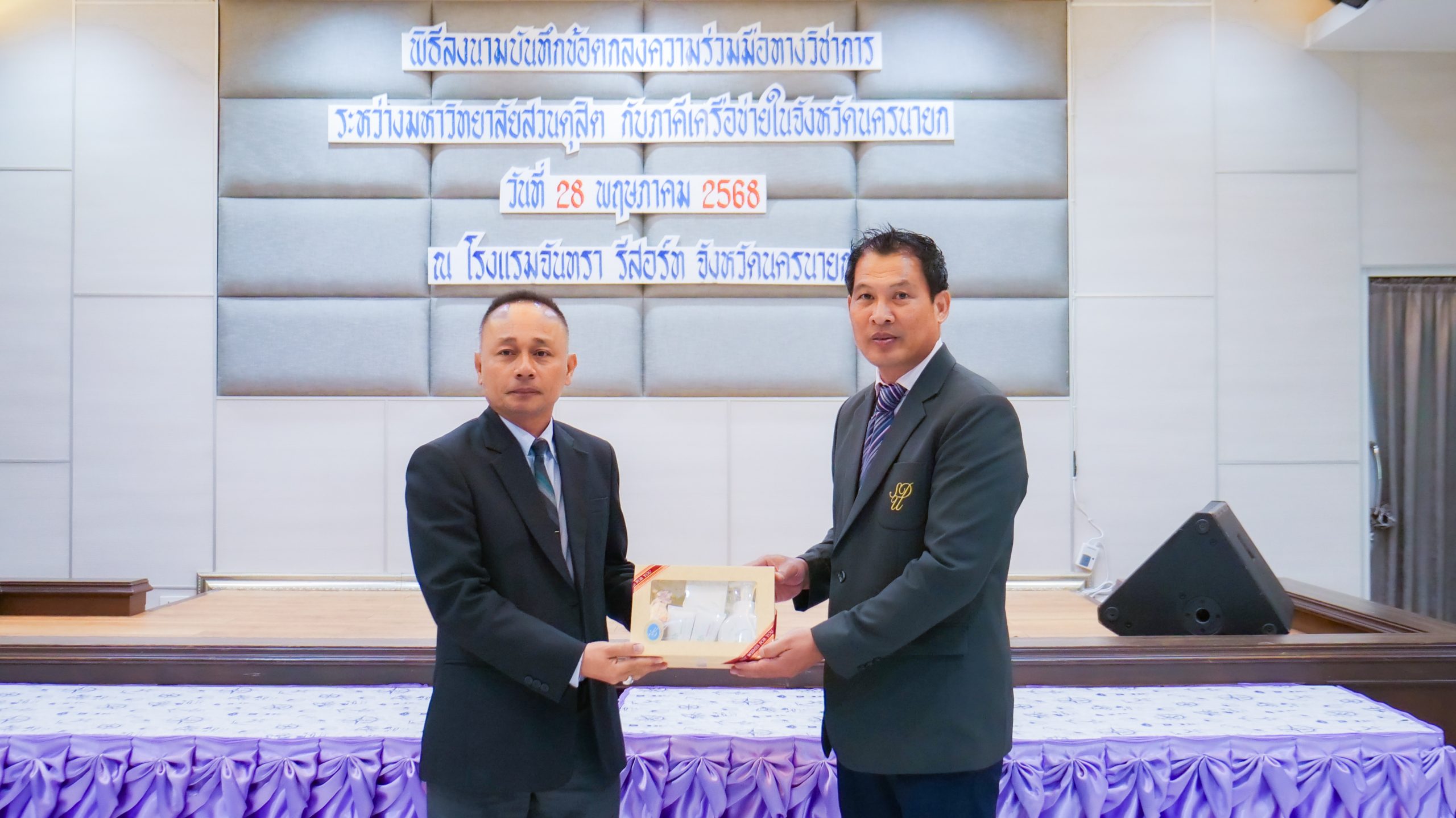 ในวันที่ 28 พฤษภาคม 2568 เวลา 09.00 – 12.00 น. มหาวิทยาลัยสวนดุสิต ศูนย์การศึกษานครนายก ได้ดำเนินการจัดทำบันทึกข้อตกลงความร่วมมือทางวิชาการ (Memorandom of Understanding : MOU) กับหน่วยงานภาคีเครือข่ายในจังหวัดนครนายก เพื่อสร้างความร่วมมือในการส่งเสริมสนับสนุนการศึกษาและร่วมมือในการส่งเสริมทางวิชาการ การพัฒนาการเรียนรู้อย่างมีคุณภาพที่หลากหลาย การวิจัย การฝึกอบรม การประชุมสัมมนา และการสนับสนุนให้ความร่วมมือทางสื่อการเรียนรู้และเทคโนโลยีที่เหมาะสม ณ ห้องราวินทรา โรงแรมจันทรารีสอร์ท จังหวัดนครนายก