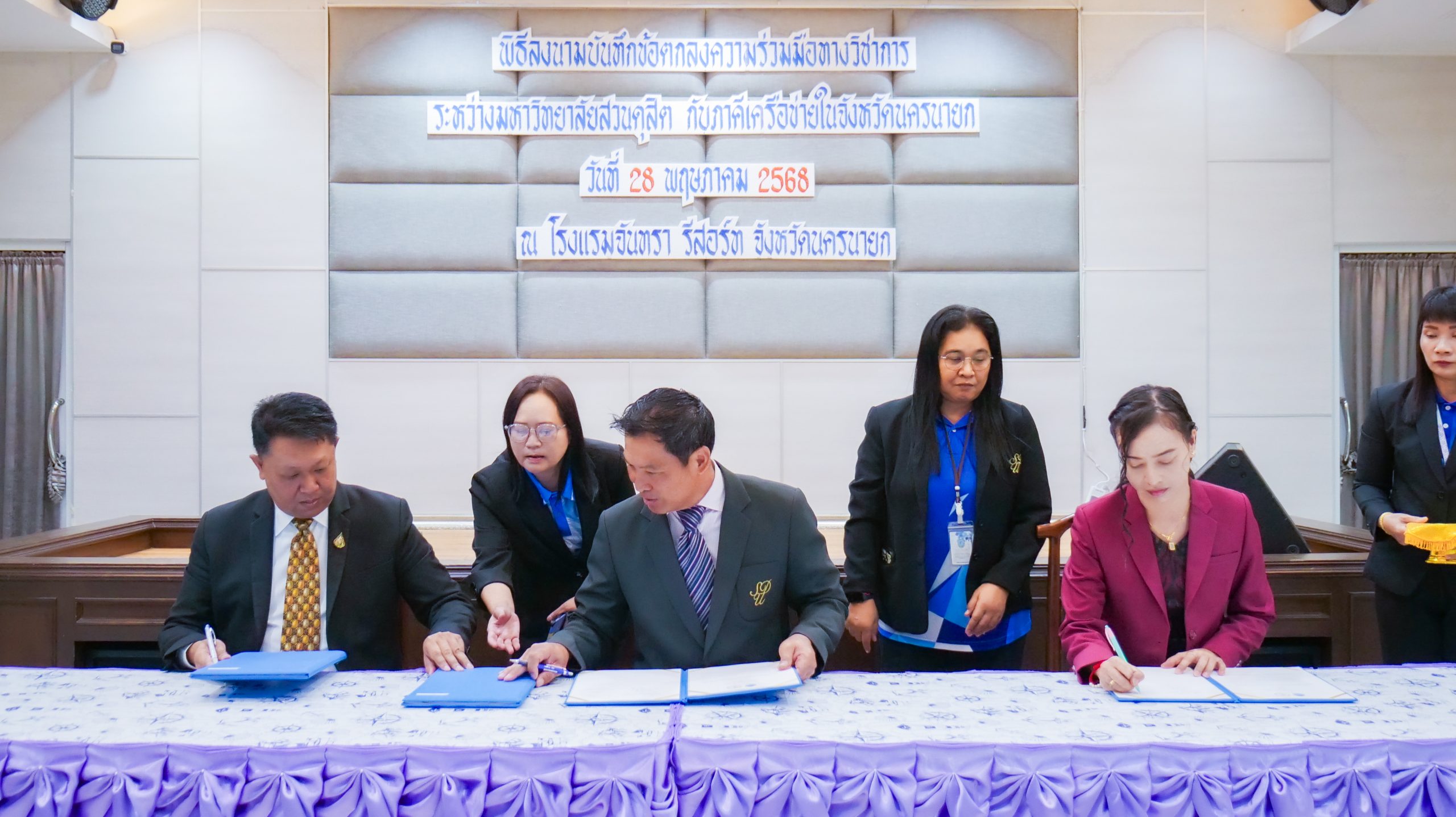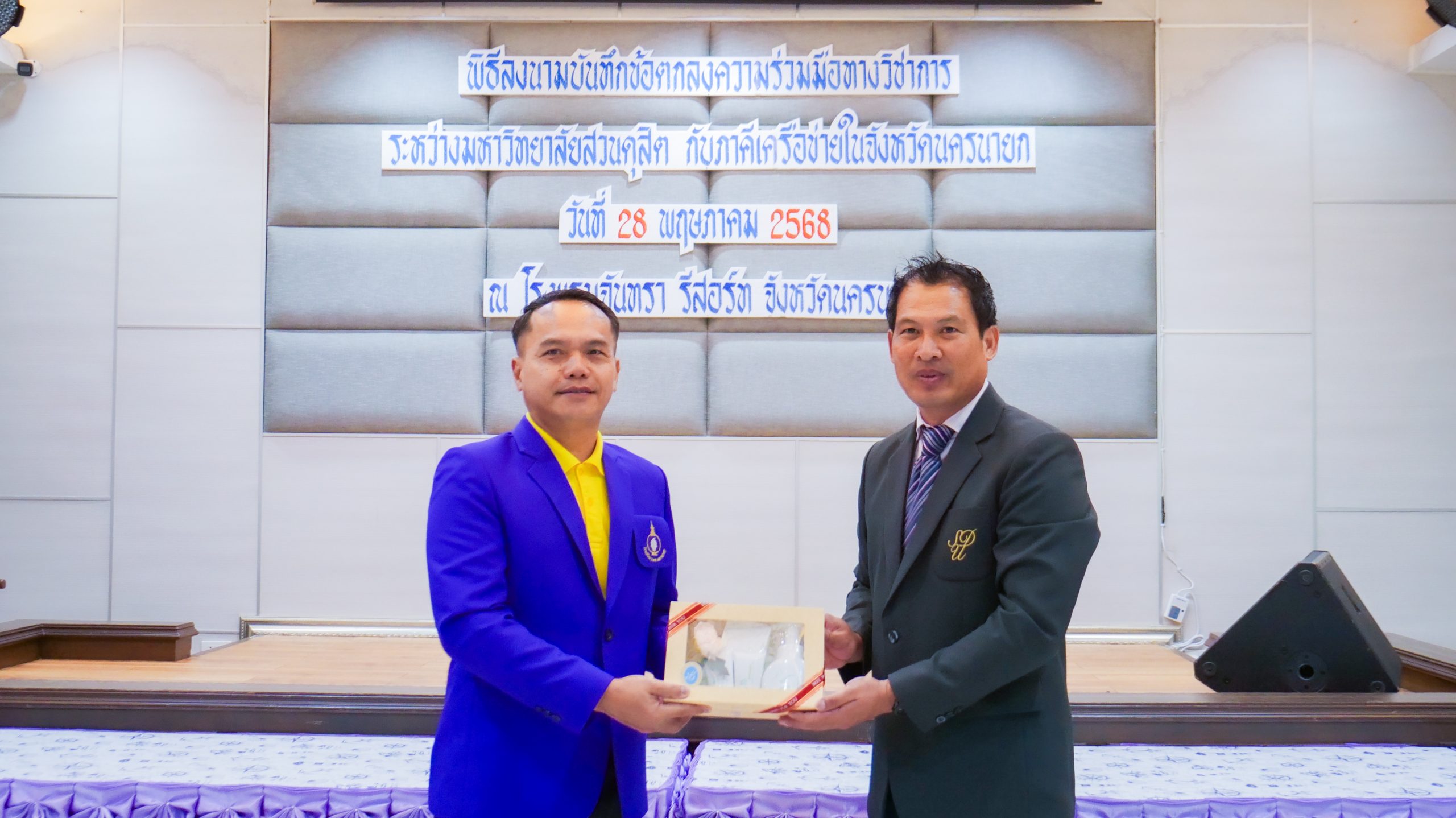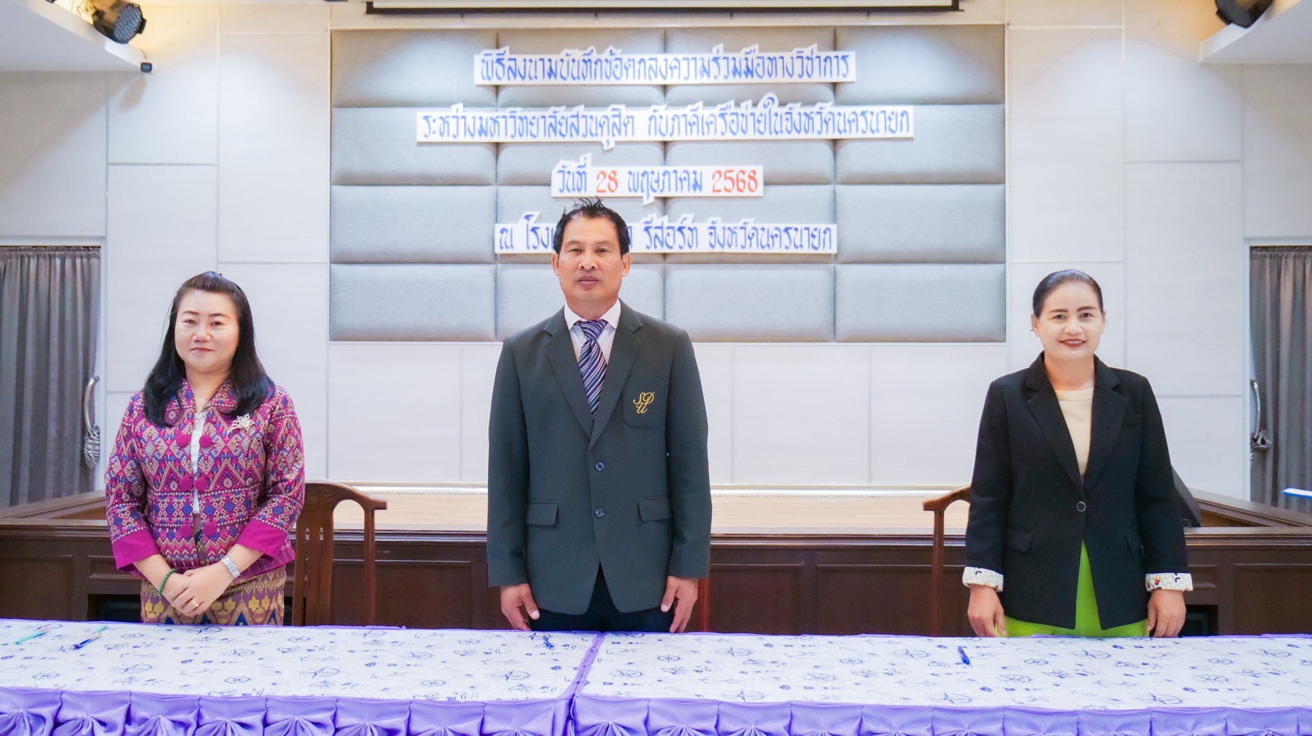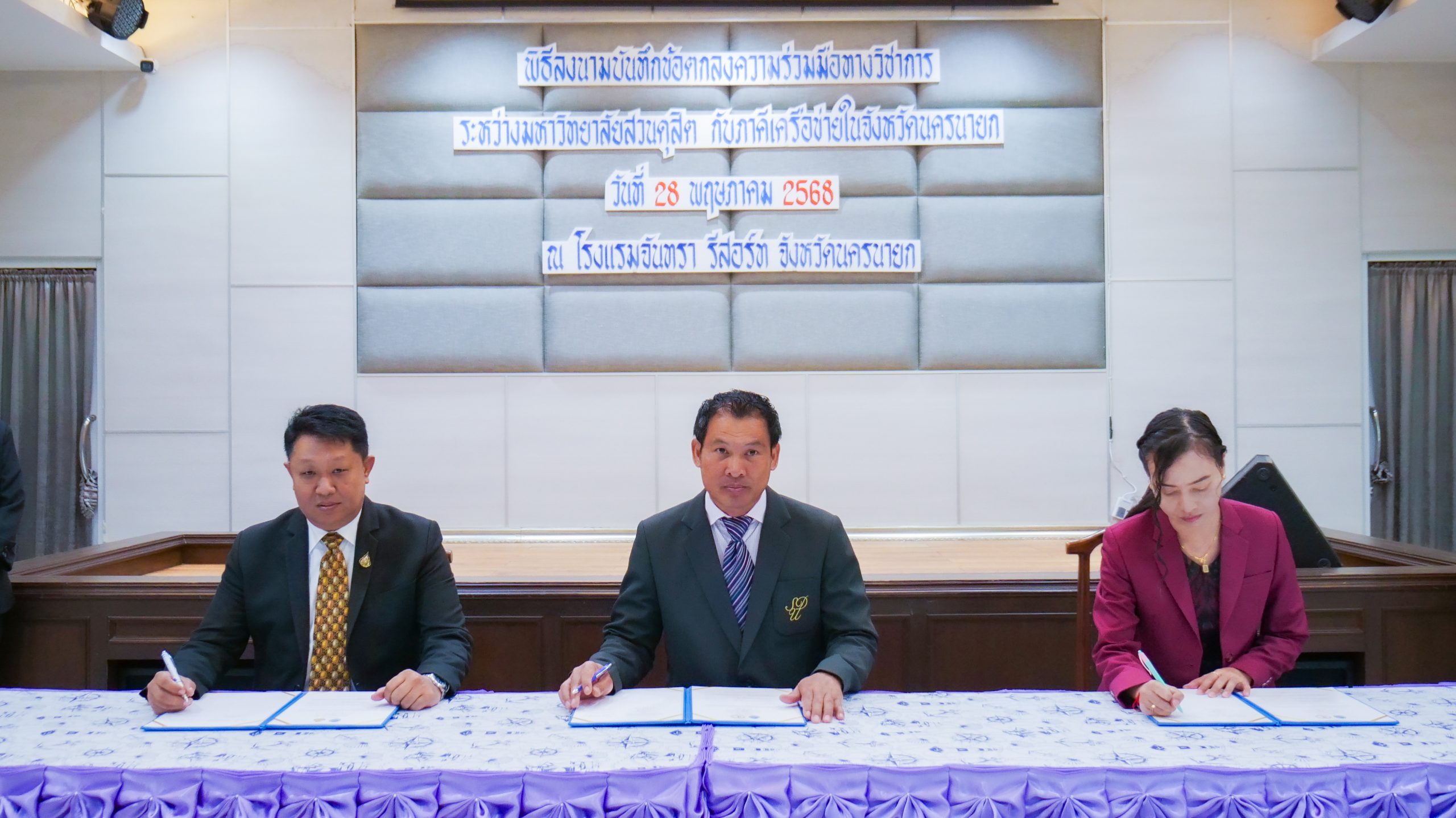 ในวันที่ 28 พฤษภาคม 2568 เวลา 09.00 – 12.00 น. มหาวิทยาลัยสวนดุสิต ศูนย์การศึกษานครนายก ได้ดำเนินการจัดทำบันทึกข้อตกลงความร่วมมือทางวิชาการ (Memorandom of Understanding : MOU) กับหน่วยงานภาคีเครือข่ายในจังหวัดนครนายก เพื่อสร้างความร่วมมือในการส่งเสริมสนับสนุนการศึกษาและร่วมมือในการส่งเสริมทางวิชาการ การพัฒนาการเรียนรู้อย่างมีคุณภาพที่หลากหลาย การวิจัย การฝึกอบรม การประชุมสัมมนา และการสนับสนุนให้ความร่วมมือทางสื่อการเรียนรู้และเทคโนโลยีที่เหมาะสม ณ ห้องราวินทรา โรงแรมจันทรารีสอร์ท จังหวัดนครนายก