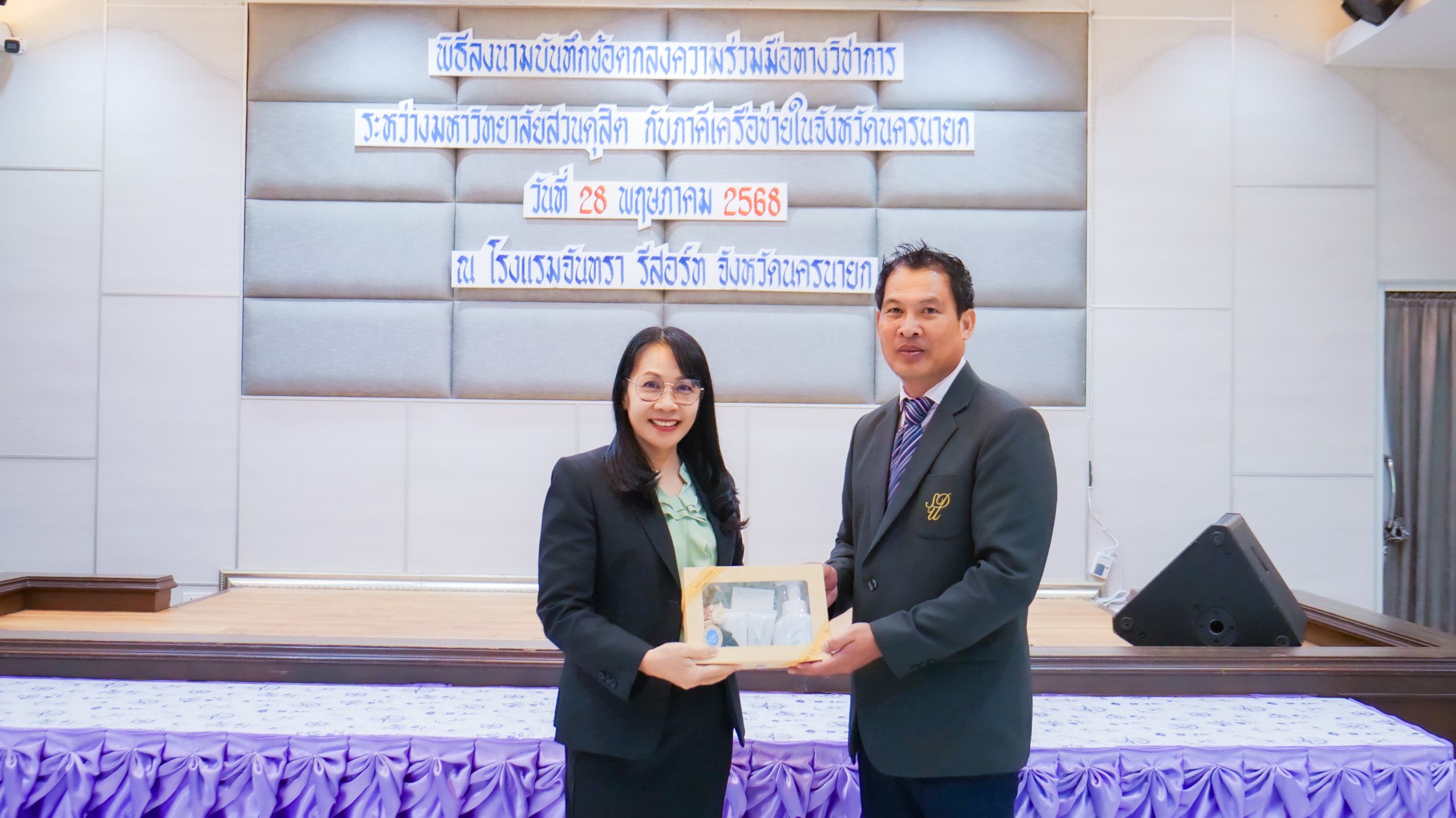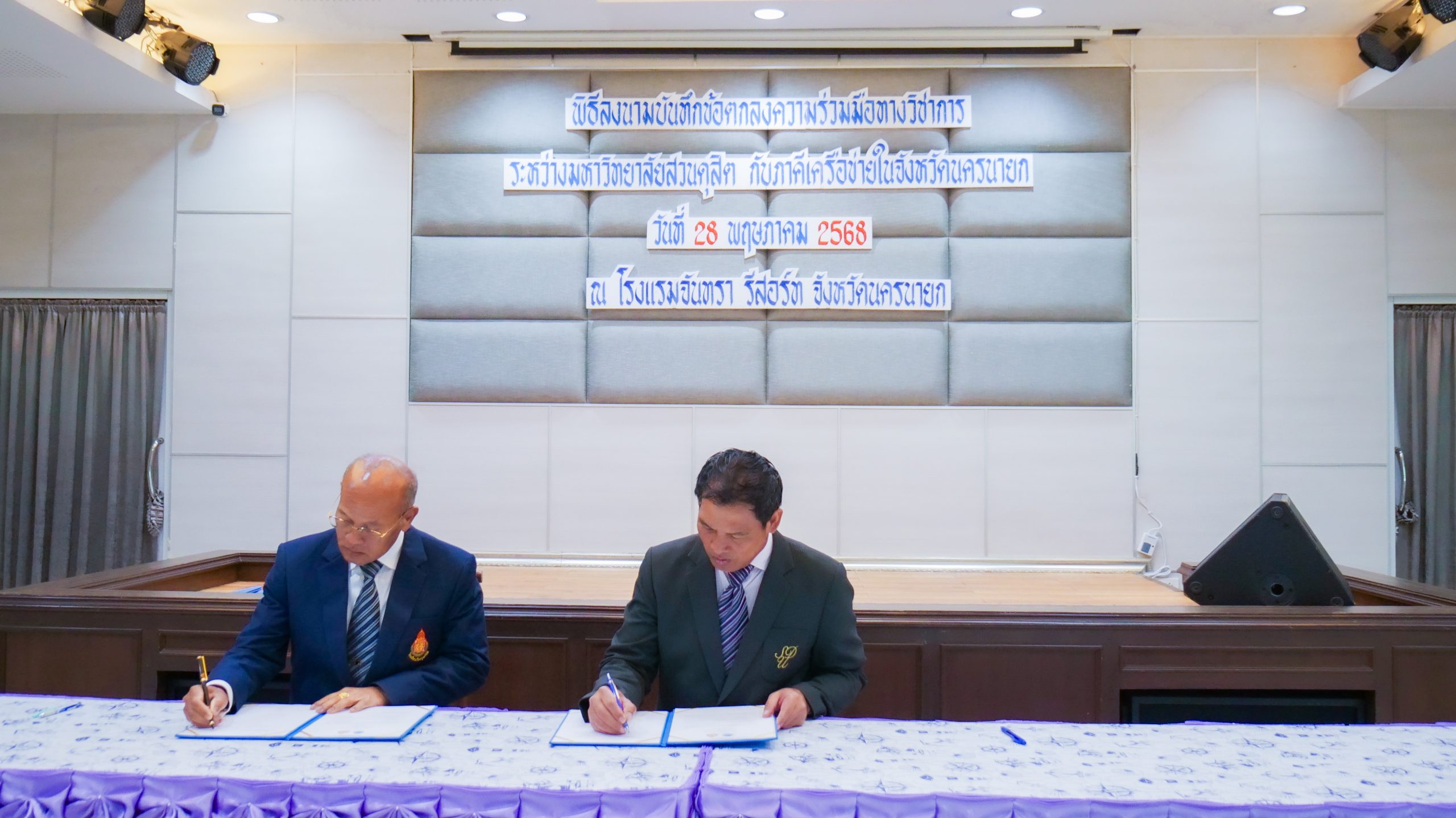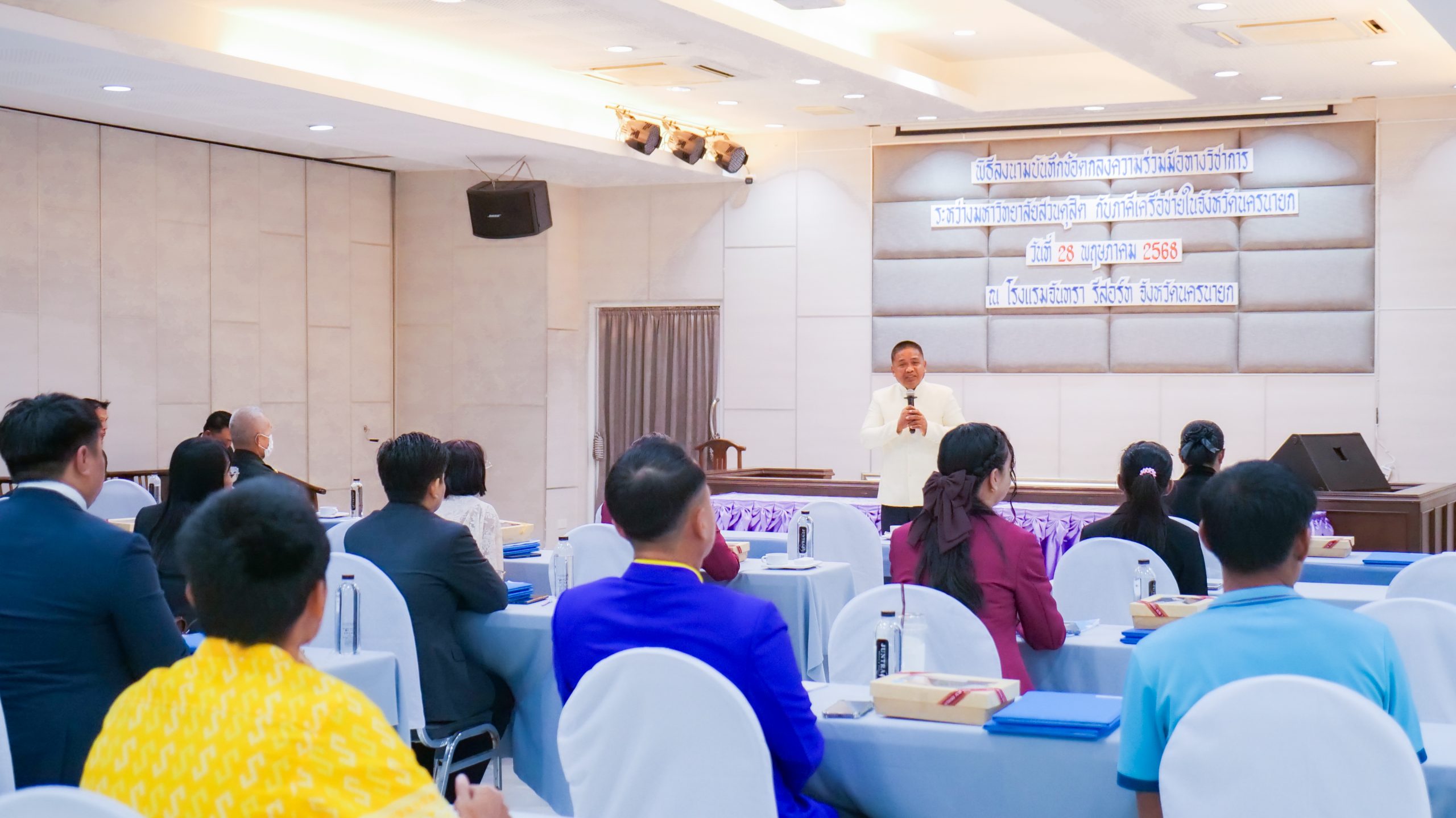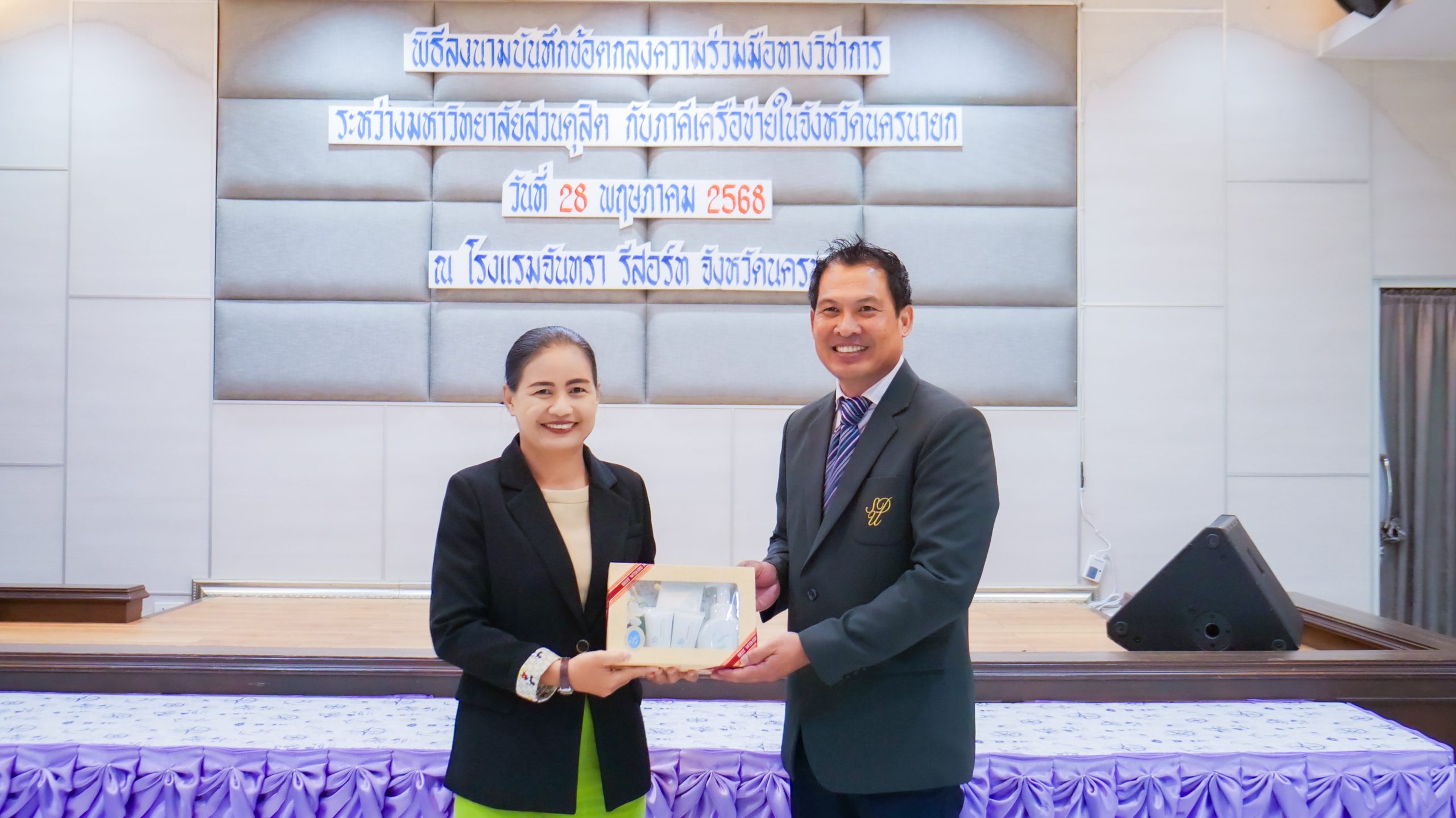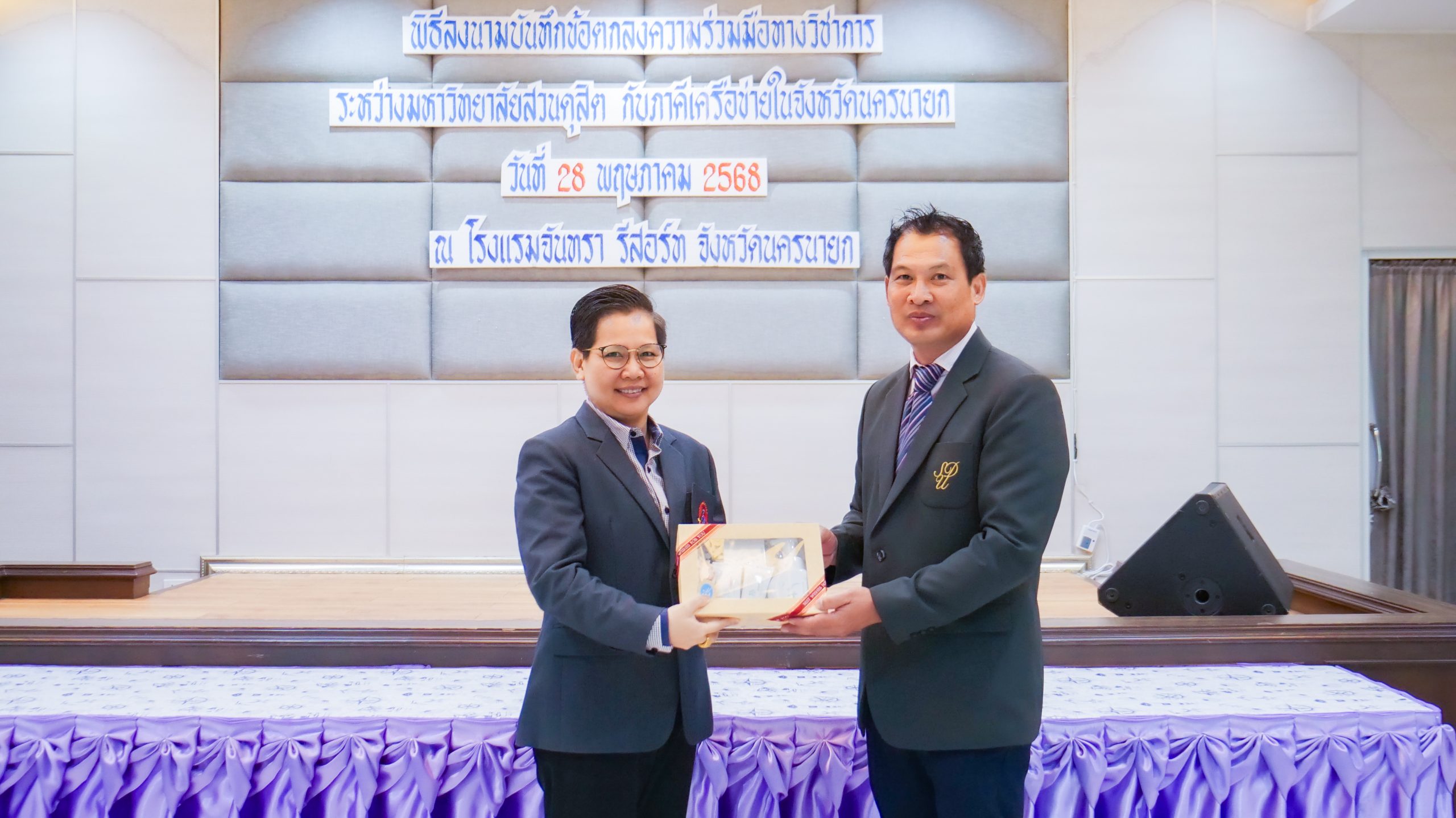 ในวันที่ 28 พฤษภาคม 2568 เวลา 09.00 – 12.00 น. มหาวิทยาลัยสวนดุสิต ศูนย์การศึกษานครนายก ได้ดำเนินการจัดทำบันทึกข้อตกลงความร่วมมือทางวิชาการ (Memorandom of Understanding : MOU) กับหน่วยงานภาคีเครือข่ายในจังหวัดนครนายก เพื่อสร้างความร่วมมือในการส่งเสริมสนับสนุนการศึกษาและร่วมมือในการส่งเสริมทางวิชาการ การพัฒนาการเรียนรู้อย่างมีคุณภาพที่หลากหลาย การวิจัย การฝึกอบรม การประชุมสัมมนา และการสนับสนุนให้ความร่วมมือทางสื่อการเรียนรู้และเทคโนโลยีที่เหมาะสม ณ ห้องราวินทรา โรงแรมจันทรารีสอร์ท จังหวัดนครนายก