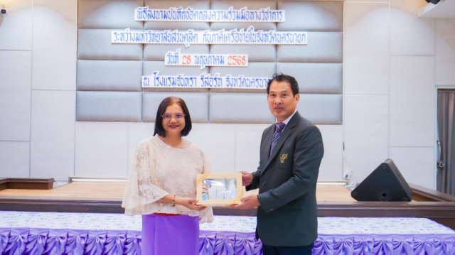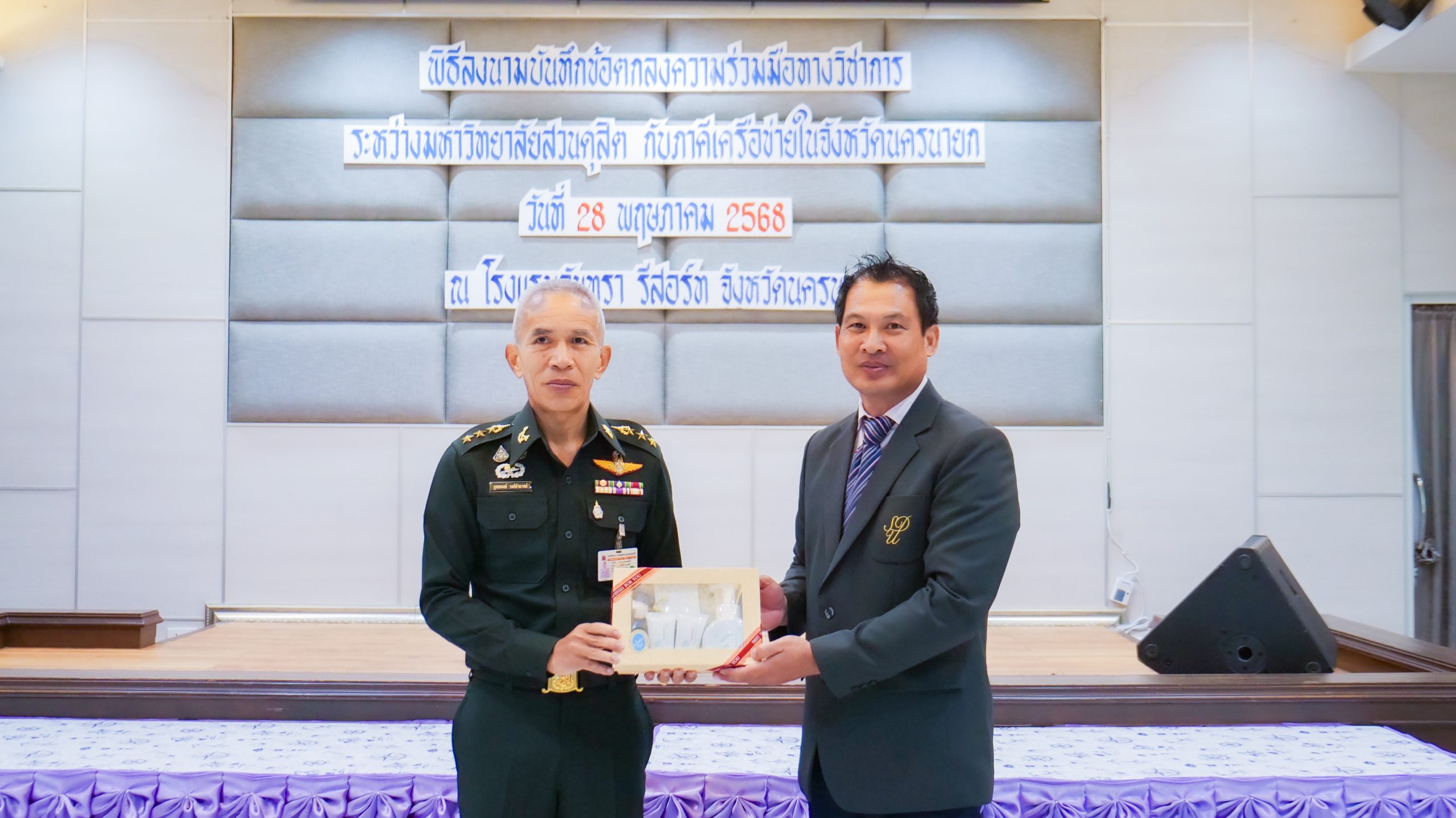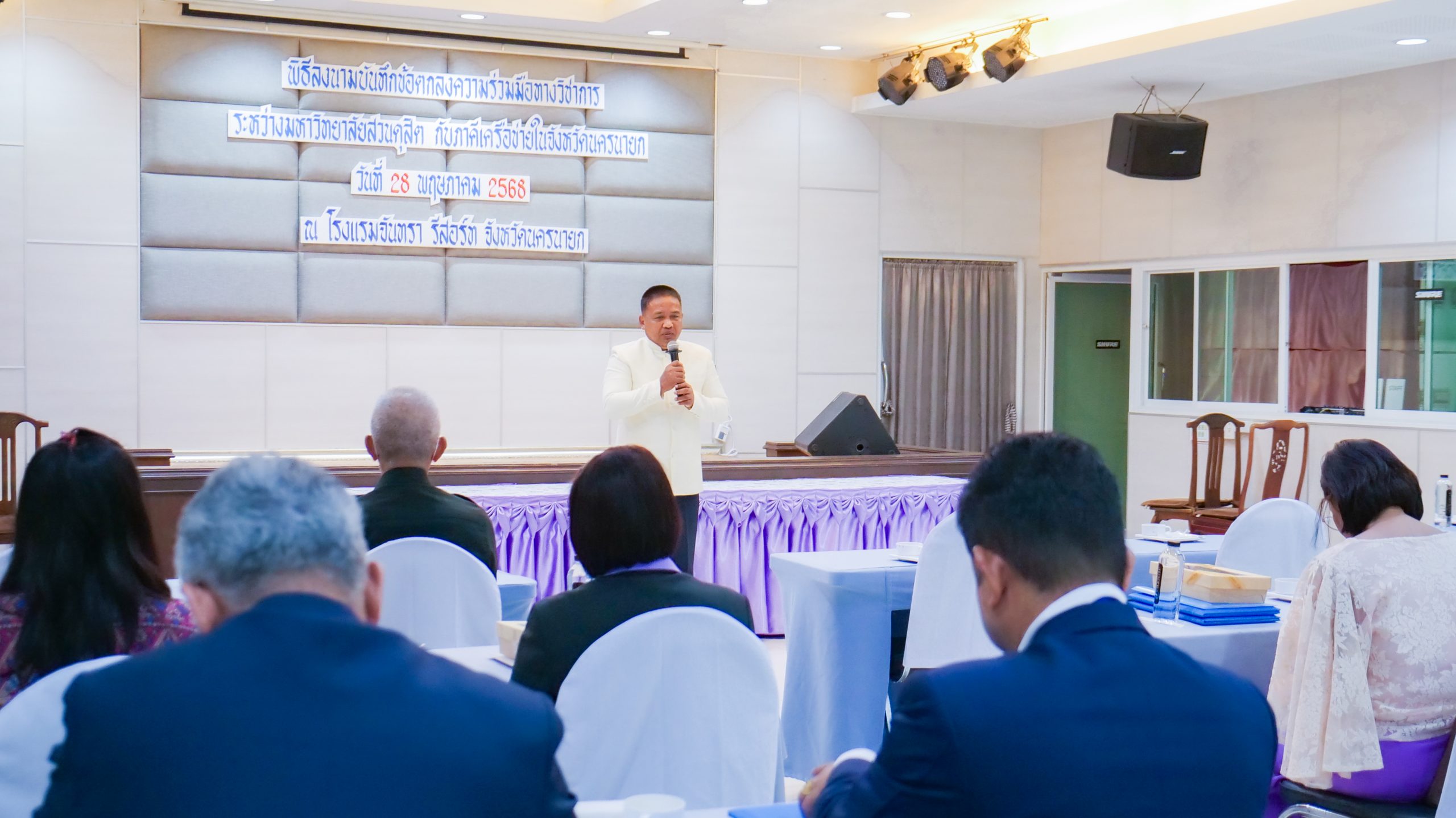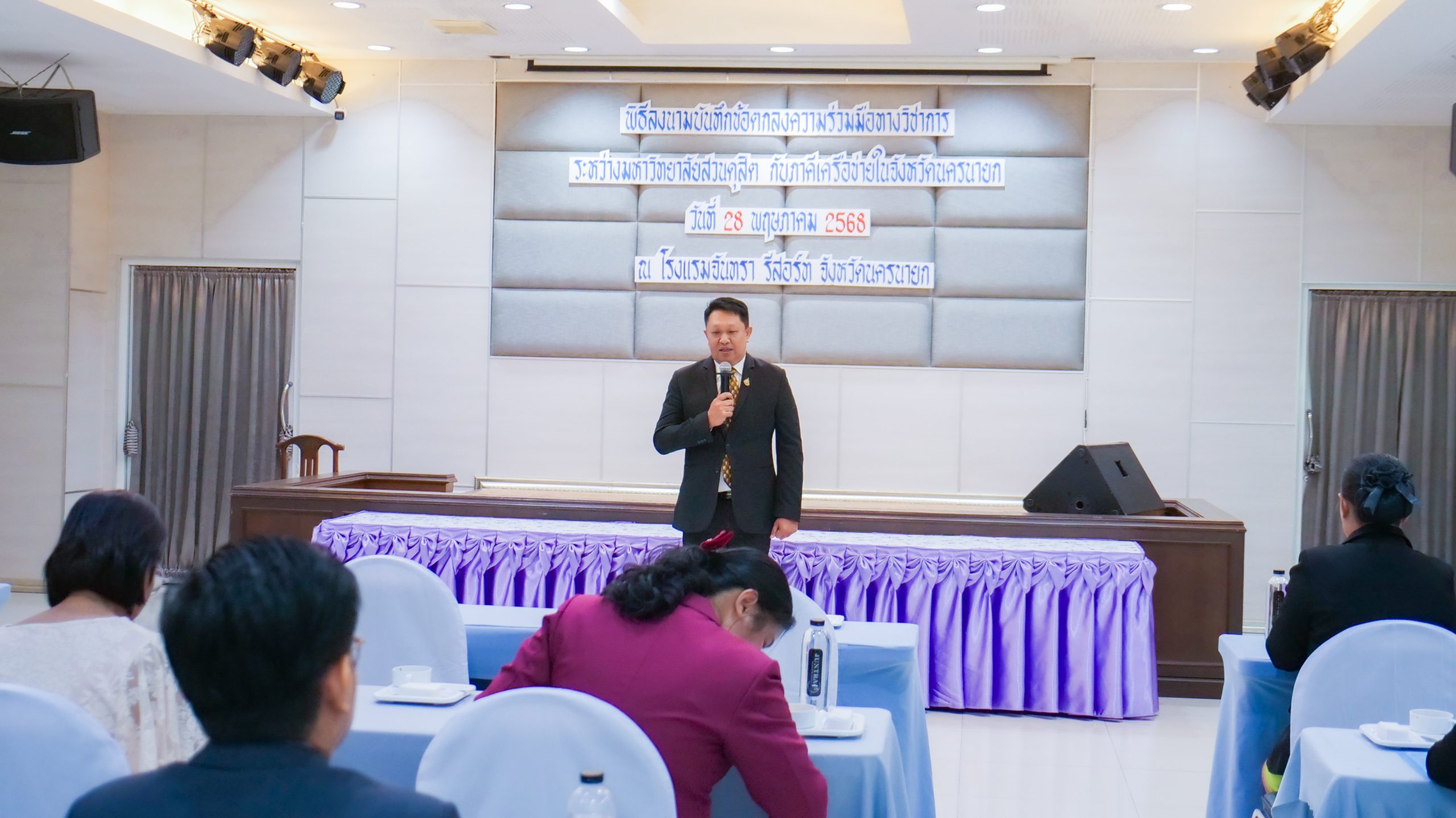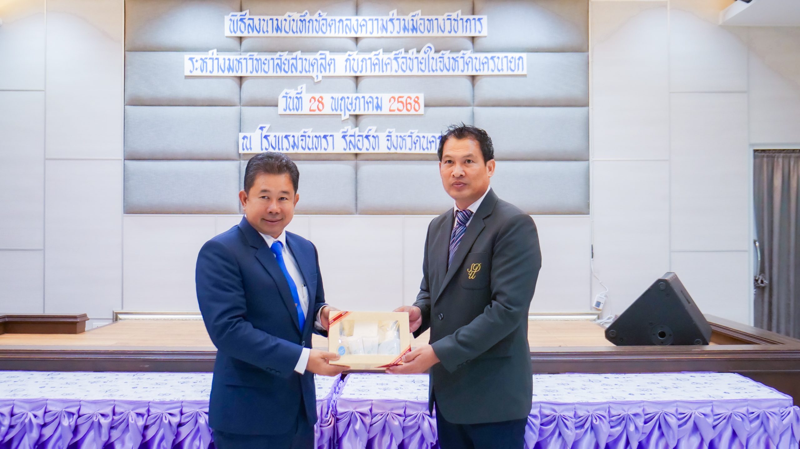 ในวันที่ 28 พฤษภาคม 2568 เวลา 09.00 – 12.00 น. มหาวิทยาลัยสวนดุสิต ศูนย์การศึกษานครนายก ได้ดำเนินการจัดทำบันทึกข้อตกลงความร่วมมือทางวิชาการ (Memorandom of Understanding : MOU) กับหน่วยงานภาคีเครือข่ายในจังหวัดนครนายก เพื่อสร้างความร่วมมือในการส่งเสริมสนับสนุนการศึกษาและร่วมมือในการส่งเสริมทางวิชาการ การพัฒนาการเรียนรู้อย่างมีคุณภาพที่หลากหลาย การวิจัย การฝึกอบรม การประชุมสัมมนา และการสนับสนุนให้ความร่วมมือทางสื่อการเรียนรู้และเทคโนโลยีที่เหมาะสม ณ ห้องราวินทรา โรงแรมจันทรารีสอร์ท จังหวัดนครนายก