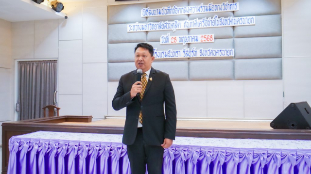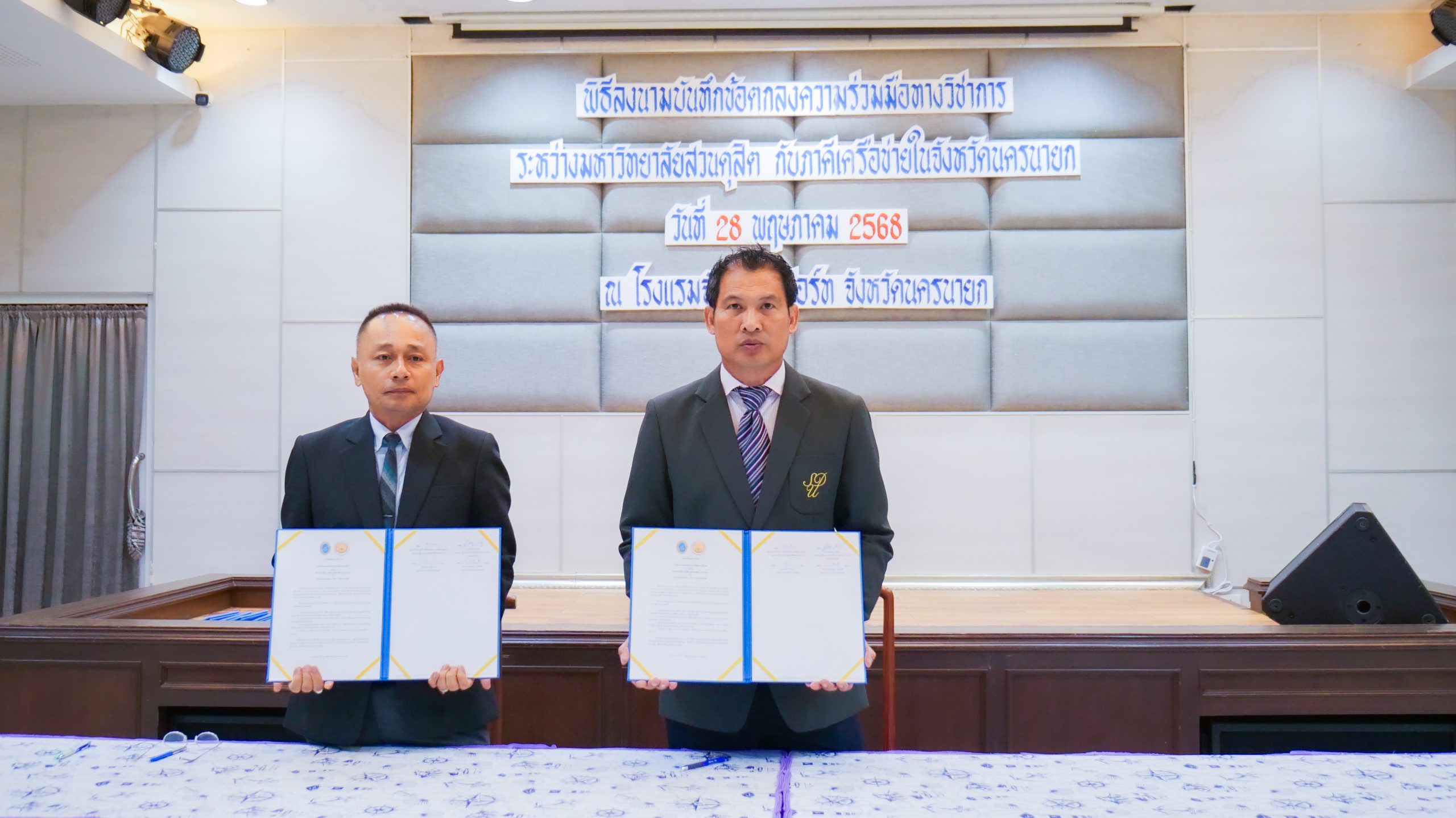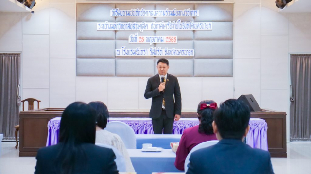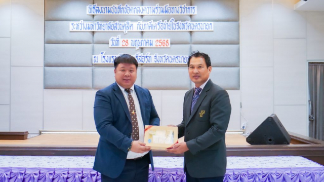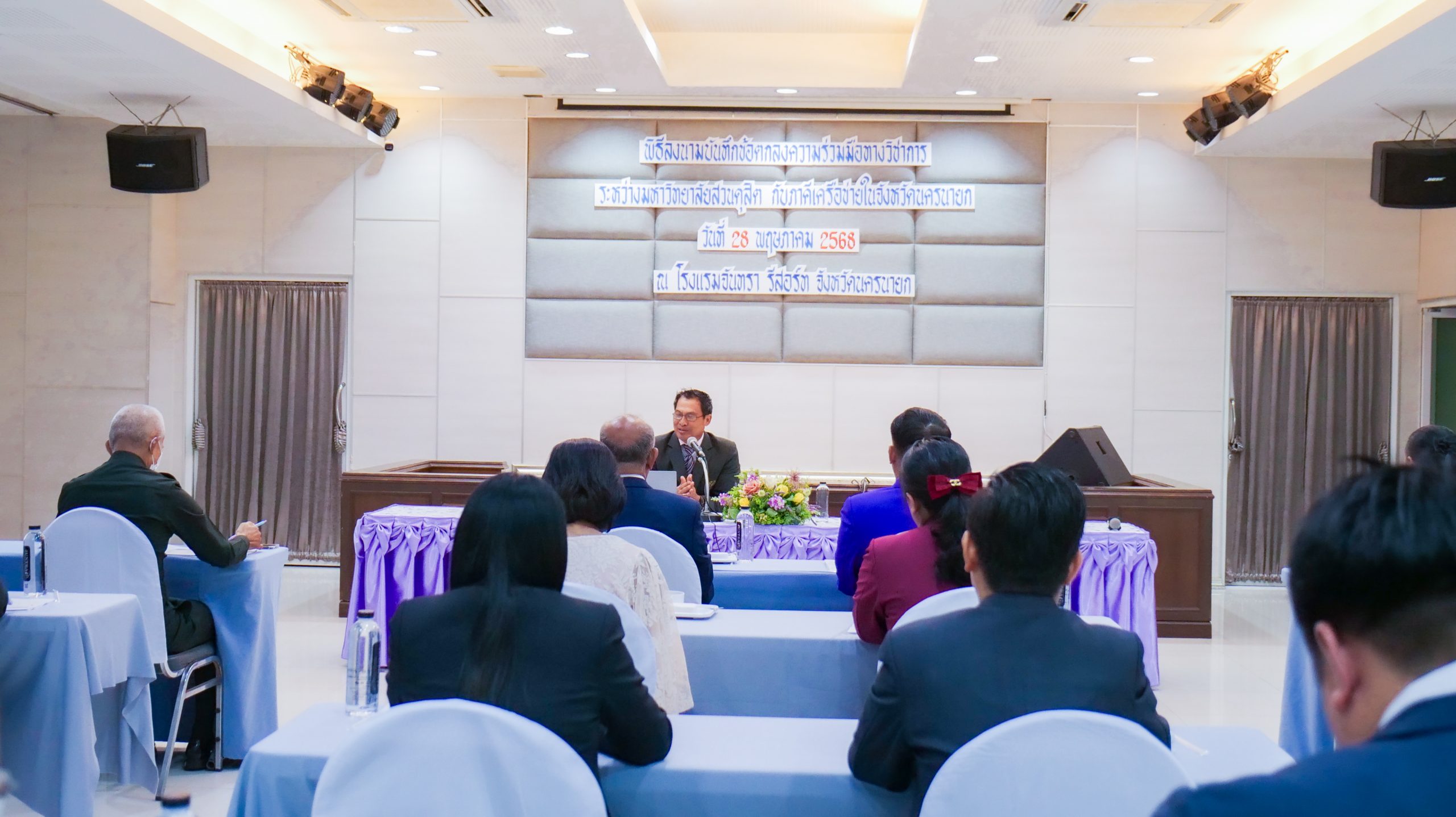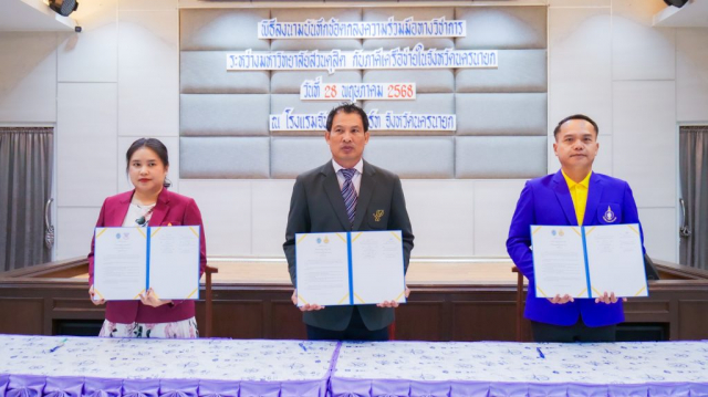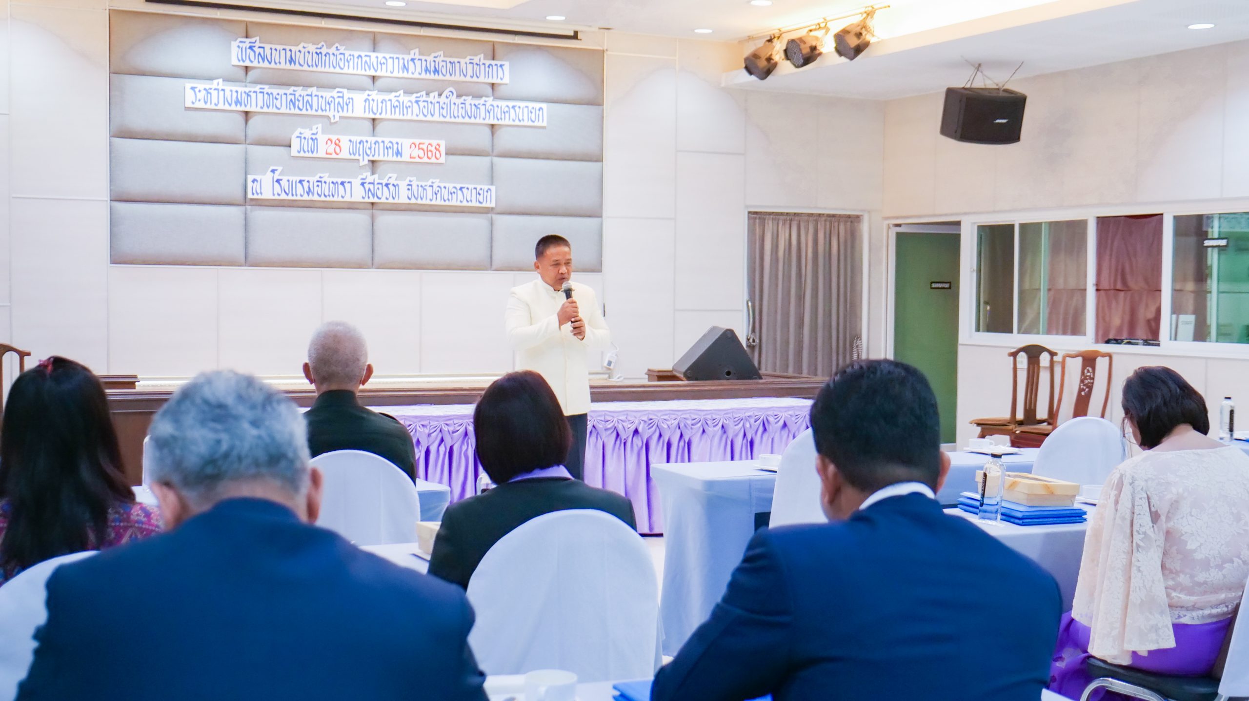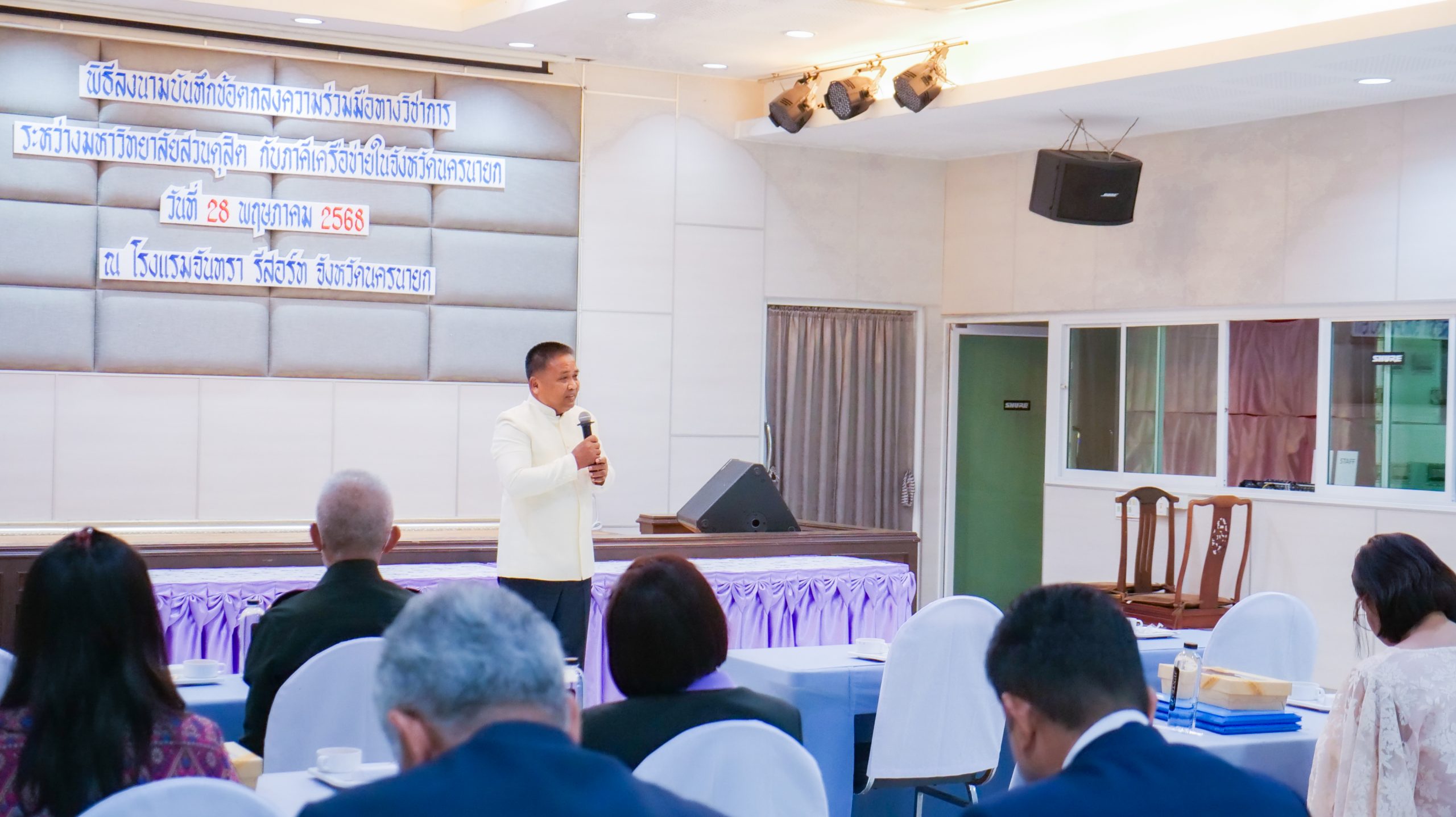 ในวันที่ 28 พฤษภาคม 2568 เวลา 09.00 – 12.00 น. มหาวิทยาลัยสวนดุสิต ศูนย์การศึกษานครนายก ได้ดำเนินการจัดทำบันทึกข้อตกลงความร่วมมือทางวิชาการ (Memorandom of Understanding : MOU) กับหน่วยงานภาคีเครือข่ายในจังหวัดนครนายก เพื่อสร้างความร่วมมือในการส่งเสริมสนับสนุนการศึกษาและร่วมมือในการส่งเสริมทางวิชาการ การพัฒนาการเรียนรู้อย่างมีคุณภาพที่หลากหลาย การวิจัย การฝึกอบรม การประชุมสัมมนา และการสนับสนุนให้ความร่วมมือทางสื่อการเรียนรู้และเทคโนโลยีที่เหมาะสม ณ ห้องราวินทรา โรงแรมจันทรารีสอร์ท จังหวัดนครนายก