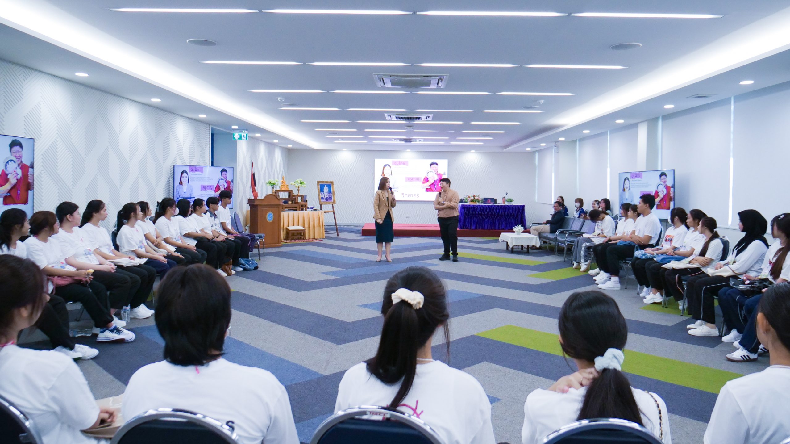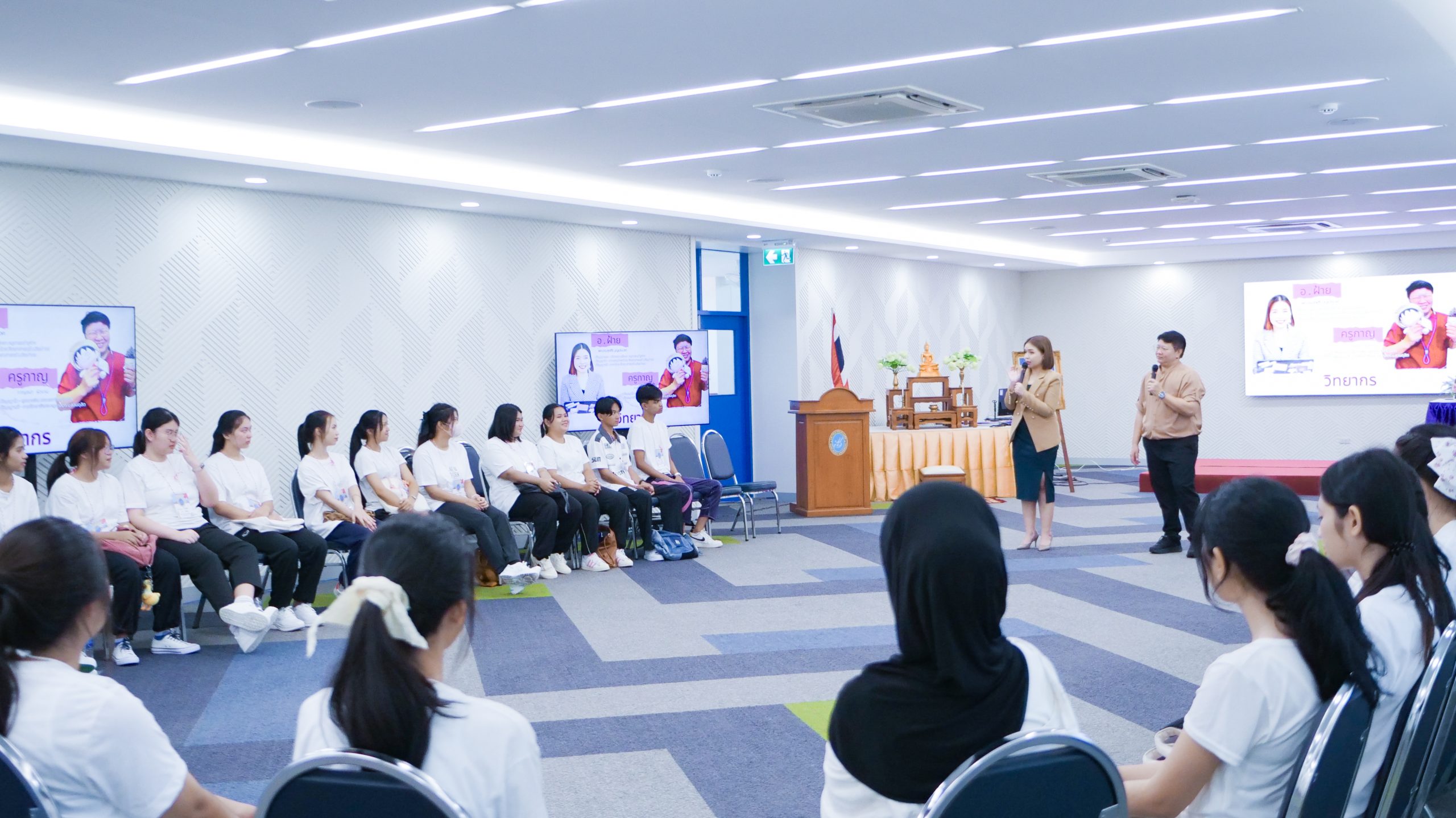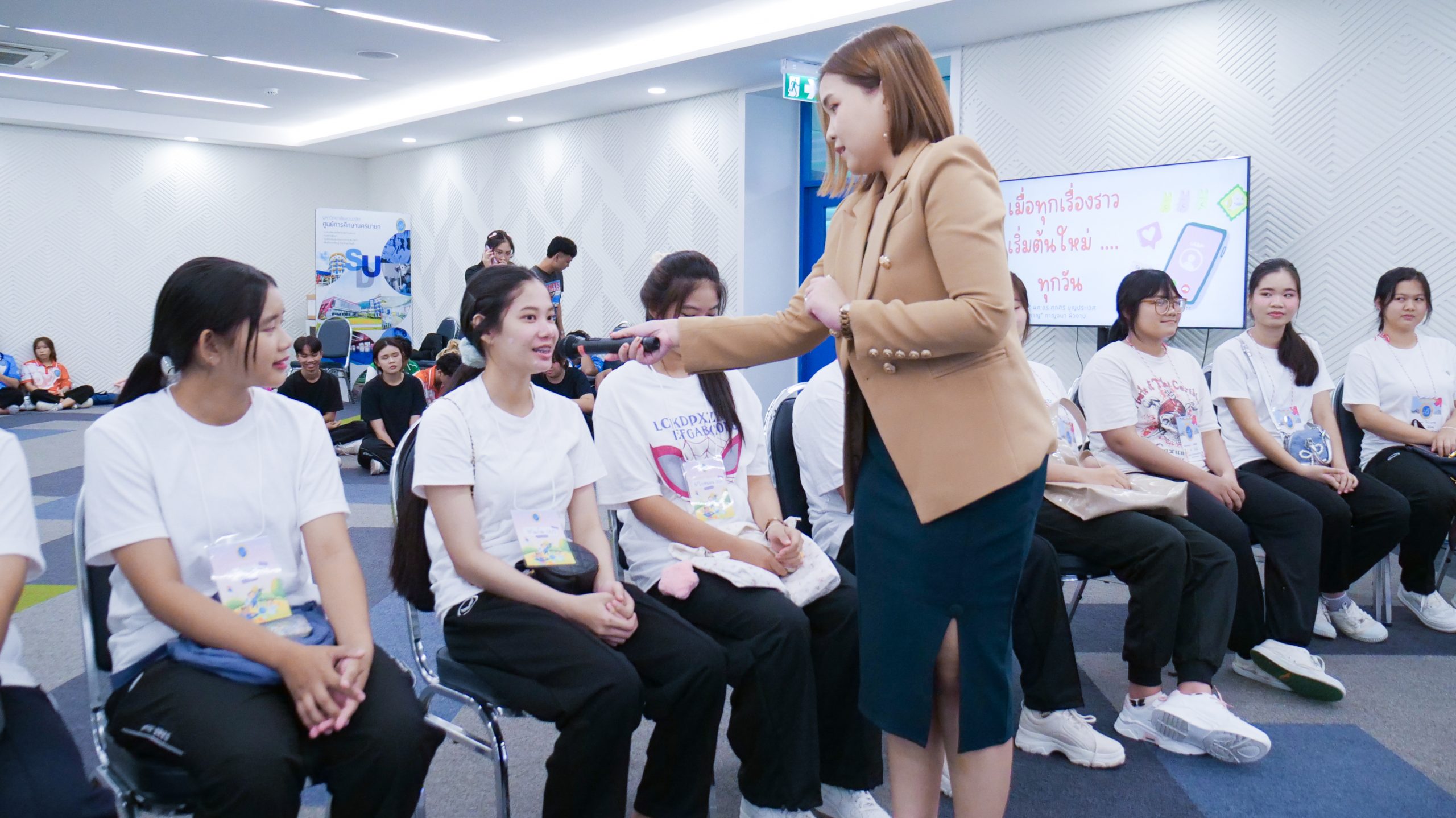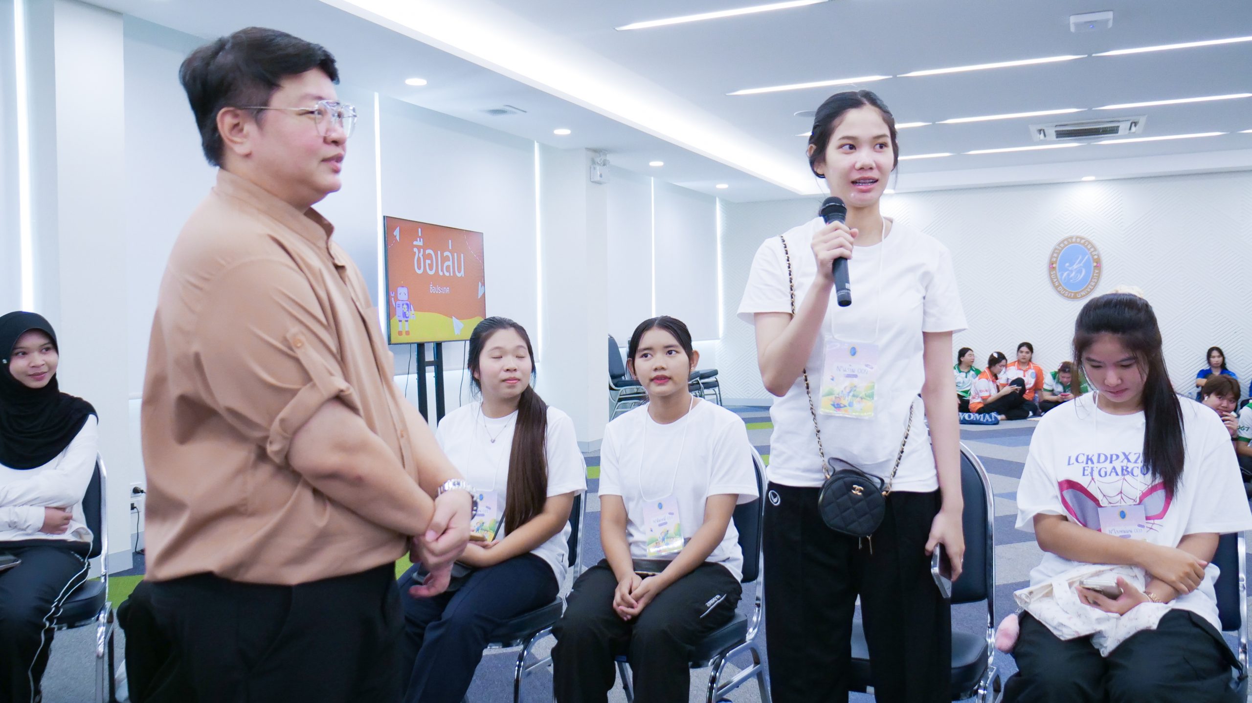 ในวันที่ 4 มิถุนายน 2568 เวลา 08.30 – 16.30 น. มหาวิทยาลัยสวนดุสิต ศูนย์การศึกษา นครนายก จัดโครงการเสริมสร้างศักยภาพนักศึกษา สู่ความเป็นครูมืออาชีพ ก้าวแรกสู่ มสด. ประจำปีการศึกษา 2568 กิจกรรมหัวข้อ“สื่อสารสร้างสัมพันธ์” ให้แก่นักศึกษาสาขาวิชาการศึกษาปฐมวัย และสาขาวิชาการประถมศึกษา ชั้นปีที่ 1 โดยมีผู้ช่วยศาสตราจารย์ ดร.ศุภศิริ บุญประเวศ ประธานหลักสูตรศิลปศาสตรบัณฑิต สาขาวิชาภาษาและการสื่อสาร และนางสาวกาญจนา ผิวงาม เจ้าหน้าที่จากคณะครุศาสตร์ มหาวิทยาลัยสวนดุสิต เป็นวิทยากร ณ ห้องประชุมเฟื่องฟ้า มหาวิทยาลัยสวนดุสิต ศูนย์การศึกษา นครนายก