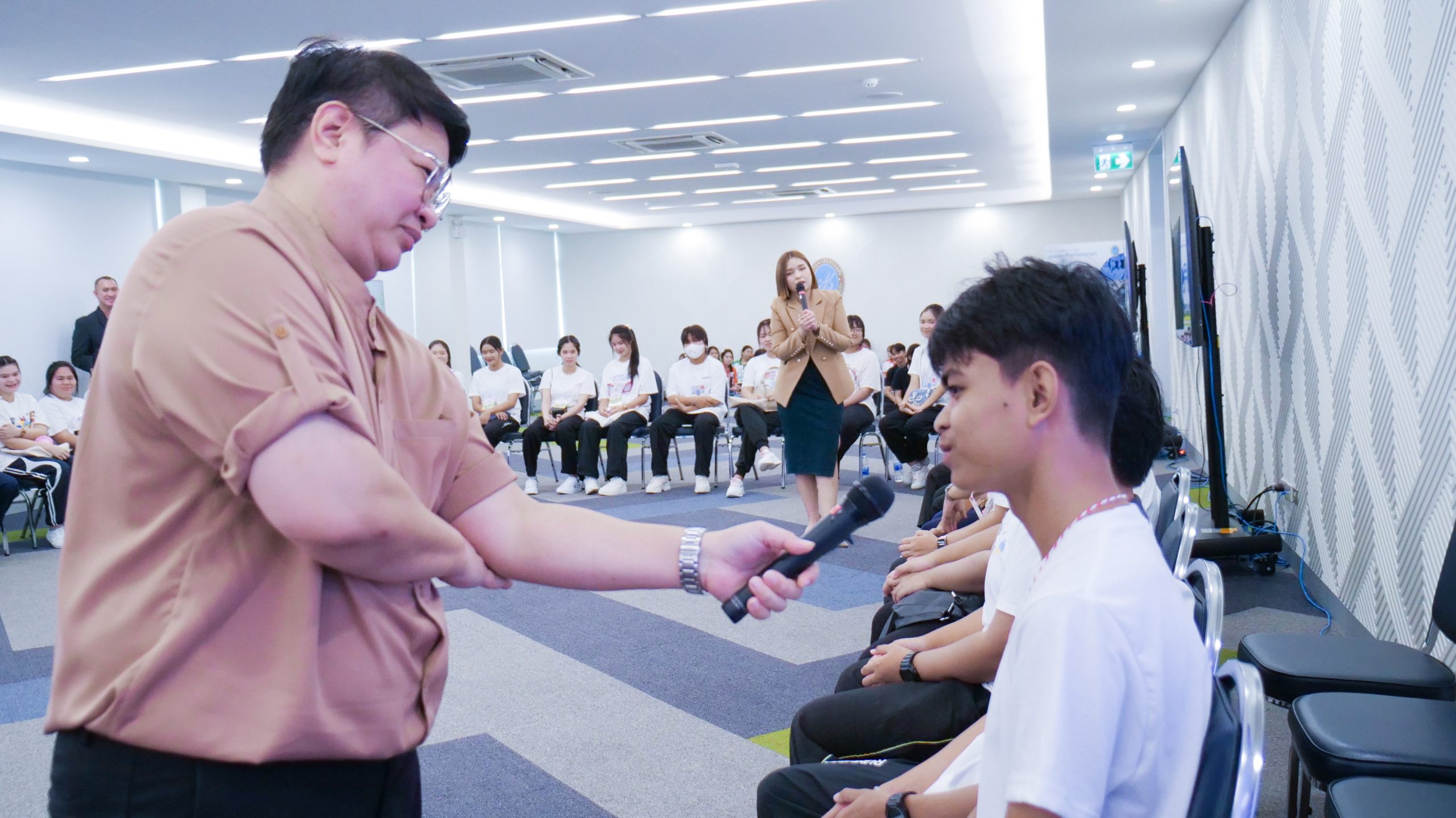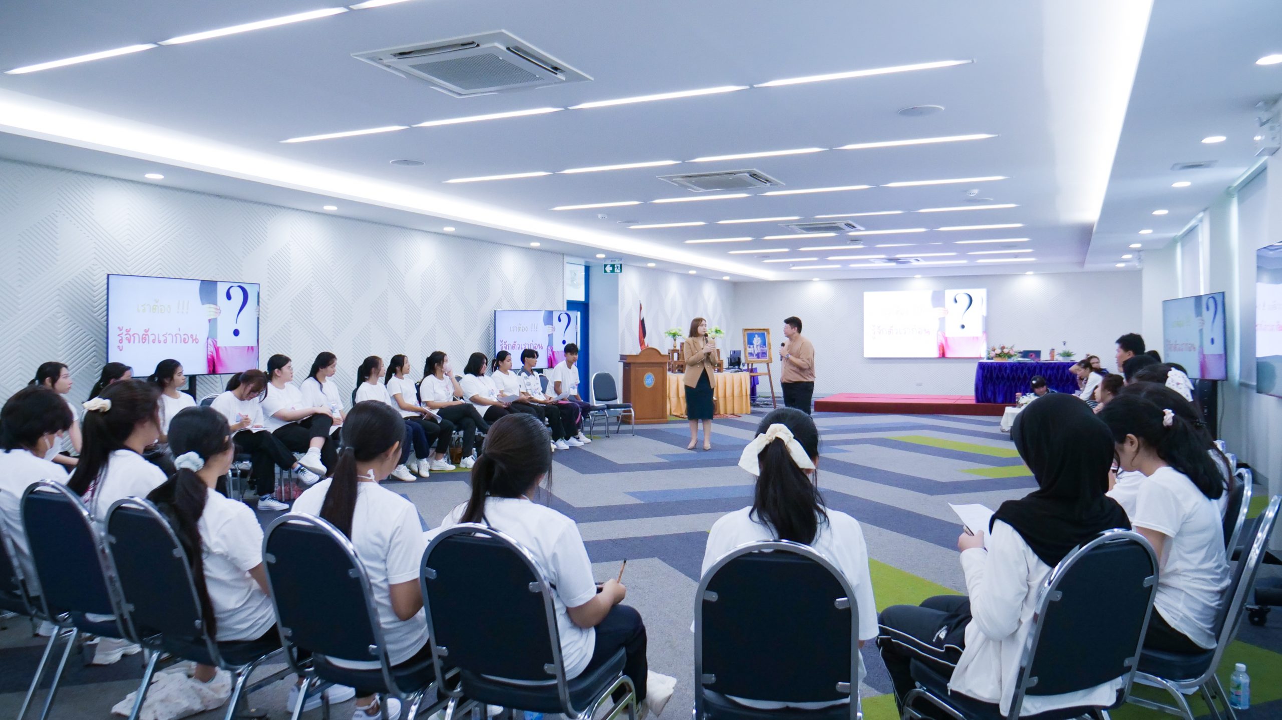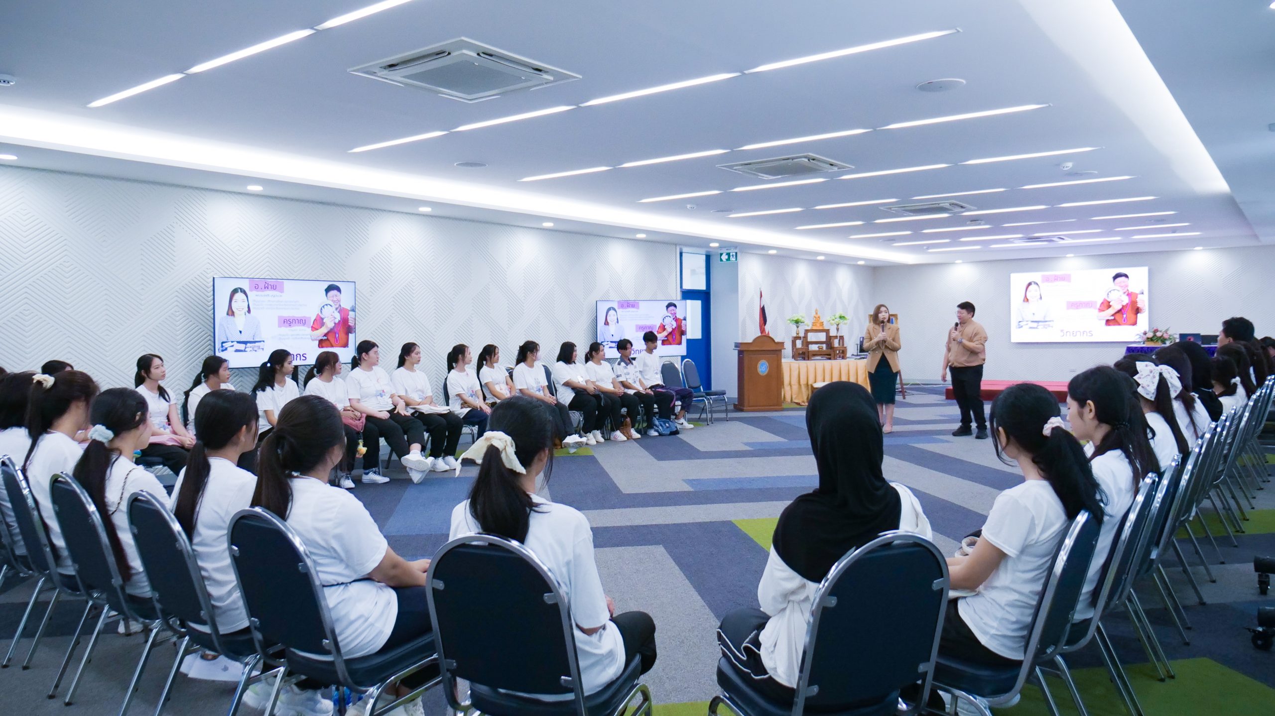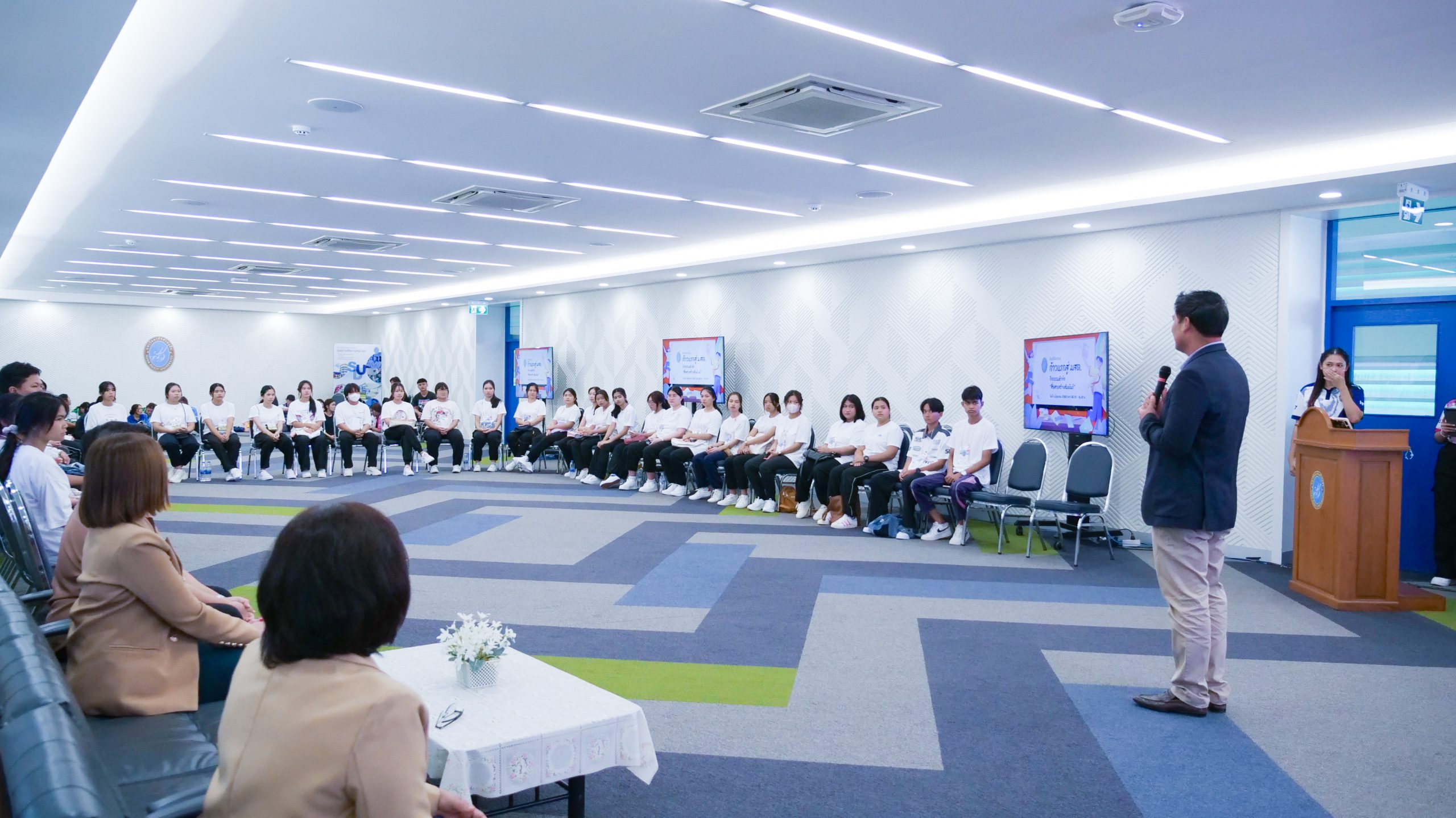 ในวันที่ 4 มิถุนายน 2568 เวลา 08.30 – 16.30 น. มหาวิทยาลัยสวนดุสิต ศูนย์การศึกษา นครนายก จัดโครงการเสริมสร้างศักยภาพนักศึกษา สู่ความเป็นครูมืออาชีพ ก้าวแรกสู่ มสด. ประจำปีการศึกษา 2568 กิจกรรมหัวข้อ“สื่อสารสร้างสัมพันธ์” ให้แก่นักศึกษาสาขาวิชาการศึกษาปฐมวัย และสาขาวิชาการประถมศึกษา ชั้นปีที่ 1 โดยมีผู้ช่วยศาสตราจารย์ ดร.ศุภศิริ บุญประเวศ ประธานหลักสูตรศิลปศาสตรบัณฑิต สาขาวิชาภาษาและการสื่อสาร และนางสาวกาญจนา ผิวงาม เจ้าหน้าที่จากคณะครุศาสตร์ มหาวิทยาลัยสวนดุสิต เป็นวิทยากร ณ ห้องประชุมเฟื่องฟ้า มหาวิทยาลัยสวนดุสิต ศูนย์การศึกษา นครนายก