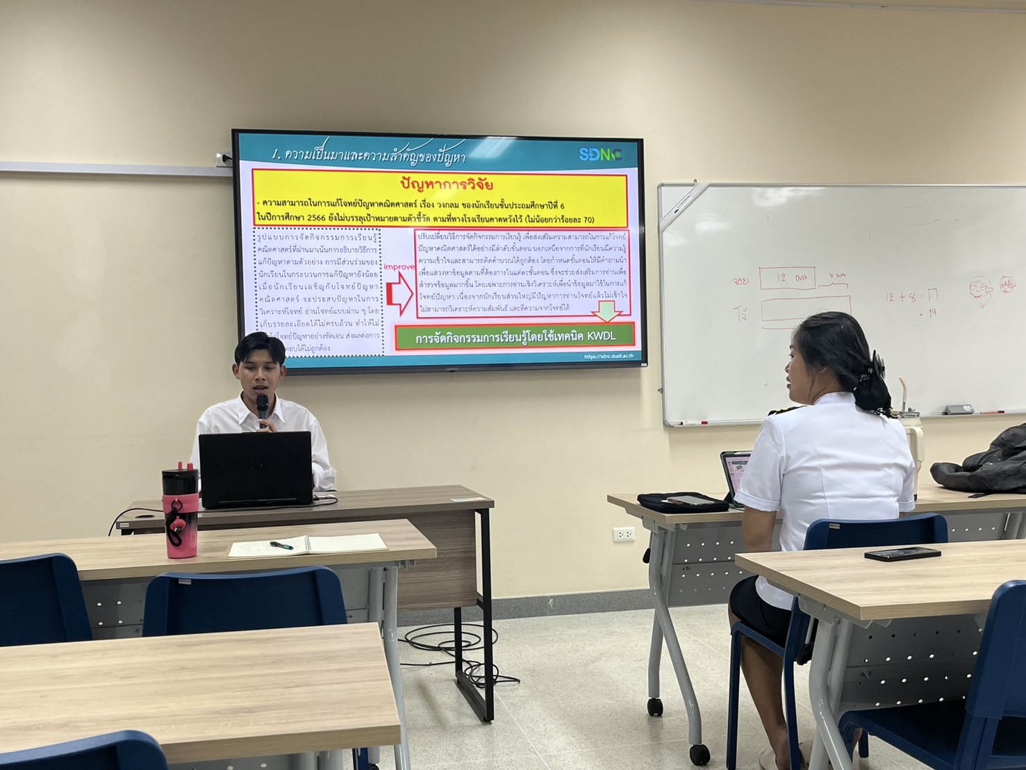 ในวันที่ 23 มิถุนายน 2568 เวลา 16.00 – 17.30 น หลักสูตรศึกษาศาสตรบัณฑิต สาขาวิชาการประถมศึกษา มหาวิทยาลัยสวนดุสิต ศูนย์การศึกษา นครนายก โดยอาจารย์ประจำหลักสูตร จัดประชุมให้คำปรึกษาและเตรียมความพร้อมเป็นครั้งที่ 4 ให้กับศิษย์เก่า ได้แก่ นายสิรดล สว่างศรี และนางสาวนภัสชนันพร บวรโชติทัพพะ ณ ห้อง 565 มหาวิทยาลัยสวนดุสิต ศูนย์การศึกษา นครนายก จังหวัดนครนายก ในการนำเสนอบทความวิจัย กลุ่มสาขาศึกษาศาสตร์ / งานวิจัยและนวัตกรรมเพื่อพัฒนาการเรียนการสอน ในงานประชุมวิชาการระดับชาติสวนดุสิต 2025 ครั้งที่ 7 “วิทยาศาสตร์และเทคโนโลยีเพื่อความยั่งยืน” ซึ่งจะจัดขึ้นในวันที่ 27 มิถุนายน 2568 ณ Hall 4 อาคารเฉลิมพระเกียรติ 50 พรรษา มหาวชิราลงกรณ (ถนนสรินธร) มหาวิทยาลัยสวนดุสิต
