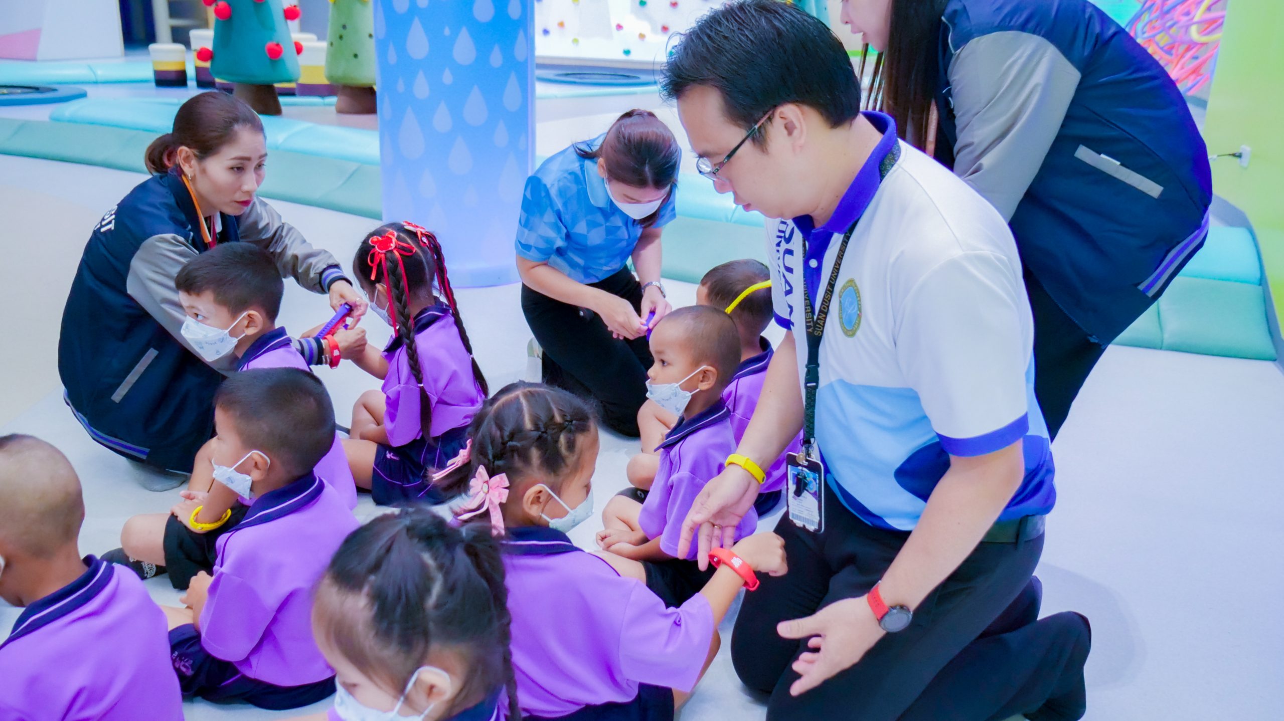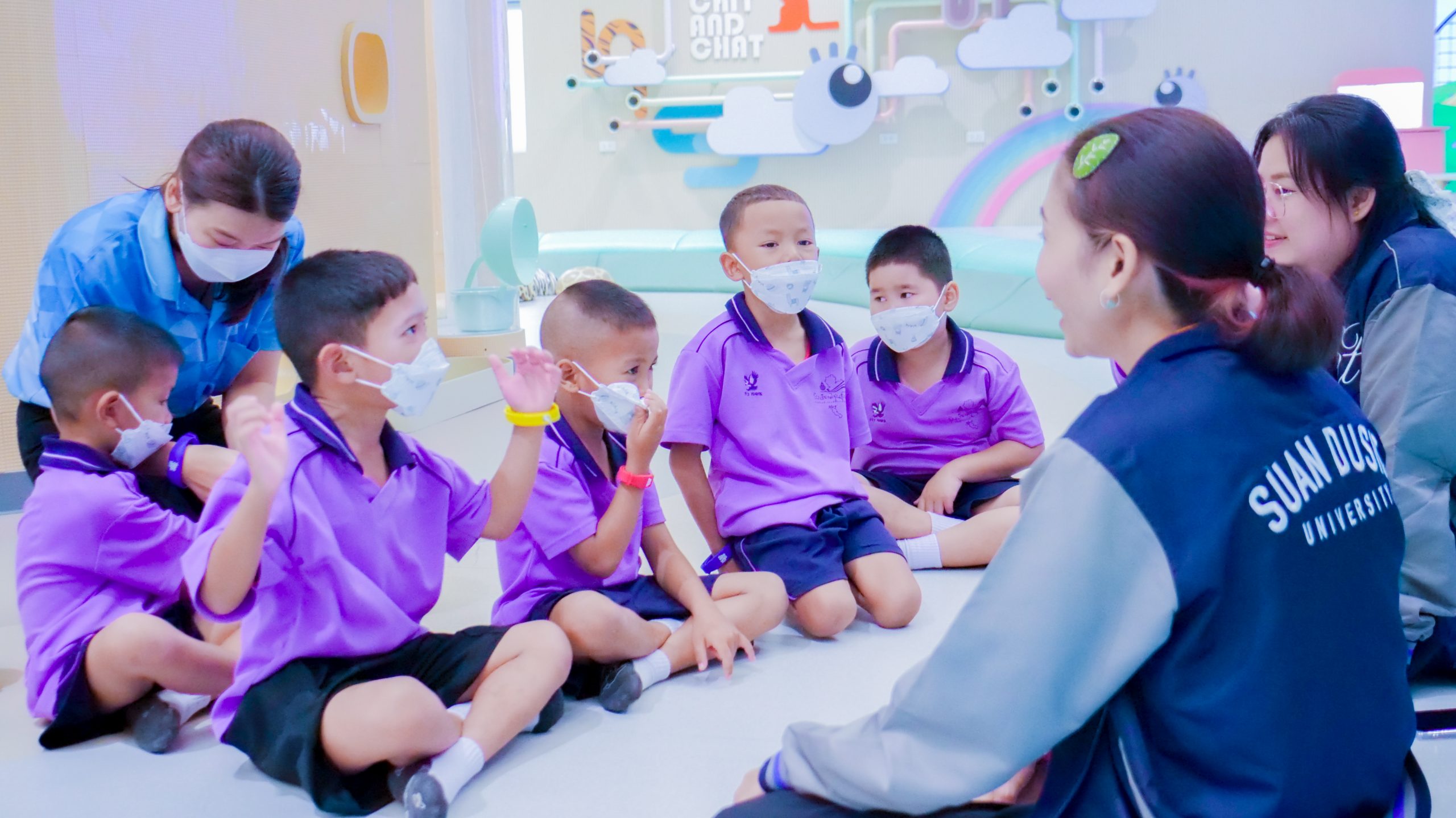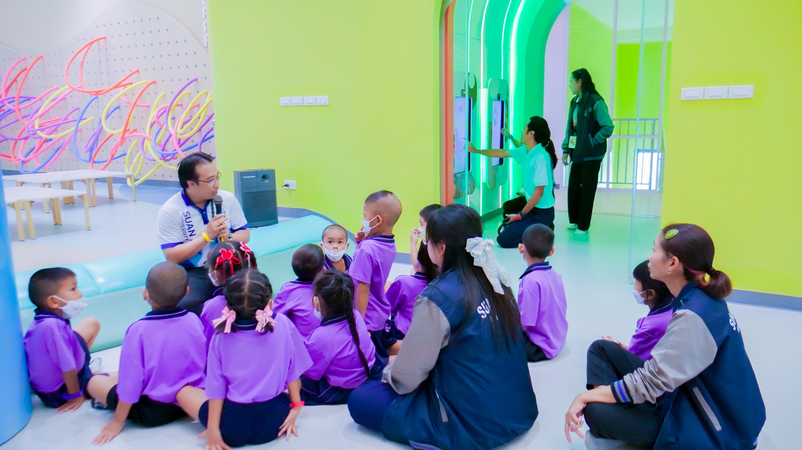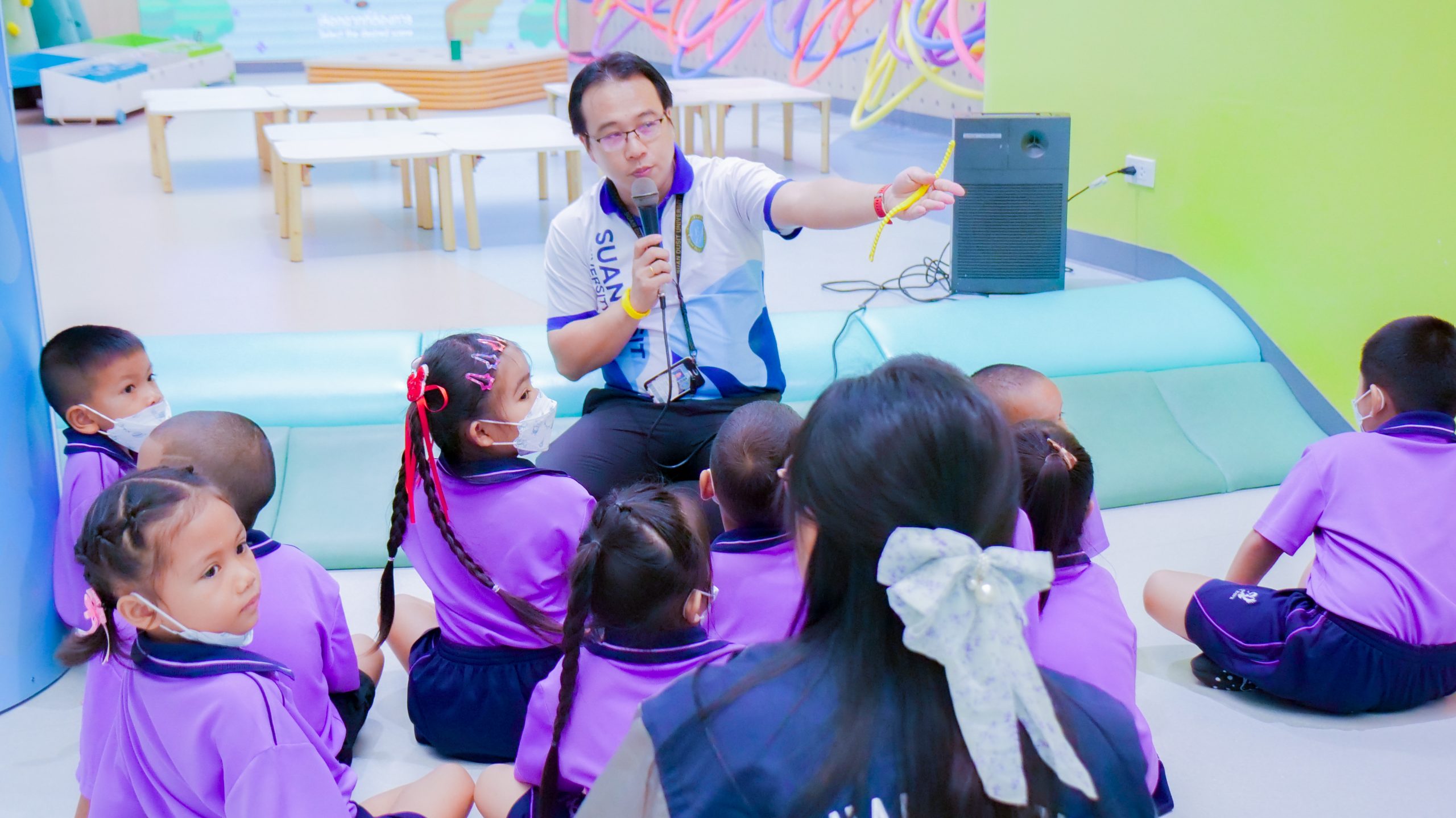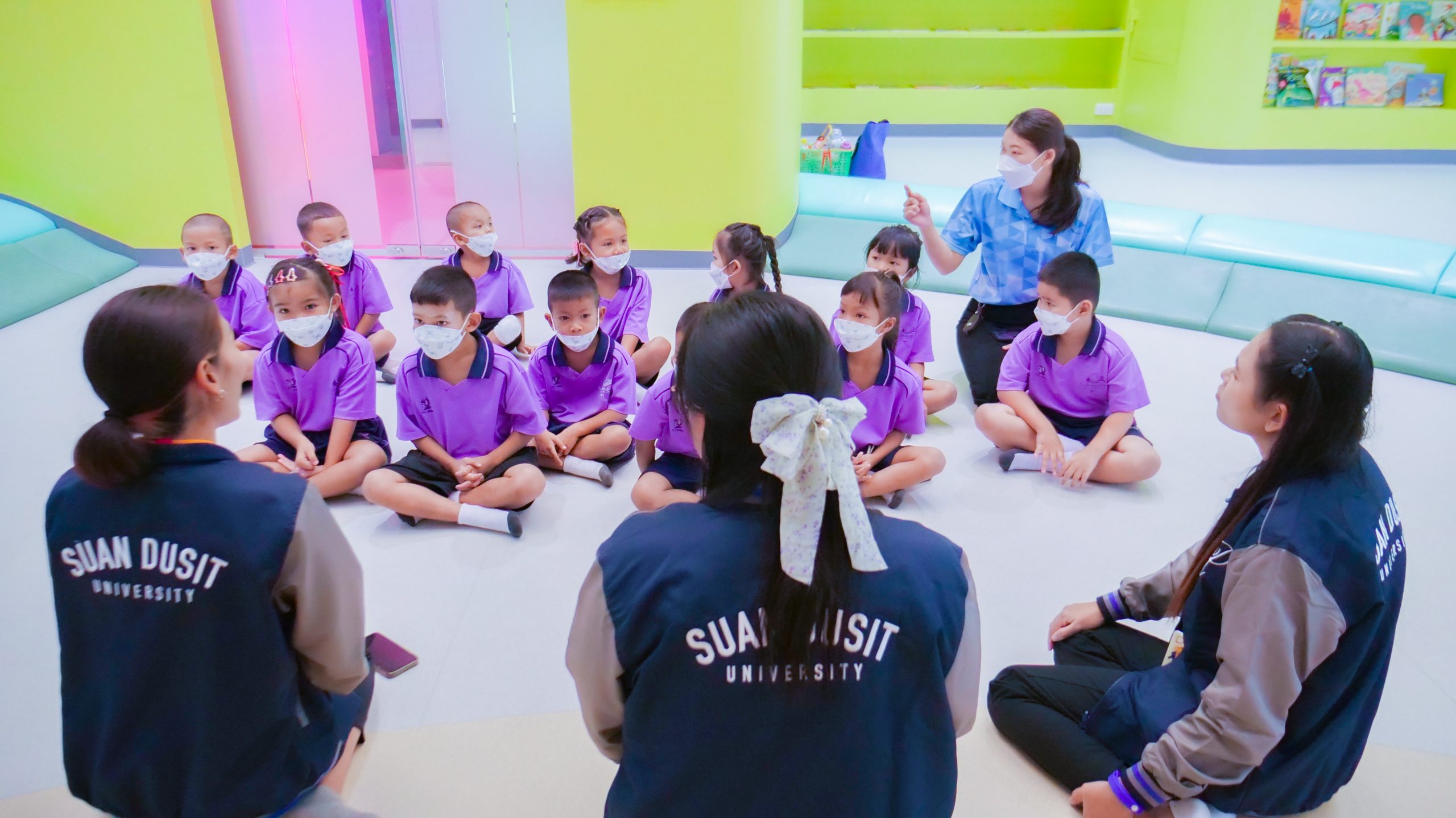 ในวันที่ 2 กรกฎาคม 2568 เวลา 09.00 – 11.00 น. โรงเรียนบ้านเขาส่องกล้อง อำเภอบ้านนา จังหวัดนครนายก นำนักเรียนระดับชั้นอนุบาล 3 จำนวน 13 คน เข้าศึกษาและทำกิจกรรม ณ แหล่งเรียนรู้เพื่อยกระดับคุณภาพชีวิตของเด็กระดับประถมศึกษา มหาวิทยาลัยสวนดุสิต ศูนย์การศึกษา นครนายก (LONG KID DO) โดยมีทีมวิทยากรจากอาจารย์ประจำหลักสูตรศึกษาศาสตรบัณฑิต สาขาวิชาการศึกษาปฐมวัย และบุคลากรมหาวิทยาลัยสวนดุสิต ศูนย์การศึกษา นครนายก เป็นผู้จัดกิจกรรมให้แก่นักเรียน โดยมีวัตถุประสงค์ เพื่อพัฒนาและส่งเสริมพหุปัญญาทั้ง 8 ด้าน ให้เด็กปฐมวัยมีพัฒนาการการเรียนรู้ที่เหมาะสมตามวัย และเป็นการเปิดประสบการณ์การเรียนรู้นอกห้องเรียน ให้แก่นักเรียนระดับปฐมวัย