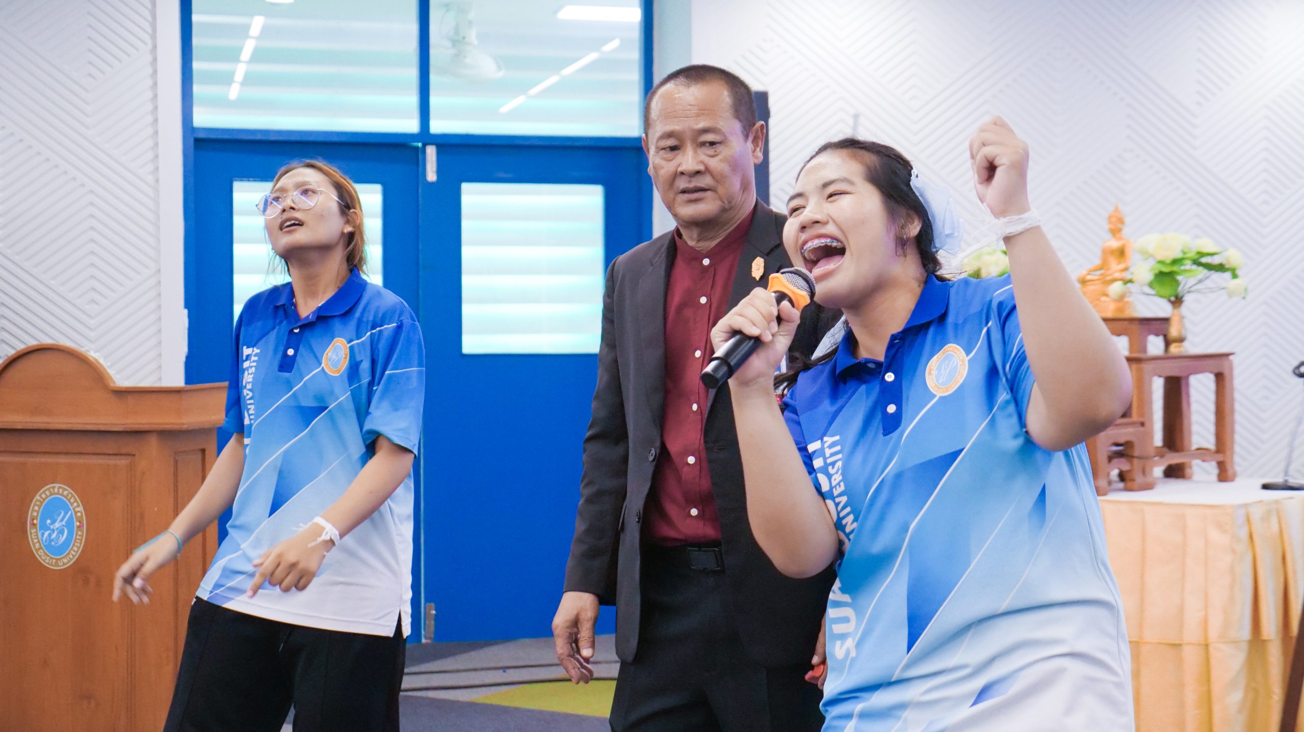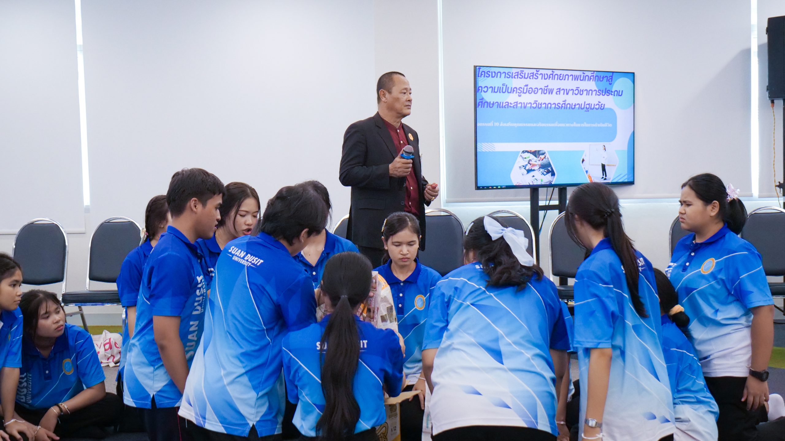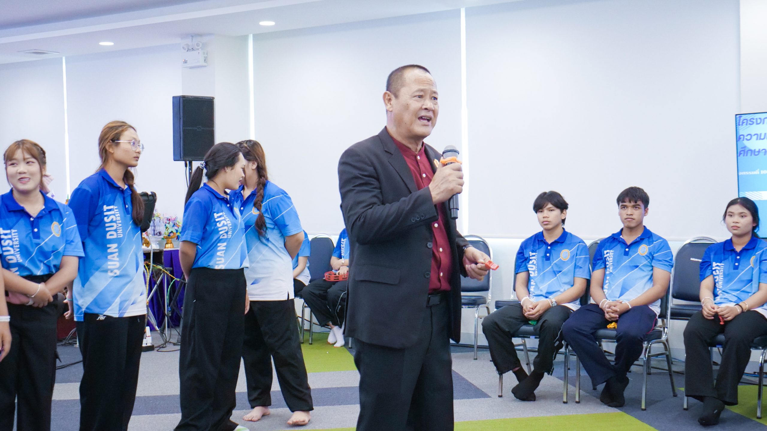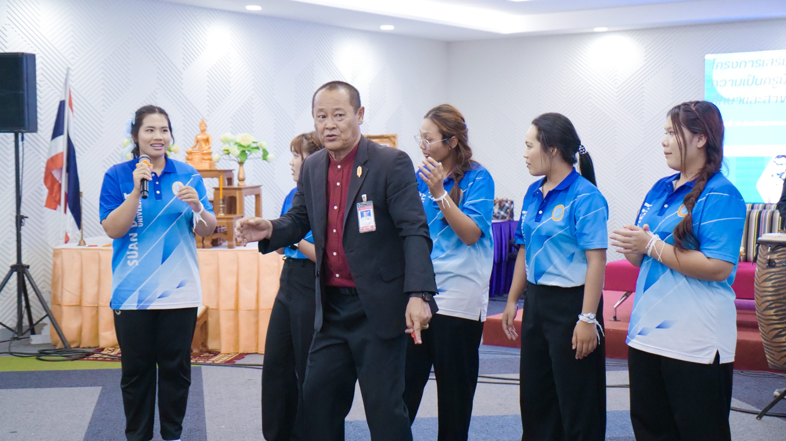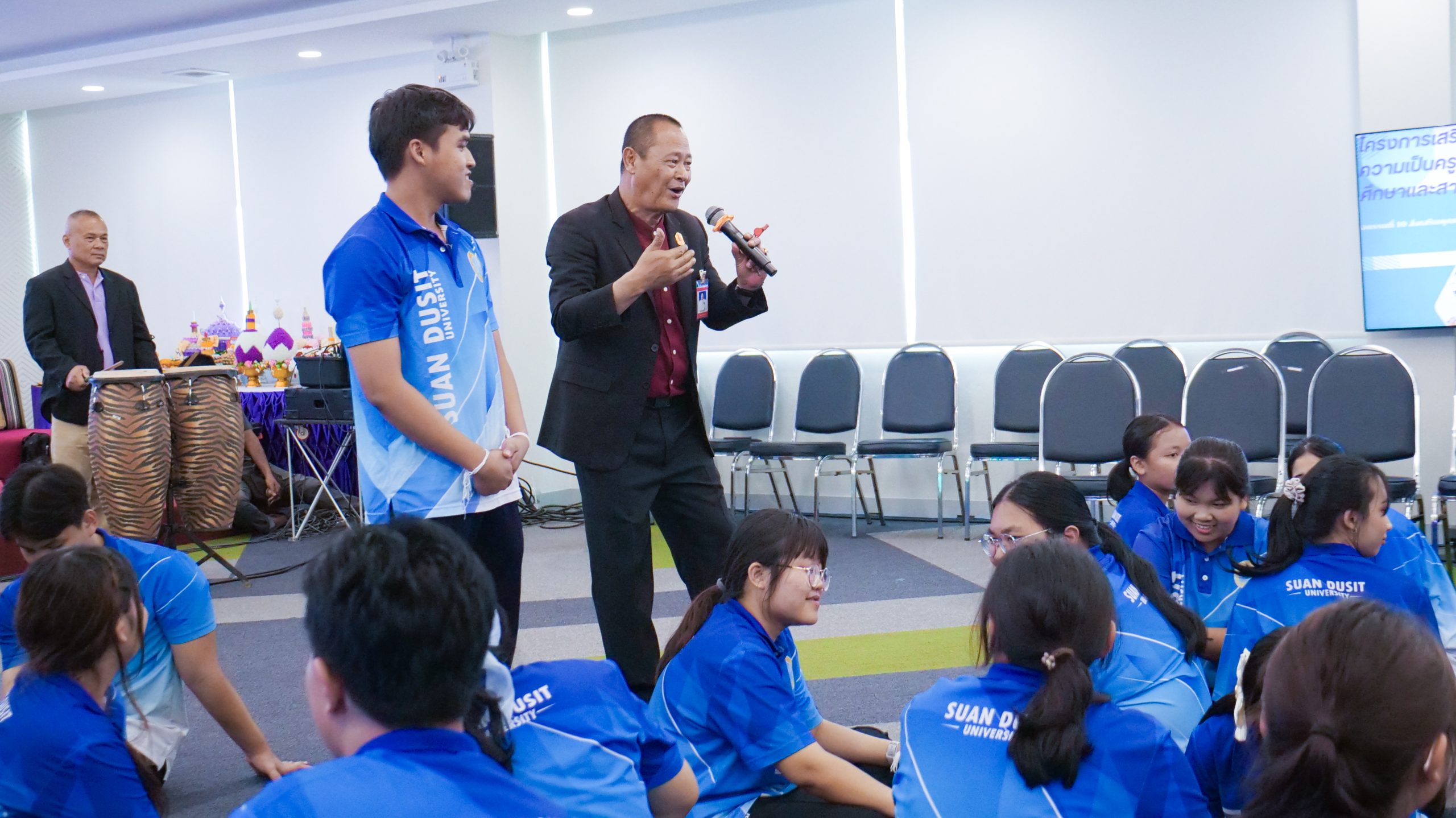ในวันที่ 17 กรกฎาคม 2568 เวลา 13.00 – 16.00 น. มหาวิทยาลัยสวนดุสิต ศูนย์การศึกษา นครนายก จัดกิจกรรมนันทนาการส่งเสริมคุณธรรมและจริยธรรมเพื่อแนวทางในการดำเนินชีวิตนักศึกษา โดยนายเดชา ตรีพรหมและคณะ เป็นวิทยากร และมีผู้ช่วยศาสตราจารย์ ว่าที่ร้อยตรี ดร.มงคลชัย บุญแก้ว ผู้อำนวยการศูนย์การศึกษา นครนายก อาจารย์ บุคลากรและนักศึกษาหลักสูตรการศึกษาปฐมวัย และหลักสูตรการประถมศึกษาเข้าร่วมกิจกรรม ณ ห้องประชุมเฟื่องฟ้า มหาวิทยาลัยสวนดุสิต ศูนย์การศึกษา นครนายก