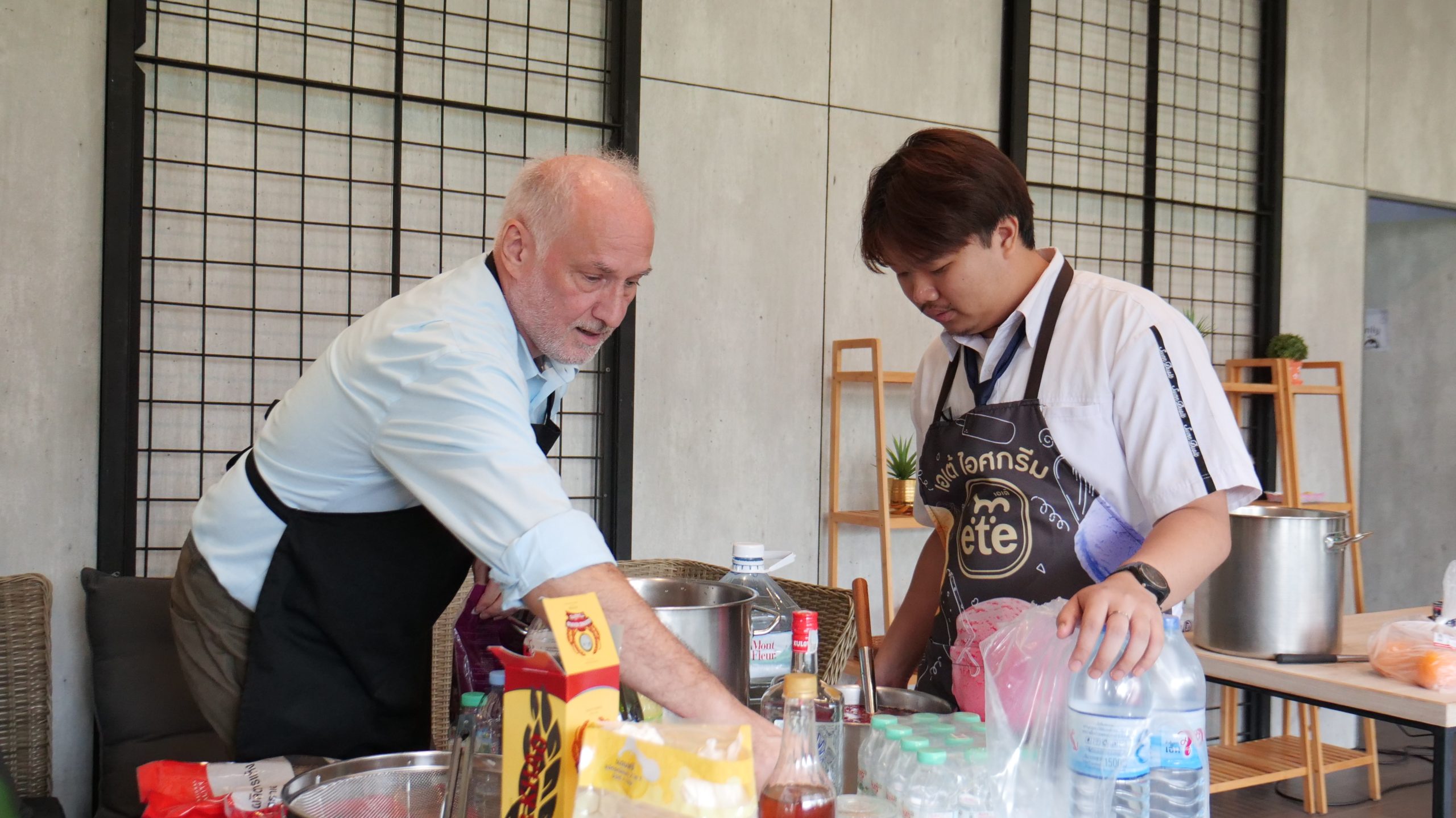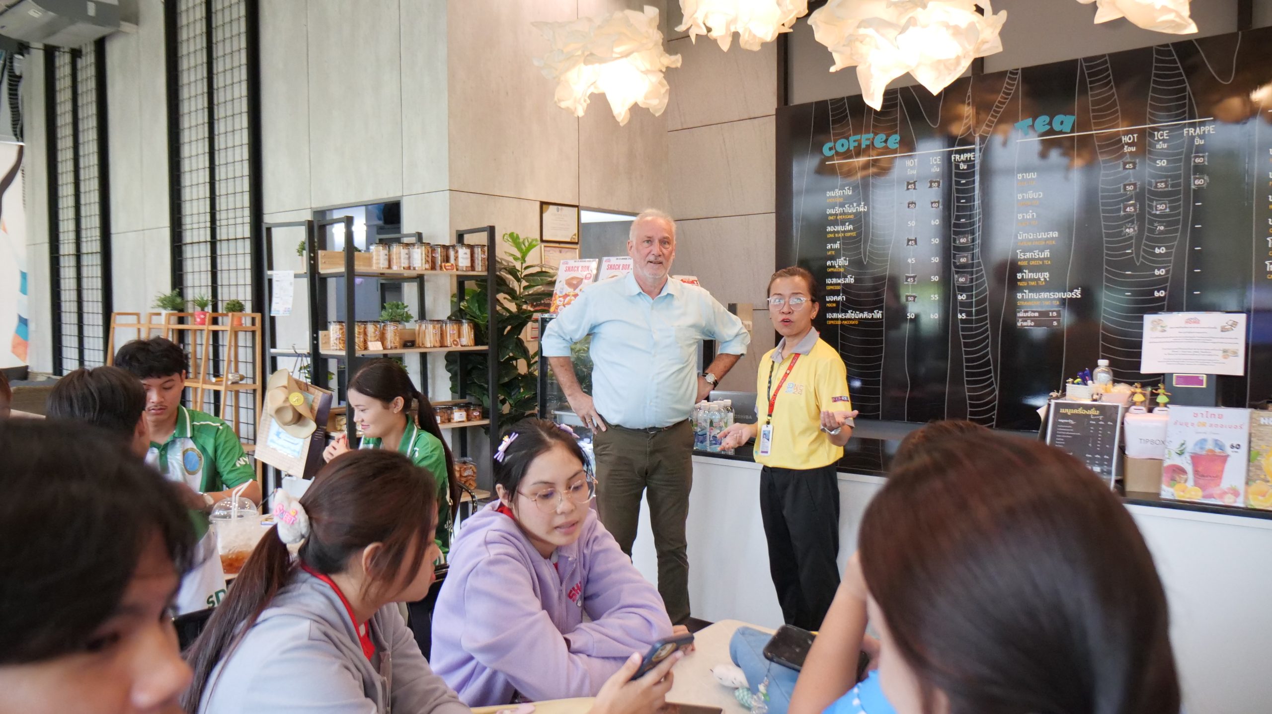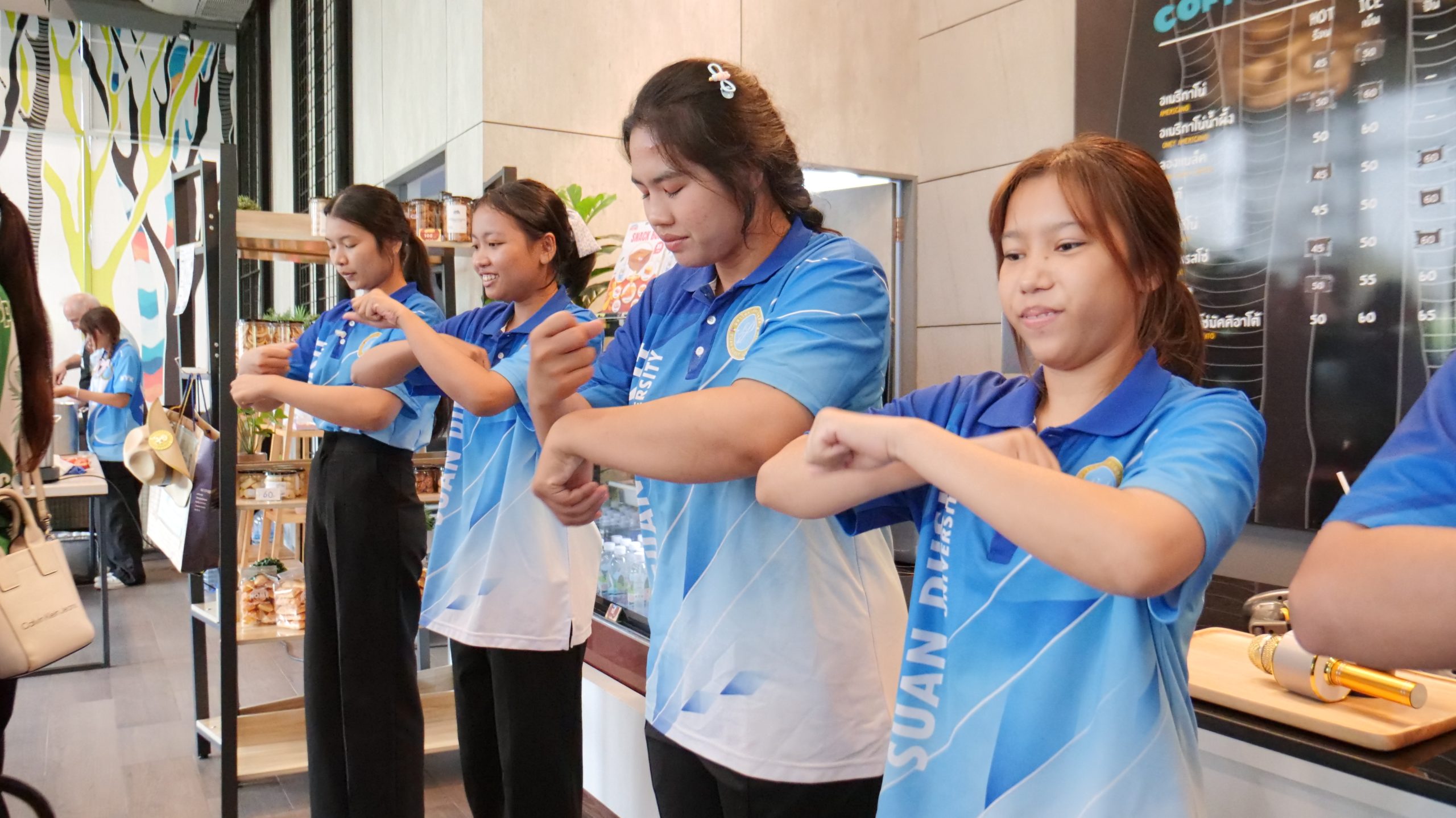 ในวันที่  25 กรกฎาคม 2568 เวลา 13.00 – 16.00 น. มหาวิทยาลัยสวนดุสิต ศูนย์การศึกษา นครนายก หลักสูตรศึกษาศาสตรบัณฑิต สาขาวิชาการศึกษาปฐมวัย  จัดโครงการพัฒนาสมรรถนะนักศึกษาสาขาวิชาการศึกษาปฐมวัยสู่ความเป็นเลิศในศตวรรษที่ 21 กิจกรรมที่ 3 English Life & Skills Orientation: Explain activities and schedules, design and plan group activities together ครั้งที่ 2 ด้านร่างกาย (Eating & Dancing) ในหัวข้อ: “กินให้สุขภาพดี เคลื่อนไหวให้ชีวิตมีสีสัน”โดยวิทยากร MR. HUBERT RUCH และ Asst.Ptof.Dr.Natthakitta Florentine  ให้นักศึกษาชั้นปีที่ 1 – 4 สาขาวิชาการศึกษาปฐมวัย และ สาขาวิชาการประถมศึกษา ณ ร้านกาแฟ sdu co-working space @nyk มหาวิทยาลัยสวนดุสิต ศูนย์การศึกษา นครนายก