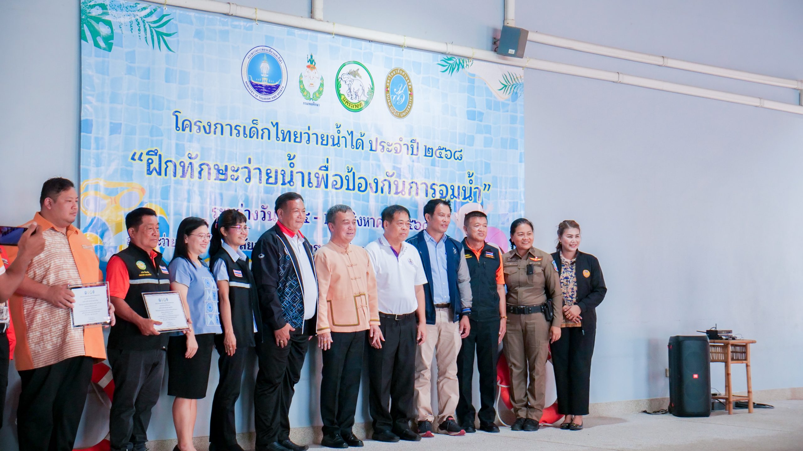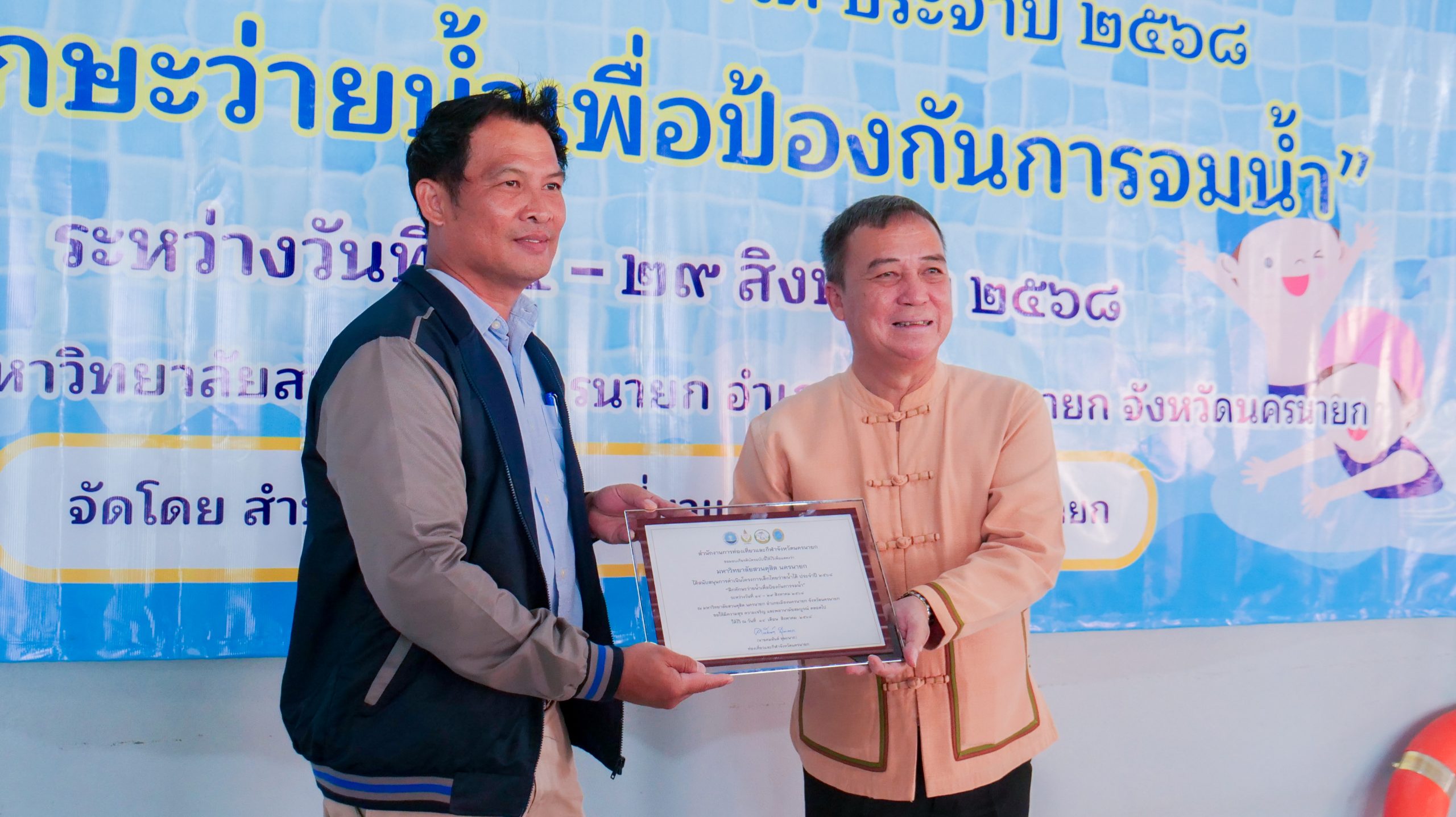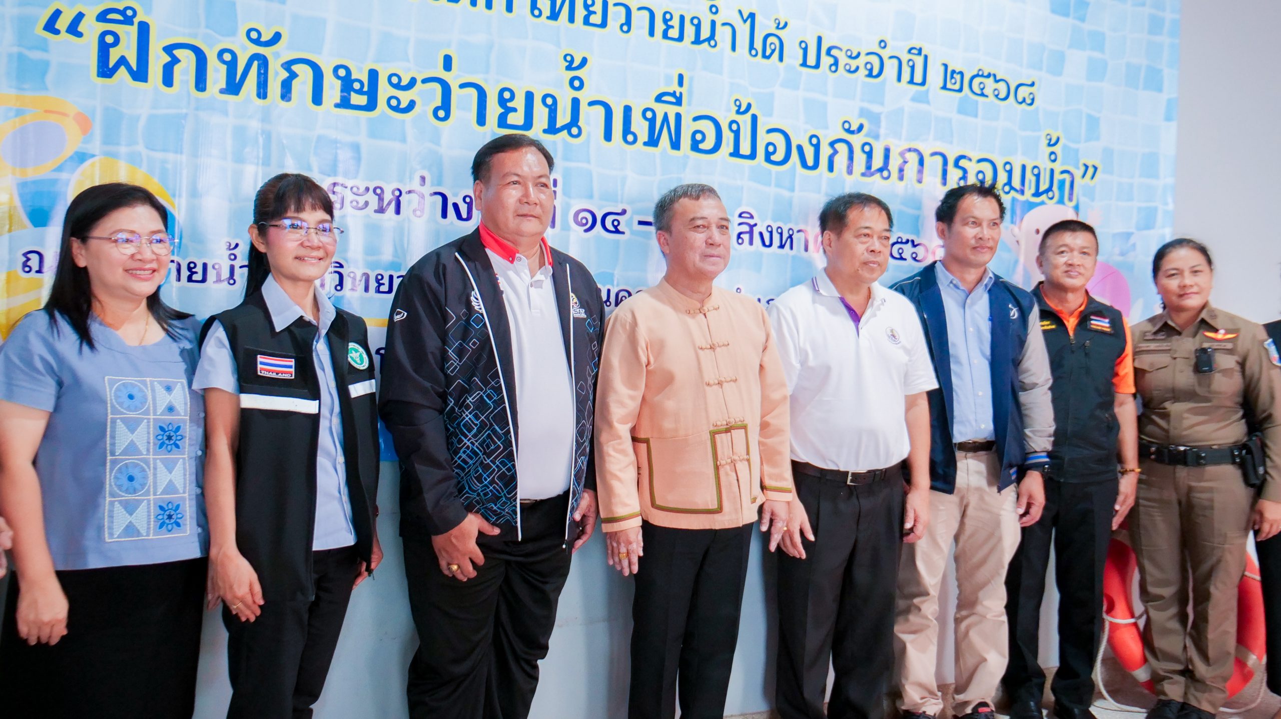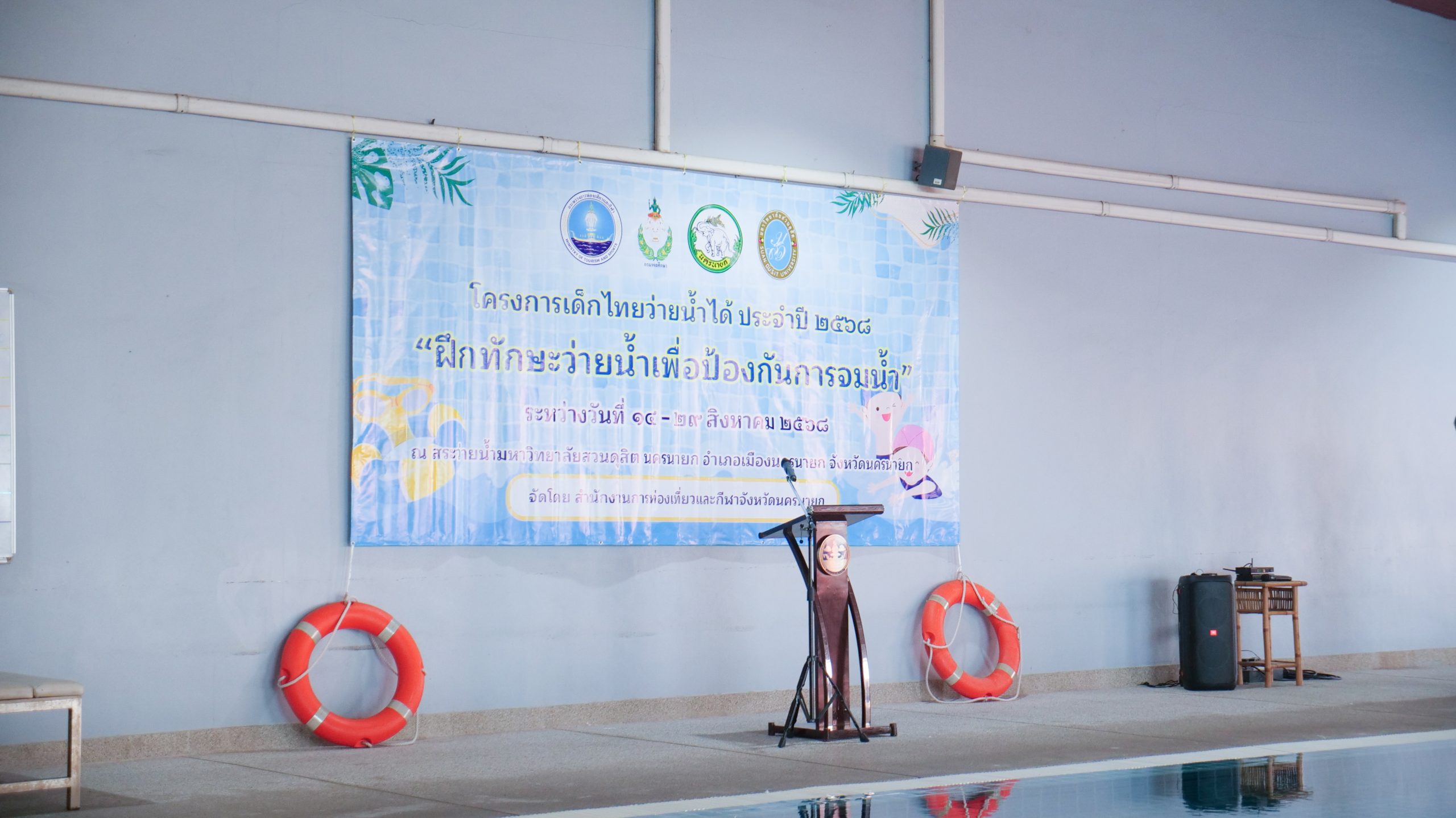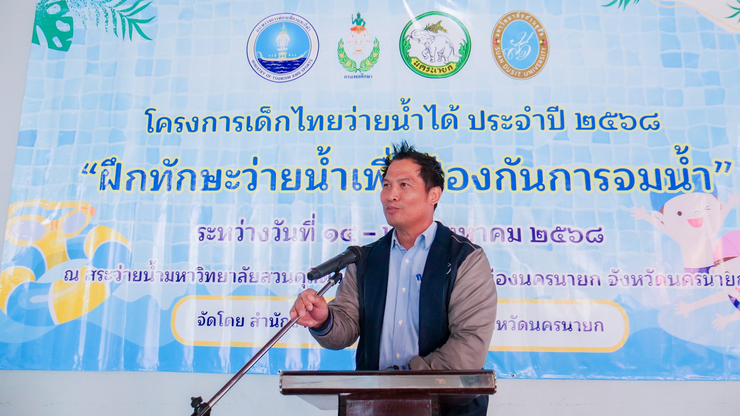 สำนักงานการท่องเที่ยวและกีฬาจังหวัดนครนายก จัดโครงการ เด็กไทยว่ายน้ำได้ ประจำปี 2568 “ฝึกทักษะว่ายน้ำเพื่อป้องกันการจมน้ำ” จำนวน 5 รุ่น รวม 200 คน ในระหว่างวันที่ 14 – 29 สิงหาคม 2568 โดยได้รับเกียรติจาก นายคมสันต์ สุมะนาถ ท่องเที่ยวและกีฬาจังหวัดนครนายก เป็นประธานเปิดโครงการ โดยมีตัวแทนสาธารณสุขจังหวัดนครนายก ตัวแทนตำรวจท่องเที่ยวจังหวัดนครนายก ตัวแทนจากองค์การบริหารส่วนตำบลหินตั้ง ตำบลสาริกา ตำบลศรีนาวา และผู้ช่วยศาสตราจารย์ ว่าที่ร้อยตรี ดร.มงคลชัย บุญแก้ว ผู้อำนวยการศูนย์การศึกษา นครนายก เข้าร่วมในพิธีเปิด โดยโครงการนี้มีวัตถุประสงค์เพื่อส่งเสริมให้เด็กและเยาวชนช่วงอายุระหว่าง 6 – 14 ปี ในพื้นที่จังหวัดนครนายก มีทักษะการว่ายน้ำ รู้หลักการใช้อุปกรณ์ช่วยชีวิตผู้ประสบภัยทางน้ำ และสามารถเอาชีวิตรอดจากการจมน้ำได้ ในวันที่ 14 สิงหาคม 2568 เวลา 09.00 – 15.00 น. ณ ศูนย์ส่งเสริมสมรรถนะทางกาย สระว่ายน้ำ มหาวิทยาลัยสวนดุสิต ศูนย์การศึกษา นครนายก