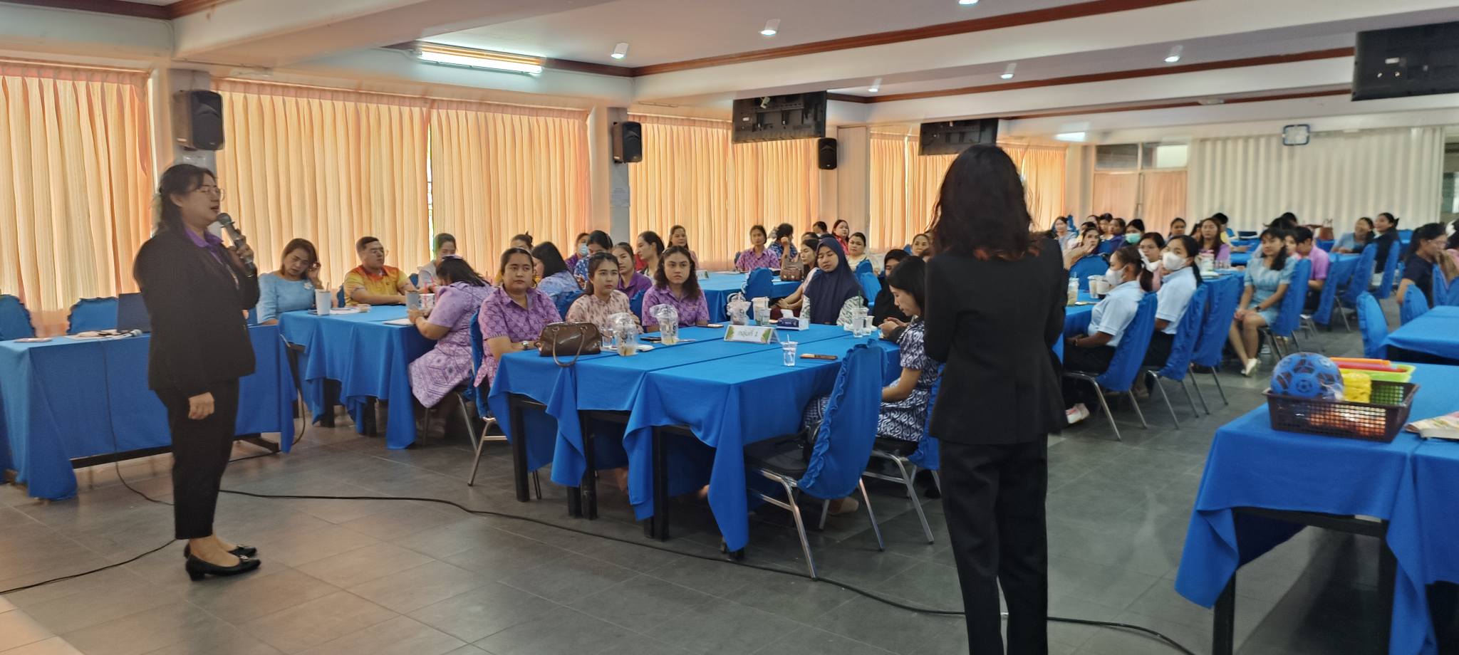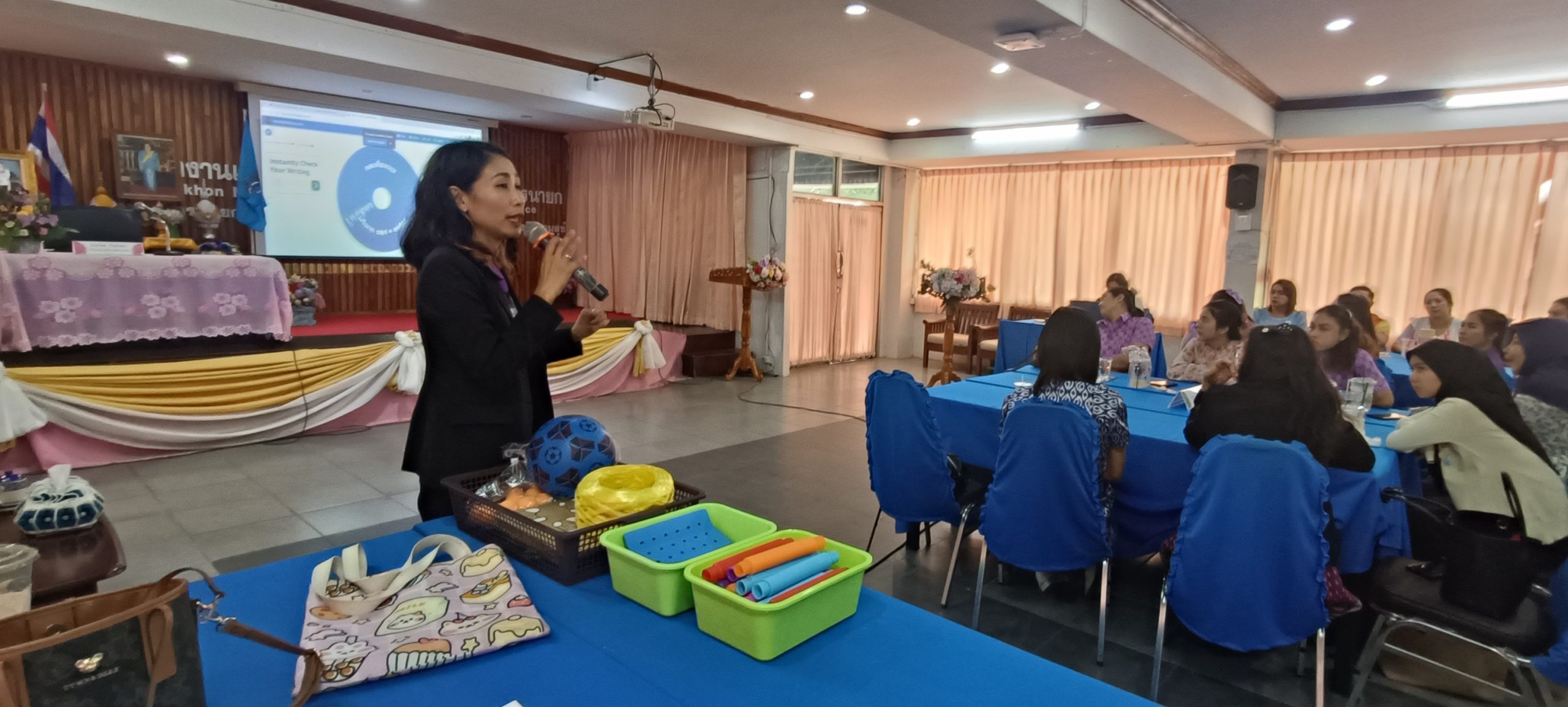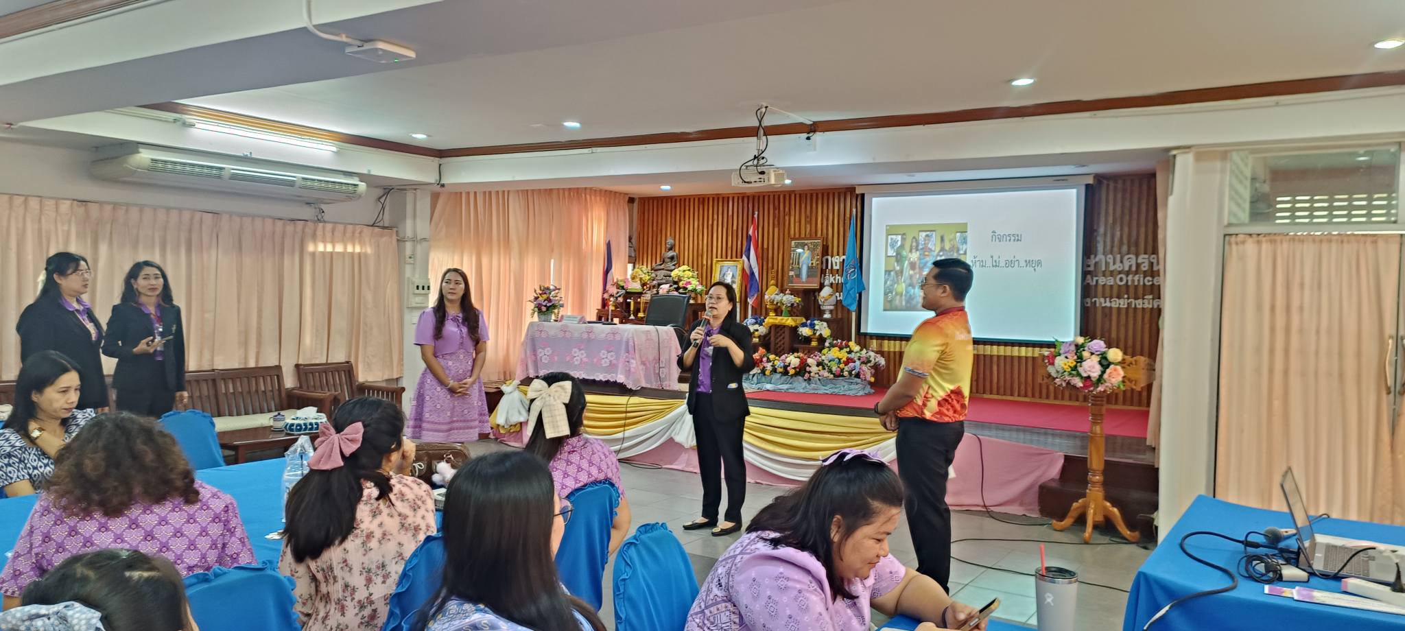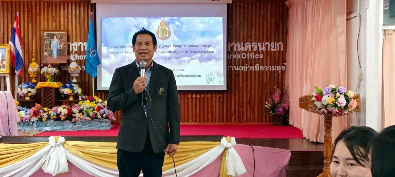 ในวันที่ 22 สิงหาคม 2568 เวลา 09.00 – 16.00 น. นายวิมล ช่วยรักษา รองผู้อำนวยการสำนักงานเขตพื้นที่การศึกษาประถมศึกษานครนายก เป็นประธานในพิธีเปิดการอบรมโครงการเสริมสร้างศักยภาพครูปฐมวัยเพื่อการพัฒนาทักษะทางสมอง (Executive Function: EF) ในการป้องกันและแก้ปัญหายาเสพติดในสถานศึกษา เพื่อป้องกันเด็กและเยาวชนทุกกลุ่มเป้าหมายไม่ให้เข้าไปเกี่ยวข้องกับยาเสพติด โดยมีวัตถุประสงค์เพื่อพัฒนาต่อยอดครูปฐมวัย ด้านการจัดประสบการณ์การเรียนรู้ตามหลักสูตรการศึกษาปฐมวัย พุทธศักราช 2560 ในการพัฒนาทักษะทางสมองในการป้องกันและแก้ปัญหายาเสพติดในสถานศึกษาและสร้างภูมิคุ้มกันในเด็กและเยาวชนแต่ละช่วงวัยอย่างเหมาะสมผ่านกระบวนการจัดการเรียนการสอน เน้นการพัฒนาหลักสูตรการเรียนการสอนและเสริมกิจกรรม โดยมีผู้ช่วยศาสตราจารย์ ว่าที่ร้อยตรี ดร.มงคลชัย บุญแก้ว ผู้อำนวยการศูนย์การศึกษา นครนายก อาจารย์ ดร. ดนยา อินจำปา อาจารย์อัญชิษฐา ปิยะจิตติ และอาจารย์ฉัตรทราวดี บุญถนอม อาจารย์หลักสูตรศึกษาศาสตรบัณฑิต สาขาวิชาการศึกษาปฐมวัย มหาวิทยาลัยสวนดุสิต ศูนย์การศึกษา นครนายก ได้รับเชิญเป็นวิทยากร ณ ห้องประชุมวังกระโจม สำนักงานเขตพื้นที่การศึกษาประถมศึกษานครนายก