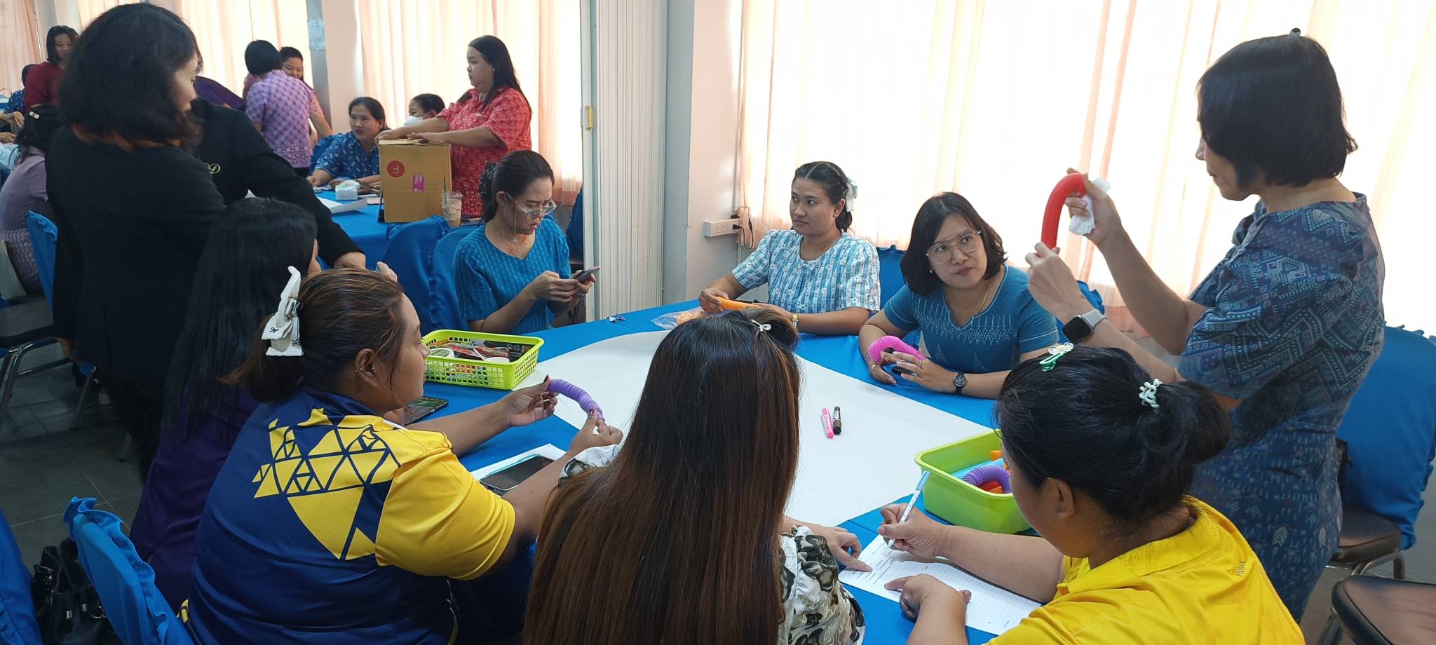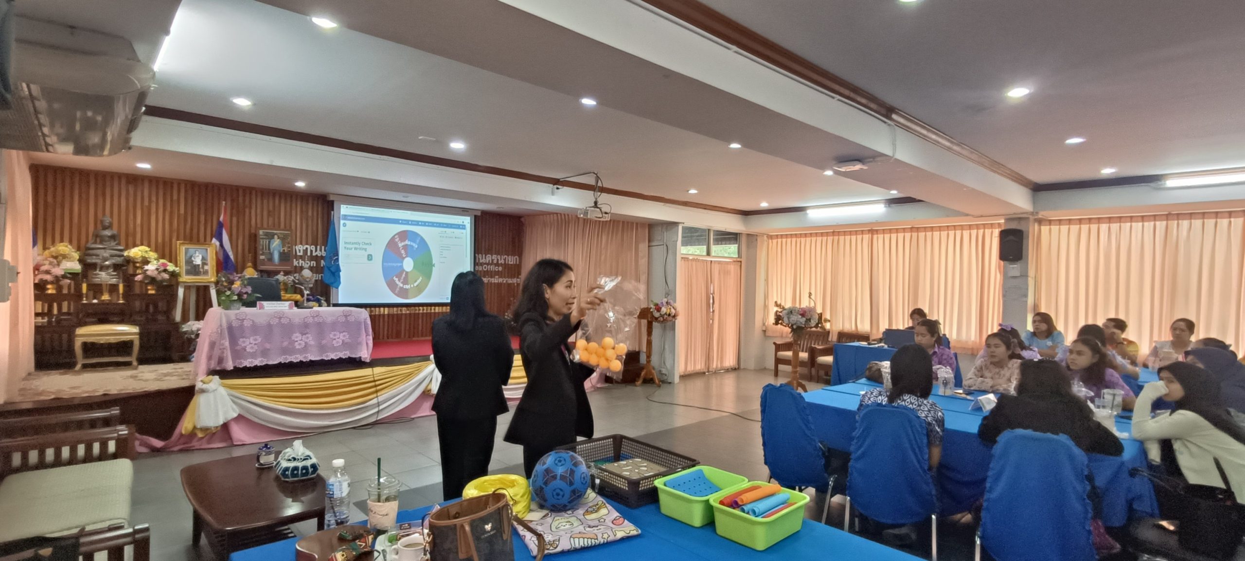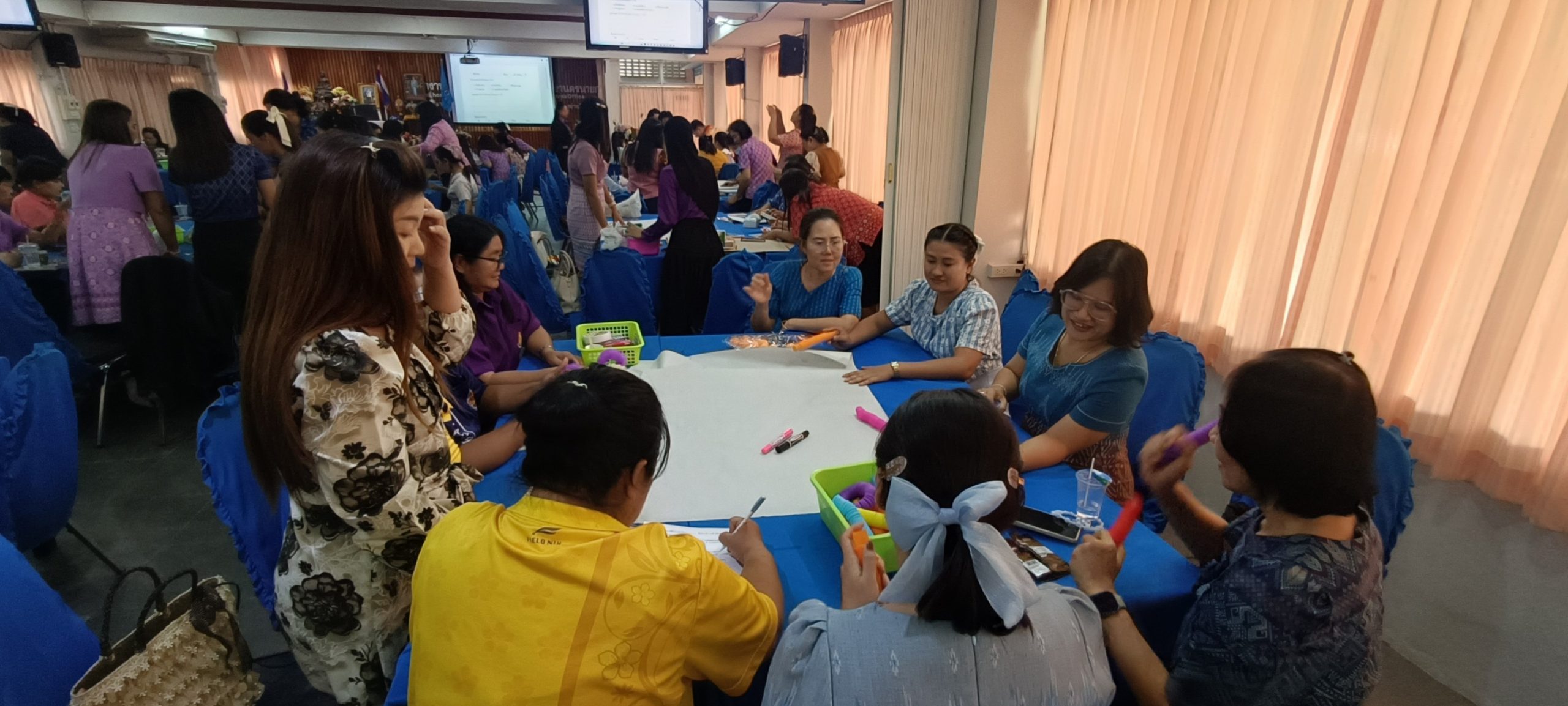 ในวันที่ 22 สิงหาคม 2568 เวลา 09.00 – 16.00 น. นายวิมล ช่วยรักษา รองผู้อำนวยการสำนักงานเขตพื้นที่การศึกษาประถมศึกษานครนายก เป็นประธานในพิธีเปิดการอบรมโครงการเสริมสร้างศักยภาพครูปฐมวัยเพื่อการพัฒนาทักษะทางสมอง (Executive Function: EF) ในการป้องกันและแก้ปัญหายาเสพติดในสถานศึกษา เพื่อป้องกันเด็กและเยาวชนทุกกลุ่มเป้าหมายไม่ให้เข้าไปเกี่ยวข้องกับยาเสพติด โดยมีวัตถุประสงค์เพื่อพัฒนาต่อยอดครูปฐมวัย ด้านการจัดประสบการณ์การเรียนรู้ตามหลักสูตรการศึกษาปฐมวัย พุทธศักราช 2560 ในการพัฒนาทักษะทางสมองในการป้องกันและแก้ปัญหายาเสพติดในสถานศึกษาและสร้างภูมิคุ้มกันในเด็กและเยาวชนแต่ละช่วงวัยอย่างเหมาะสมผ่านกระบวนการจัดการเรียนการสอน เน้นการพัฒนาหลักสูตรการเรียนการสอนและเสริมกิจกรรม โดยมีผู้ช่วยศาสตราจารย์ ว่าที่ร้อยตรี ดร.มงคลชัย บุญแก้ว ผู้อำนวยการศูนย์การศึกษา นครนายก อาจารย์ ดร. ดนยา อินจำปา อาจารย์อัญชิษฐา ปิยะจิตติ และอาจารย์ฉัตรทราวดี บุญถนอม อาจารย์หลักสูตรศึกษาศาสตรบัณฑิต สาขาวิชาการศึกษาปฐมวัย มหาวิทยาลัยสวนดุสิต ศูนย์การศึกษา นครนายก ได้รับเชิญเป็นวิทยากร ณ ห้องประชุมวังกระโจม สำนักงานเขตพื้นที่การศึกษาประถมศึกษานครนายก