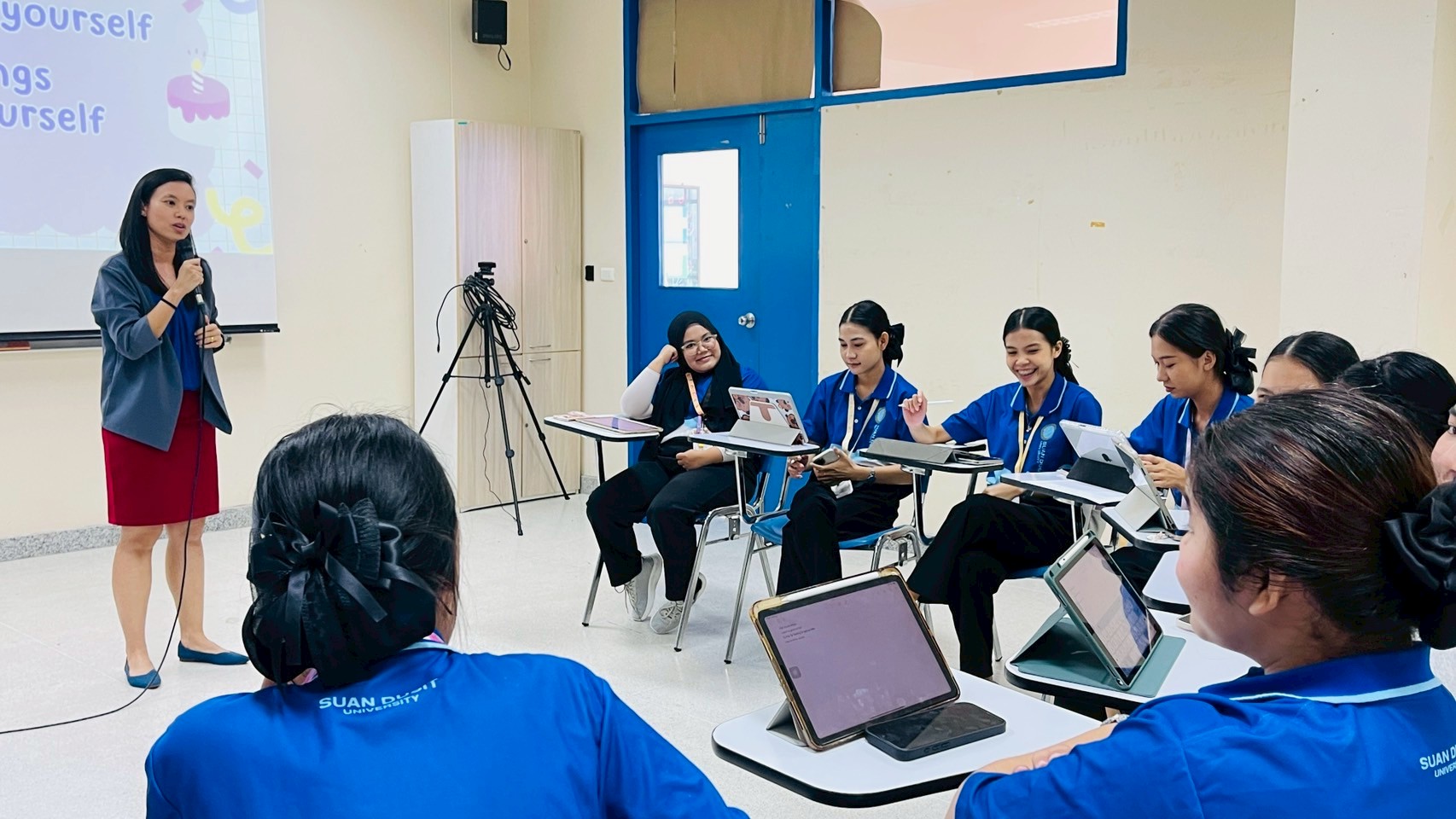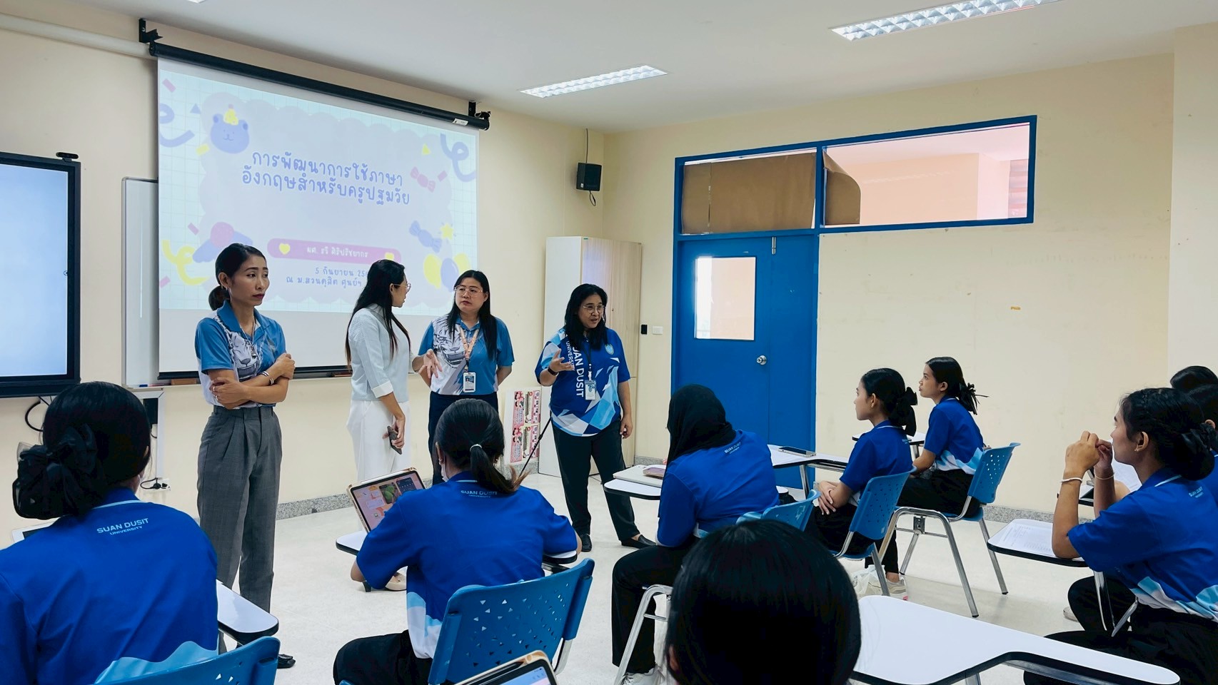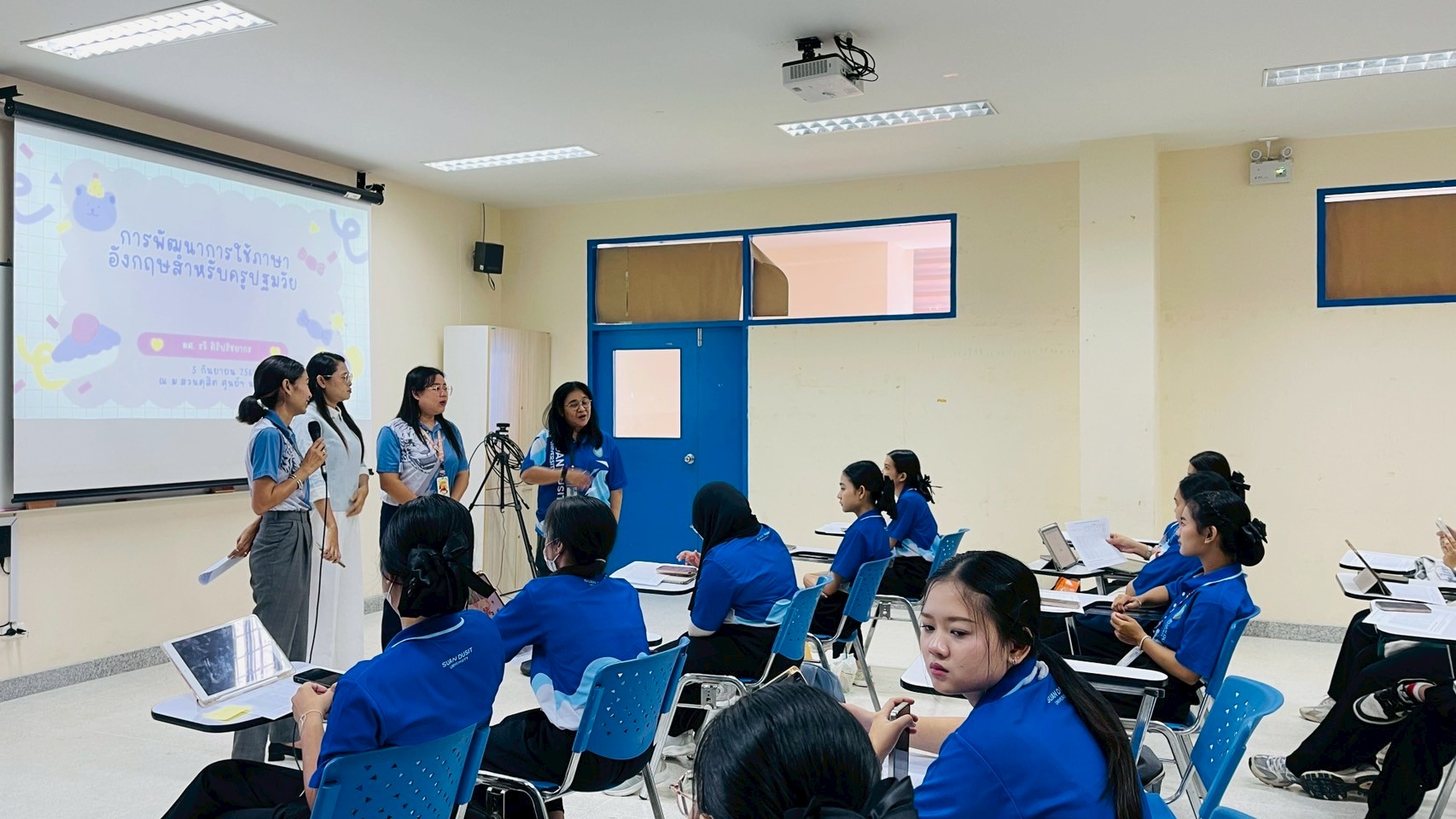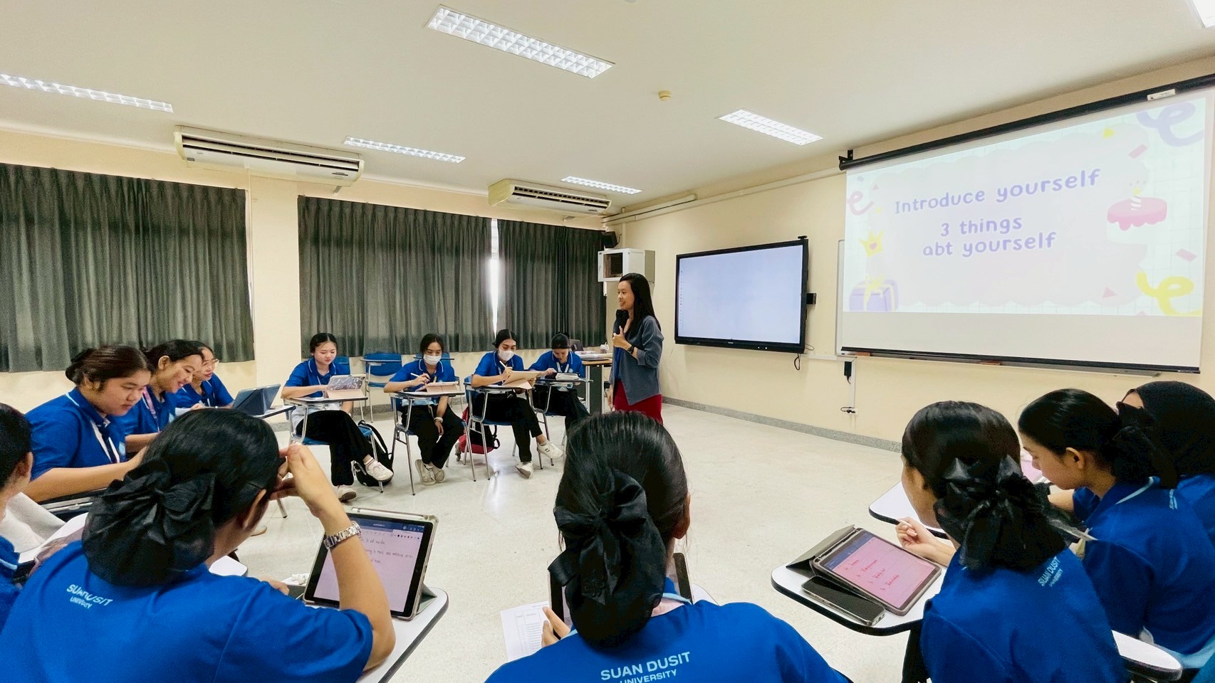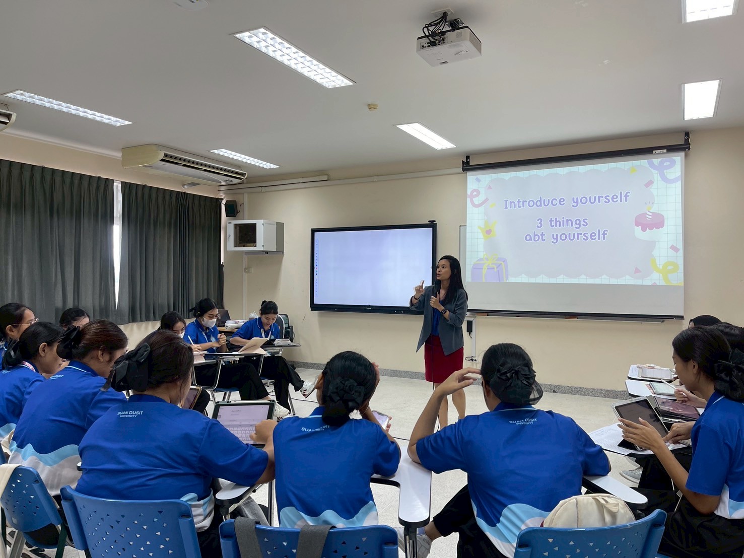 ในวันที่ 5 กันยายน 2568 เวลา 08.30 – 16.00 น. หลักสูตรศึกษาศาสตรบัณฑิต สาขาวิชาการศึกษาปฐมวัย มหาวิทยาลัยสวนดุสิต ศูนย์การศึกษา นครนายก จัดโครงการพัฒนาสมรรถนะนักศึกษาสาขาวิชาการศึกษาปฐมวัย สู่ความเป็นเลิศในศตวรรษที่ 21 กิจกรรมที่ 3 เทคนิคการใช้ภาษาอังกฤษในการจัดประสบการณ์ในห้องเรียน ภาคเรียนที่ 1 ปีการศึกษา 2568 โดยได้รับเกียรติจาก อาจารย์ปรตา หวังดุล อาจารย์ประจำวิทยาลัยการฝึกหัดครู มหาวิทยาลัยราชภัฏพระนคร และ ผศ.รวี ศิริปริชยากร เป็นวิทยากรผู้ให้ความรู้ กิจกรรมนี้มีวัตถุประสงค์เพื่อส่งเสริมนักศึกษาให้มีคุณลักษณะมาตรฐานการเรียนรู้ตามกรอบมาตรฐานคุณวุฒิ (TQF : HEd) และเพื่อการพัฒนานักศึกษาให้มีสมรรถนะและทักษะการเรียนรู้ในศตวรรษที่ 21 ณ ห้องเรียน 553 มหาวิทยาลัยสวนดุสิต ศูนย์การศึกษา นครนายก