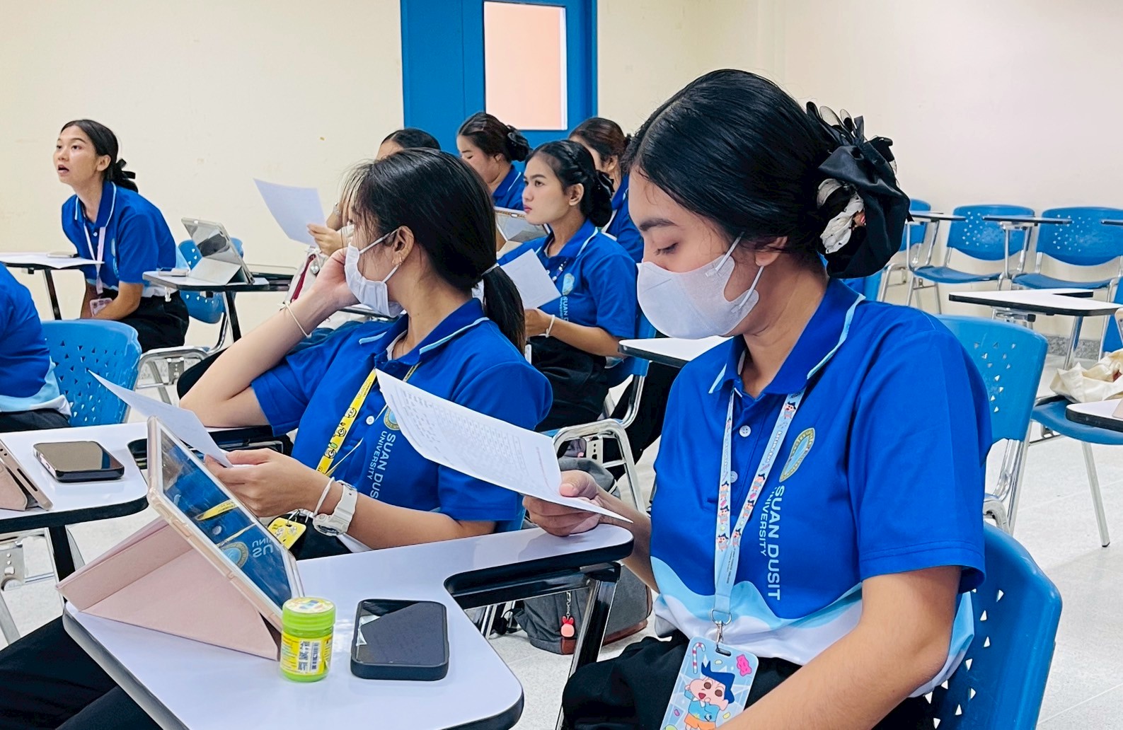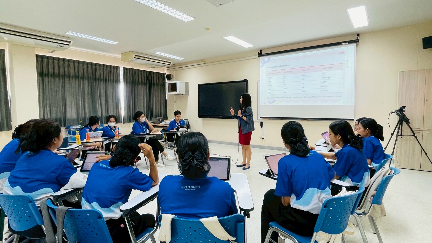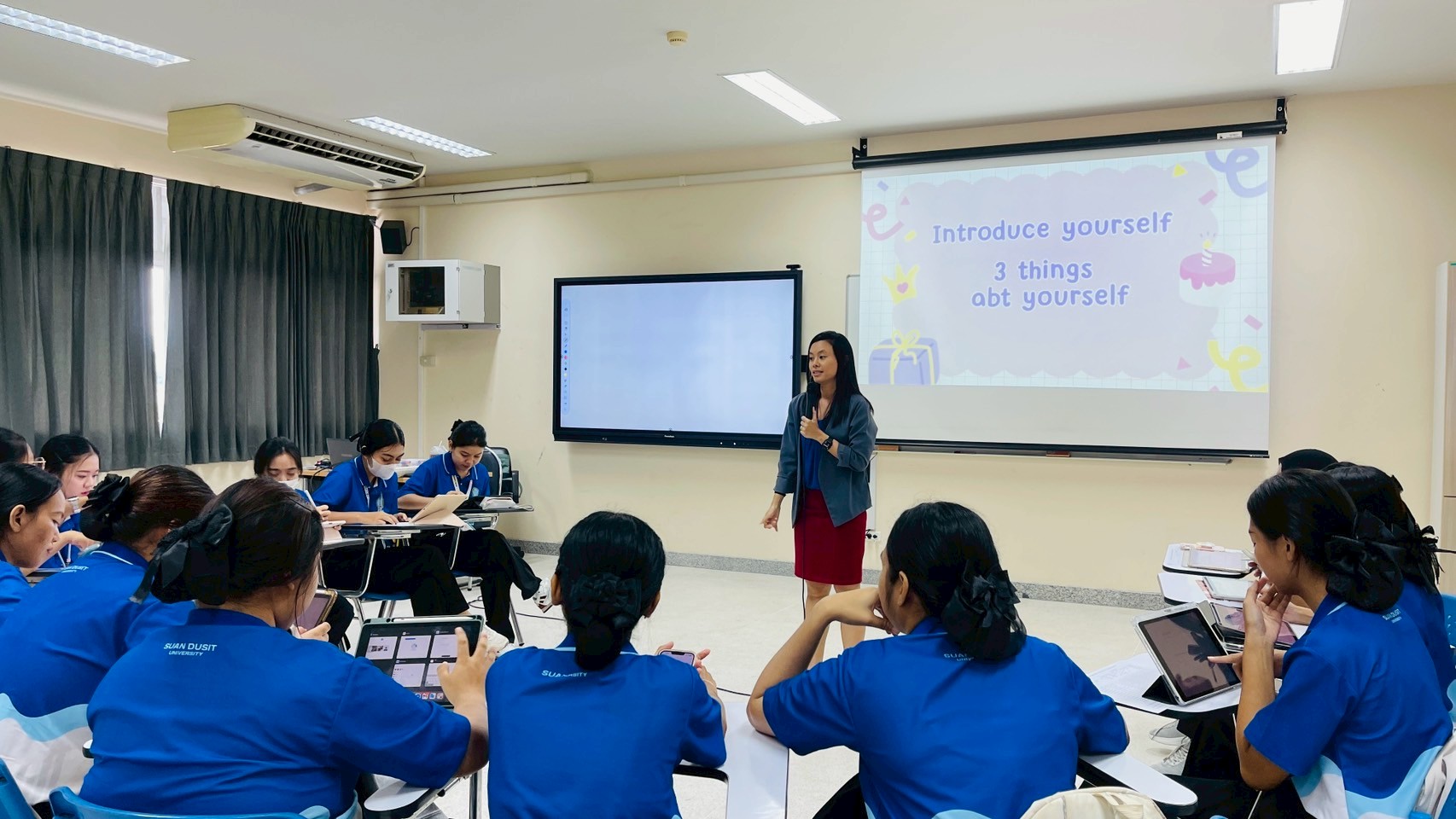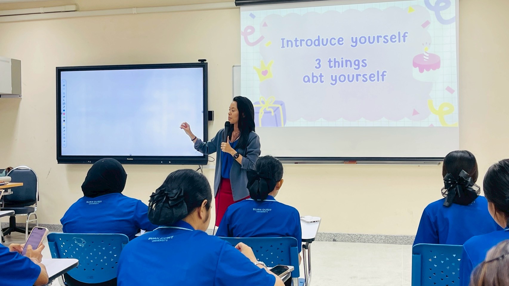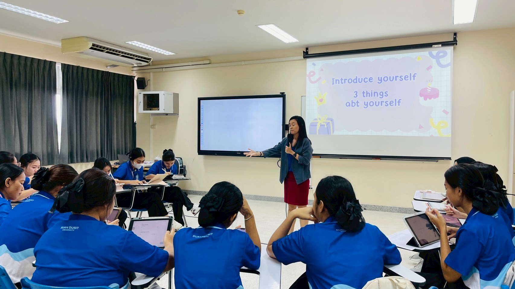 ในวันที่ 5 กันยายน 2568 เวลา 08.30 – 16.00 น. หลักสูตรศึกษาศาสตรบัณฑิต สาขาวิชาการศึกษาปฐมวัย มหาวิทยาลัยสวนดุสิต ศูนย์การศึกษา นครนายก จัดโครงการพัฒนาสมรรถนะนักศึกษาสาขาวิชาการศึกษาปฐมวัย สู่ความเป็นเลิศในศตวรรษที่ 21 กิจกรรมที่ 3 เทคนิคการใช้ภาษาอังกฤษในการจัดประสบการณ์ในห้องเรียน ภาคเรียนที่ 1 ปีการศึกษา 2568 โดยได้รับเกียรติจาก อาจารย์ปรตา หวังดุล อาจารย์ประจำวิทยาลัยการฝึกหัดครู มหาวิทยาลัยราชภัฏพระนคร และ ผศ.รวี ศิริปริชยากร เป็นวิทยากรผู้ให้ความรู้ กิจกรรมนี้มีวัตถุประสงค์เพื่อส่งเสริมนักศึกษาให้มีคุณลักษณะมาตรฐานการเรียนรู้ตามกรอบมาตรฐานคุณวุฒิ (TQF : HEd) และเพื่อการพัฒนานักศึกษาให้มีสมรรถนะและทักษะการเรียนรู้ในศตวรรษที่ 21 ณ ห้องเรียน 553 มหาวิทยาลัยสวนดุสิต ศูนย์การศึกษา นครนายก