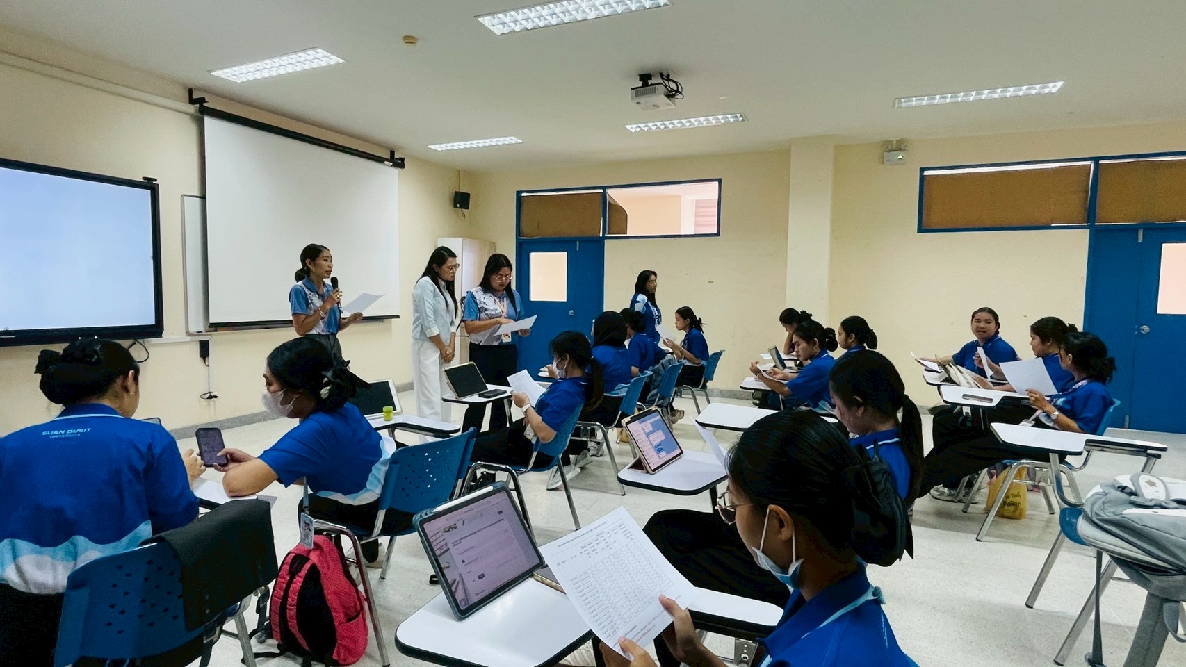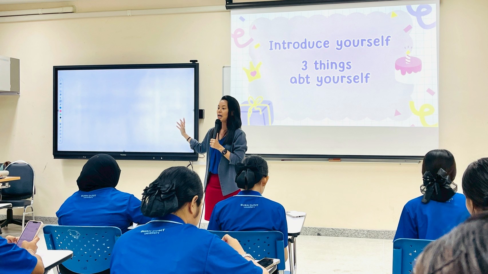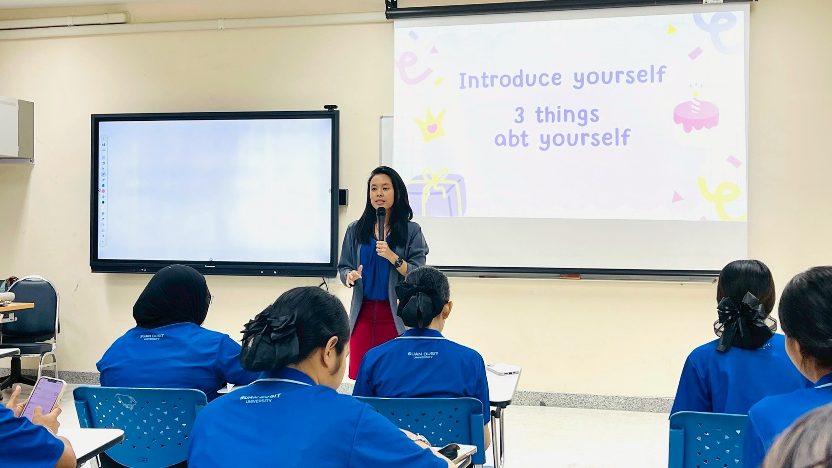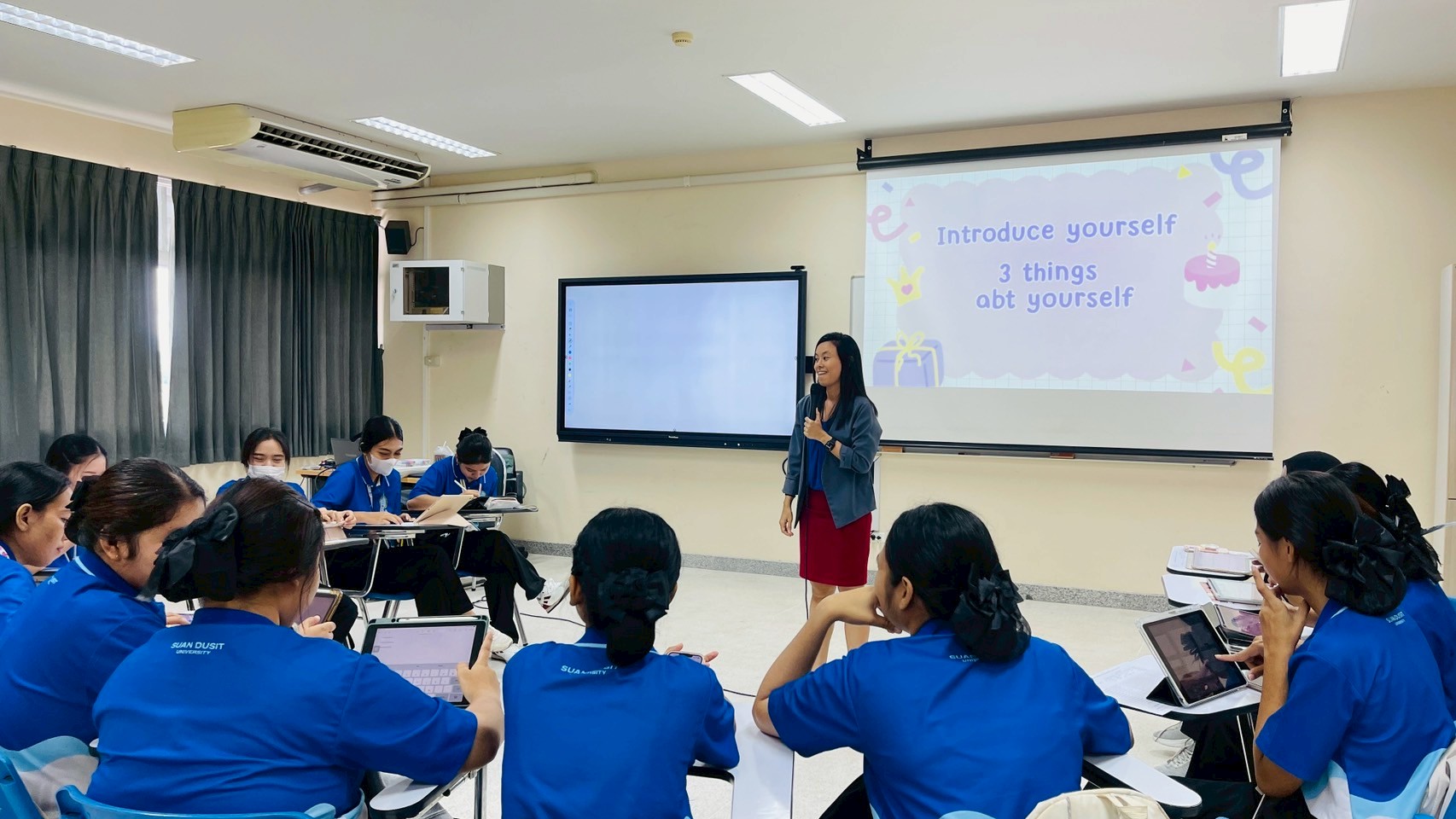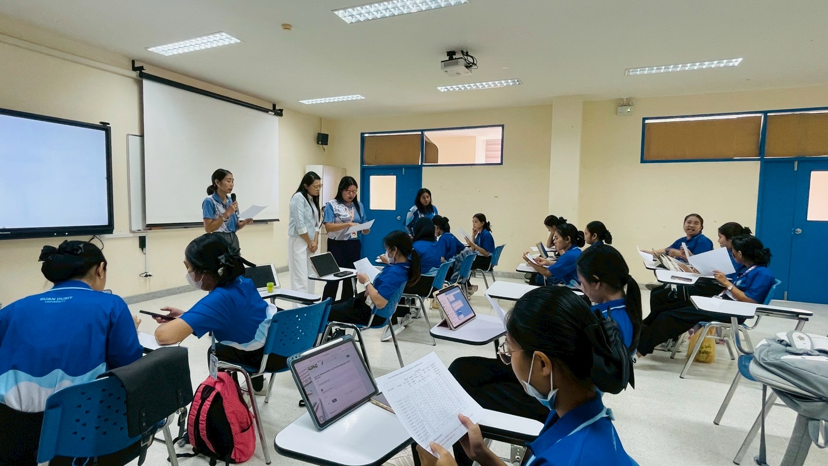 ในวันที่ 5 กันยายน 2568 เวลา 08.30 – 16.00 น. หลักสูตรศึกษาศาสตรบัณฑิต สาขาวิชาการศึกษาปฐมวัย มหาวิทยาลัยสวนดุสิต ศูนย์การศึกษา นครนายก จัดโครงการพัฒนาสมรรถนะนักศึกษาสาขาวิชาการศึกษาปฐมวัย สู่ความเป็นเลิศในศตวรรษที่ 21 กิจกรรมที่ 3 เทคนิคการใช้ภาษาอังกฤษในการจัดประสบการณ์ในห้องเรียน ภาคเรียนที่ 1 ปีการศึกษา 2568 โดยได้รับเกียรติจาก อาจารย์ปรตา หวังดุล อาจารย์ประจำวิทยาลัยการฝึกหัดครู มหาวิทยาลัยราชภัฏพระนคร และ ผศ.รวี ศิริปริชยากร เป็นวิทยากรผู้ให้ความรู้ กิจกรรมนี้มีวัตถุประสงค์เพื่อส่งเสริมนักศึกษาให้มีคุณลักษณะมาตรฐานการเรียนรู้ตามกรอบมาตรฐานคุณวุฒิ (TQF : HEd) และเพื่อการพัฒนานักศึกษาให้มีสมรรถนะและทักษะการเรียนรู้ในศตวรรษที่ 21 ณ ห้องเรียน 553 มหาวิทยาลัยสวนดุสิต ศูนย์การศึกษา นครนายก