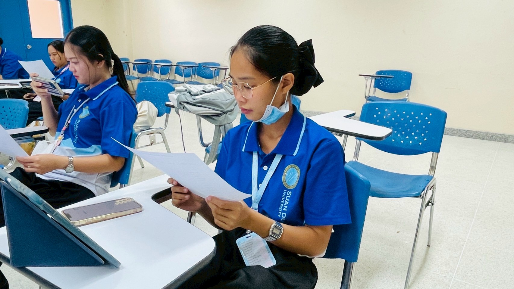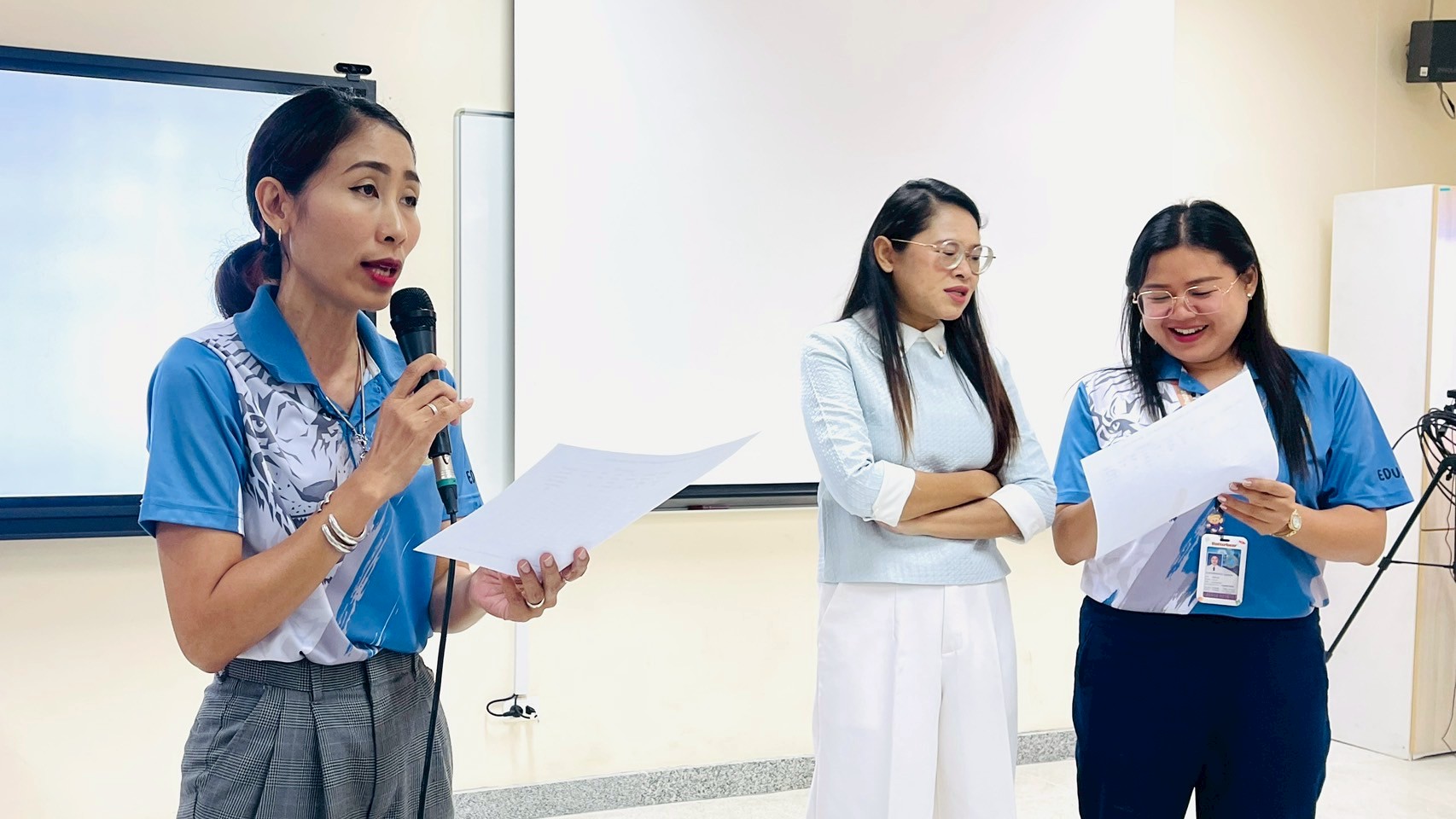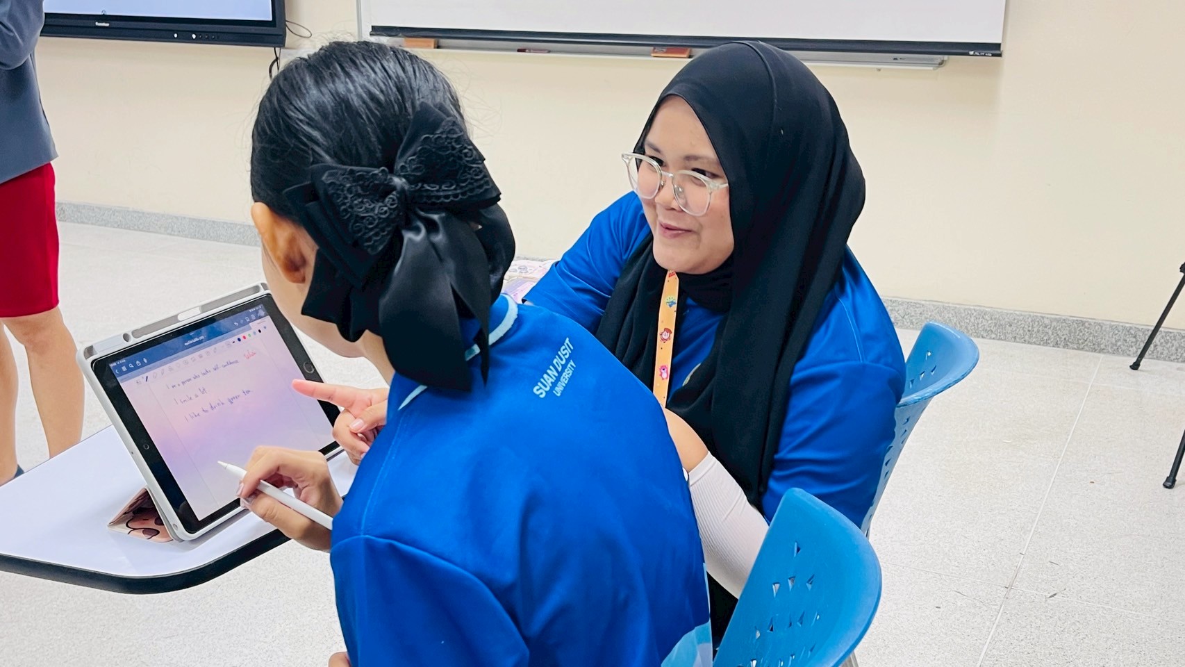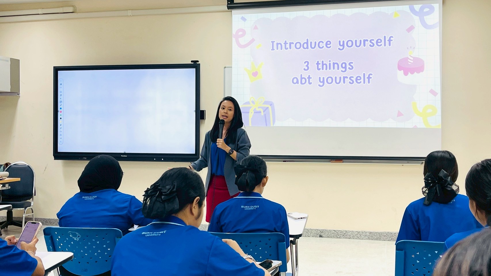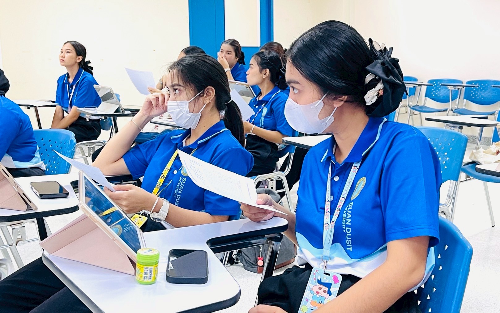 ในวันที่ 5 กันยายน 2568 เวลา 08.30 – 16.00 น. หลักสูตรศึกษาศาสตรบัณฑิต สาขาวิชาการศึกษาปฐมวัย มหาวิทยาลัยสวนดุสิต ศูนย์การศึกษา นครนายก จัดโครงการพัฒนาสมรรถนะนักศึกษาสาขาวิชาการศึกษาปฐมวัย สู่ความเป็นเลิศในศตวรรษที่ 21 กิจกรรมที่ 3 เทคนิคการใช้ภาษาอังกฤษในการจัดประสบการณ์ในห้องเรียน ภาคเรียนที่ 1 ปีการศึกษา 2568 โดยได้รับเกียรติจาก อาจารย์ปรตา หวังดุล อาจารย์ประจำวิทยาลัยการฝึกหัดครู มหาวิทยาลัยราชภัฏพระนคร และ ผศ.รวี ศิริปริชยากร เป็นวิทยากรผู้ให้ความรู้ กิจกรรมนี้มีวัตถุประสงค์เพื่อส่งเสริมนักศึกษาให้มีคุณลักษณะมาตรฐานการเรียนรู้ตามกรอบมาตรฐานคุณวุฒิ (TQF : HEd) และเพื่อการพัฒนานักศึกษาให้มีสมรรถนะและทักษะการเรียนรู้ในศตวรรษที่ 21 ณ ห้องเรียน 553 มหาวิทยาลัยสวนดุสิต ศูนย์การศึกษา นครนายก