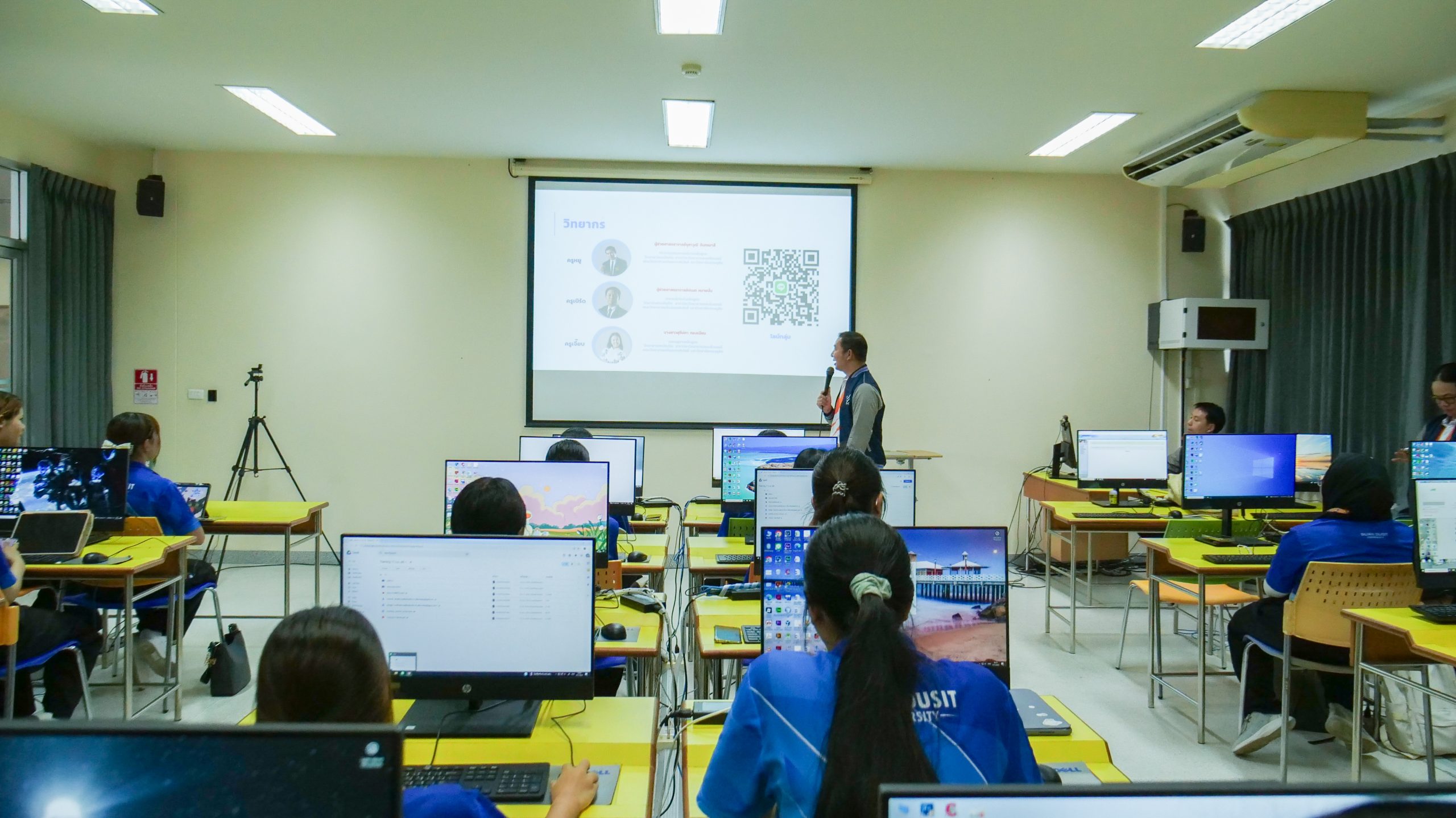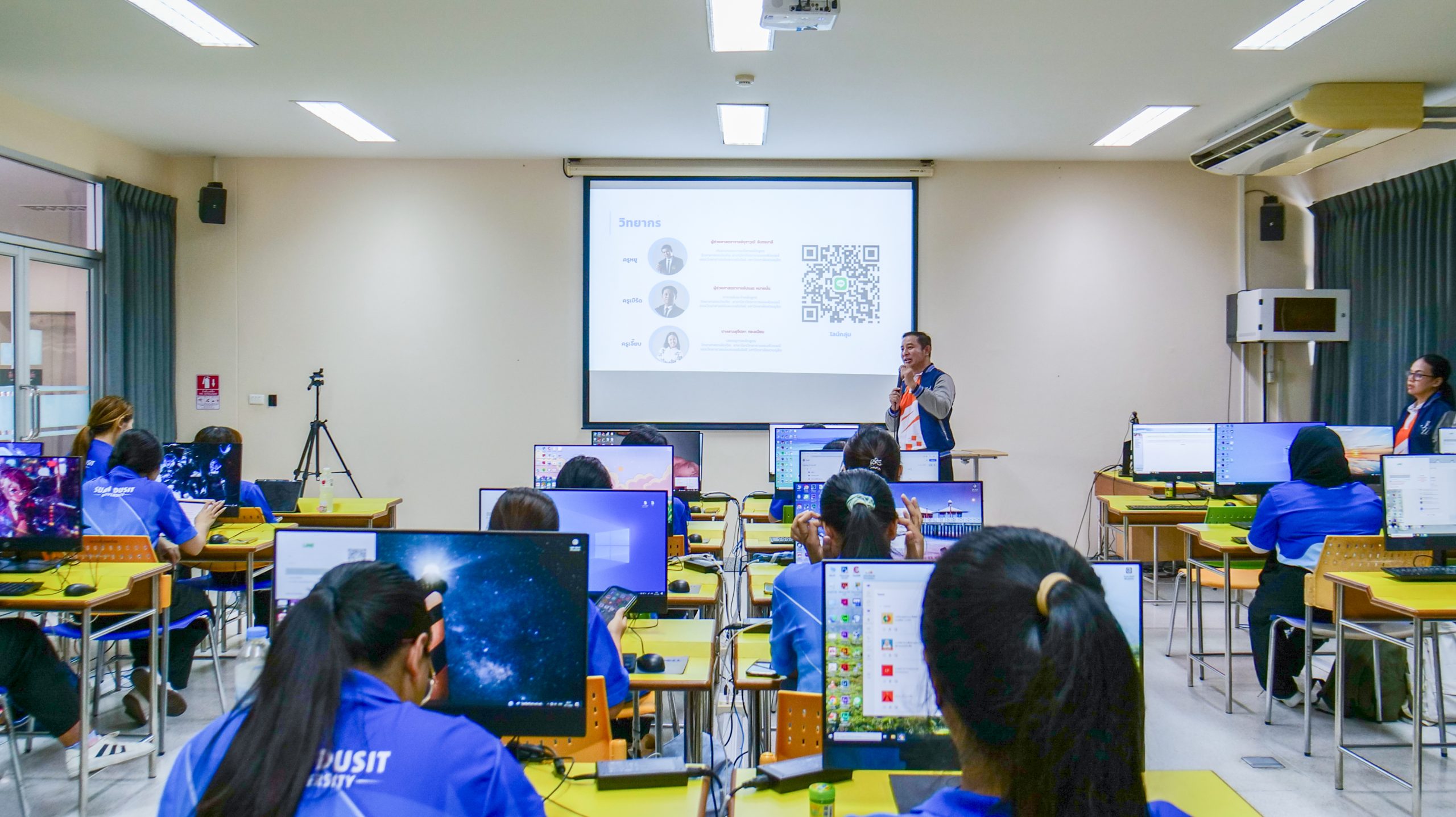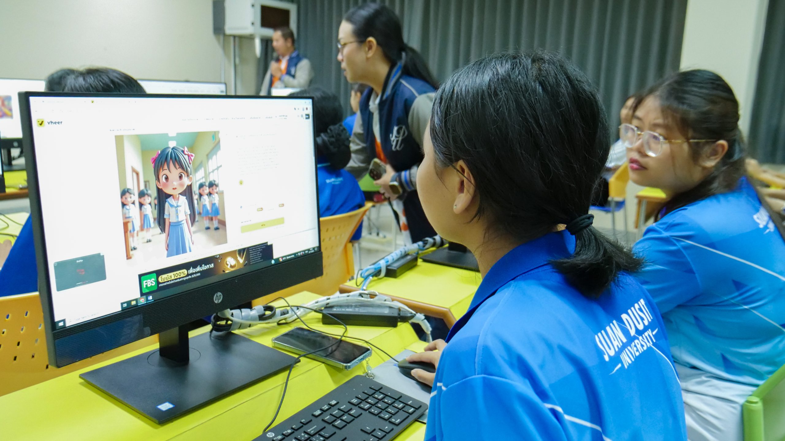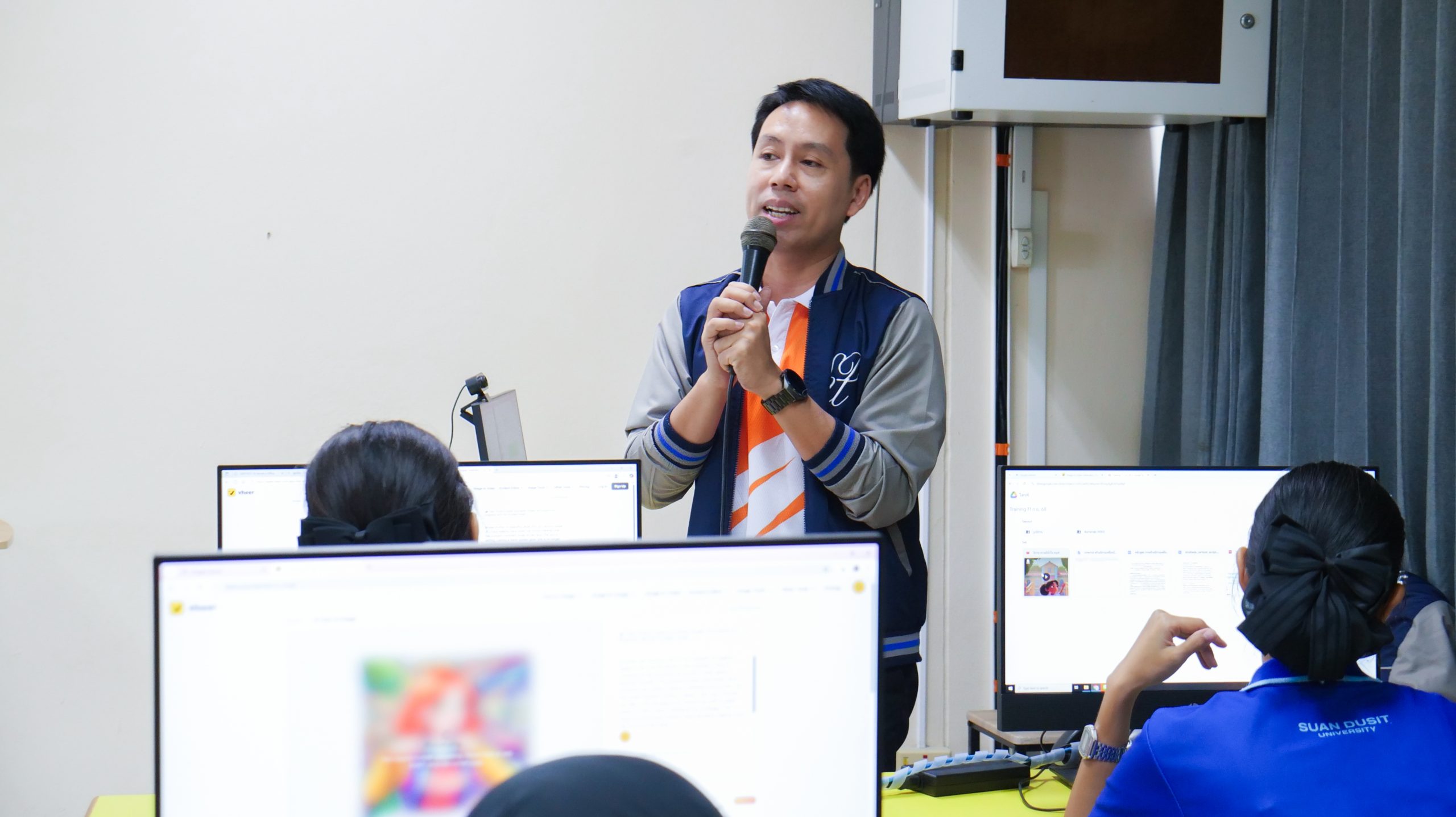 ในวันที่ 11 กันยายน 2568 เวลา 08.30 – 16.00 น. มหาวิทยาลัยสวนดุสิต ศูนย์การศึกษา นครนายก หลักสูตรศึกษาศาสตรบัณฑิต สาขาวิชาการศึกษาปฐมวัย จัดโครงการพัฒนาสมรรถนะนักศึกษา สาขาวิชาการศึกษาปฐมวัยสู่ความเป็นเลิศในศตวรรษที่ 21 ในกิจกรรมสมรรถนะที่ควรรู้ สู่ครูปฐมวัยมืออาชีพ ในหัวข้อ ” สร้างนิทานเคลื่อนไหวด้วย AI เพื่อการเรียนรู้ปฐมวัย” โดยได้รับเกียรติจากผู้ช่วยศาสตราจารย์จุฑาวุฒิ จันทรมาลี และคณะ เป็นวิทยากรให้ความรู้นักศึกษาหลักสูตรศึกษาศาสตรบัณฑิต สาขาวิชาการศึกษาปฐมวัย ชั้นปีที่ 1 – 4 ณ ห้องปฏิบัติการคอมพิวเตอร์ มหาวิทยาลัยสวนดุสิต ศูนย์การศึกษา นครนายก