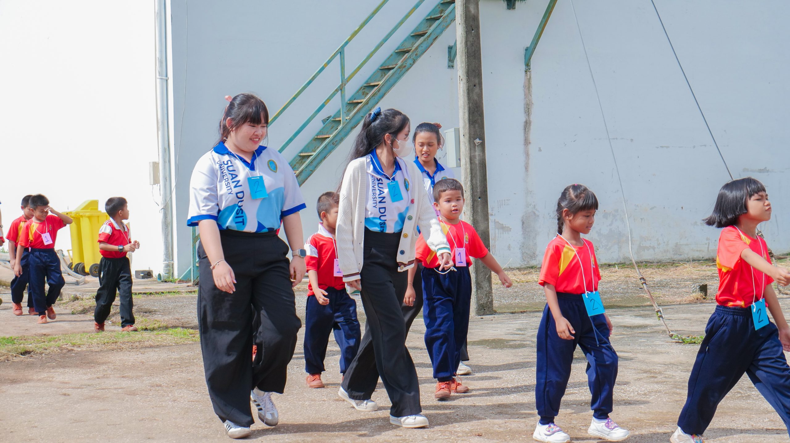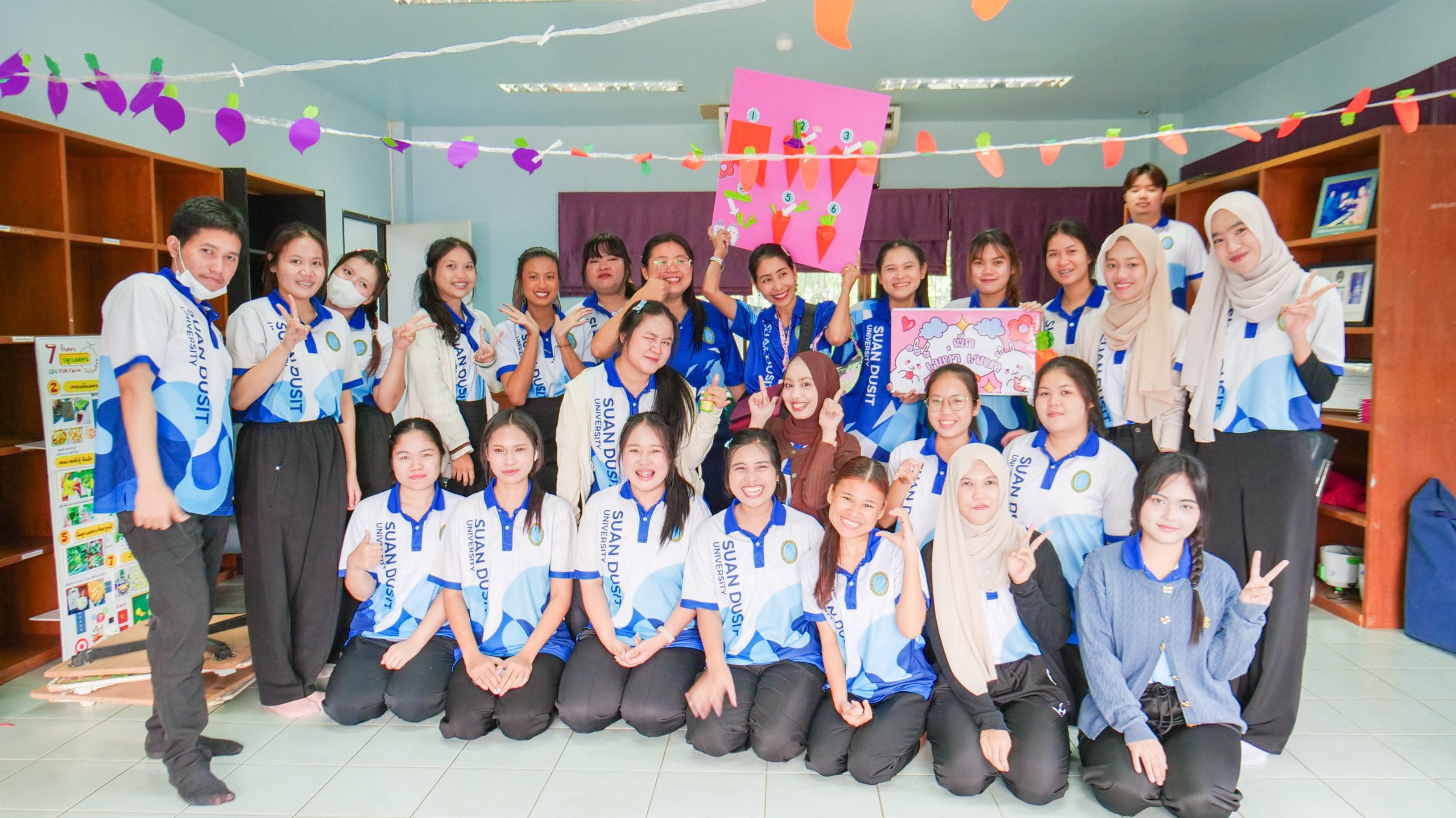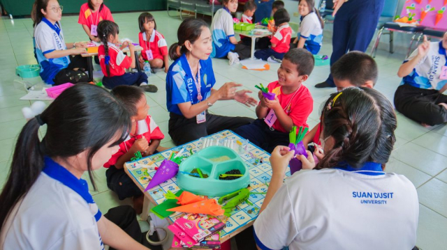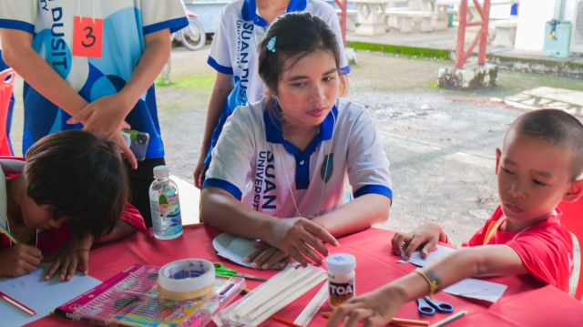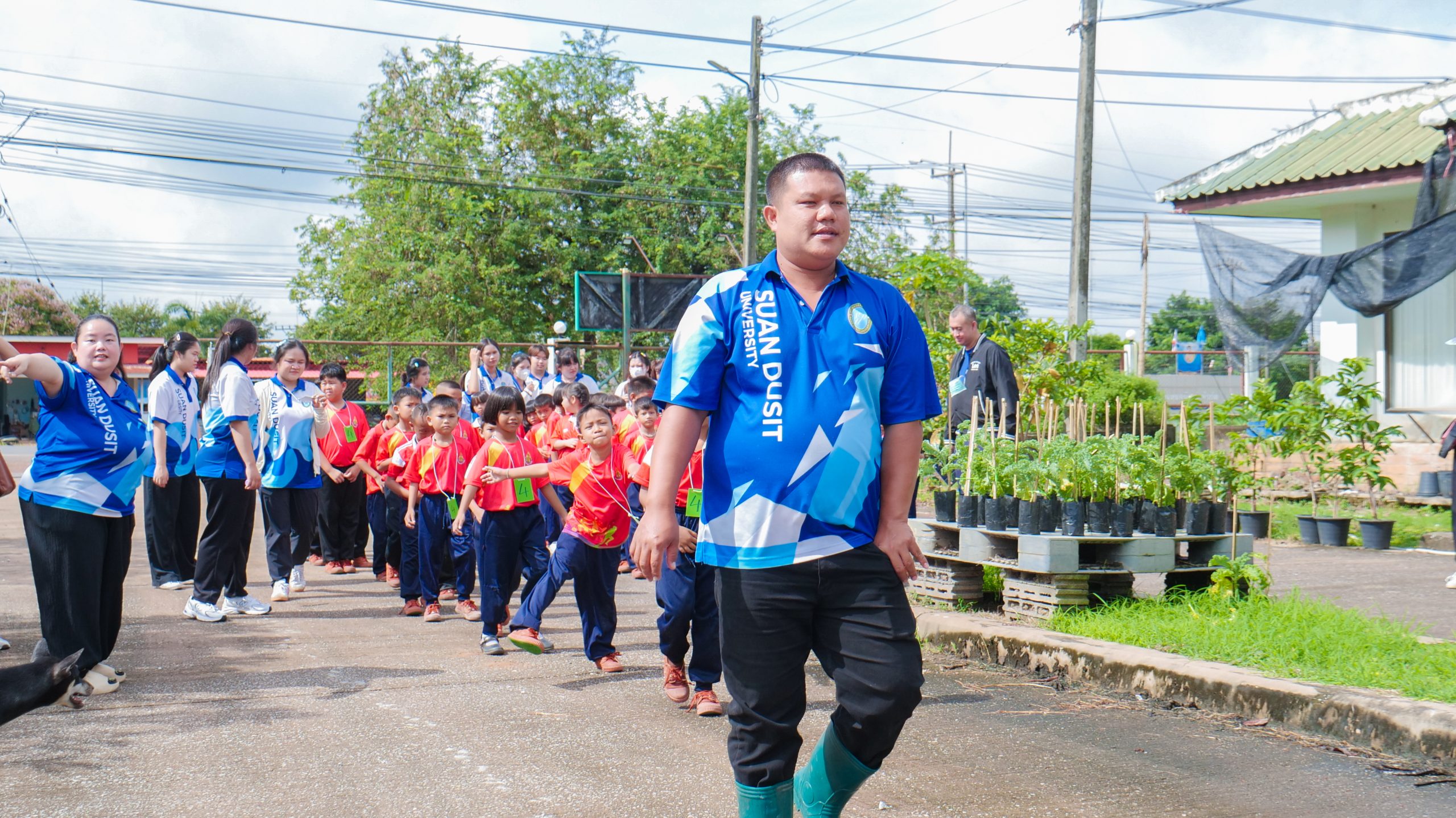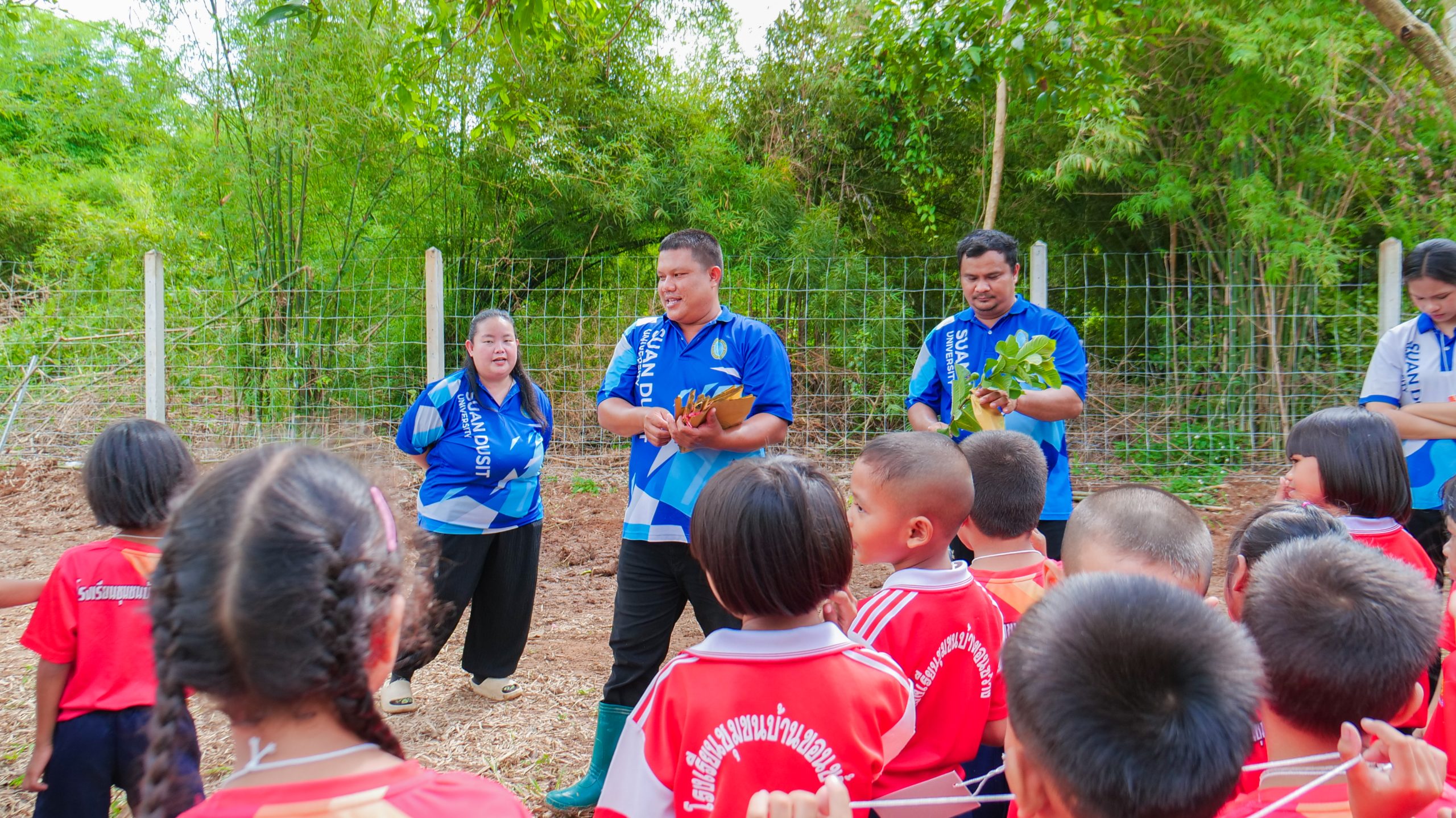 มหาวิทยาลัยสวนดุสิต ศูนย์การศึกษา นครนายก นำโดย คณะอาจารย์ บุคลากร และนักศึกษา หลักสูตรศึกษาศาสตรบัณฑิต สาขาวิชาการศึกษาปฐมวัย และสาขาวิชาการประถมศึกษา จัดกิจกรรมโครงการ “เดิน เล่น เกษตร เพลิน จากศูนย์การเรียนรู้สู่เครือข่ายสัมพันธ์” ให้แก่เด็กนักเรียนโรงเรียนชุมชนบ้านขอนขว้าง จังหวัดปราจีนบุรี จำนวน 65 คน โดยมีวัตถุประสงค์ เพื่อให้ความรู้ด้านเกษตรปลอดภัยให้กับนักเรียน นักศึกษา และชุมชน หรือผู้ที่สนใจทั่วไป และเป็นแหล่งกิจกรรมนันทนาการสำหรับเด็กในโรงเรียนและพื้นที่ใกล้เคียง ในการเรียนรู้จากประสบการณ์ที่เกิดขึ้นนอกห้องเรียน และได้การลงมือปฏิบัติจริง ในวันที่ 18 กันยายน 2568 ณ ศูนย์การเรียนรู้เกษตรปลอดภัยและนันทนาการ จังหวัดปราจีนบุรี