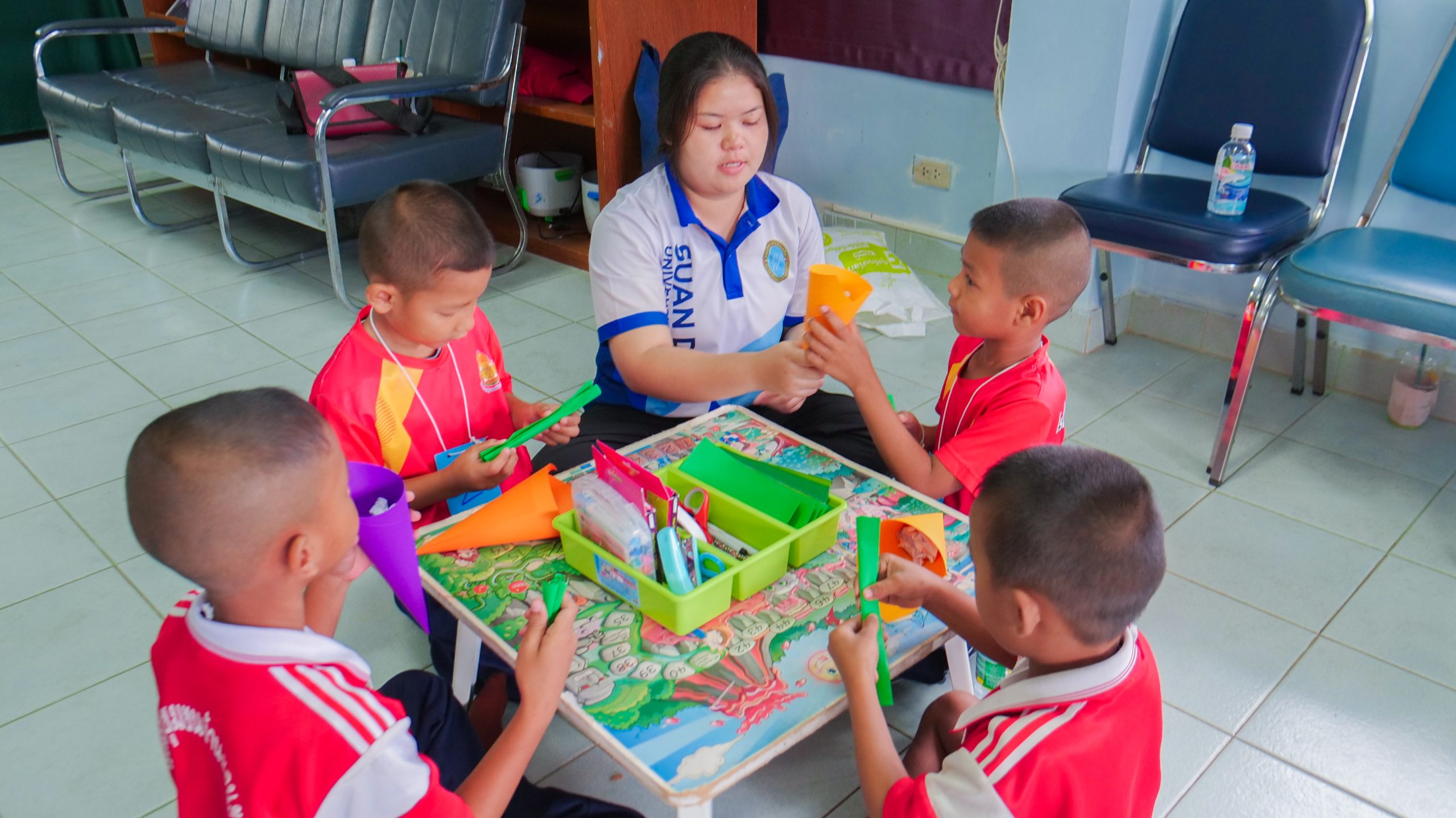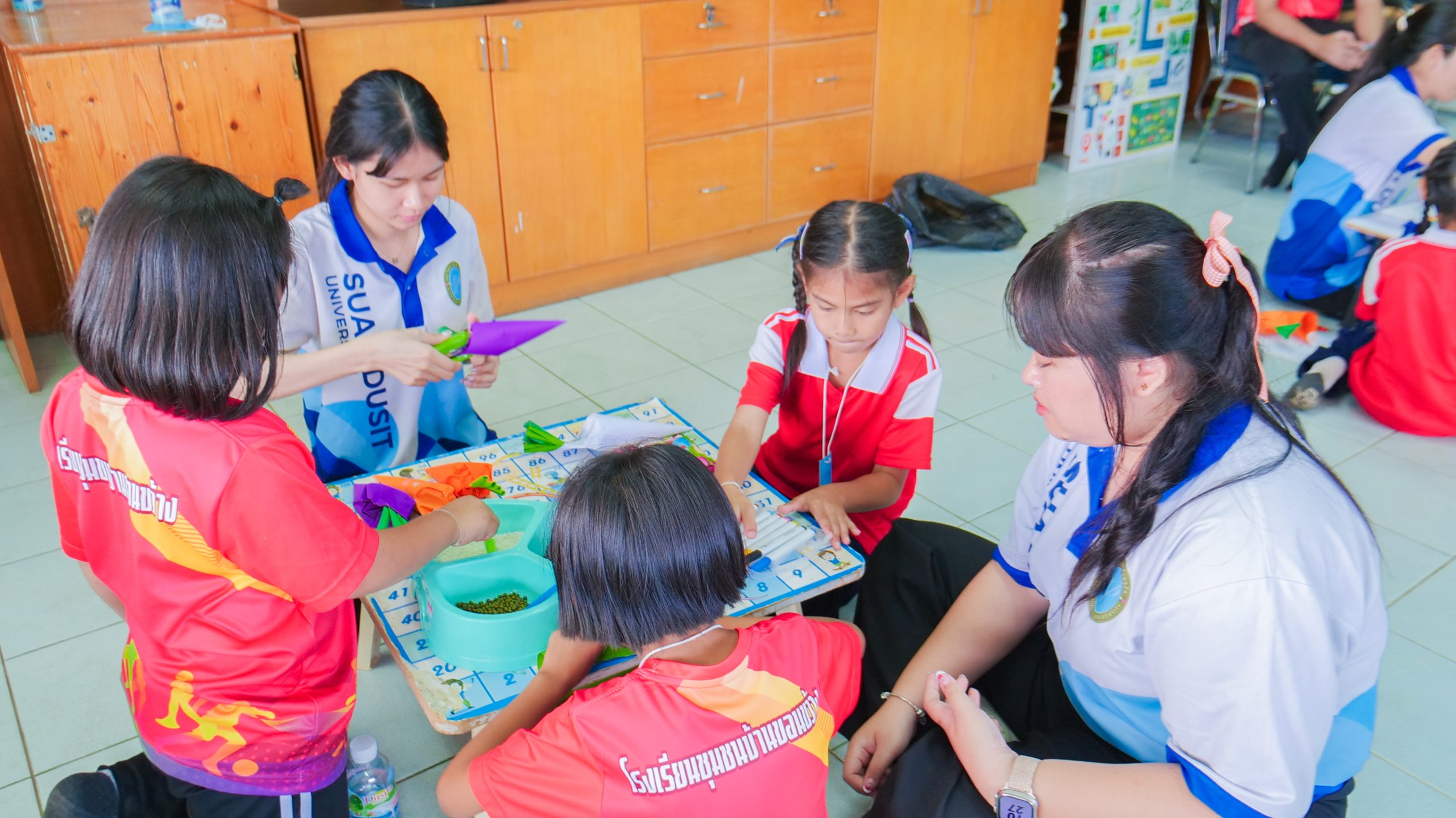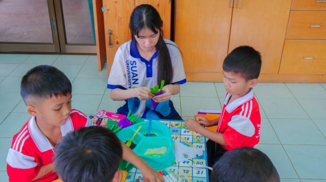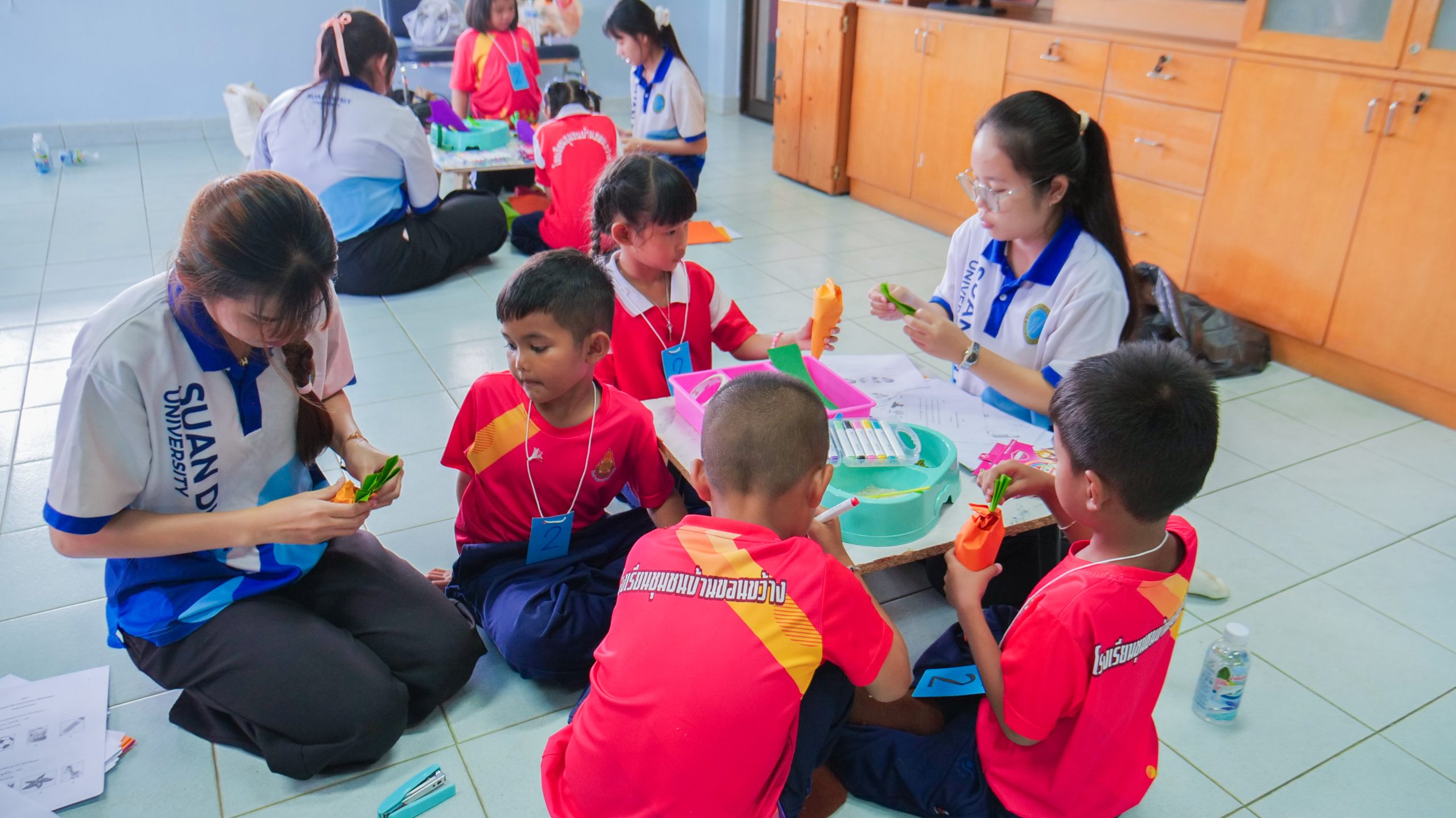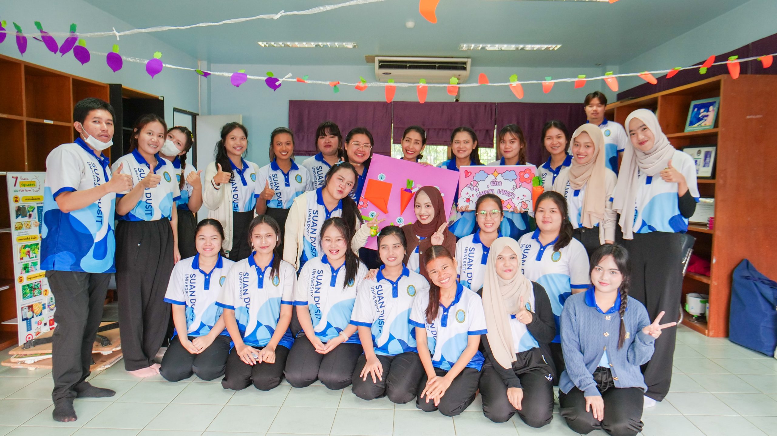 มหาวิทยาลัยสวนดุสิต ศูนย์การศึกษา นครนายก นำโดย คณะอาจารย์ บุคลากร และนักศึกษา หลักสูตรศึกษาศาสตรบัณฑิต สาขาวิชาการศึกษาปฐมวัย และสาขาวิชาการประถมศึกษา จัดกิจกรรมโครงการ “เดิน เล่น เกษตร เพลิน จากศูนย์การเรียนรู้สู่เครือข่ายสัมพันธ์” ให้แก่เด็กนักเรียนโรงเรียนชุมชนบ้านขอนขว้าง จังหวัดปราจีนบุรี จำนวน 65 คน โดยมีวัตถุประสงค์ เพื่อให้ความรู้ด้านเกษตรปลอดภัยให้กับนักเรียน นักศึกษา และชุมชน หรือผู้ที่สนใจทั่วไป และเป็นแหล่งกิจกรรมนันทนาการสำหรับเด็กในโรงเรียนและพื้นที่ใกล้เคียง ในการเรียนรู้จากประสบการณ์ที่เกิดขึ้นนอกห้องเรียน และได้การลงมือปฏิบัติจริง ในวันที่ 18 กันยายน 2568 ณ ศูนย์การเรียนรู้เกษตรปลอดภัยและนันทนาการ จังหวัดปราจีนบุรี