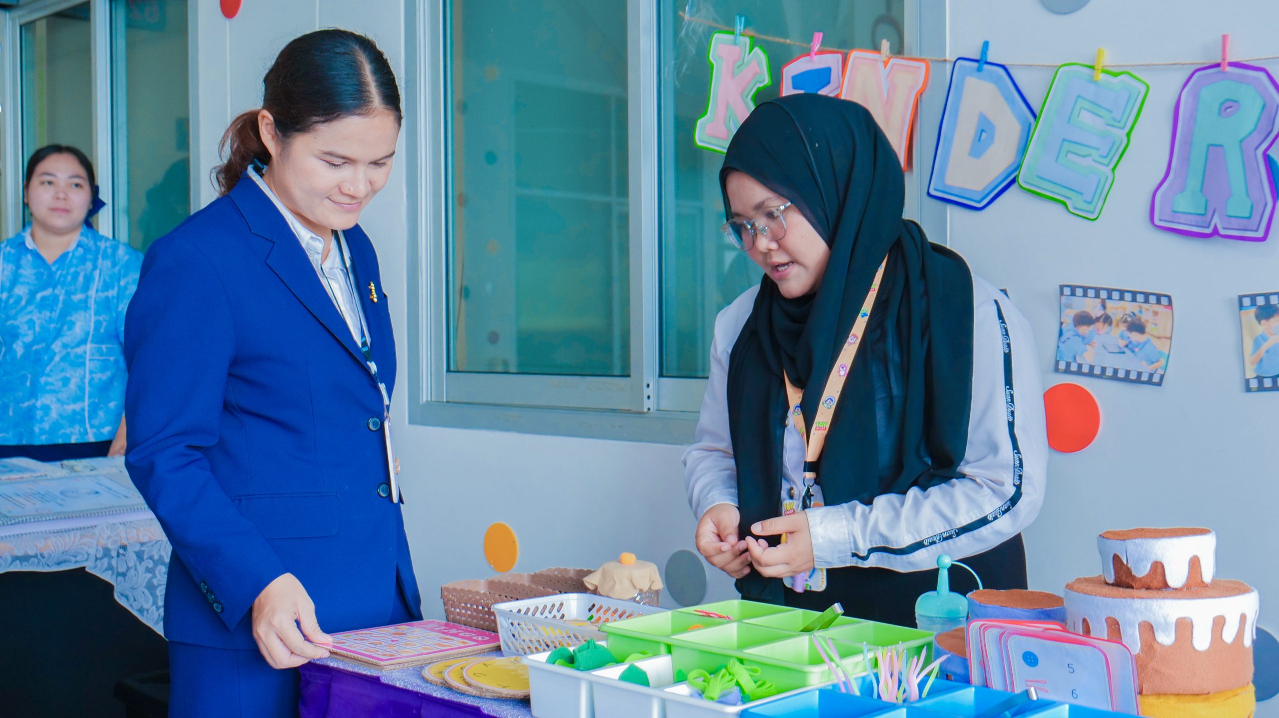 ในวันที่ 26 กันยายน 2568 นักศึกษาฝึกประสบการณ์วิชาชีพครู ชั้นปีที่ 4 หลักสูตรการศึกษาปฐมวัย ศูนย์การศึกษา นครนายก จัดนิทรรศการ “แสดงผลงานการฝึกประสบการณ์วิชาชีพครู” โดยมีอาจารย์ประจำหลักสูตรการศึกษาปฐมวัย อาจารย์นิเทศก์ อาจารย์พี่เลี้ยง เข้าเยี่ยมชมการแสดงผลงานของนักศึกษา จากนั้นอาจารย์ประจำหลักสูตรและฝ่ายวิชาการระดับการศึกษาปฐมวัยของโรงเรียนสาธิตละอออุทิศ ศูนย์การศึกษา นครนายก ร่วมกันแลกเปลี่ยนเรียนรู้เกี่ยวกับข้อสังเกต ในภาคเรียนที่ 1 เพื่อนำมาเป็นข้อมูลในการพัฒนา ปรับปรุงการฝึกประสบการณ์วิชาชีพของนักศึกษาในภาคเรียนที่ 2 ต่อไป ทั้งนี้ระหว่างการฝึกประสบการณ์วิชาชีพครูในภาคเรียนที่ 1 อาจารย์ประจำหลักสูตรการศึกษาปฐมวัยและฝ่ายวิชาการระดับการศึกษาปฐมวัยของโรงเรียนสาธิตละอออุทิศ ศูนย์การศึกษา นครนายก อาจารย์พี่เลี้ยง อาจารย์นิเทศก์มีการร่วมกันดูแลนักศึกษาในการฝึกประสบการณ์อย่างต่อเนื่อง ณ มหาวิทยาลัยสวนดุสิต ศูนย์การศึกษา นครนายก