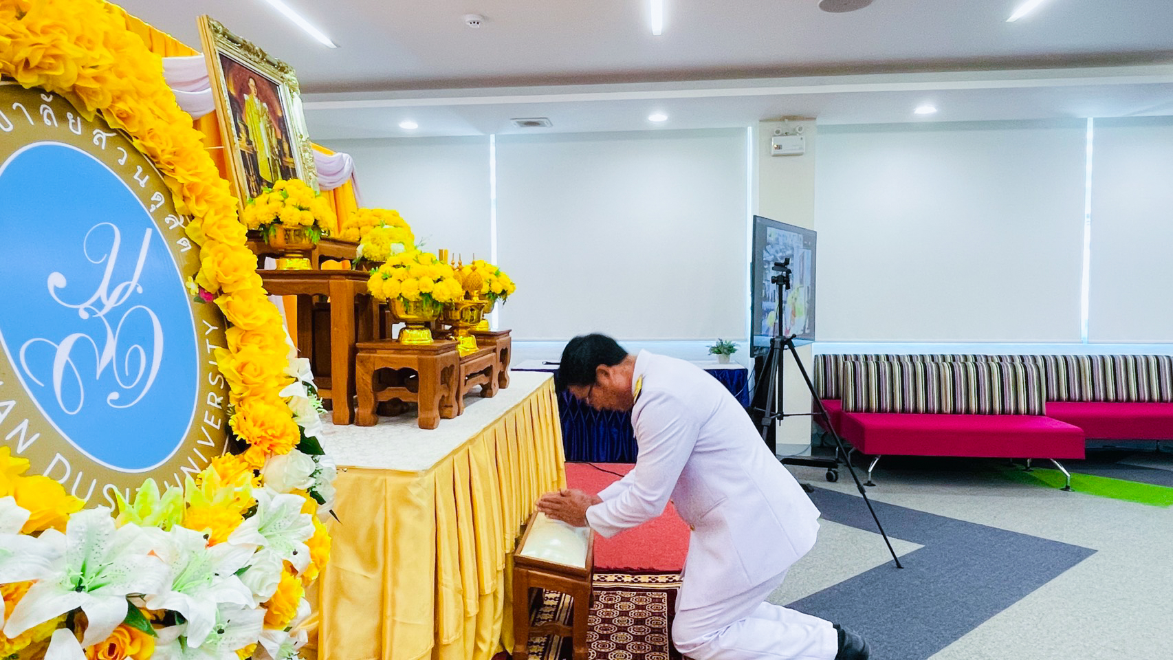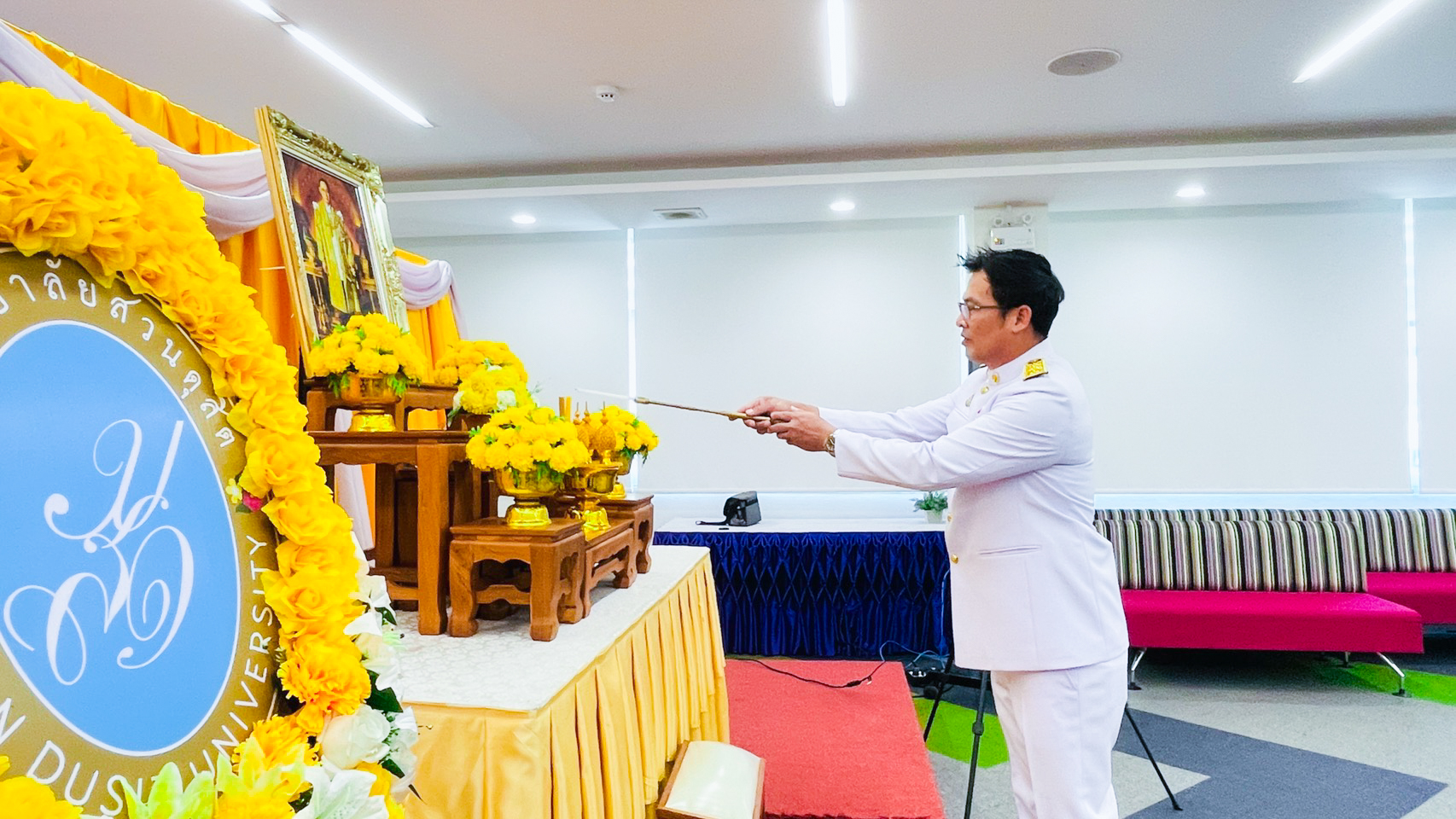 มหาวิทยาลัยสวนดุสิต ศูนย์การศึกษา นครนายก ร่วมพิธีวางพวงมาลาและกล่าวน้อมรำลึกในพระมหากรุณาธิคุณ เนื่องในวันคล้ายวันสวรรคตพระบาทสมเด็จพระบรมชนกาธิเบศร มหาภูมิพลอดุลยเดชมหาราช บรมนาถบพิตร 13 ตุลาคม 2568 เพื่อรำลึกในพระมหากรุณาธิคุณอันหาที่สุดมิได้ของพระบาทสมเด็จพระบรมชนกาธิเบศร มหาภูมิพลอดุลยเดชมหาราช บรมนาถบพิตร นำโดย ผู้ช่วยศาสตราจารย์ว่าที่ร้อยตรี ดร.มงคลชัย บุญแก้ว ผู้อำนวยการศูนย์การศึกษา นครนายก คณะคณาจารย์หลักสูตรการศึกษาปฐมวัย และหลักสูตรการประถมศึกษา บุคลากรทุกฝ่ายร่วมในพิธี ในวันที่ 10 ตุลาคม 2568 ณ ห้องประชุมเฟื่องฟ้า มหาวิทยาลัยสวนดุสิต ศูนย์การศึกษา นครนายก