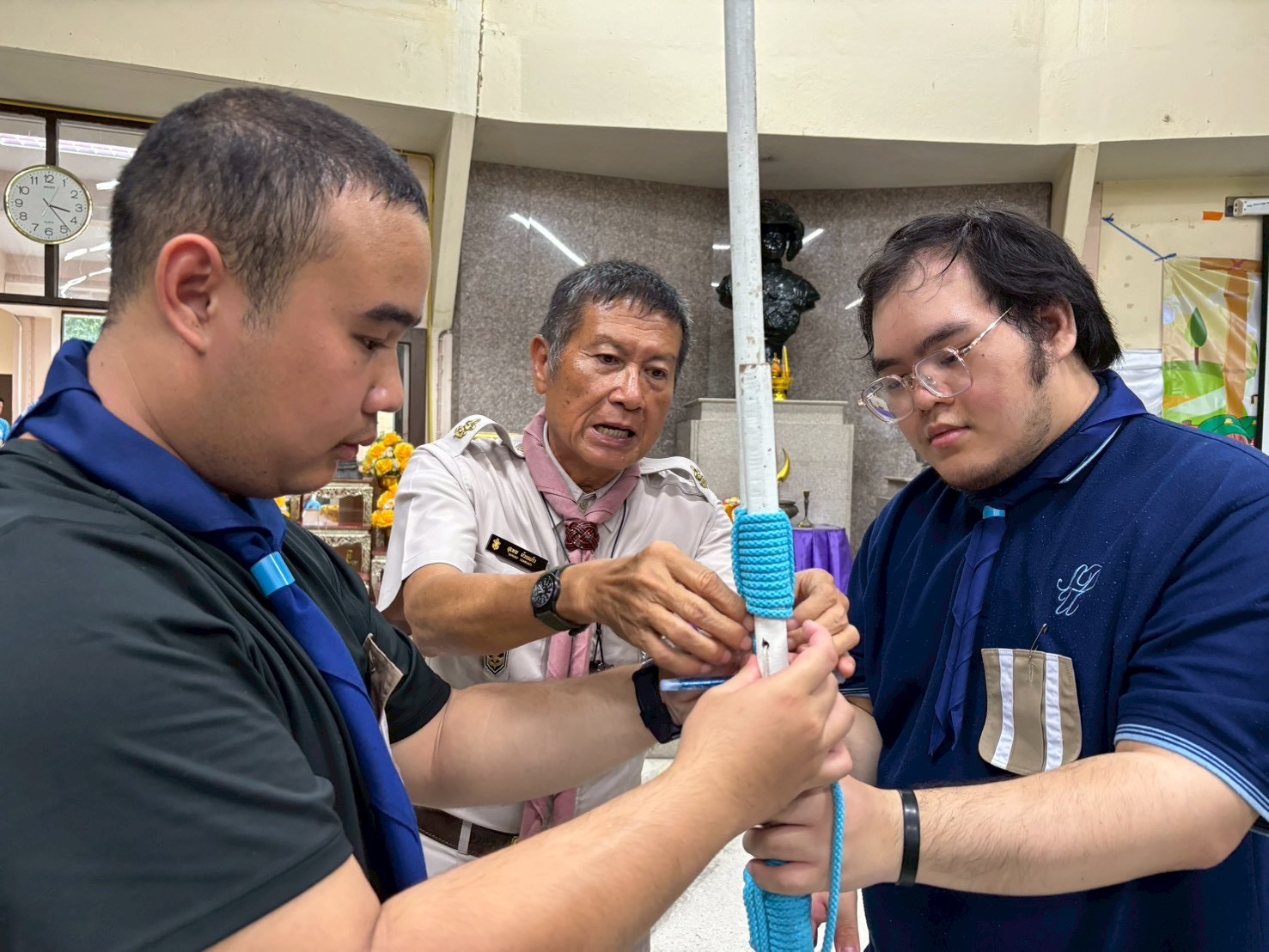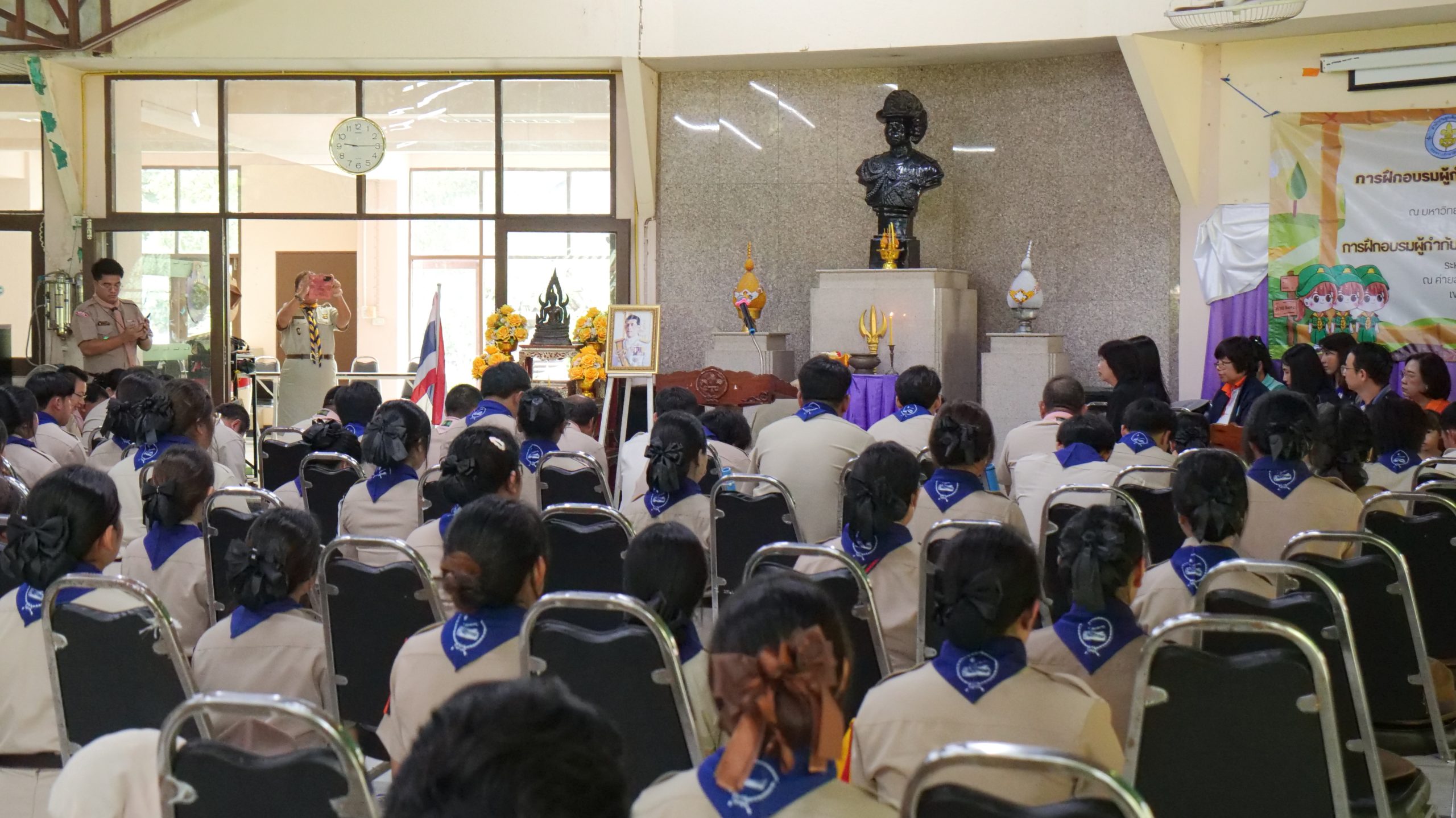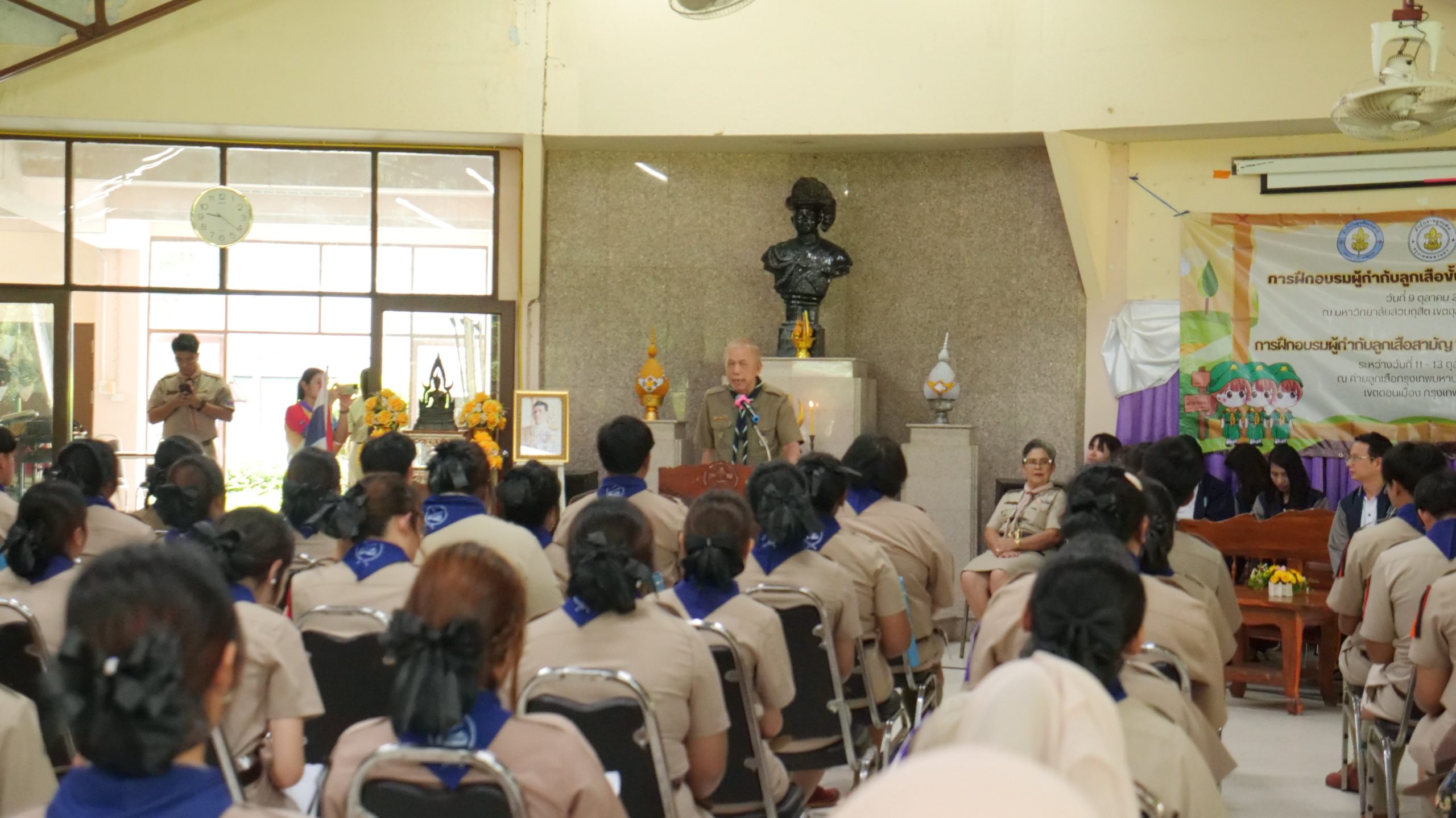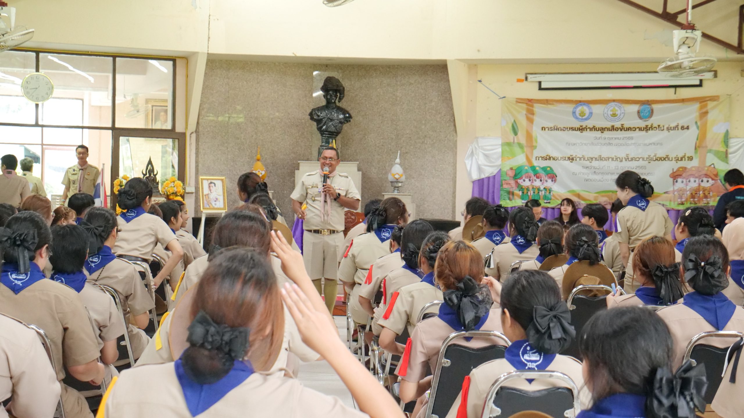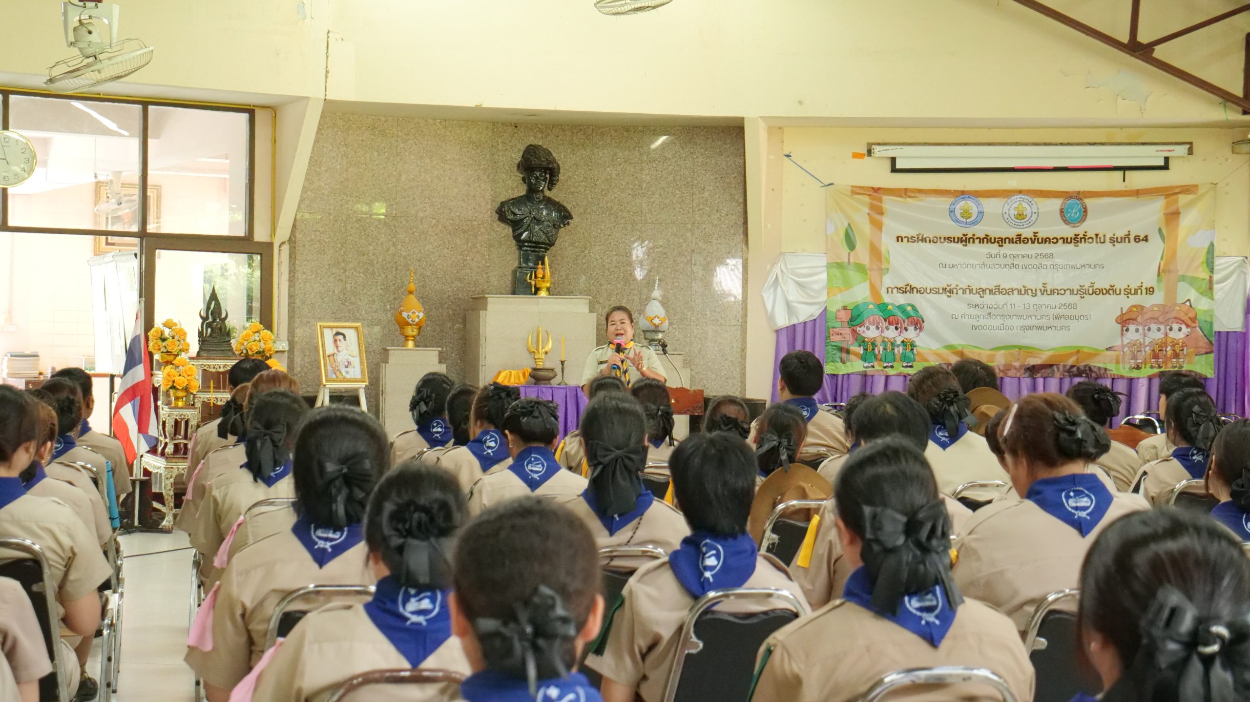 มหาวิทยาลัยสวนดุสิต ศูนย์การศึกษา นครนายก หลักสูตรศึกษาศาสตรบัณฑิต สาขาวิชาการประถมศึกษา นำนักศึกษาชั้นปีที่ 3 เข้ารับการฝึกอบรมผู้กำกับลูกเสือสามัญ ขั้นความรู้เบื้องต้น (S.B.T.C) รุ่นที่ 19 ในระหว่างวันที่ 11 – 13 ตุลาคม 2568 โดยมีพิธีเปิดในวันเสาร์ที่ 11 ตุลาคม พ.ศ. 2568 ณ ค่ายลูกเสือกรุงเทพมหานคร (พิศยบุตร) เขตดอนเมือง กรุงเทพมหานคร โดยมีนักศึกษาหลักสูตรศึกษาศาสตรบัณฑิต สาขาวิชาการประถมศึกษา มหาวิทยาลัยสวนดุสิต ชั้นปีที่ 3 จากกรุงเทพมหานคร วิทยาเขตสุพรรณบุรี และศูนย์การศึกษา นครนายก เข้าร่วมฝึกอบรมจำนวน 96 คน โดยได้รับเกียรติจาก ว่าที่ร้อยโท ณัฏฐ์ ยุวยุทธ ผู้ตรวจการลูกเสือแห่งชาติ เป็นประธานในพิธีเปิดการฝึกอบรม และกล่าวให้โอวาทถึงความสำคัญของกิจการลูกเสือแก่ผู้เข้ารับการฝึกอบรม โดยในกิจกรรมผู้ช่วยศาสตราจารย์ อัษฎา พลอยโสภณ รองคณบดีคณะครุศาสตร์ มหาวิทยาลัยสวนดุสิต พร้อมด้วยคณาจารย์ของหลักสูตรฯ ได้กล่าวให้กำลังใจแก่นักศึกษาผู้เข้ารับการฝึกอบรม