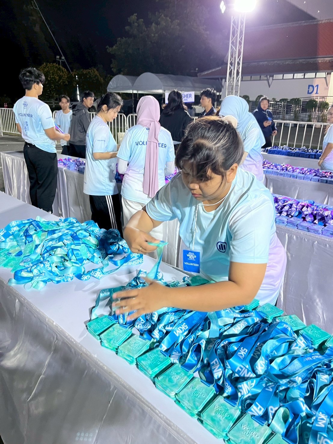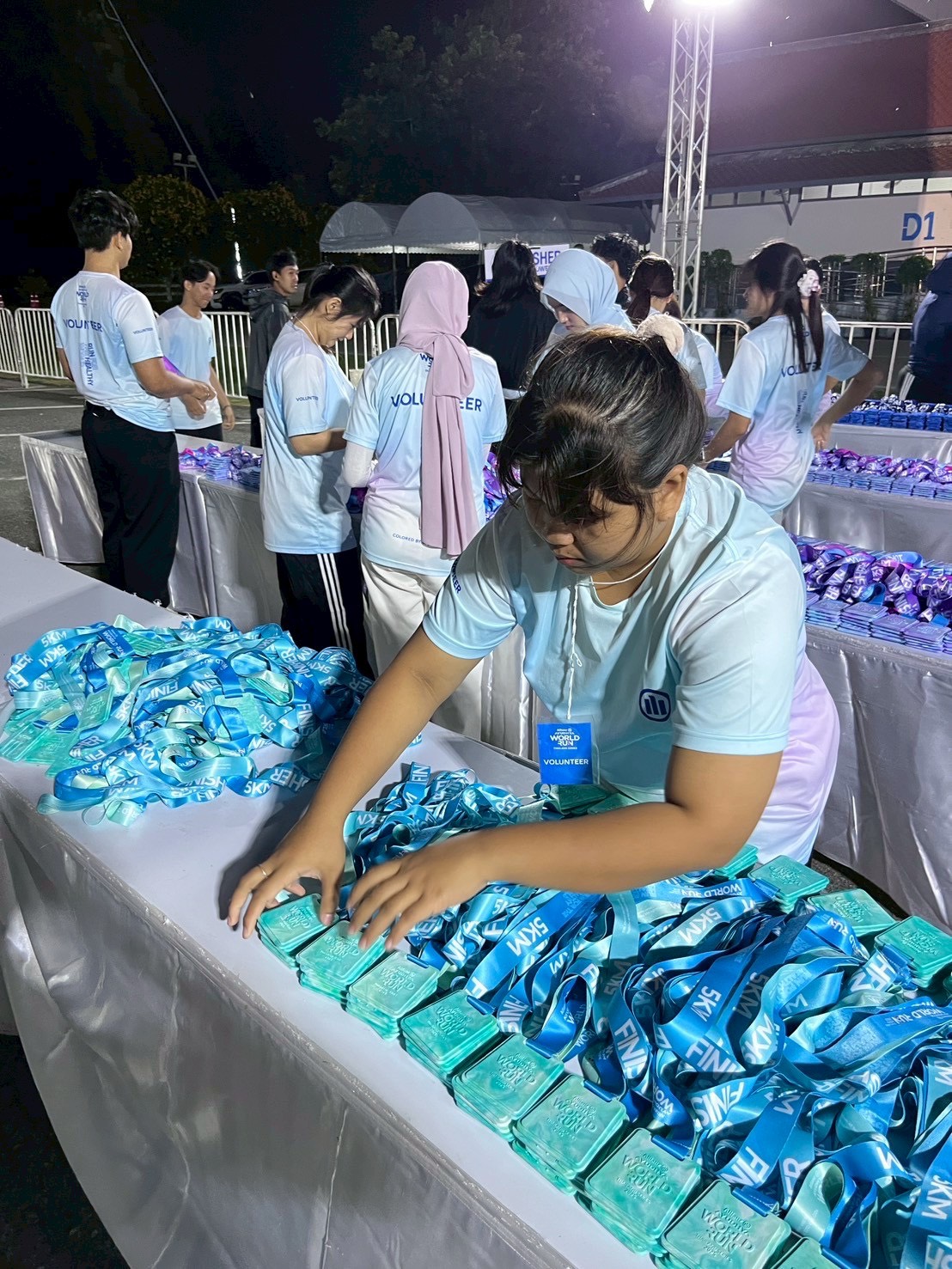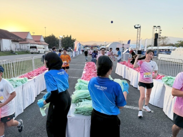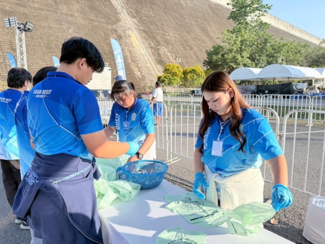 มหาวิทยาลัยสวนดุสิต ศูนย์การศึกษา นครนายก เข้าร่วมการจัดกิจกรรม “ALLIANZ AYUDHYA WORLD RUN THAILAND SERIES 2025” เพื่อสร้างสุขภาพและส่งเสริมความยั่งยืน โดยมีการแข่งขันวิ่งมาราธอนใน 4 ระยะ ได้แก่ ฮาล์ฟมาราธอน 21.1 กิโลเมตร, มินิมาราธอน 10 กิโลเมตร, ไมโครมาราธอน 5 กิโลเมตร และแฟมิลี่ฟันรัน 3 กิโลเมตร โดยมุ่งเน้นการจัดกิจกรรมแบบ “Zero Waste to Landfill” หรือ งานวิ่งไร้ขยะ ลดการใช้พลาสติกเป็นมิตรต่อสิ่งแวดล้อม และการจัดจุดคัดแยกขยะอย่างถูกต้อง มีการจัดทำเหรียญรางวัลเป็นเหรียญรักษ์โลกที่ผลิตจากฝาขวดน้ำรีไซเคิลที่ช่วยลดการใช้โลหะแต่ยังคงดีไซน์สวยงามและทรงคุณค่า และภายในงานมีการจัดโซน Expo รวบรวมอาหารพื้นเมืองและสินค้าท้องถิ่นจากชุมชนในจังหวัดนครนายก เพื่อสนับสนุนและกระตุ้นเศรษฐกิจท้องถิ่นที่สอดคล้องกับเป้าหมายการพัฒนาที่ยั่งยืน (SDGs) โดยมีบุคลากร นักศึกษา และศิษย์เก่า จำนวน 169 คน เป็นอาสาสมัคร (Volunteer) ดำเนินกิจกรรมดังกล่าว เมื่อวันที่ 29 – 30 พฤศจิกายน 2568 ณ เขื่อนขุนด่านปราการชล จังหวัดนครนายก