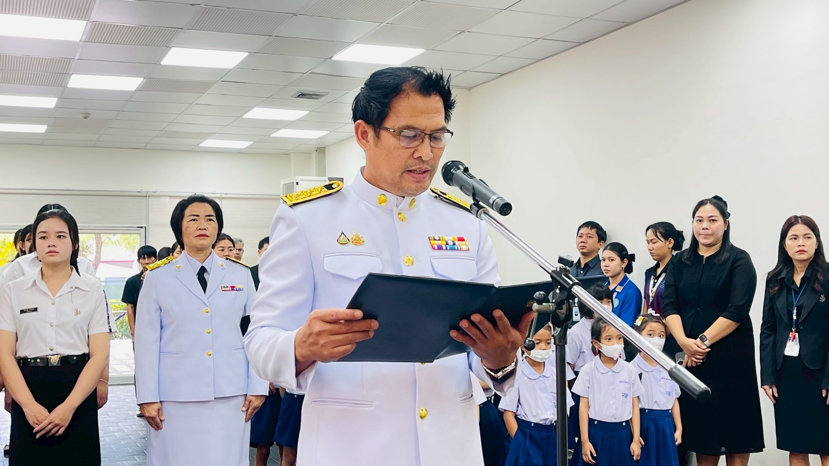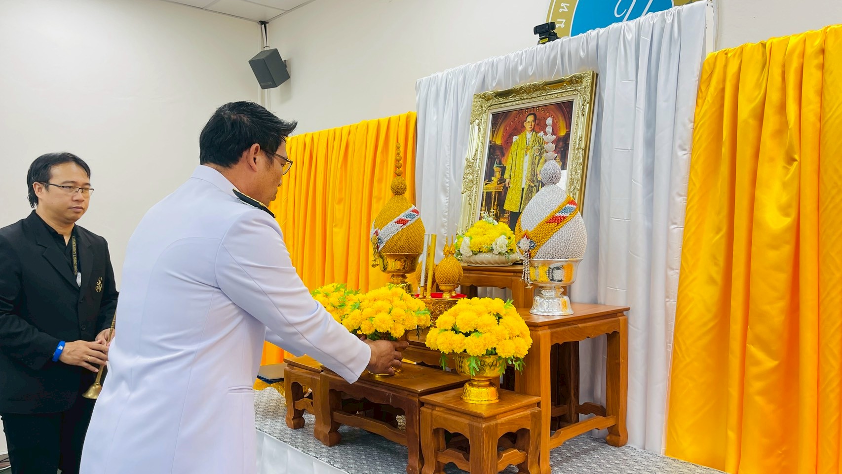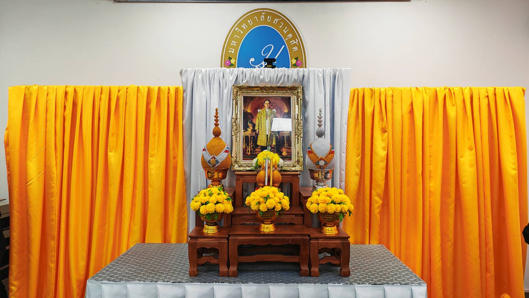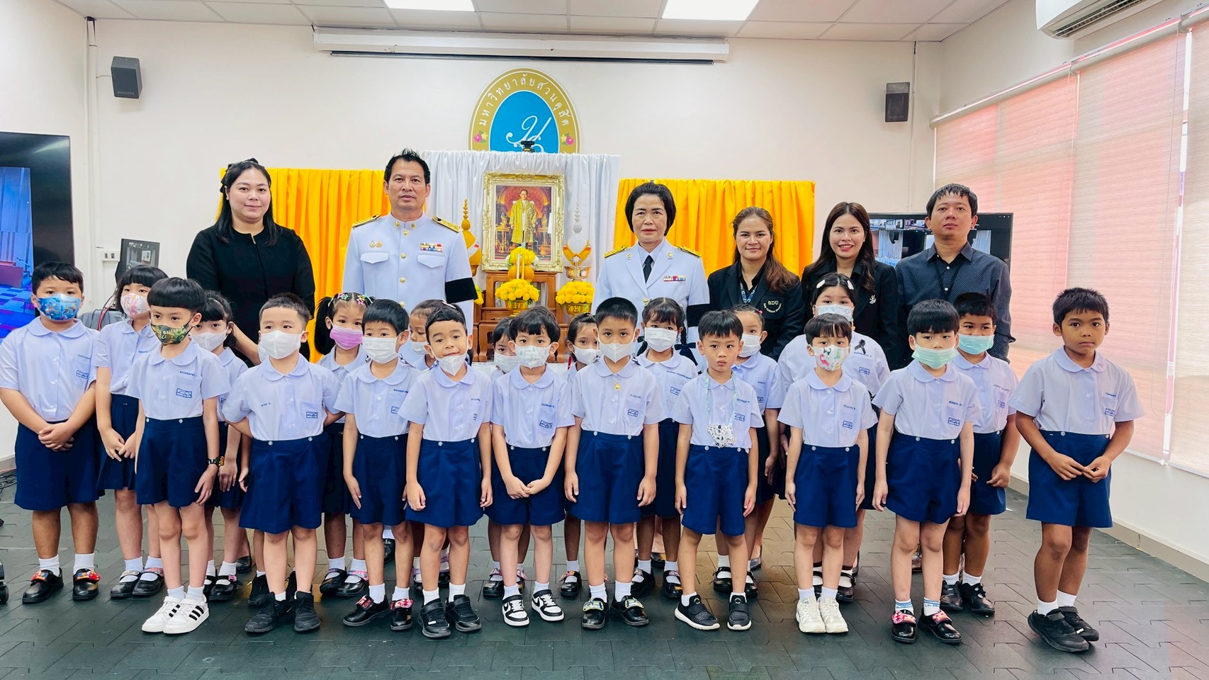 มหาวิทยาลัยสวนดุสิต ศูนย์การศึกษา นครนายก จัดกิจกรรมพิธีน้อมรำลึกเนื่องในวันคล้ายวันพระบรมราชสมภพพระบาทสมเด็จพระบรมชนกาธิเบศร มหาภูมิพลอดุลยเดชมหาราช บรมนาถบพิตร วันชาติ และวันพ่อแห่งชาติ นำโดย ผู้ช่วยศาสตราจารย์ ว่าที่ร้อยตรี ดร. มงคลชัย บุญแก้ว พร้อมด้วยผู้บริหารโรงเรียนสาธิตละอออุทิศ ศูนย์การศึกษา นครนายก คณะคณาจารย์หลักสูตรการศึกษาปฐมวัยและหลักสูตรการประถมศึกษา บุคลากรทุกฝ่าย นักศึกษาและนักเรียน ร่วมในพิธี ในวันที่ 4 ธันวาคม 2568 ณ ห้องประชุมอเนกประสงค์ใหญ่ มหาวิทยาลัยสวนดุสิต ศูนย์ศึกษา นครนายก