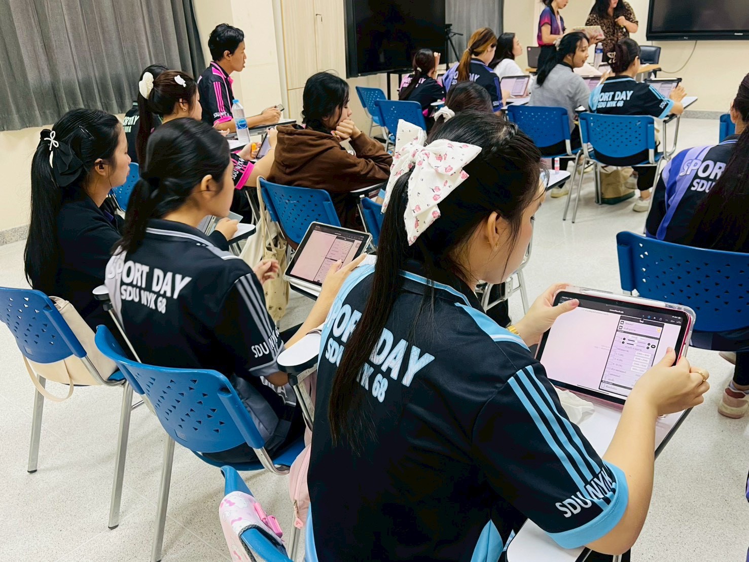 มหาวิทยาลัยสวนดุสิต ศูนย์การศึกษา นครนายก หลักสูตรศึกษาศาสตรบัณฑิต สาขาวิชาการศึกษาปฐมวัย จัดกิจกรรมความร่วมมือรายวิชาแลกเปลี่ยนเรียนรู้การจัดการเรียนการสอนร่วมกับโรงเรียนสาธิตละอออุทิศ นำโดยอาจารย์อัญชิษฐา ปิยะจิตติ อาจารย์ผู้สอนรายวิชา ศิลปะ สื่อสร้างสรรค์ และนิทรรศการสำหรับเด็กในยุคดิจิทัล อบรมเรื่องการใช้เทคโนโลยีสร้างงานศิลปะ ในวันที่ 17 ธันวาคม 2568 ณ ห้อง 555 มหาวิทยาลัยสวนดุสิต ศูนย์การศึกษา นครนายก