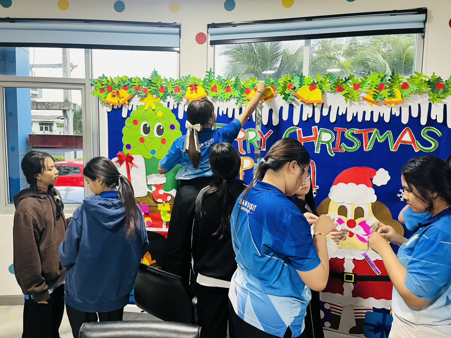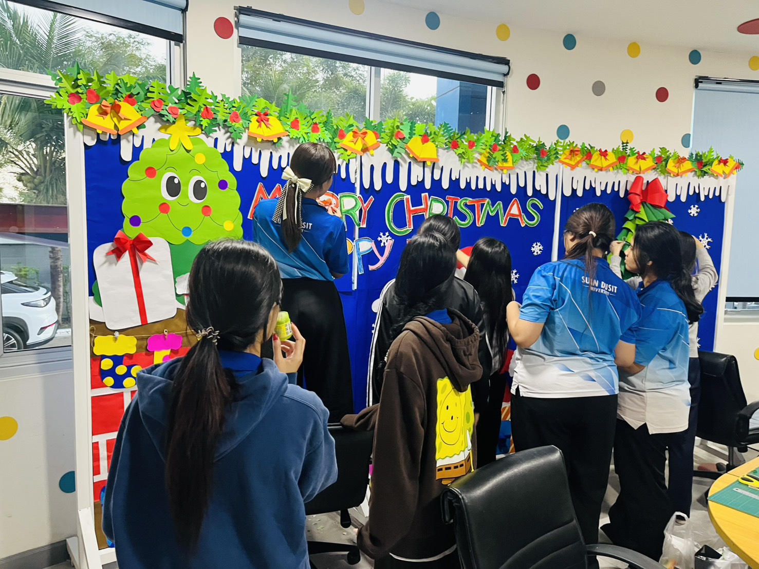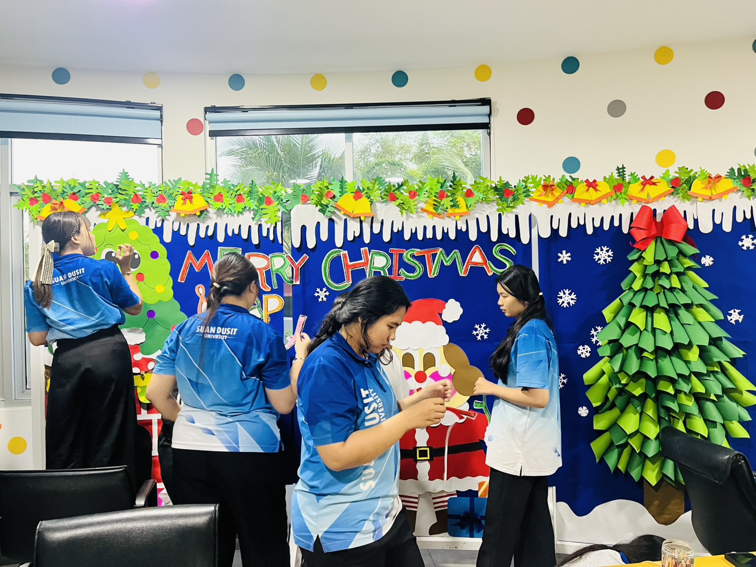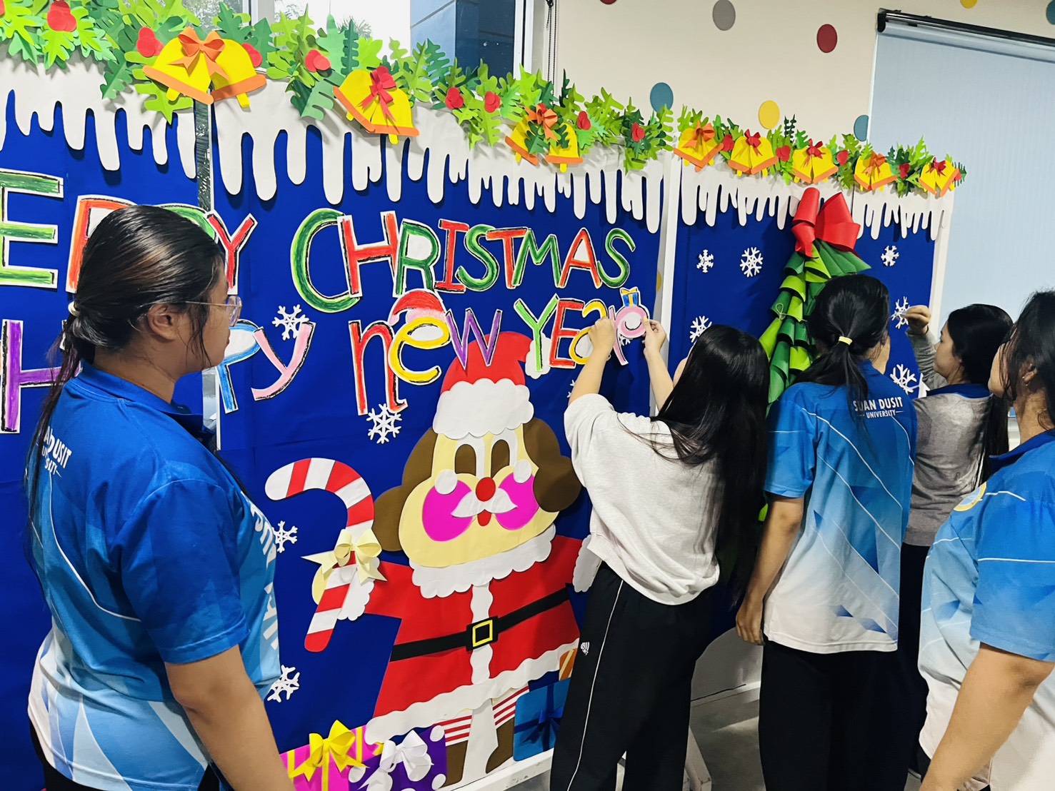 มหาวิทยาลัยสวนดุสิต ศูนย์การศึกษา นครนายก หลักสูตรศึกษาศาสตรบัณฑิต สาขาวิชาการศึกษาปฐมวัย จัดกิจกรรมความร่วมมือรายวิชาแลกเปลี่ยนเรียนรู้การจัดการเรียนการสอนร่วมกับโรงเรียนสาธิตละอออุทิศ นำโดยอาจารย์อัญชิษฐา ปิยะจิตติ อาจารย์ผู้สอนรายวิชา ศิลปะ สื่อสร้างสรรค์ และนิทรรศการสำหรับเด็กในยุคดิจิทัล พานักศึกษาให้ความรู้ป้ายนิเทศแบบ Interractive Board ธีมคริสต์มาสและปีใหม่ กับผู้ปกครองและผู้ที่สนใจ ในวันที่ 19 ธันวาคม 2568 เวลา 13.00 – 16.00 น. ณ บริเวณหน้าอาคาร 6 ศูนย์การศึกษา นครนายก
