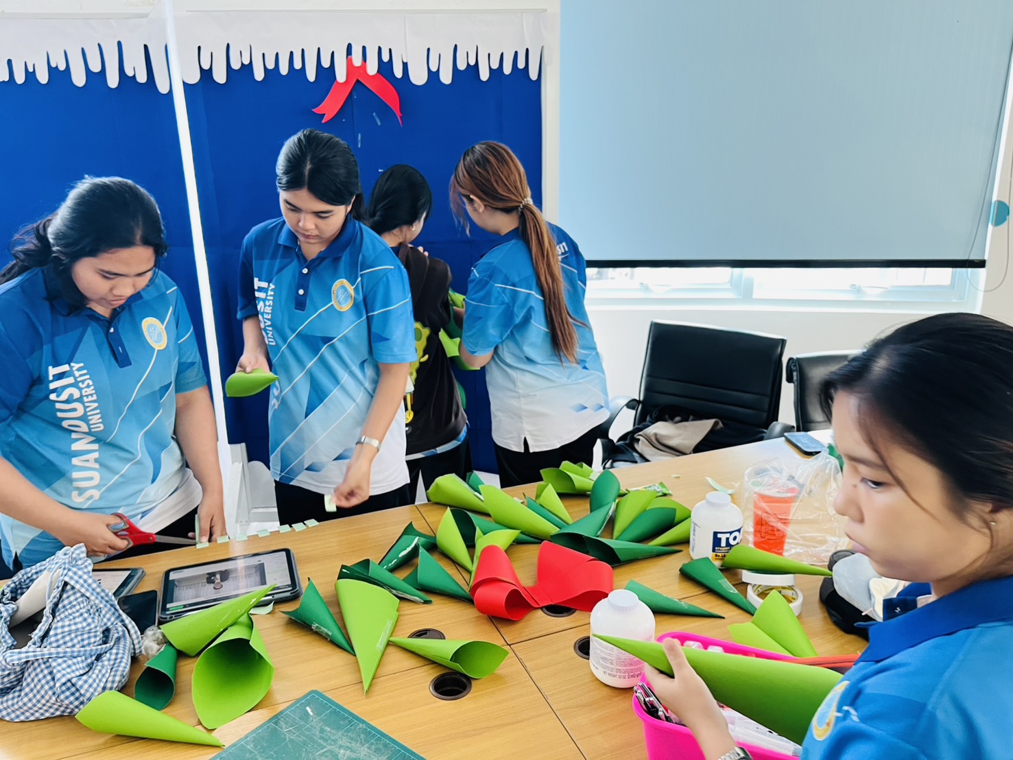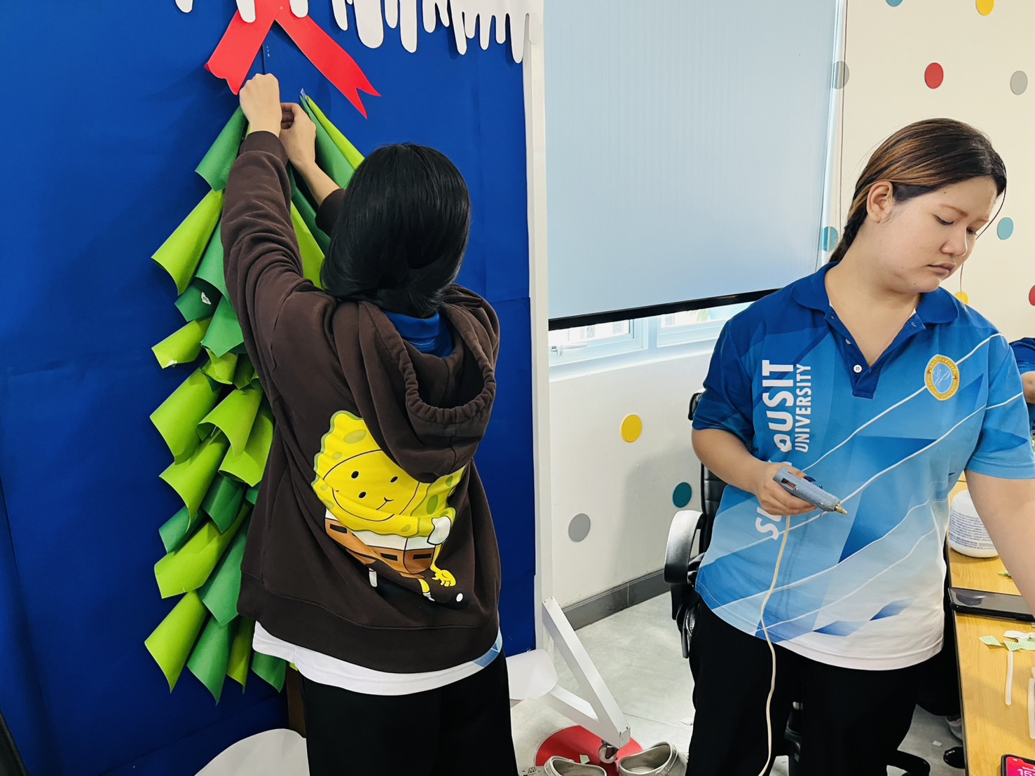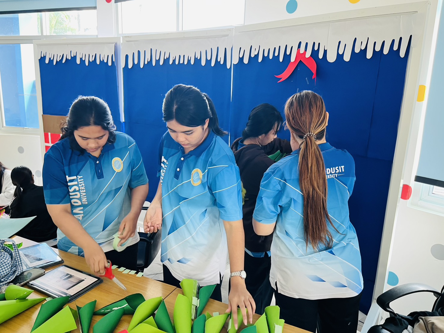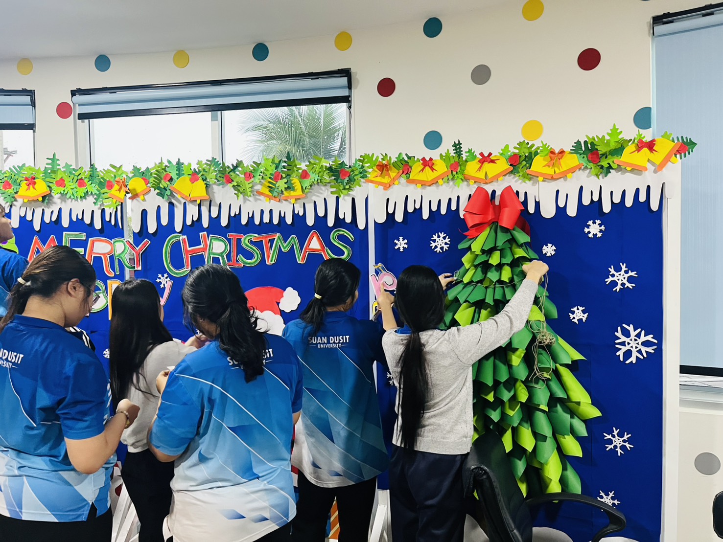 มหาวิทยาลัยสวนดุสิต ศูนย์การศึกษา นครนายก หลักสูตรศึกษาศาสตรบัณฑิต สาขาวิชาการศึกษาปฐมวัย จัดกิจกรรมความร่วมมือรายวิชาแลกเปลี่ยนเรียนรู้การจัดการเรียนการสอนร่วมกับโรงเรียนสาธิตละอออุทิศ นำโดยอาจารย์อัญชิษฐา ปิยะจิตติ อาจารย์ผู้สอนรายวิชา ศิลปะ สื่อสร้างสรรค์ และนิทรรศการสำหรับเด็กในยุคดิจิทัล พานักศึกษาให้ความรู้ป้ายนิเทศแบบ Interractive Board ธีมคริสต์มาสและปีใหม่ กับผู้ปกครองและผู้ที่สนใจ ในวันที่ 19 ธันวาคม 2568 เวลา 13.00 – 16.00 น. ณ บริเวณหน้าอาคาร 6 ศูนย์การศึกษา นครนายก