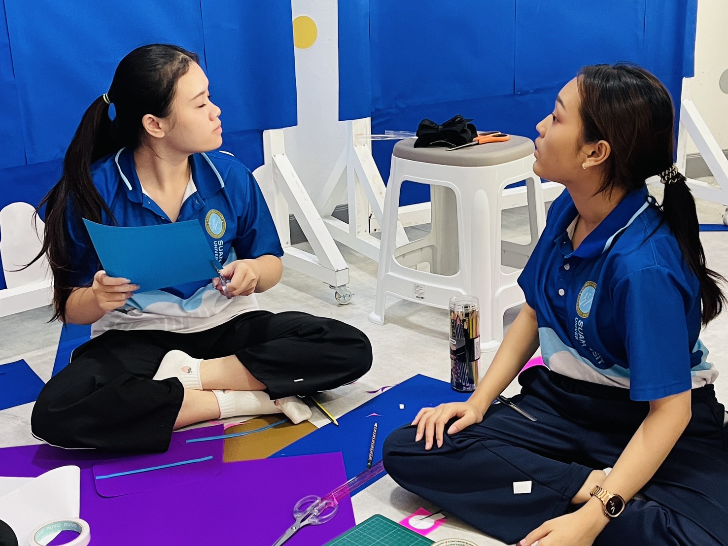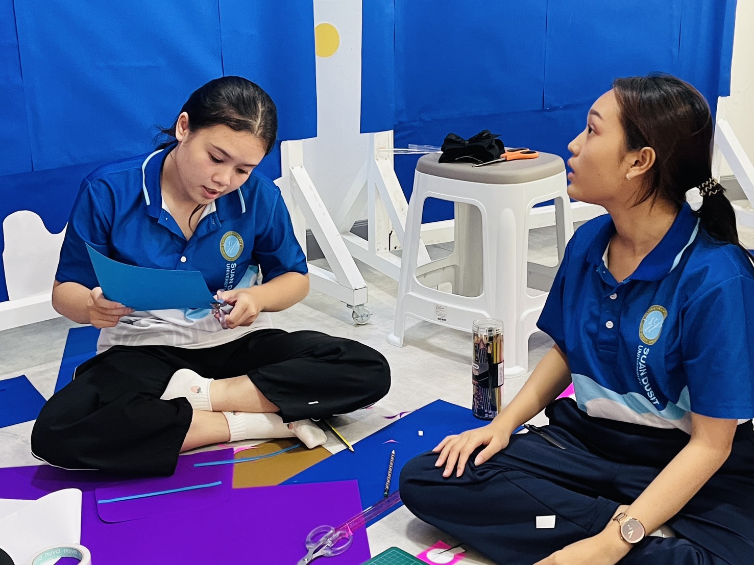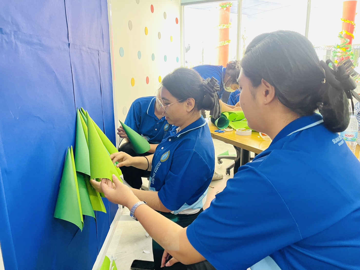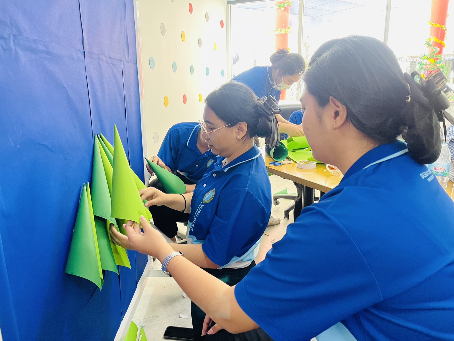 มหาวิทยาลัยสวนดุสิต ศูนย์การศึกษา นครนายก หลักสูตรศึกษาศาสตรบัณฑิต สาขาวิชาการศึกษาปฐมวัย จัดกิจกรรมความร่วมมือรายวิชาแลกเปลี่ยนเรียนรู้การจัดการเรียนการสอนร่วมกับโรงเรียนสาธิตละอออุทิศ นำโดยอาจารย์อัญชิษฐา ปิยะจิตติ อาจารย์ผู้สอนรายวิชา ศิลปะ สื่อสร้างสรรค์ และนิทรรศการสำหรับเด็กในยุคดิจิทัล พานักศึกษาให้ความรู้ป้ายนิเทศแบบ Interractive Board ธีมคริสต์มาสและปีใหม่ กับผู้ปกครองและผู้ที่สนใจ ในวันที่ 19 ธันวาคม 2568 เวลา 13.00 – 16.00 น. ณ บริเวณหน้าอาคาร 6 ศูนย์การศึกษา นครนายก