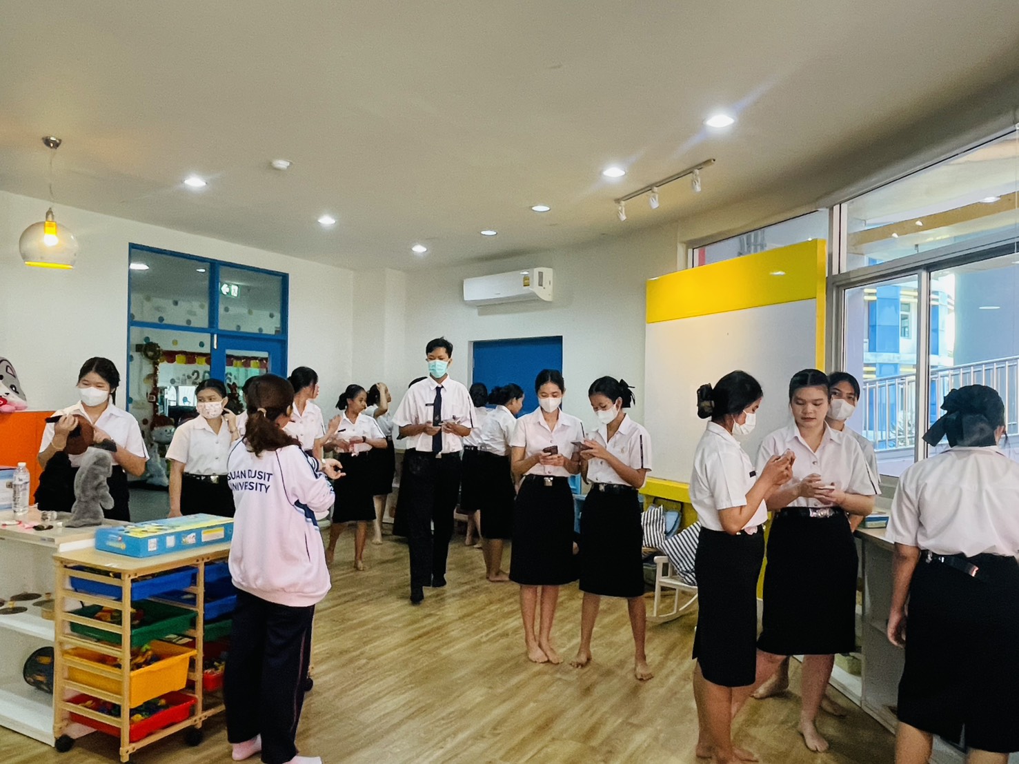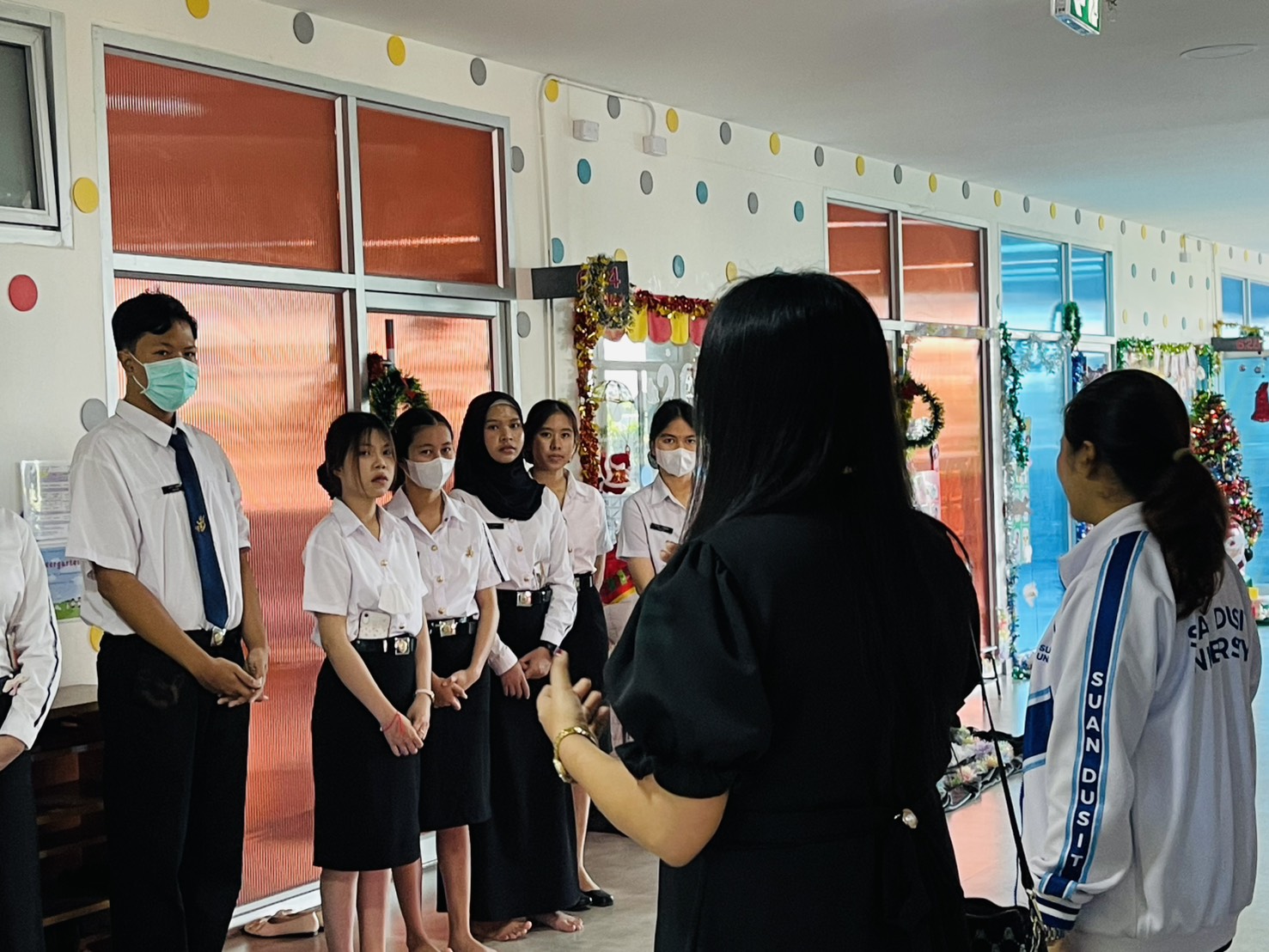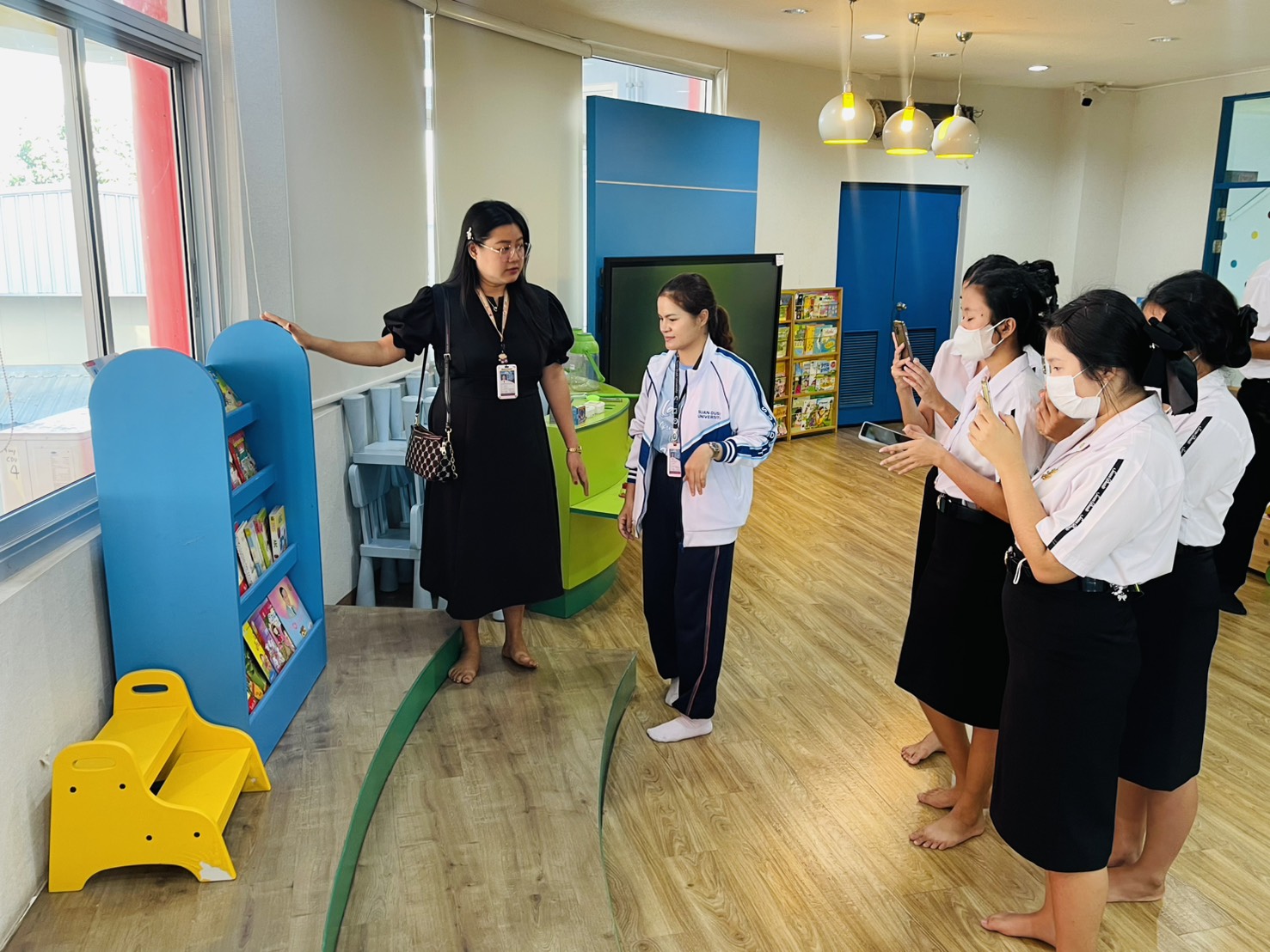 มหาวิทยาลัยสวนดุสิต ศูนย์การศึกษา นครนายก หลักสูตรศึกษาศาสตรบัณฑิต สาขาวิชาการศึกษาปฐมวัย จัดกิจกรรมความร่วมมือรายวิชาแลกเปลี่ยนเรียนรู้การจัดการเรียนการสอนร่วมกับโรงเรียนสาธิตละอออุทิศ นำโดยอาจารย์ฉัตรทราวดี บุญถนอม อาจารย์ผู้สอนรายวิชาภาษาและการรู้หนังสือสำหรับเด็กปฐมวัย พานักศึกษาชั้นปีที่ 1 เข้าสังเกตห้องสมุดของเล่นและห้องสมุดนิทาน โดยมีคุณครูวัลยา โฉมทนงค์ (หัวหน้าฝ่ายวิชาการ) พาเยี่ยมชมชั้นเรียนปฐมวัย ในวันที่ 22 ธันวาคม 2568 เวลา 09.00 – 12.00 น. ณ โรงเรียนสาธิตละอออุทิศ ศูนย์การศึกษา นครนายก