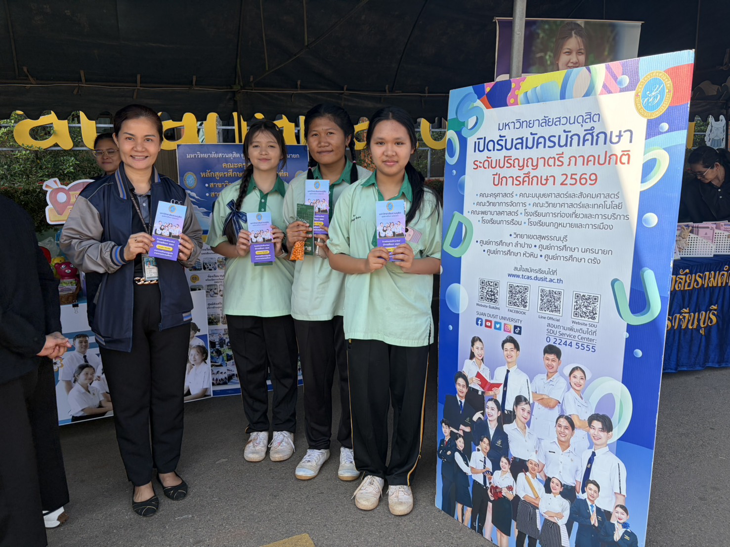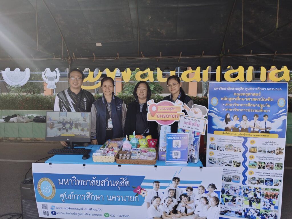 มหาวิทยาลัยสวนดุสิต ศูนย์การศึกษา นครนายก นำโดย อาจารย์หลักสูตรศึกษาศาสตรบัณฑิต สาขาวิชาการศึกษาปฐมวัยและสาขาวิชาการประถมศึกษา และบุคลากรศูนย์การศึกษา นครนายก เข้าร่วมกิจกรรมจัดบูธนิทรรศการ และบรรยายโครงการแนะแนวการศึกษาและอาชีพ ณ โรงเรียนวัฒนานคร จังหวัดสระแก้ว โดยในกิจกรรมมีการแนะนำข้อมูลของมหาวิทยาลัยสวนดุสิต ข้อมูลของหลักสูตรการเรียนการสอน รวมถึงการทำกิจกรรมร่วมกับเด็กๆ สร้างความสุข สนุกสนาน ตลอดจนเสร็จสิ้นกิจกรรมการแนะแนว ในวันที่ 29 มกราคม 2569 เวลา 08.00 – 12.00 น.