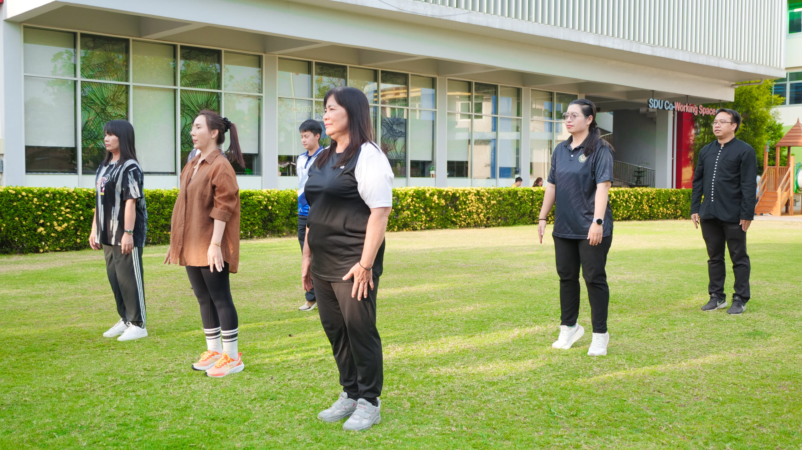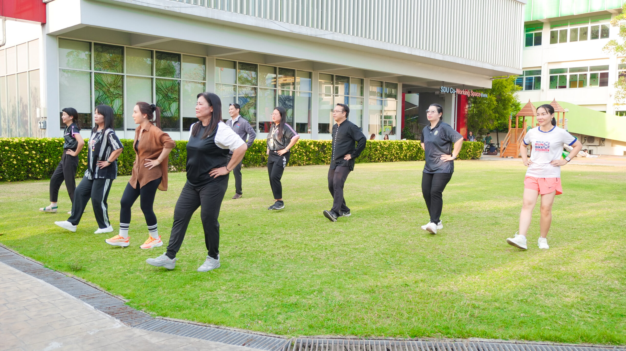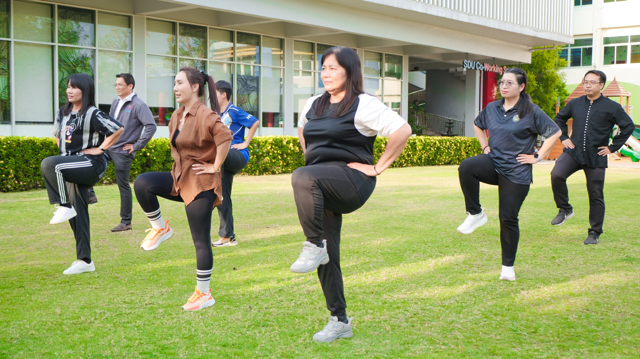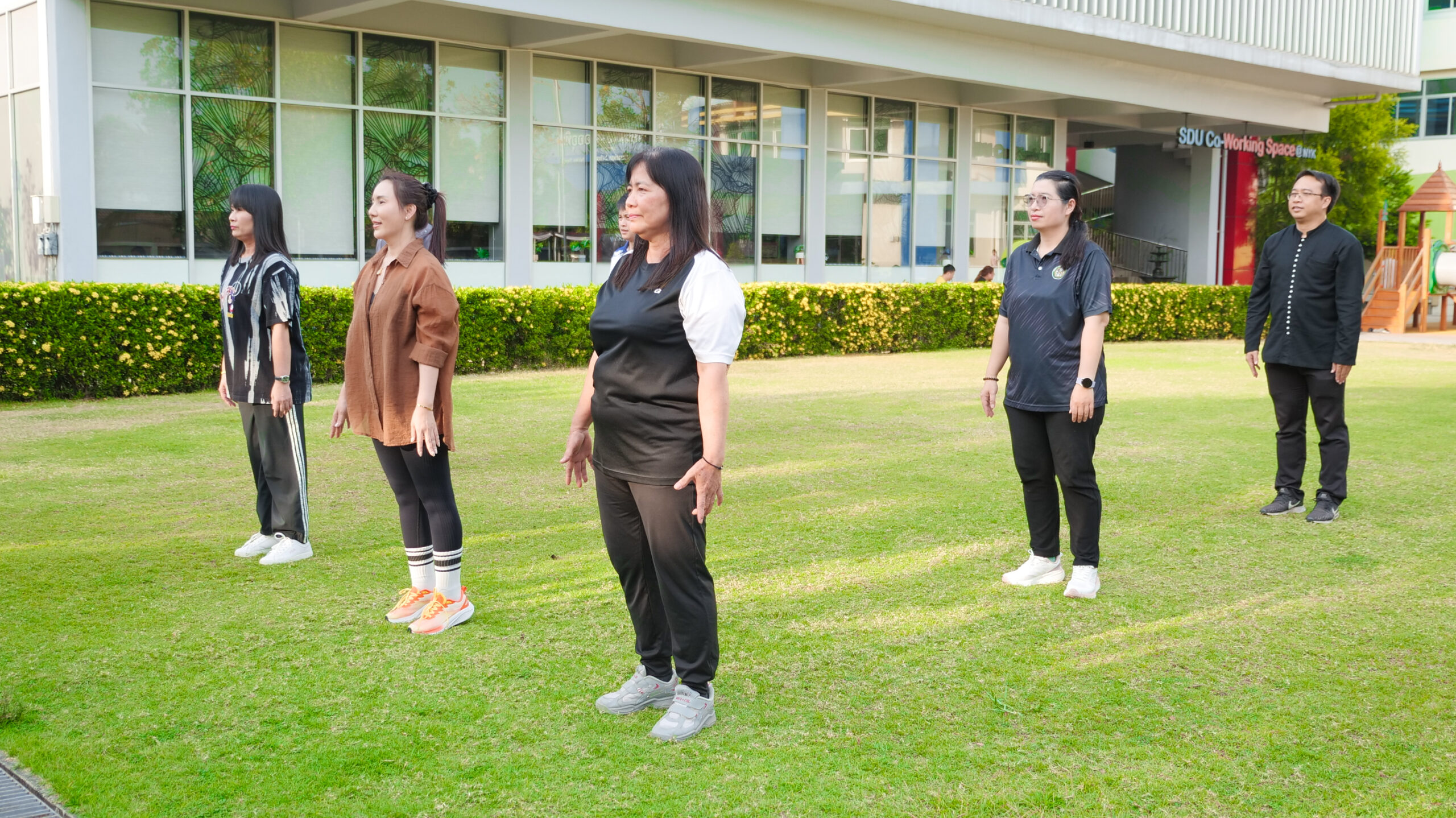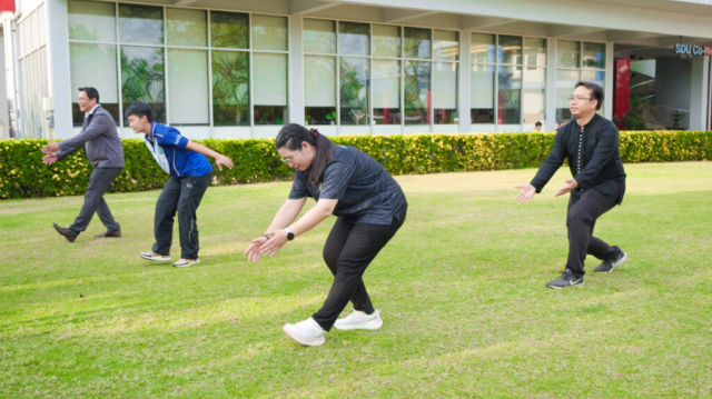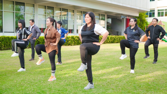 มหาวิทยาลัยสวนดุสิต ศูนย์การศึกษา นครนายก จัดโครงการ “สร้างความสุขอย่างยั่งยืนด้วยสุขภาวะ (Happy Workplace @Nakhon Nayok)” ครั้งที่ 1 ประกอบด้วยกิจกรรม Aerobic Dance การออกกำลังกายแบบแอโรบิก (Aerobic Exercise) และกิจกรรม Weight Dance การออกกำลังกายรูปแบบหนึ่งที่ผสมผสานท่าเต้นเข้ากับการเคลื่อนไหวร่างกายอย่างต่อเนื่อง โดยมีนายรัชชานนท์ นุชชมภู และนางสาวฉวีวรรณ เอี่ยมสะอาด เจ้าหน้าที่บริการการศึกษา มหาวิทยาลัยสวนดุสิต ศูนย์การศึกษา นครนายก เป็นผู้นำออกกำลังกายให้แก่บุคลากร ผู้ปกครอง นักศึกษาและนักเรียนที่สนใจ ในวันที่ 11 กุมภาพันธ์ 2569 เวลา 16.30 – 17.30 น. ณ บริเวณสนามหญ้าหน้า SDU Co-Working Space@NYK มหาวิทยาลัยสวนดุสิต ศูนย์การศึกษา นครนายก