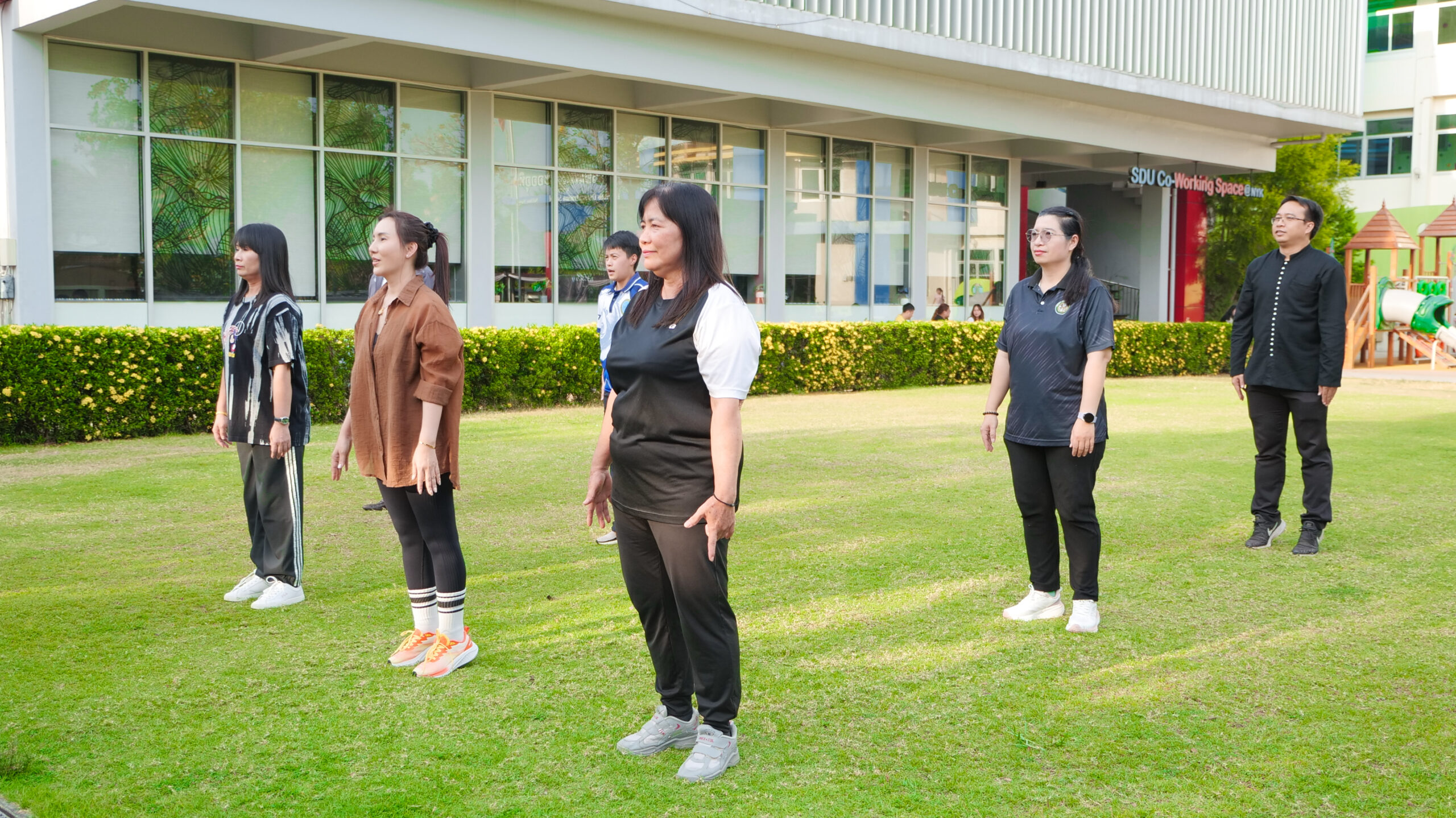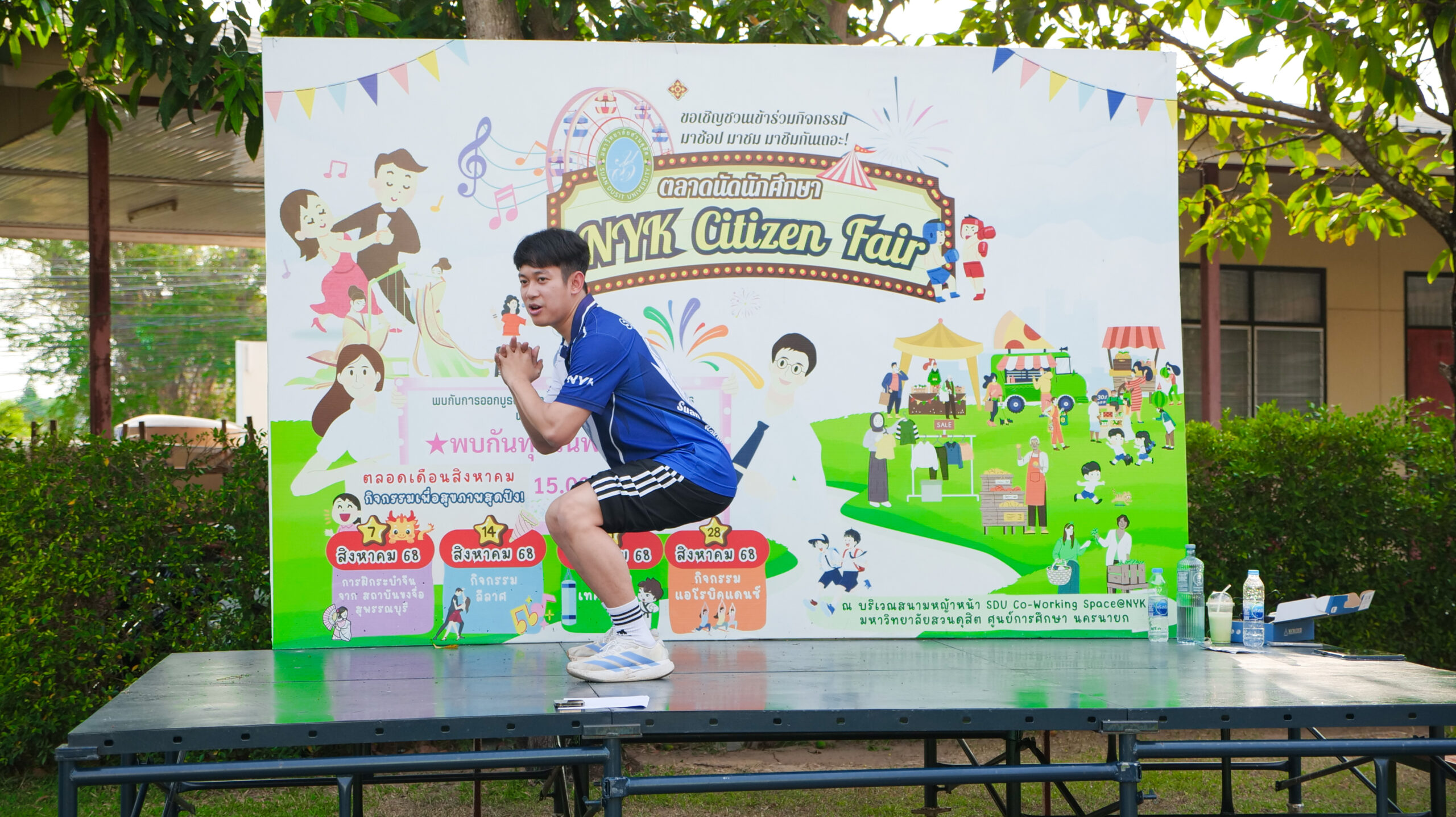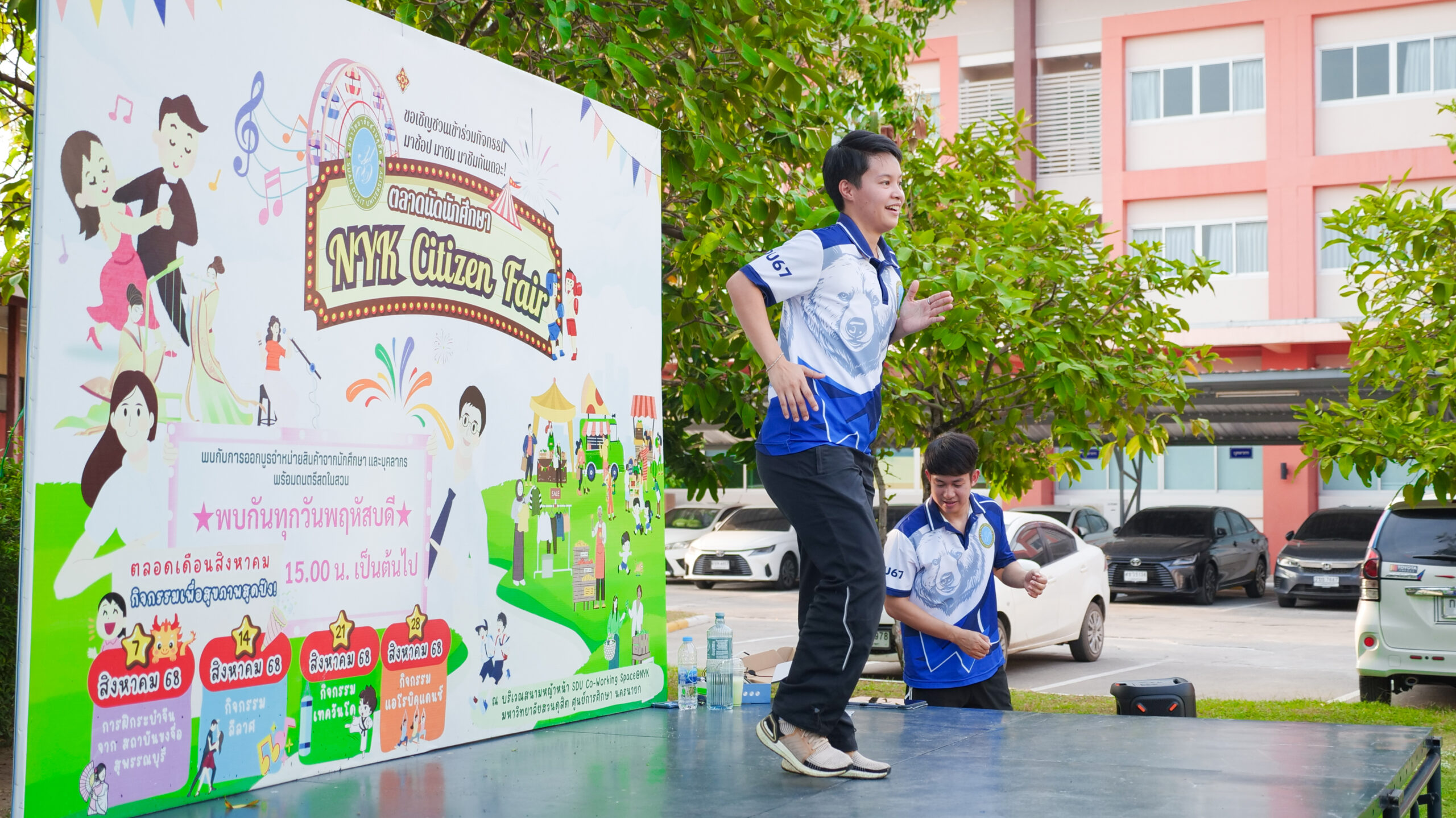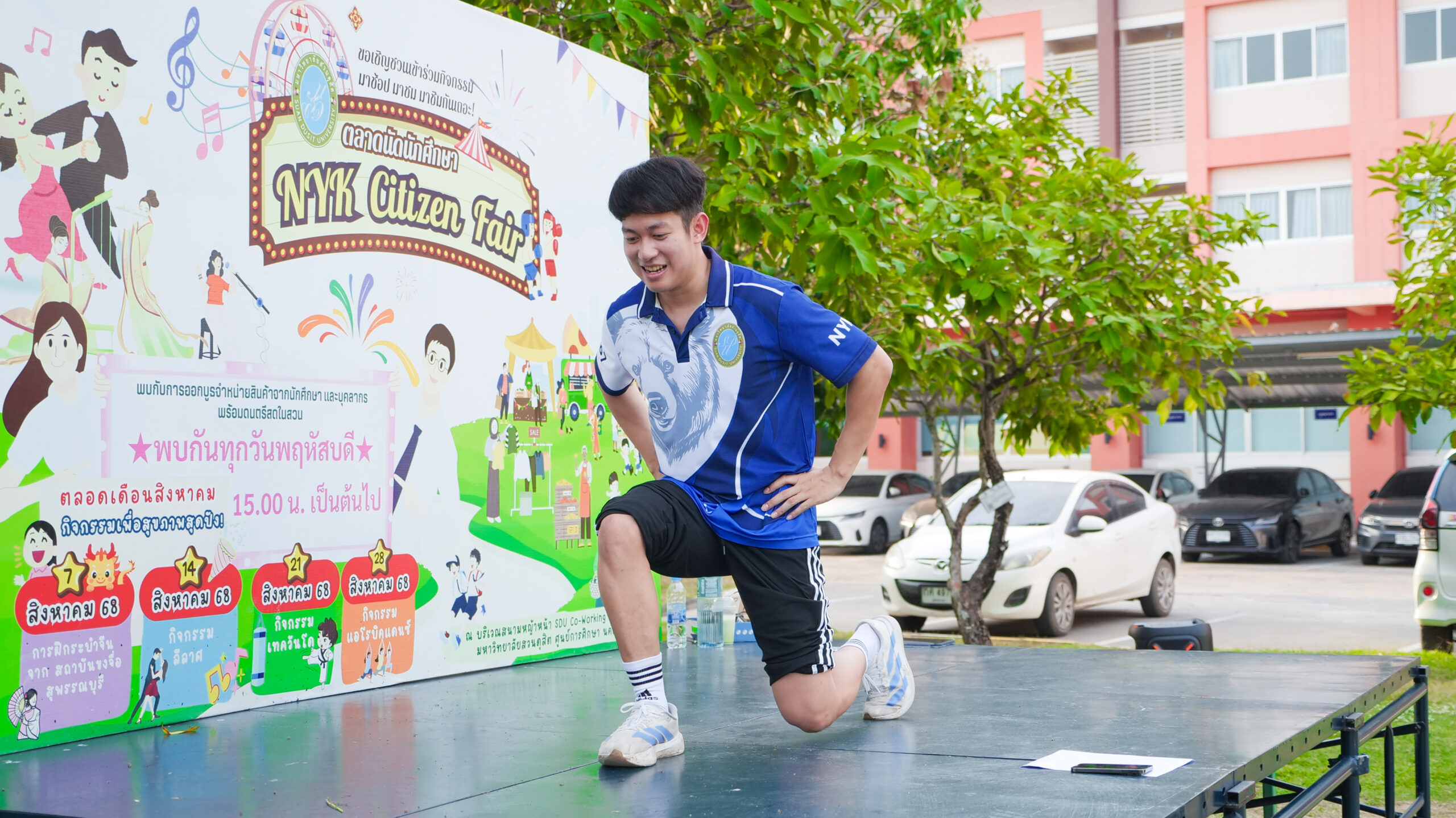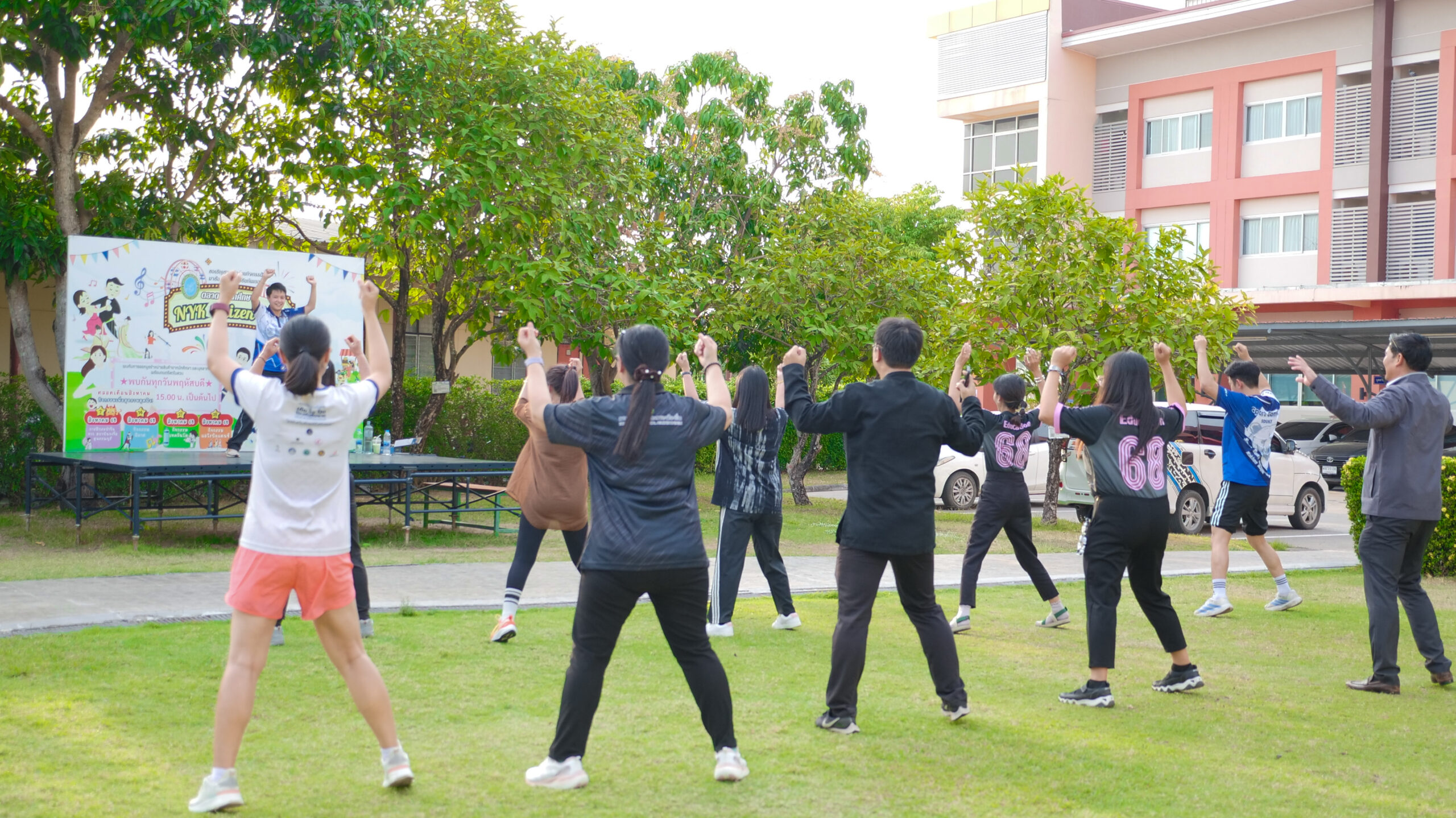 มหาวิทยาลัยสวนดุสิต ศูนย์การศึกษา นครนายก จัดโครงการ “สร้างความสุขอย่างยั่งยืนด้วยสุขภาวะ (Happy Workplace @Nakhon Nayok)” ครั้งที่ 1 ประกอบด้วยกิจกรรม Aerobic Dance การออกกำลังกายแบบแอโรบิก (Aerobic Exercise) และกิจกรรม Weight Dance การออกกำลังกายรูปแบบหนึ่งที่ผสมผสานท่าเต้นเข้ากับการเคลื่อนไหวร่างกายอย่างต่อเนื่อง โดยมีนายรัชชานนท์ นุชชมภู และนางสาวฉวีวรรณ เอี่ยมสะอาด เจ้าหน้าที่บริการการศึกษา มหาวิทยาลัยสวนดุสิต ศูนย์การศึกษา นครนายก เป็นผู้นำออกกำลังกายให้แก่บุคลากร ผู้ปกครอง นักศึกษาและนักเรียนที่สนใจ ในวันที่ 11 กุมภาพันธ์ 2569 เวลา 16.30 – 17.30 น. ณ บริเวณสนามหญ้าหน้า SDU Co-Working Space@NYK มหาวิทยาลัยสวนดุสิต ศูนย์การศึกษา นครนายก