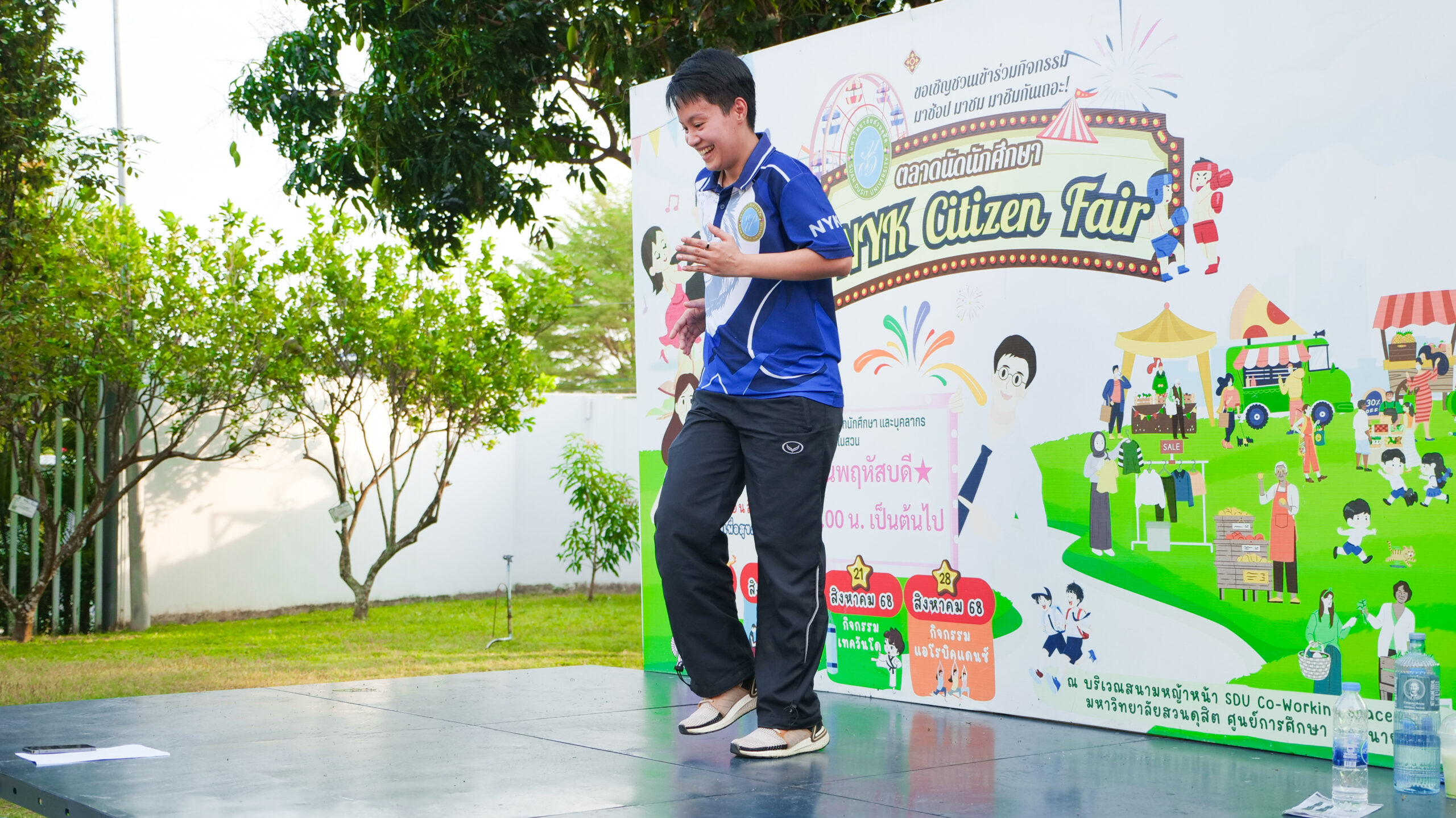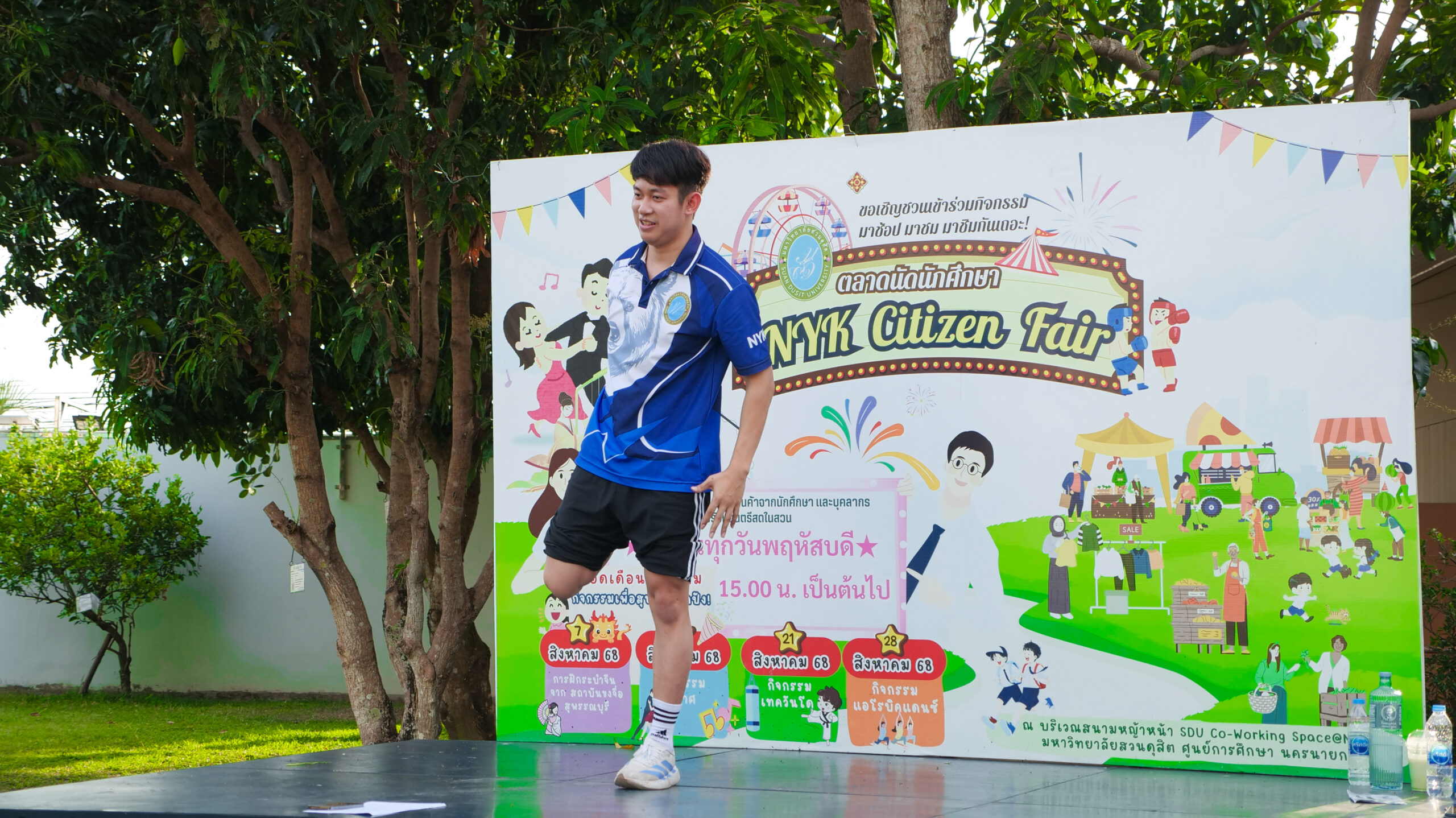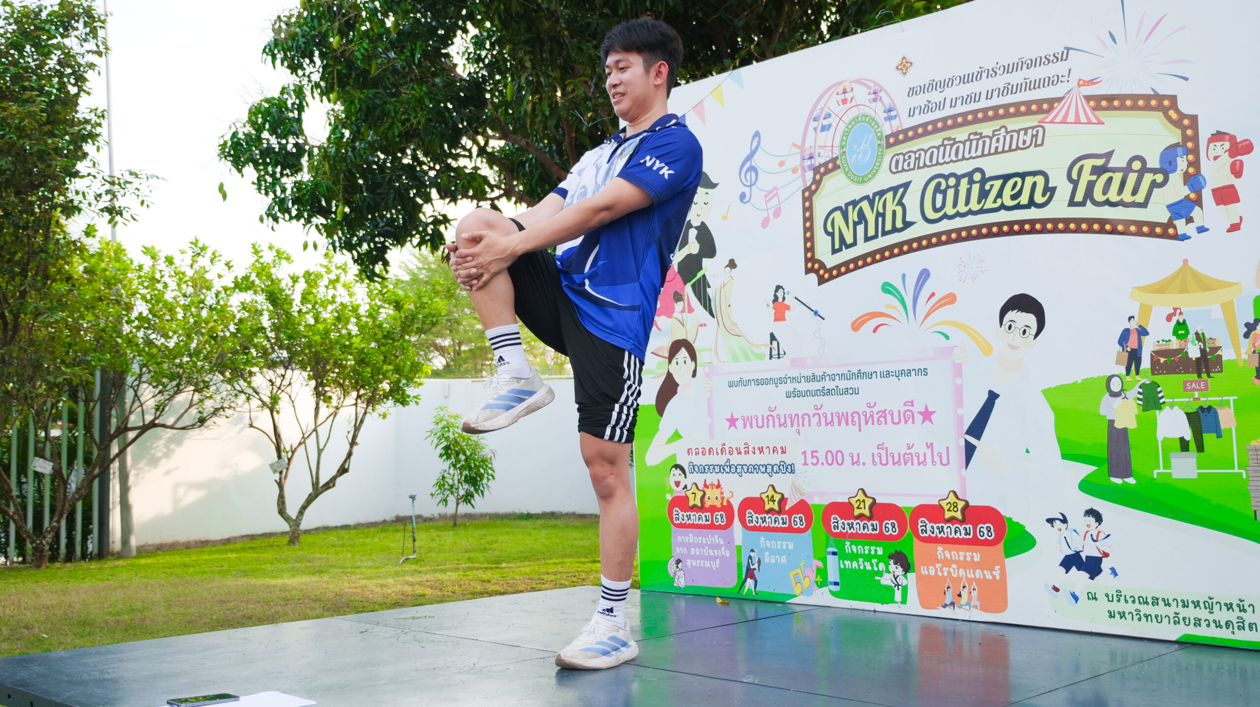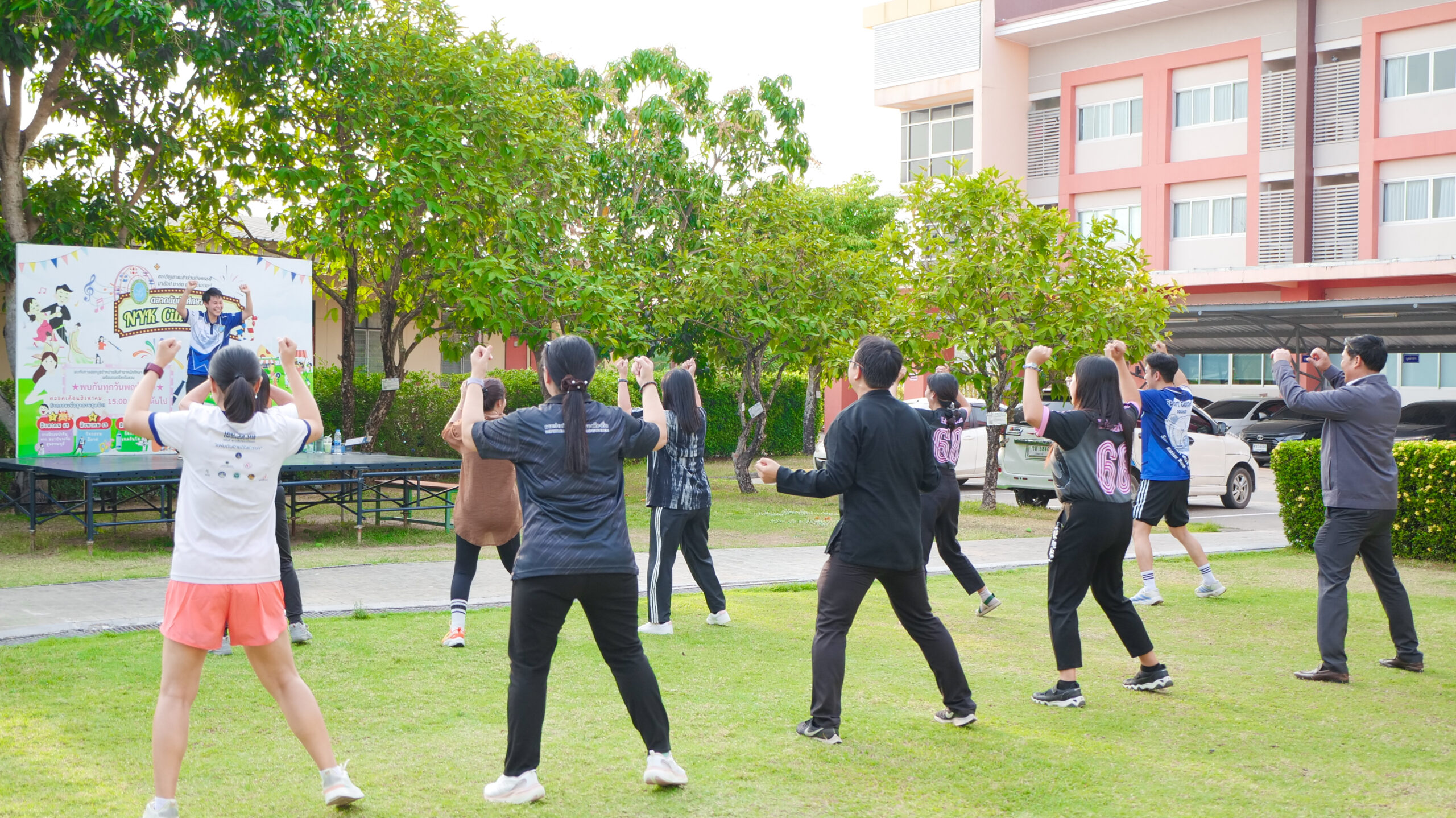 มหาวิทยาลัยสวนดุสิต ศูนย์การศึกษา นครนายก จัดโครงการ “สร้างความสุขอย่างยั่งยืนด้วยสุขภาวะ (Happy Workplace @Nakhon Nayok)” ครั้งที่ 1 ประกอบด้วยกิจกรรม Aerobic Dance การออกกำลังกายแบบแอโรบิก (Aerobic Exercise) และกิจกรรม Weight Dance การออกกำลังกายรูปแบบหนึ่งที่ผสมผสานท่าเต้นเข้ากับการเคลื่อนไหวร่างกายอย่างต่อเนื่อง โดยมีนายรัชชานนท์ นุชชมภู และนางสาวฉวีวรรณ เอี่ยมสะอาด เจ้าหน้าที่บริการการศึกษา มหาวิทยาลัยสวนดุสิต ศูนย์การศึกษา นครนายก เป็นผู้นำออกกำลังกายให้แก่บุคลากร ผู้ปกครอง นักศึกษาและนักเรียนที่สนใจ ในวันที่ 11 กุมภาพันธ์ 2569 เวลา 16.30 – 17.30 น. ณ บริเวณสนามหญ้าหน้า SDU Co-Working Space@NYK มหาวิทยาลัยสวนดุสิต ศูนย์การศึกษา นครนายก