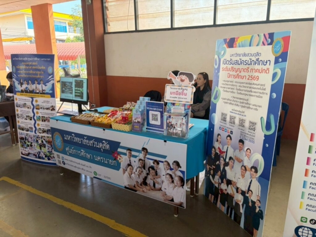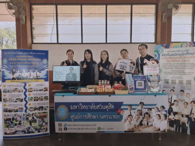 มหาวิทยาลัยสวนดุสิต ศูนย์การศึกษา นครนายก นำโดย อาจารย์หลักสูตรศึกษาศาสตรบัณฑิต สาขาวิชาการศึกษาปฐมวัยและสาขาวิชาการประถมศึกษา และบุคลากรศูนย์การศึกษา นครนายก เข้าร่วมกิจกรรมจัดบูธนิทรรศการ และบรรยายโครงการแนะแนวการศึกษาและอาชีพ ณ โรงเรียนบ้านแก้งวิทยา จังหวัดสระแก้ว โดยในกิจกรรมมีการแนะนำข้อมูลของมหาวิทยาลัยสวนดุสิต ข้อมูลของหลักสูตรการเรียนการสอน รวมถึงการทำกิจกรรมร่วมกับเด็กๆ สร้างความสุข สนุกสนาน ตลอดจนจบกิจกรรมการแนะแนว ในวันที่ 13 กุมภาพันธ์ 2569 เวลา 08.00 – 12.00 น.