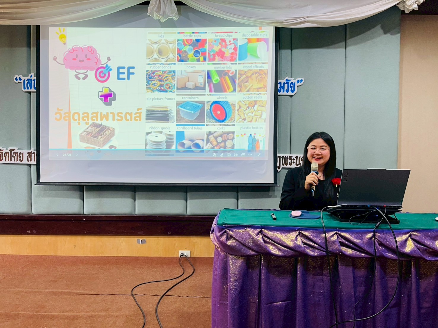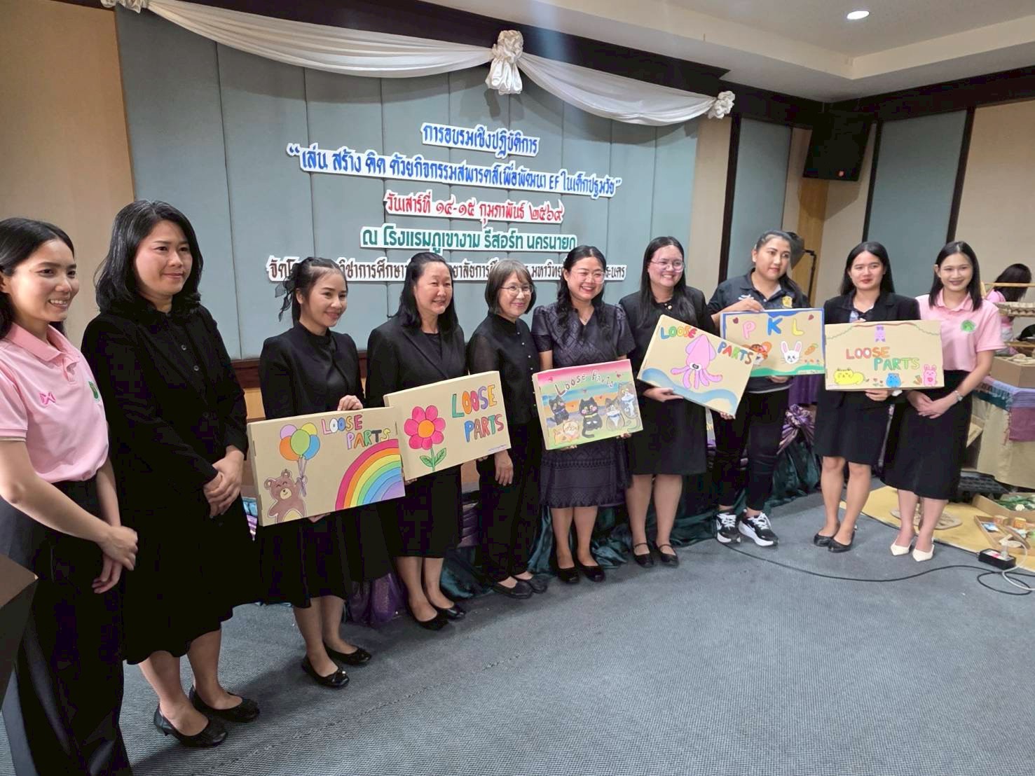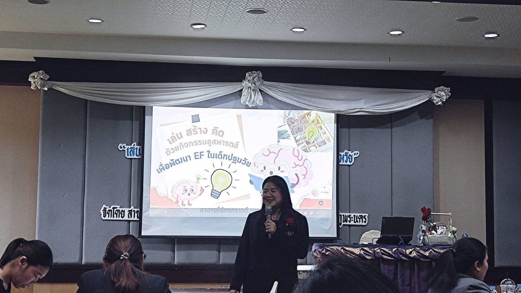 าจารย์ฉัตรทราวดี บุญถนอม อาจารย์ประจำหลักสูตรศึกษาศาสตรบัณฑิต สาขาวิชาการศึกษาปฐมวัยได้รับเชิญจากวิทยาลัยการฝึกหัดครู มหาวิทยาลัยราชภัฏพระนคร เป็นวิทยากรจัดกิจกรรมการอบรมเชิงปฏิบัติการ “เล่น สร้าง คิด ด้วยกิจกรรมลูสพาร์ทเพื่อพัฒนา EF ในเด็กปฐมวัย” โดยมีวัตถุประสงค์เพื่อพัฒนาครูและบุคลากรทางการศึกษาให้มีความรู้ความเข้าใจ มีทักษะในการออกแบบกิจกรรมที่ส่งเสริม Executive Functions (EF) ในเด็กปฐมวัยอย่างมีประสิทธิภาพ กลุ่มเป้าหมายที่เข้าร่วมกิจกรรมได้แก่ บุคลากรครูโรงเรียนเครือข่าย และผู้สนใจในเขตพื้นที่บริการวิชาการของมหาวิทยาลัยราชภัฏพระนครในเขตพื้นที่จังหวัดนครนายก ในระหว่างวันที่ 14 – 15 กุมภาพันธ์ 2569 ณ ภูเขางามรีสอร์ท อำเภอเมืองนครนายก จังหวัดนครนายก