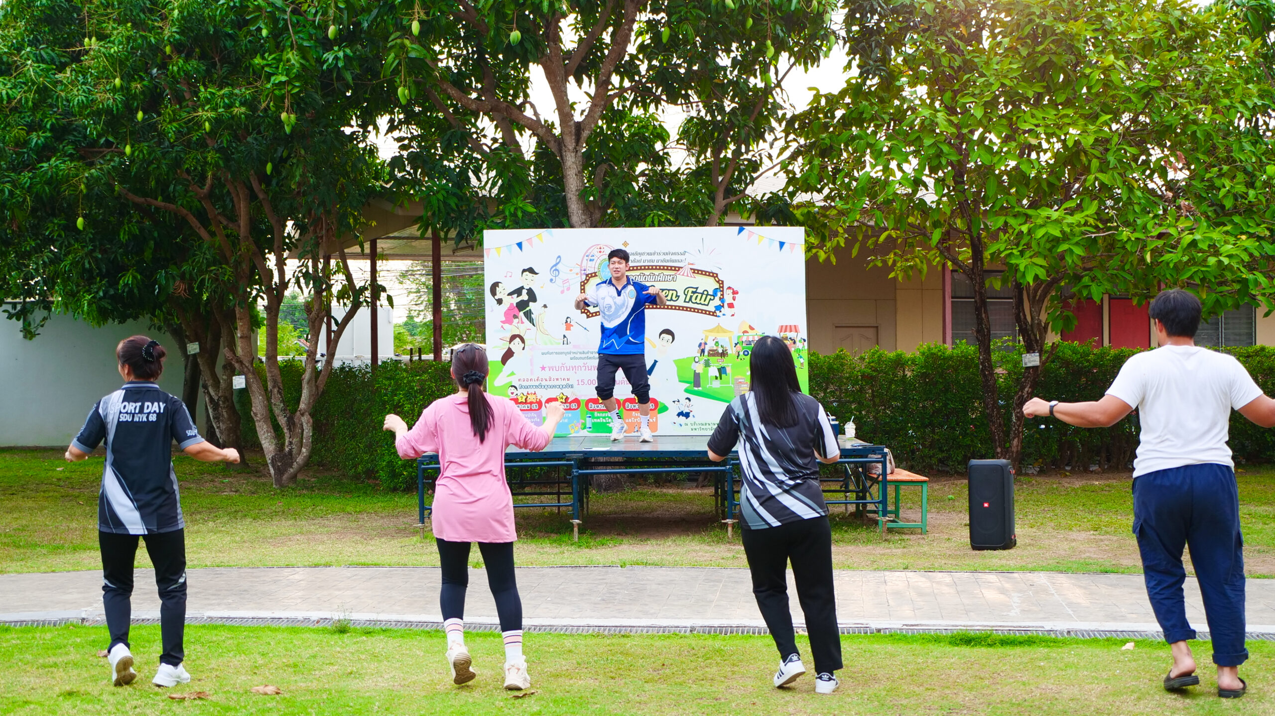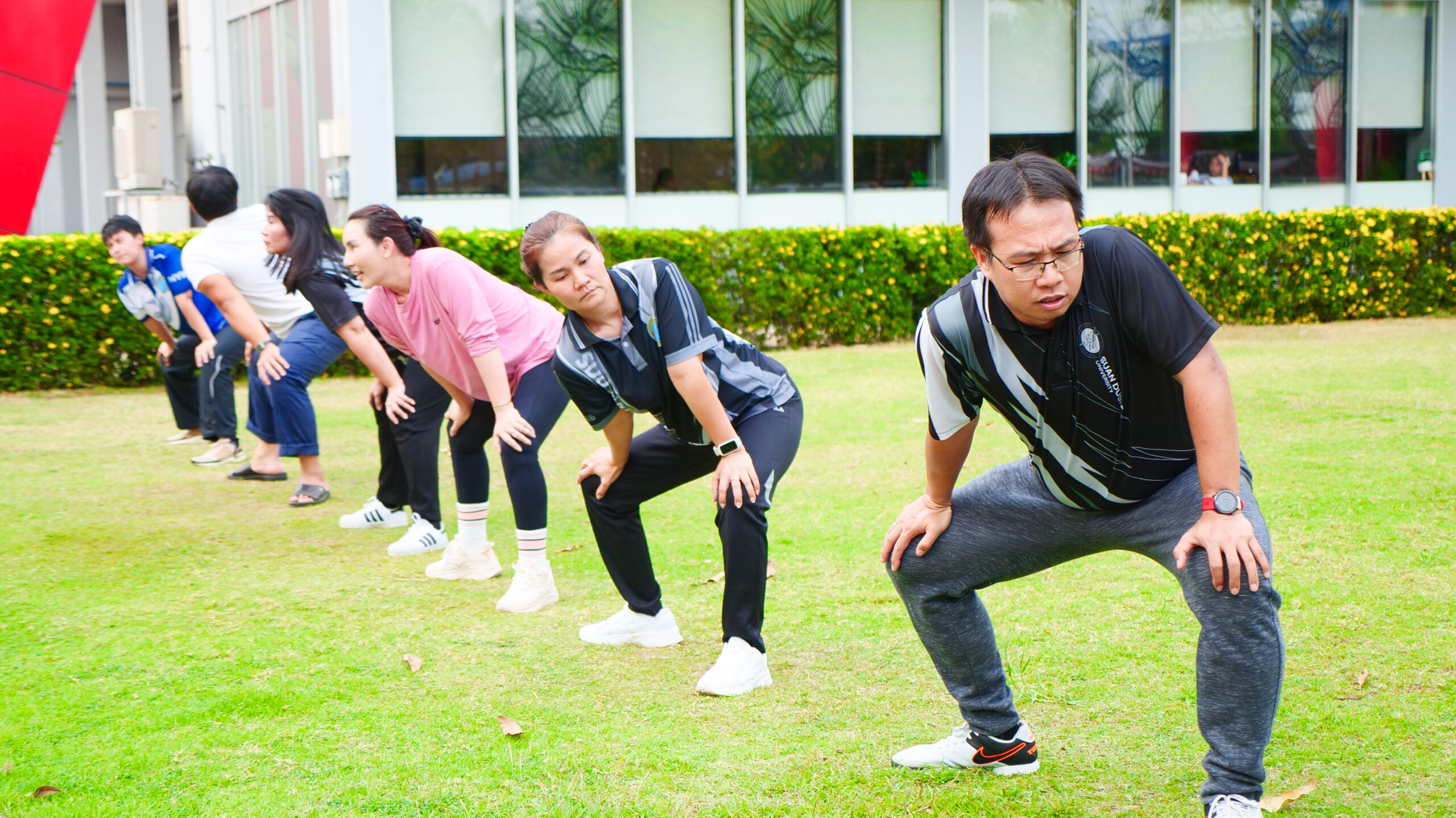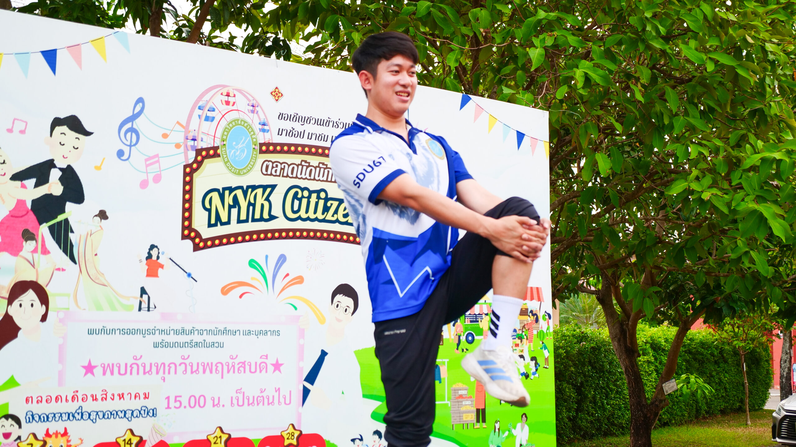มหาวิทยาลัยสวนดุสิต ศูนย์การศึกษา นครนายก จัดโครงการ “สร้างความสุขอย่างยั่งยืนด้วยสุขภาวะ (Happy Workplace @Nakhon Nayok)” ครั้งที่ 3 ประกอบด้วยกิจกรรม Aerobic Dance การออกกำลังกายแบบแอโรบิก (Aerobic Exercise) และกิจกรรม Weight Dance การออกกำลังกายรูปแบบหนึ่งที่ผสมผสานท่าเต้นเข้ากับการเคลื่อนไหวร่างกายอย่างต่อเนื่อง โดยมีนายรัชชานนท์ นุชชมภู และนางสาวฉวีวรรณ เอี่ยมสะอาด เจ้าหน้าที่บริการการศึกษา มหาวิทยาลัยสวนดุสิต ศูนย์การศึกษา นครนายก เป็นผู้นำออกกำลังกายให้แก่บุคลากร ผู้ปกครอง นักศึกษาและนักเรียนที่สนใจ ในวันที่ 18 กุมภาพันธ์ 2569 เวลา 16.30 – 17.30 น. ณ บริเวณสนามหญ้าหน้า SDU Co-Working Space@NYK มหาวิทยาลัยสวนดุสิต ศูนย์การศึกษา นครนายก