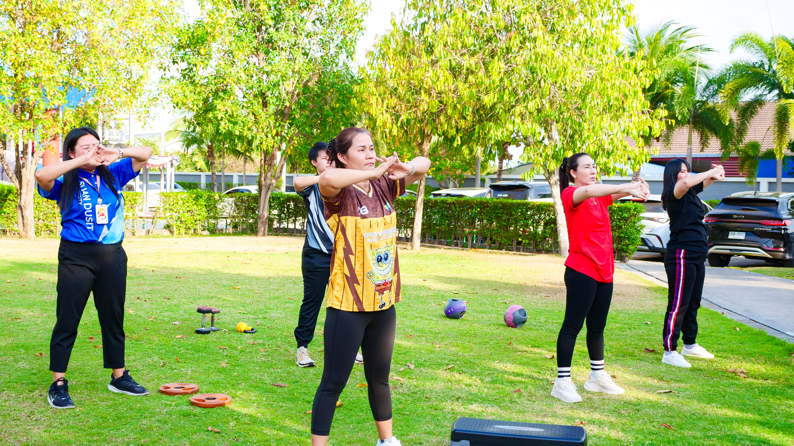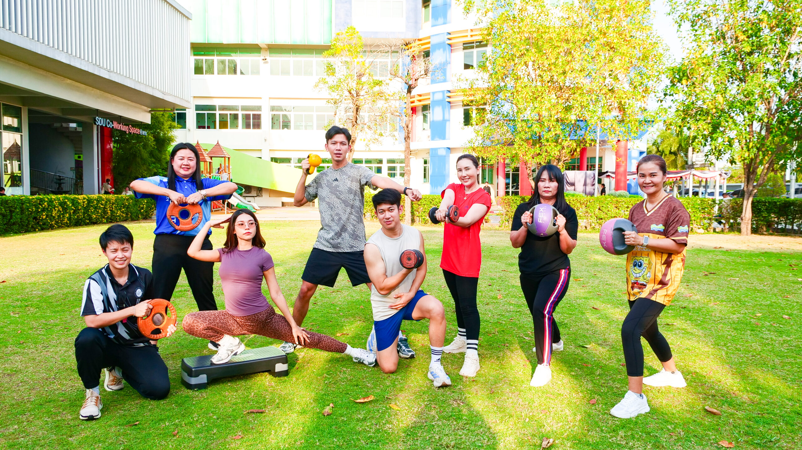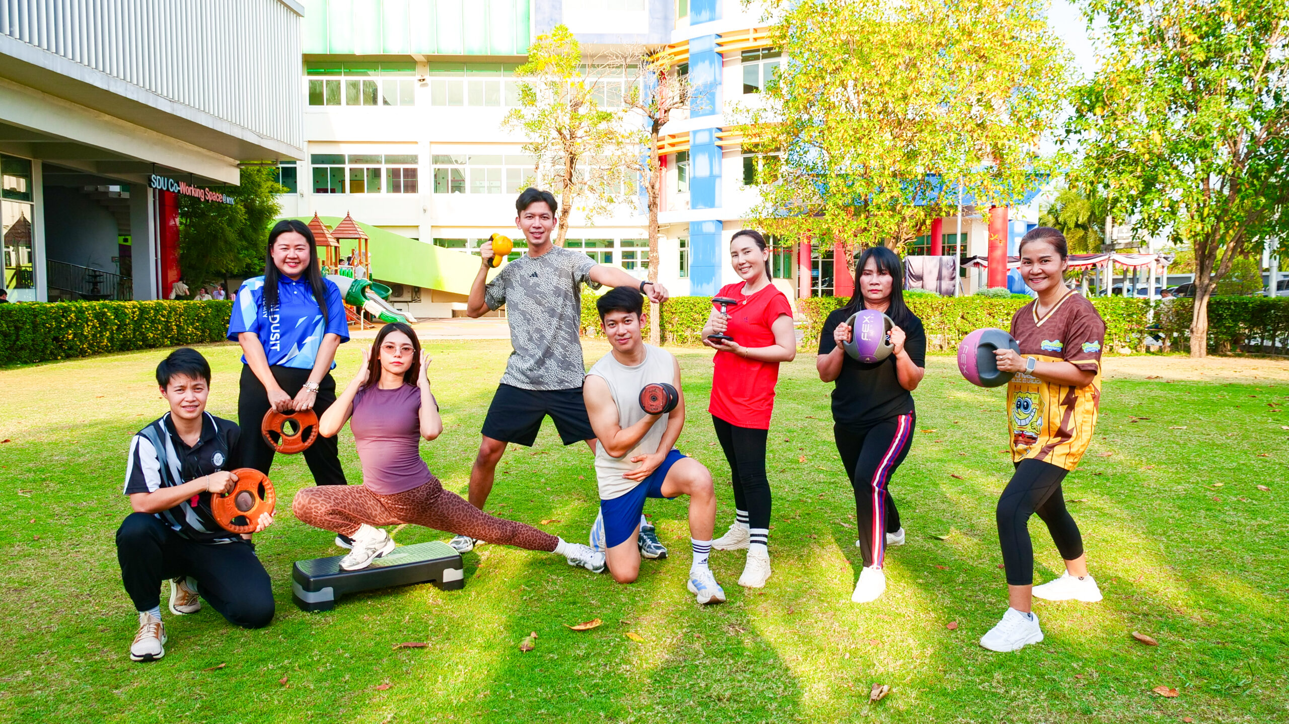 มหาวิทยาลัยสวนดุสิต ศูนย์การศึกษา นครนายก จัดโครงการ “สร้างความสุขอย่างยั่งยืนด้วยสุขภาวะ (Happy Workplace @Nakhon Nayok)” ครั้งที่ 4 ประกอบด้วยกิจกรรม Aerobic Dance การออกกำลังกายแบบแอโรบิก (Aerobic Exercise) และกิจกรรม Weight Dance การออกกำลังกายรูปแบบหนึ่งที่ผสมผสานท่าเต้นเข้ากับการเคลื่อนไหวร่างกายอย่างต่อเนื่อง โดยมีนายรัชชานนท์ นุชชมภู และนางสาวฉวีวรรณ เอี่ยมสะอาด เจ้าหน้าที่บริการการศึกษา มหาวิทยาลัยสวนดุสิต ศูนย์การศึกษา นครนายก เป็นผู้นำออกกำลังกายให้แก่บุคลากร ผู้ปกครอง นักศึกษาและนักเรียนที่สนใจ ในวันที่ 19 กุมภาพันธ์ 2569 เวลา 16.30 – 17.30 น. ณ บริเวณสนามหญ้าหน้า SDU Co-Working Space@NYK มหาวิทยาลัยสวนดุสิต ศูนย์การศึกษา นครนายก
