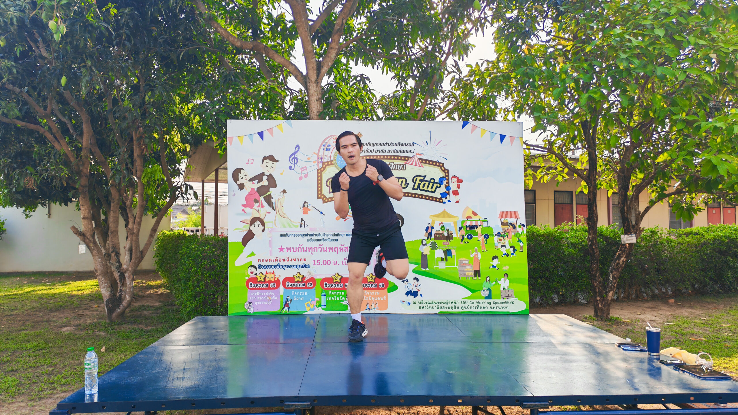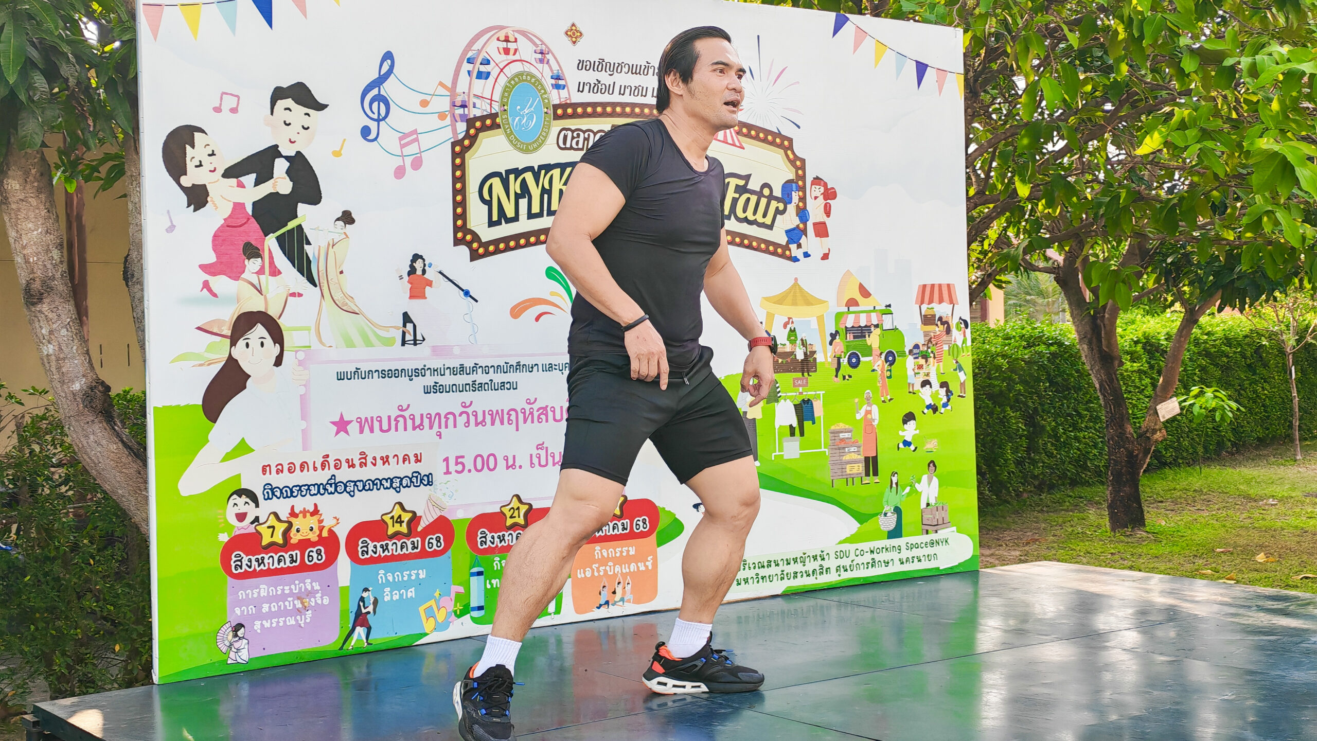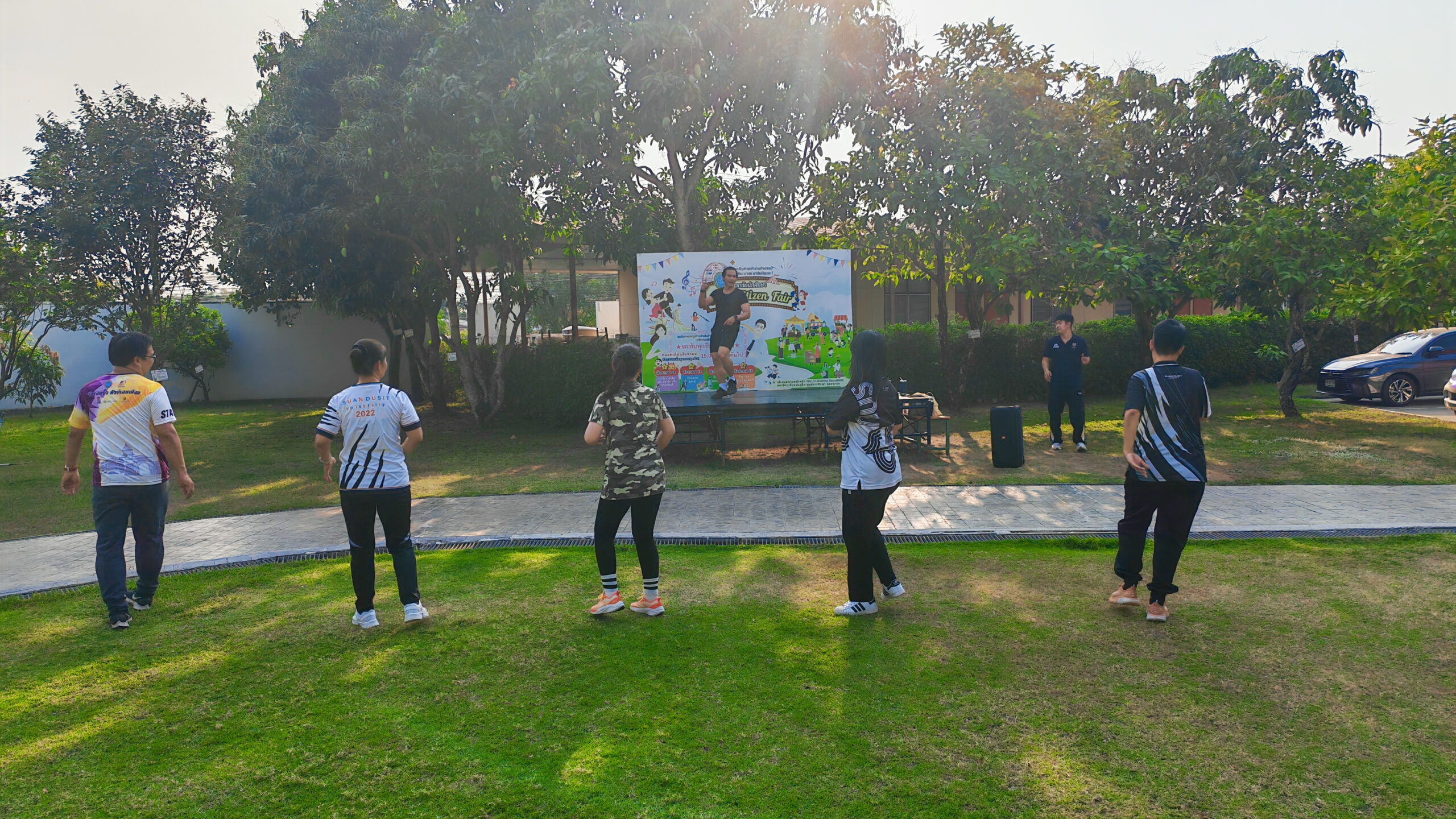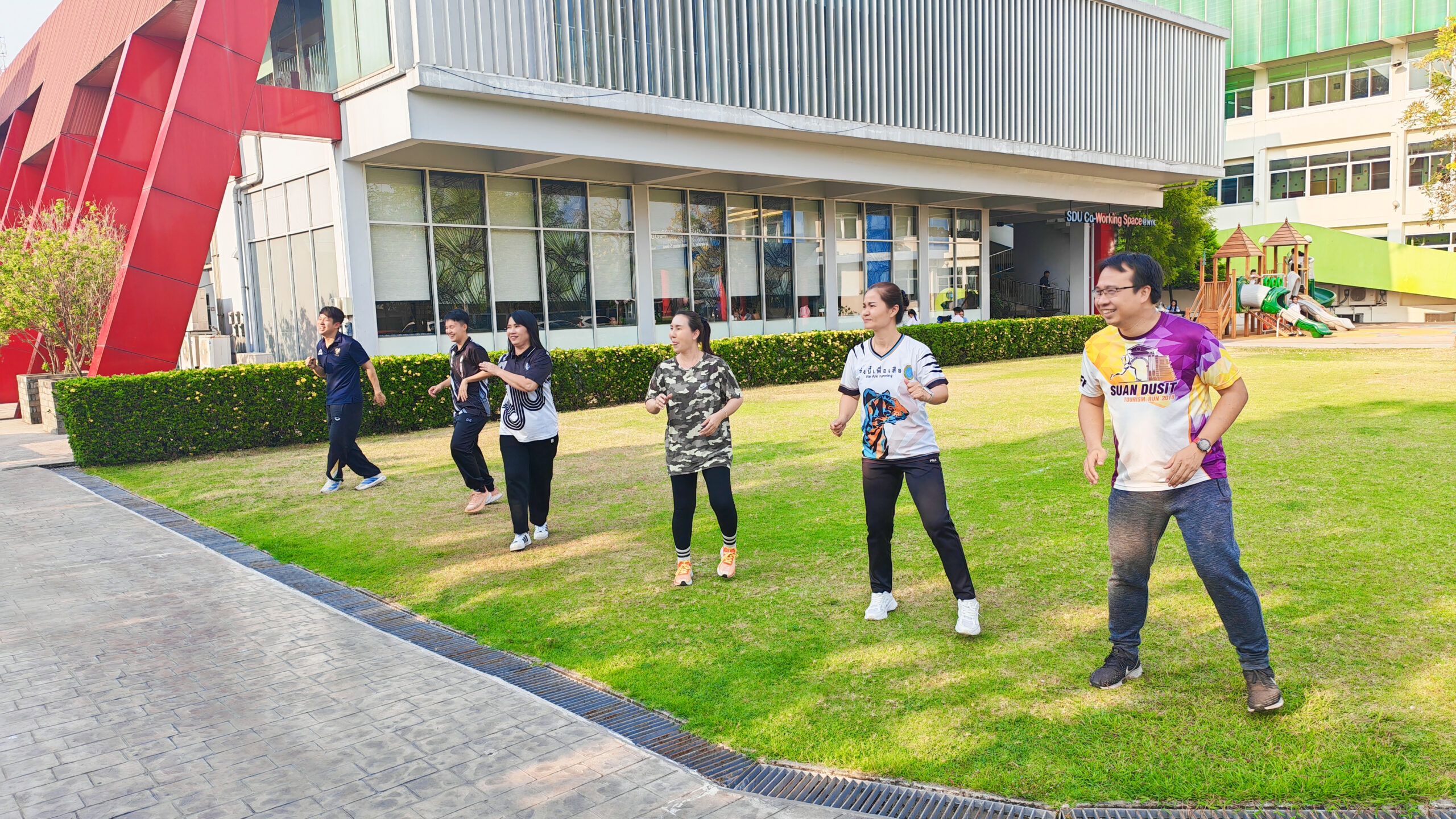 มหาวิทยาลัยสวนดุสิต ศูนย์การศึกษา นครนายก จัดโครงการ “สร้างความสุขอย่างยั่งยืนด้วยสุขภาวะ (Happy Workplace @Nakhon Nayok)” ครั้งที่ 5 ประกอบด้วยกิจกรรม Aerobic Dance การออกกำลังกายแบบแอโรบิก (Aerobic Exercise) และกิจกรรม Weight Dance การออกกำลังกายรูปแบบหนึ่งที่ผสมผสานท่าเต้นเข้ากับการเคลื่อนไหวร่างกายอย่างต่อเนื่อง โดยมีนายรัชชานนท์ นุชชมภู นางสาวฉวีวรรณ เอี่ยมสะอาด เจ้าหน้าที่บริการการศึกษา และนายจุมพฏ วชิรธานินทร์ บุคลากรมหาวิทยาลัยสวนดุสิต ศูนย์การศึกษา นครนายก เป็นผู้นำออกกำลังกายให้แก่บุคลากร ผู้ปกครอง นักศึกษาและนักเรียนที่สนใจ ในวันที่ 23 กุมภาพันธ์ 2569 เวลา 16.30 – 17.30 น. ณ บริเวณสนามหญ้าหน้า SDU Co-Working Space@NYK มหาวิทยาลัยสวนดุสิต ศูนย์การศึกษา นครนายก
