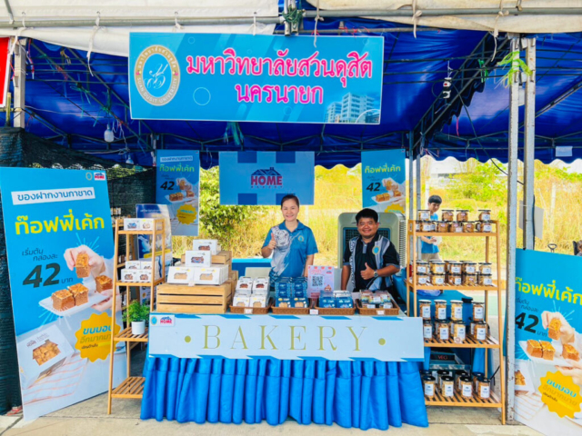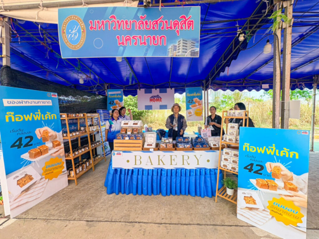 ในวันที่ 6 มีนาคม 2569 เวลา 18.30 น. นายชานน วาสิกศิริ ผู้ว่าราชการจังหวัดนครนายก และหม่อมหลวงพรรณะเลิศ วาสิกศิริ นายกเหล่ากาชาดจังหวัดนครนายก เป็นประธานในพิธีเปิด “งานนครนายกแฟร์และงานกาชาดนครนายก 2569” ณ เวทีกลาง บริเวณถนนช้างใจดี อำเภอเมืองนครนายก จังหวัดนครนายก โดยมีรองผู้ว่าราชการจังหวัดนครนายก หัวหน้าส่วนราชการ ข้าราชการ เจ้าหน้าที่ และประชาชนเข้าร่วมกิจกรรมเป็นจำนวนมาก ในการนี้ มหาวิทยาลัยสวนดุสิต ศูนย์การศึกษา นครนายก ได้ร่วมออกบูธภายในงาน “นครนายกแฟร์ และงานกาชาดนครนายก 2569” ระหว่างวันที่ 6 – 15 มีนาคม 2569 เวลา 15.00 – 22.00 น. เพื่อร่วมประชาสัมพันธ์หน่วยงานและนำเสนอผลิตภัณฑ์คุณภาพจากโฮมเบเกอรี่สวนดุสิต โดยภายในบูธมีผลิตภัณฑ์เบเกอรี่หลากหลายรายการให้ผู้เข้าร่วมงานได้เลือกซื้อและลิ้มลองผลิตภัณฑ์