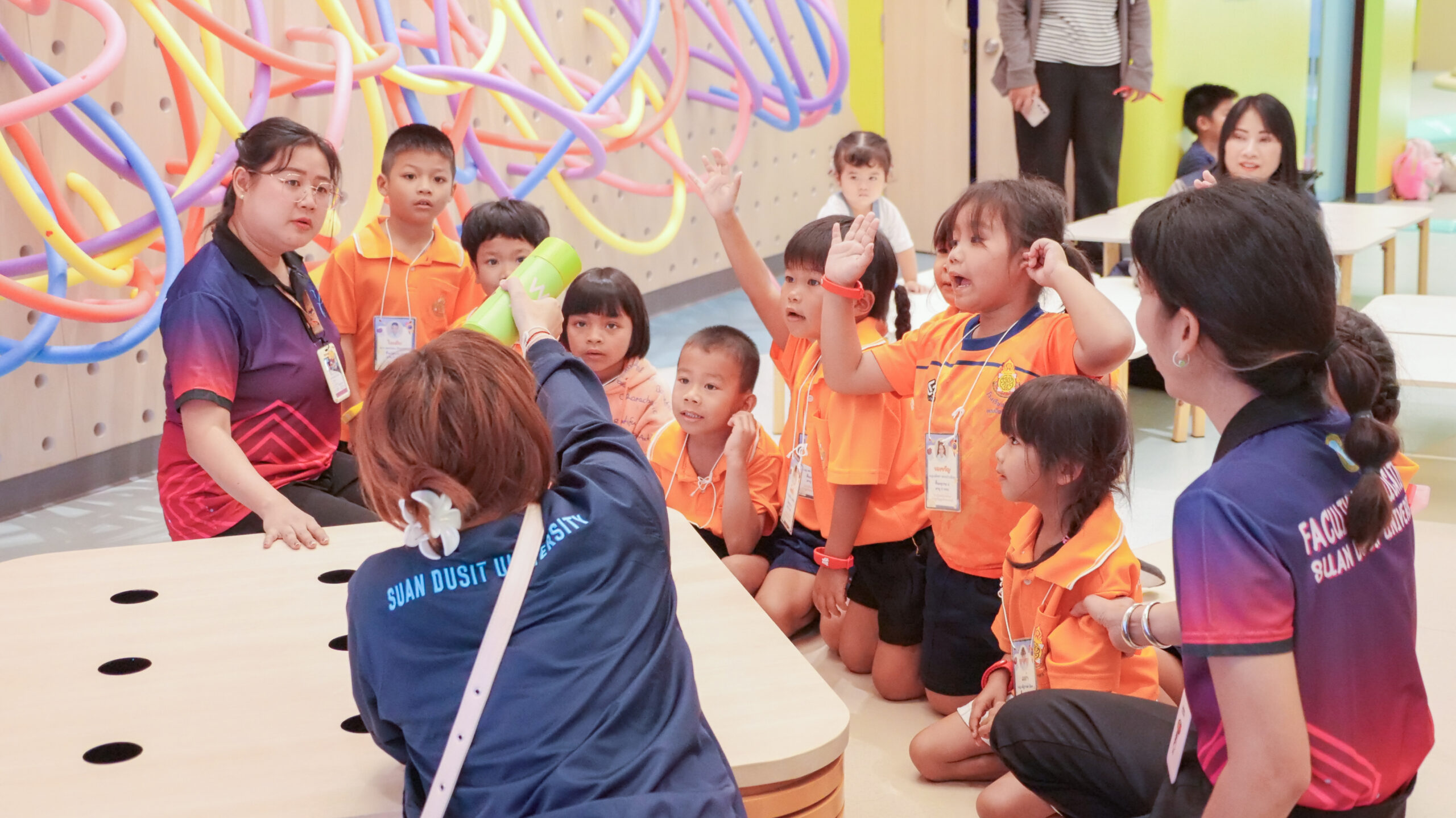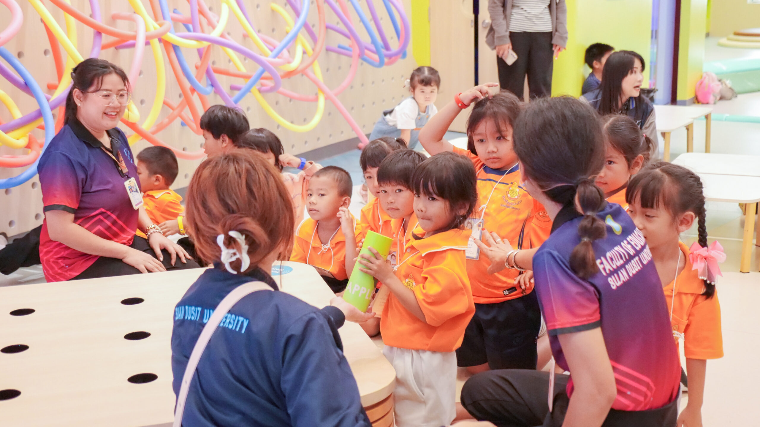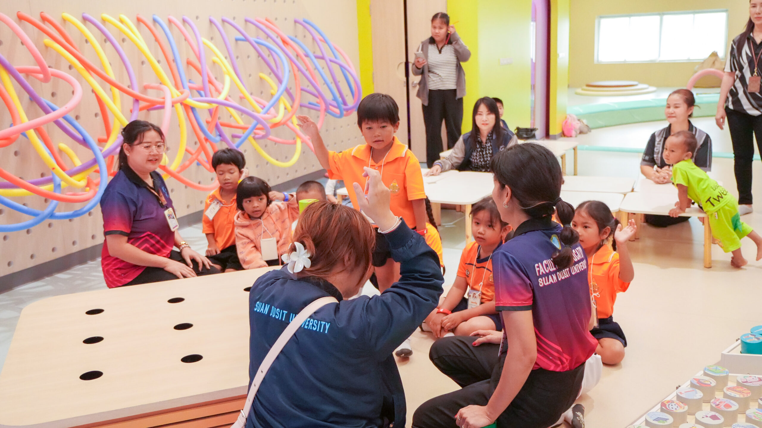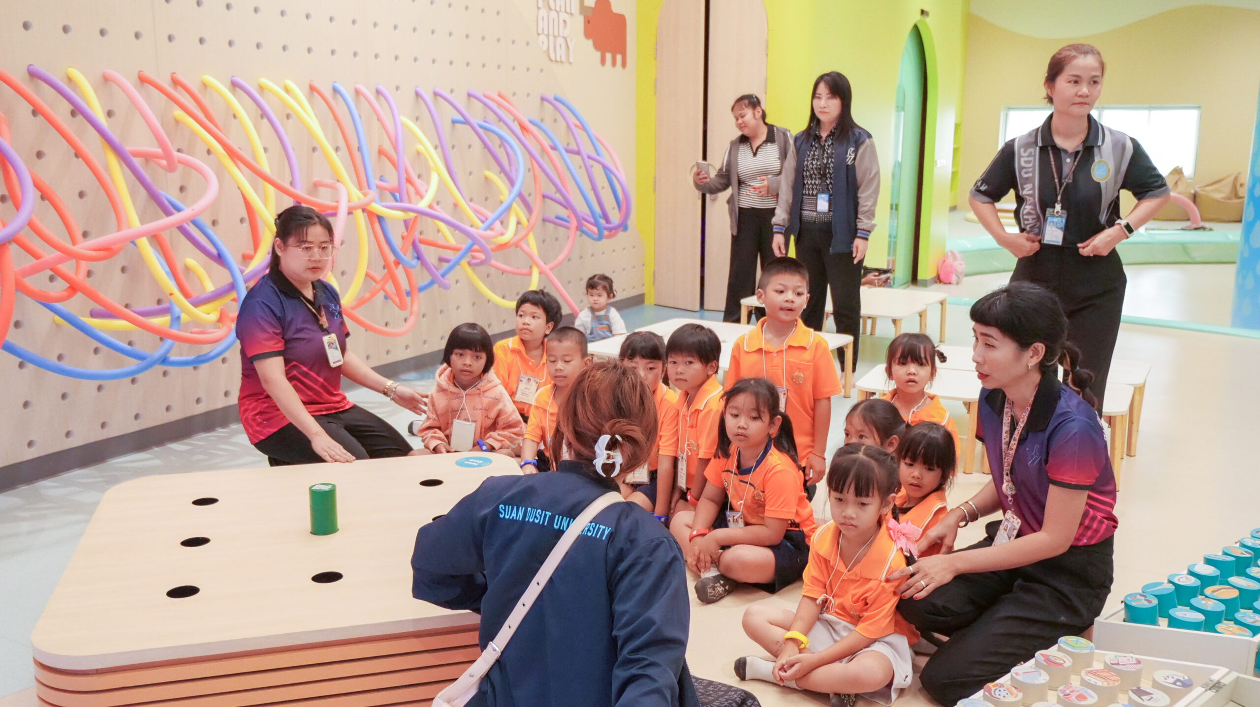 โรงเรียนวัดท่าช้าง (แสงปัญญาวิทยาคาร) จังหวัดนครนายก นำนักเรียนระดับชั้นอนุบาล 2 – 3 จำนวน 18 คน คุณครูจำนวน 2 คน และผู้ปกครองจำนวน 16 คน เข้าเรียนรู้และทำกิจกรรม ณ แหล่งเรียนรู้เพื่อยกระดับคุณภาพชีวิตของเด็กระดับประถมศึกษา มหาวิทยาลัยสวนดุสิต ศูนย์การศึกษา นครนายก (LONG KID DO) โดยมีทีมวิทยากรจากอาจารย์ประจำหลักสูตรศึกษาศาสตรบัณฑิต สาขาวิชาการศึกษาปฐมวัย และบุคลากรมหาวิทยาลัยสวนดุสิต ศูนย์การศึกษา นครนายก เป็นผู้จัดกิจกรรมให้แก่นักเรียน โดยมีวัตถุประสงค์ เพื่อพัฒนาและส่งเสริมพหุปัญญาทั้ง 8 ด้าน ให้เด็กปฐมวัยมีพัฒนาการการเรียนรู้ที่เหมาะสมตามวัย และเป็นการเปิดประสบการณ์การเรียนรู้นอกห้องเรียน ให้แก่นักเรียนระดับปฐมวัย ในวันที่ 18 มีนาคม 2569 เวลา 09.00 – 11.00 น.