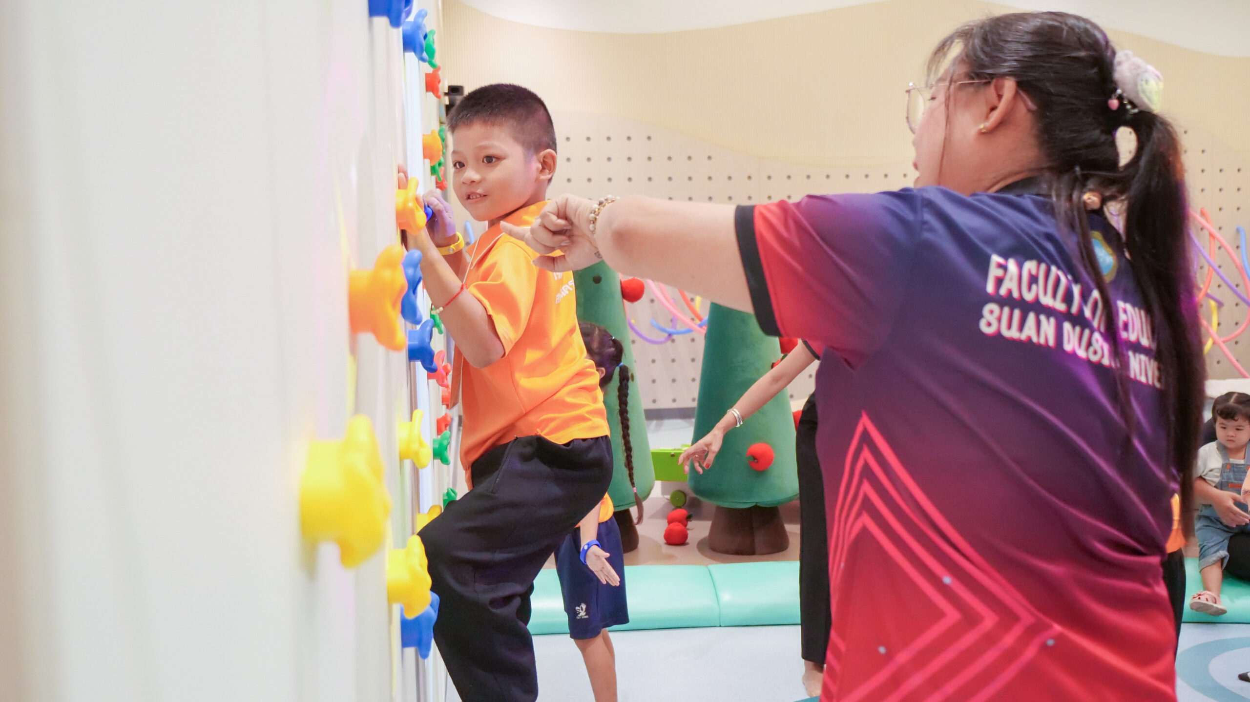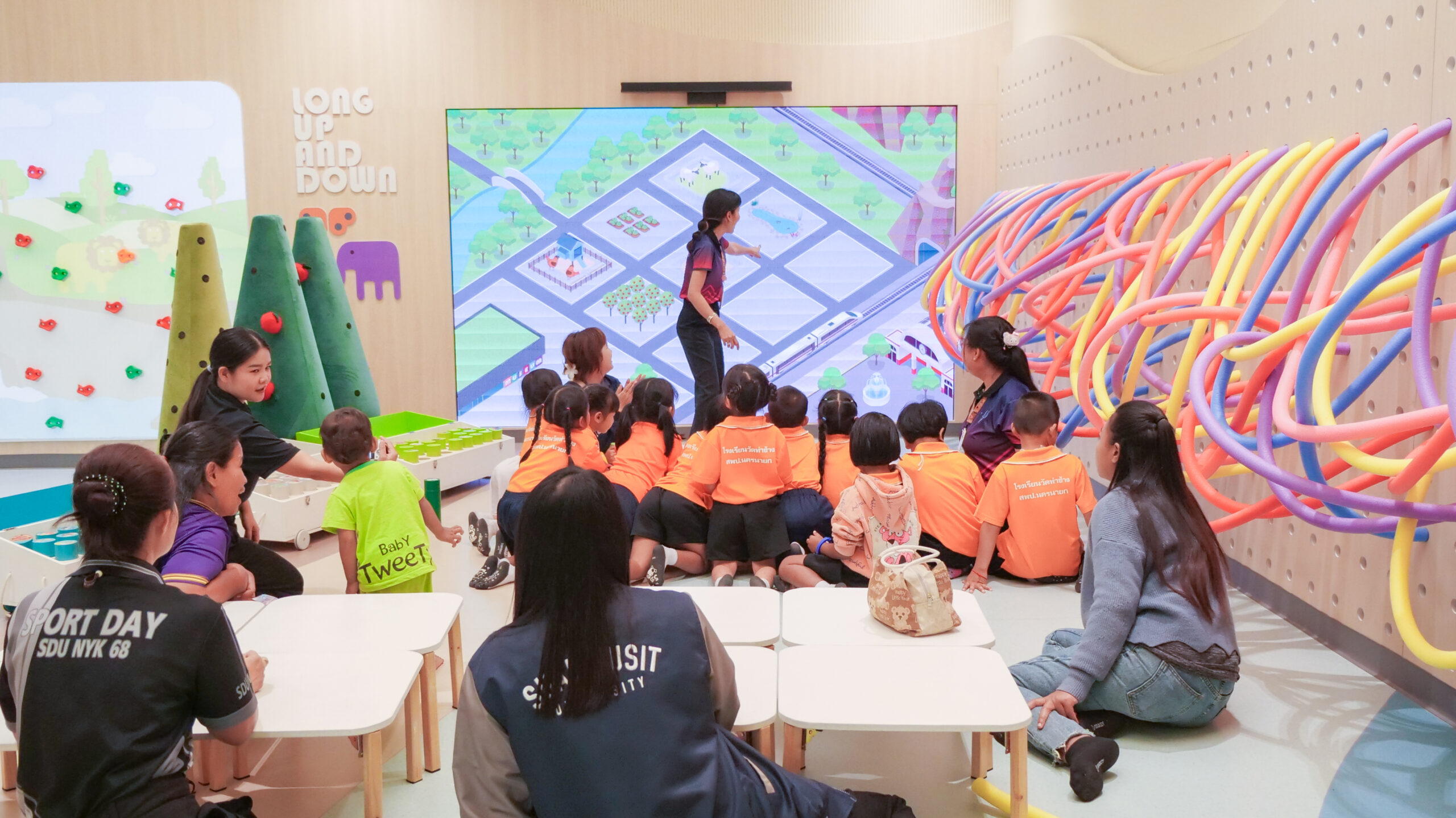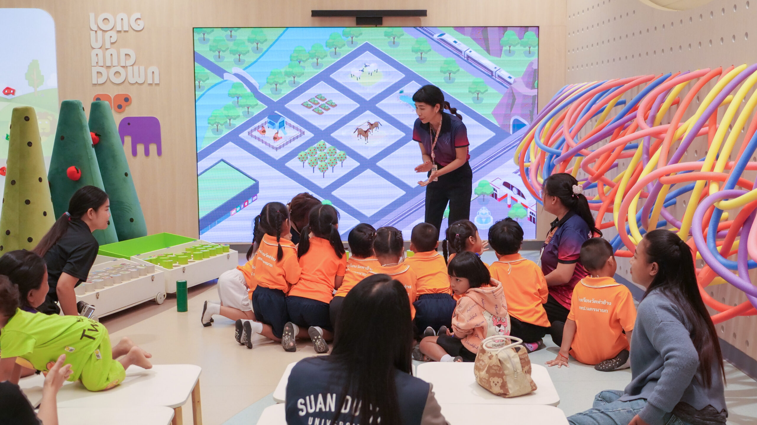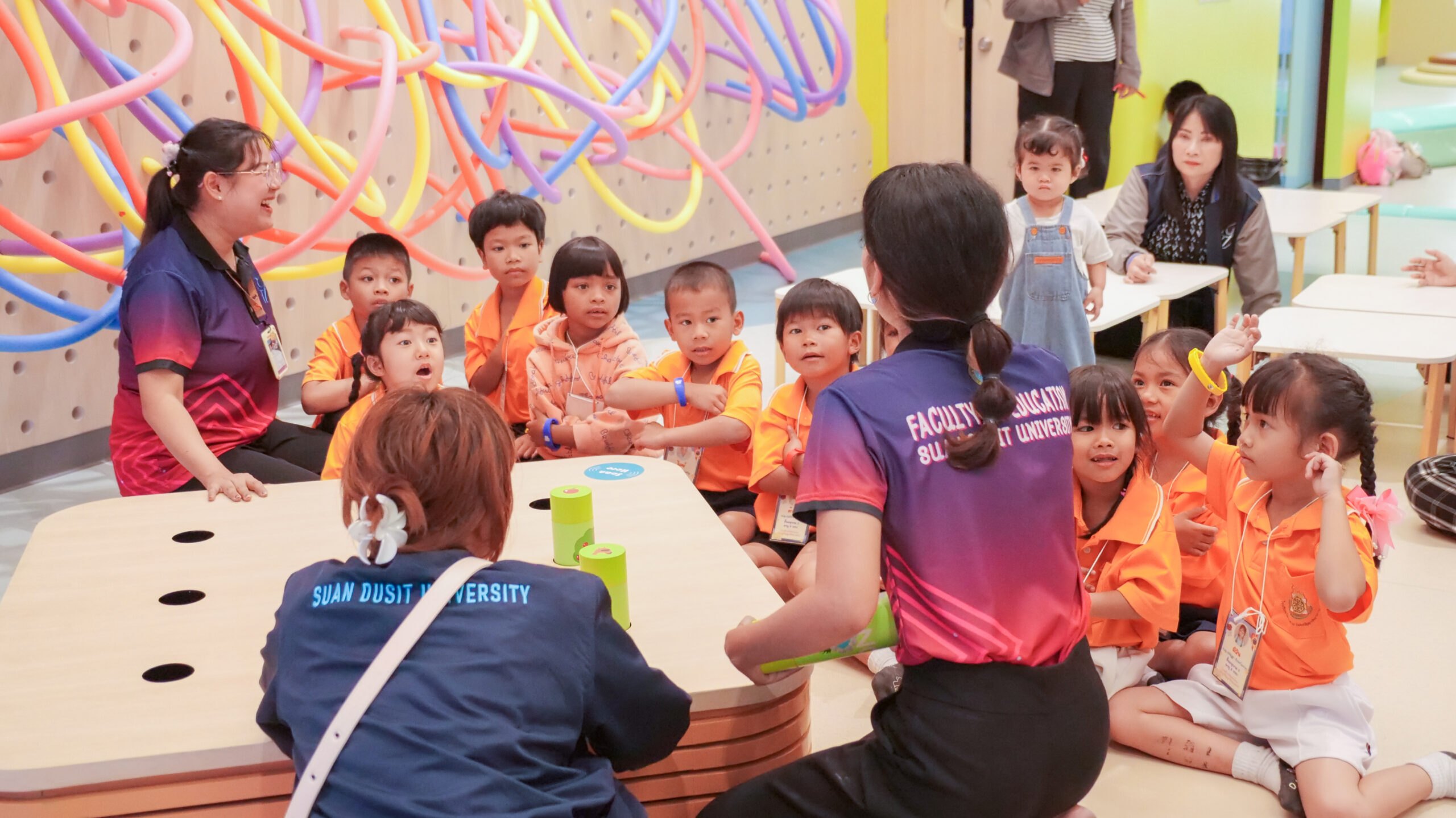 โรงเรียนวัดท่าช้าง (แสงปัญญาวิทยาคาร) จังหวัดนครนายก นำนักเรียนระดับชั้นอนุบาล 2 – 3 จำนวน 18 คน คุณครูจำนวน 2 คน และผู้ปกครองจำนวน 16 คน เข้าเรียนรู้และทำกิจกรรม ณ แหล่งเรียนรู้เพื่อยกระดับคุณภาพชีวิตของเด็กระดับประถมศึกษา มหาวิทยาลัยสวนดุสิต ศูนย์การศึกษา นครนายก (LONG KID DO) โดยมีทีมวิทยากรจากอาจารย์ประจำหลักสูตรศึกษาศาสตรบัณฑิต สาขาวิชาการศึกษาปฐมวัย และบุคลากรมหาวิทยาลัยสวนดุสิต ศูนย์การศึกษา นครนายก เป็นผู้จัดกิจกรรมให้แก่นักเรียน โดยมีวัตถุประสงค์ เพื่อพัฒนาและส่งเสริมพหุปัญญาทั้ง 8 ด้าน ให้เด็กปฐมวัยมีพัฒนาการการเรียนรู้ที่เหมาะสมตามวัย และเป็นการเปิดประสบการณ์การเรียนรู้นอกห้องเรียน ให้แก่นักเรียนระดับปฐมวัย ในวันที่ 18 มีนาคม 2569 เวลา 09.00 – 11.00 น.