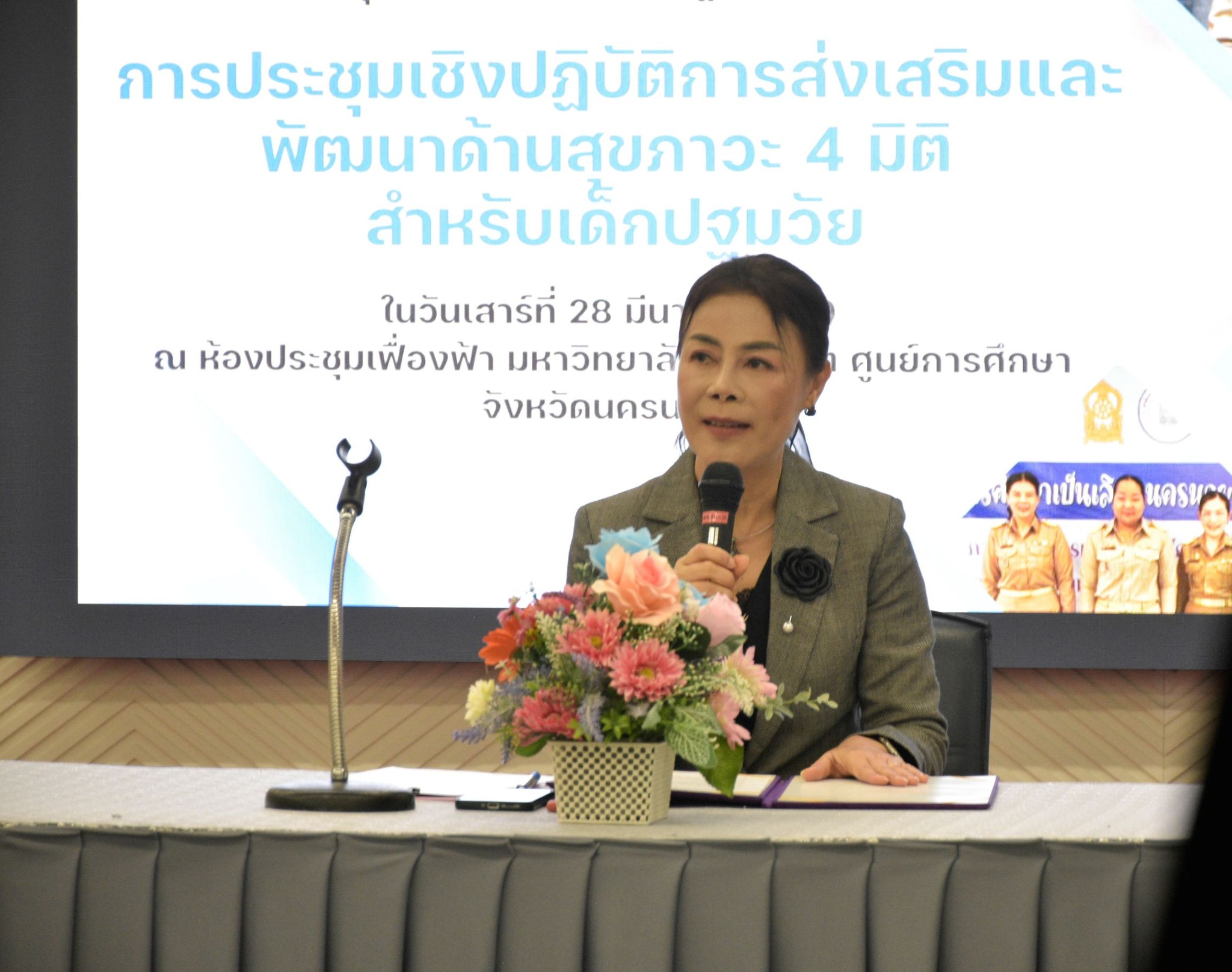 ในวันที่ 28 มีนาคม 2569 เวลา 09.30 น. สำนักงานศึกษาธิการจังหวัดนครนายก จัดประชุมเชิงปฏิบัติการส่งเสริมและพัฒนาด้านสุขภาวะ 4 ด้านสำหรับเด็กปฐมวัย เพื่อขับเคลื่อนแผนพัฒนาเด็กปฐมวัย ระยะ 3 ปี (พ.ศ. 2568 – 2570) โดยนางนิศารัตน์ เหมือนตา รองศึกษาธิการจังหวัดนครนายก เป็นประธานในพิธีเปิดการประชุม เพื่อสร้างการรับรู้ ความเข้าใจ และการมีส่วนร่วมของสถานศึกษาที่จัดการศึกษาปฐมวัยในจังหวัดนครนายก ให้เป็นไปในทิศทางเดียวกัน ในการส่งเสริมและพัฒนาสุขภาวะเด็กปฐมวัยทั้ง 4 ด้าน ได้แก่ ด้านร่างกาย ด้านอารมณ์และจิตใจ ด้านสังคม และด้านสติปัญญา ผ่านกระบวนการขับเคลื่อนตามนโยบาย “3 เร่ง 3 ลด 3 เพิ่ม” ภายใต้ Model “Care For Kids ” 3 มิติผ่านโปรแกรม Follow Kids อย่างมีประสิทธิภาพ ในการนี้คณะอาจารย์ประจำหลักสูตรศึกษาศาสตรบัณฑิต สาขาวิชาการศึกษาปฐมวัย มหาวิทยาลัยสวนดุสิต ศูนย์การศึกษา นครนายก จำนวน 5 คน ได้รับเชิญเป็นวิทยากรให้ความรู้และแนวทางการจัดการเรียนการสอนสำหรับเด็กปฐมวัย ให้กับบุคลากรที่จัดการศึกษาปฐมวัย กระทรวงศึกษาธิการ และกระทรวงมหาดไทย จำนวน 5 หน่วยงาน รวม 180 คน และได้รับความร่วมมือจาก โรงเรียนเทศบาล 1 วัดศรีเมือง ร่วมจัดนิทรรศการนำเสนอผลงานและสื่อประกอบการจัดการเรียนการสอนเด็กปฐมวัย ณ ห้องประชุมเฟื่องฟ้า มหาวิทยาลัยสวนดุสิต ศูนย์การศึกษา นครนายก
