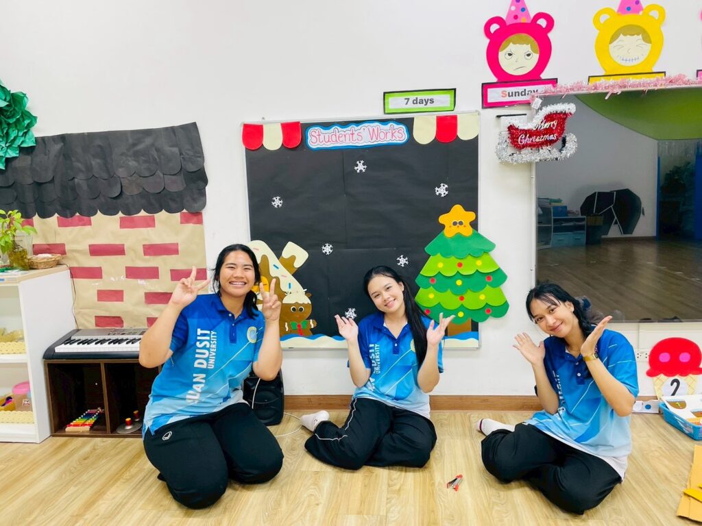 มหาวิทยาลัยสวนดุสิต ศูนย์การศึกษา นครนายก หลักสูตรศึกษาศาสตรบัณฑิต สาขาวิชาการศึกษาปฐมวัย จัดกิจกรรมความร่วมมือรายวิชาแลกเปลี่ยนเรียนรู้การจัดการเรียนการสอนร่วมกับโรงเรียนสาธิตละอออุทิศ นำโดยอาจารย์อัญชิษฐา ปิยะจิตติ อาจารย์ผู้สอนรายวิชา ศิลปะ สื่อสร้างสรรค์ และนิทรรศการสำหรับเด็กในยุคดิจิทัล พานักศึกษาชั้นปีที่ 2 ให้ความรู้ป้ายนิเทศแบบ Interractive Board ธีมคริสต์มาส / ปีใหม่ กับผู้ปกครองและผู้ที่สนใจ ในวันที่ 17 ธันวาคม 2568 มหาวิทยาลัยสวนดุสิต ศูนย์การศึกษา นครนายก